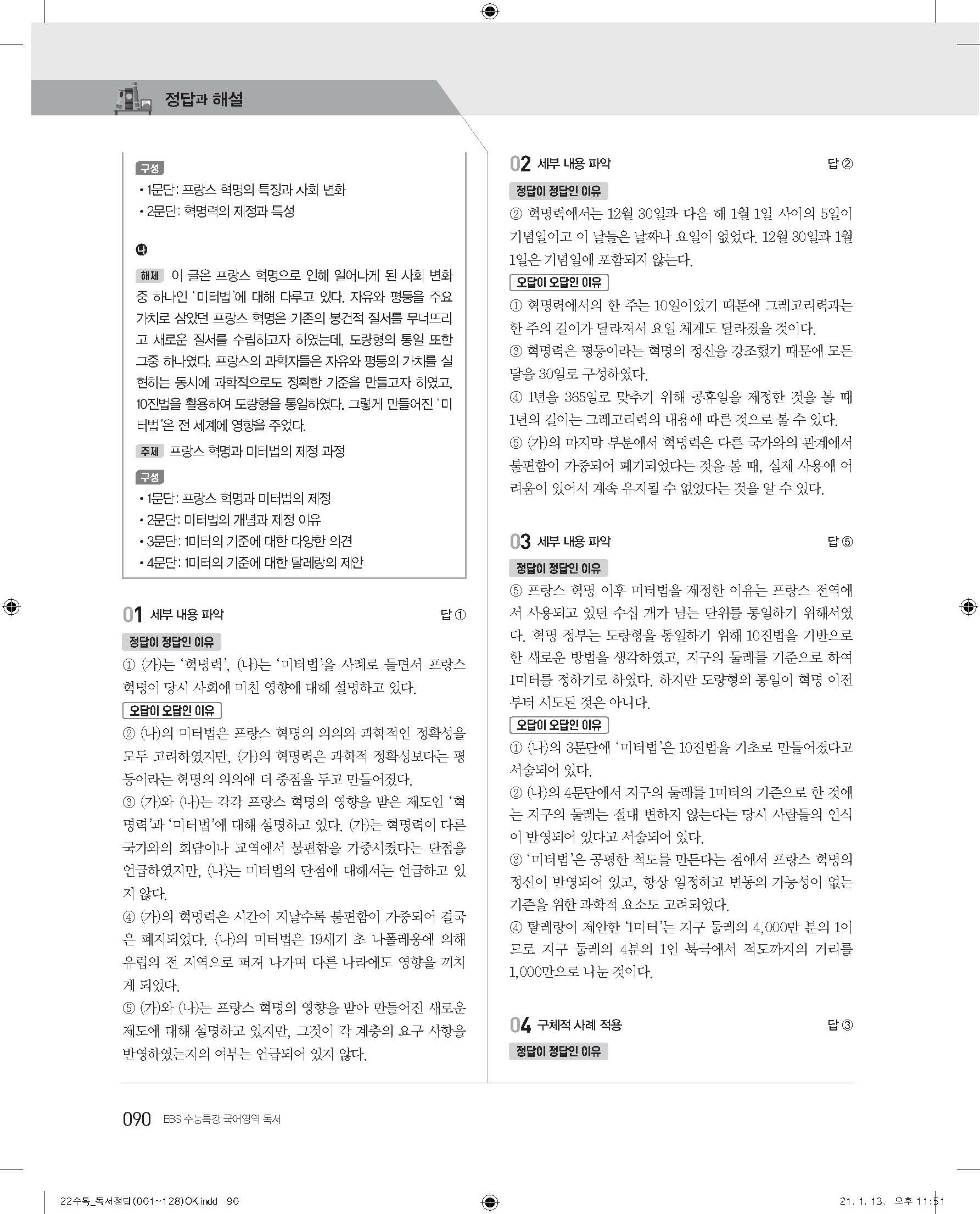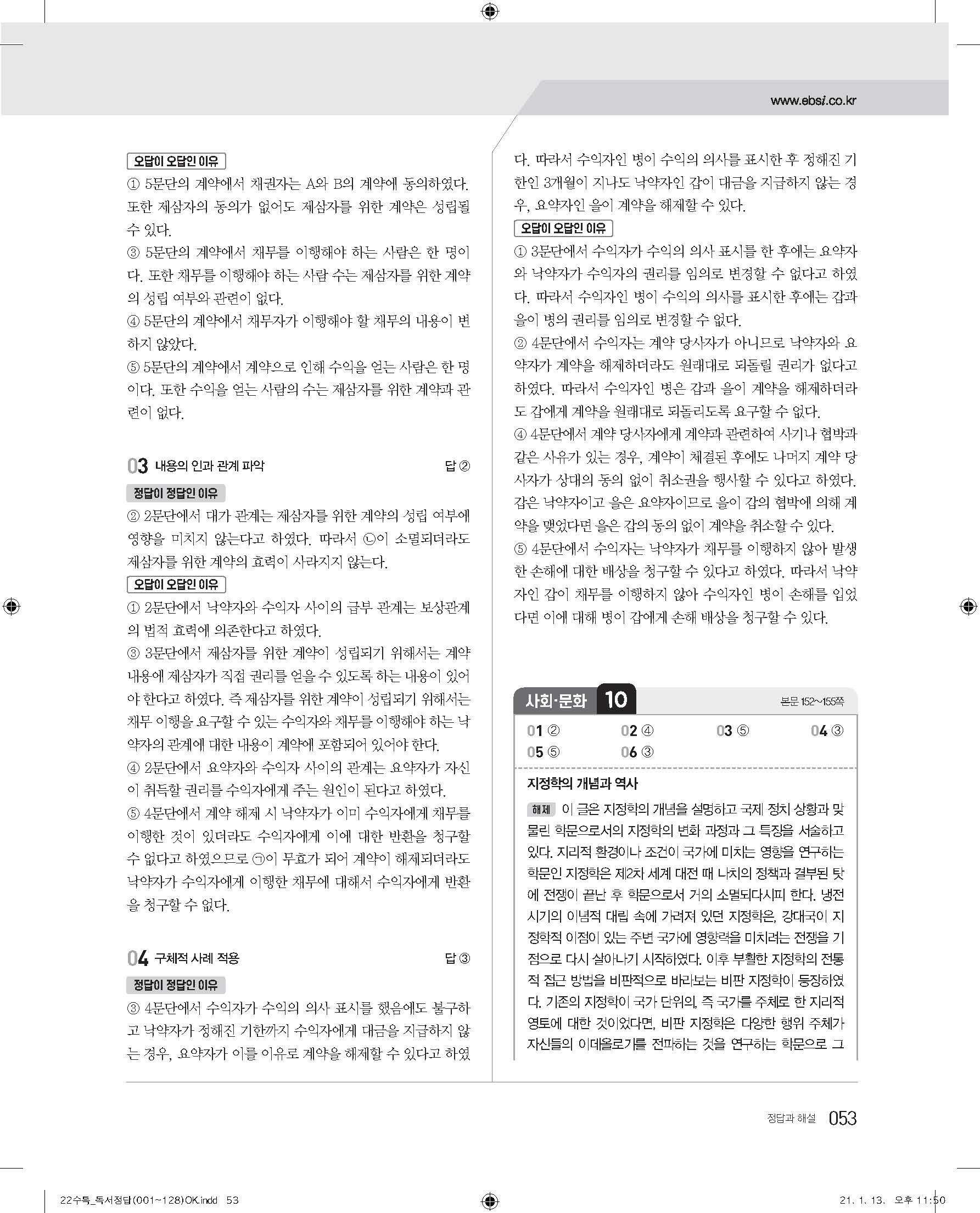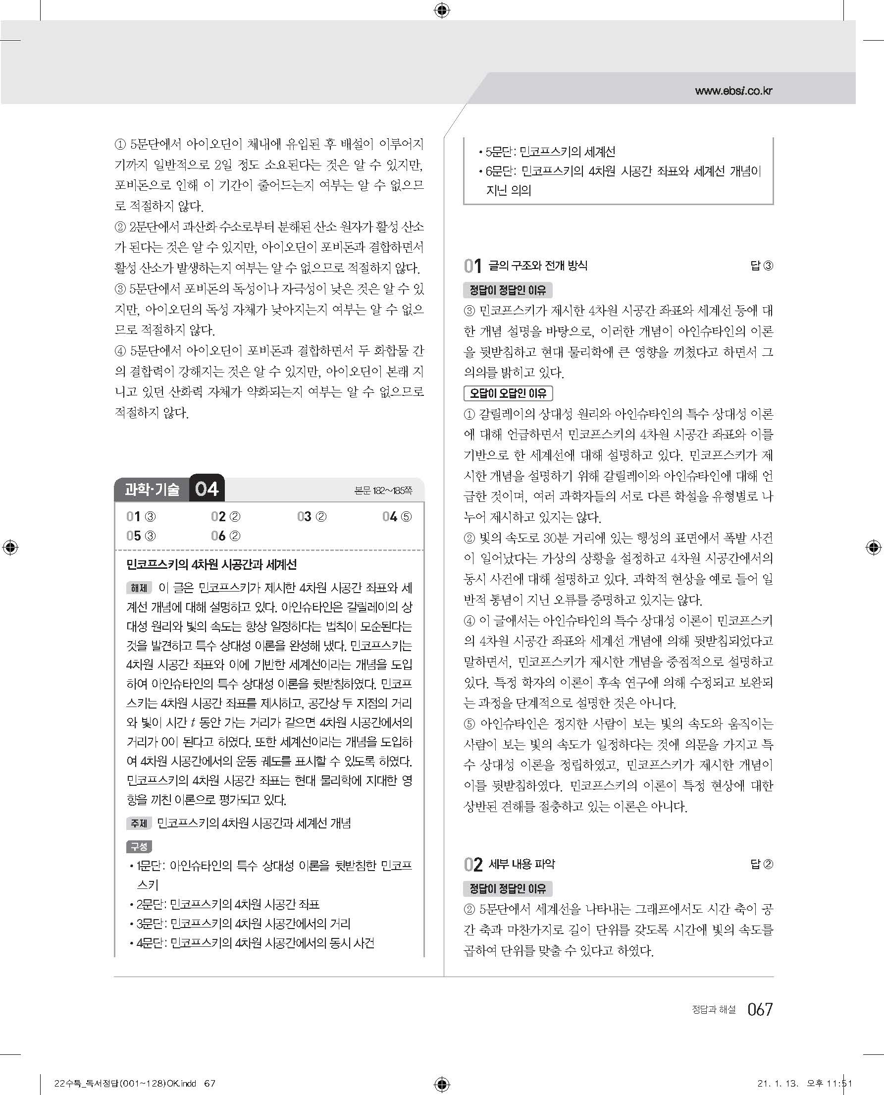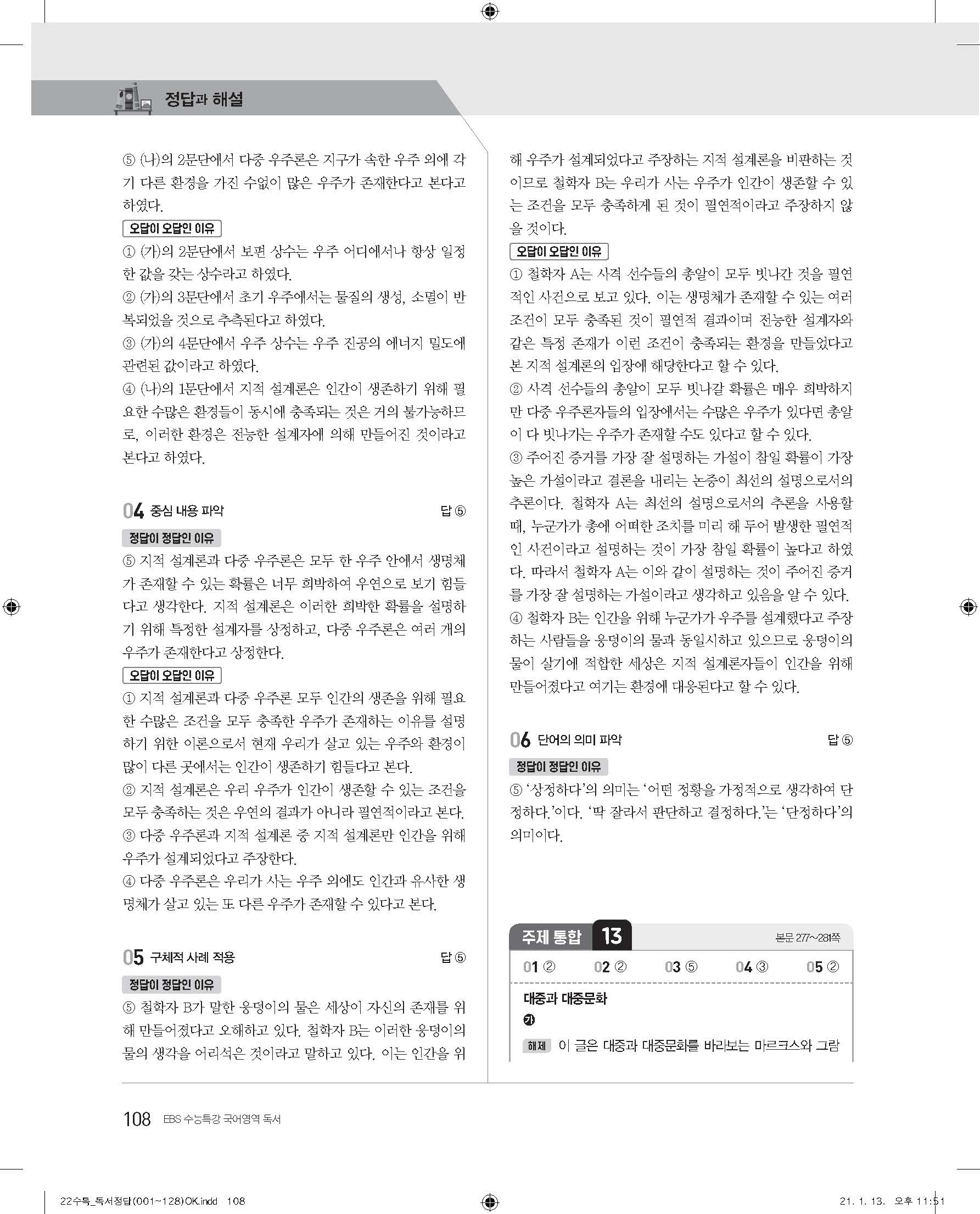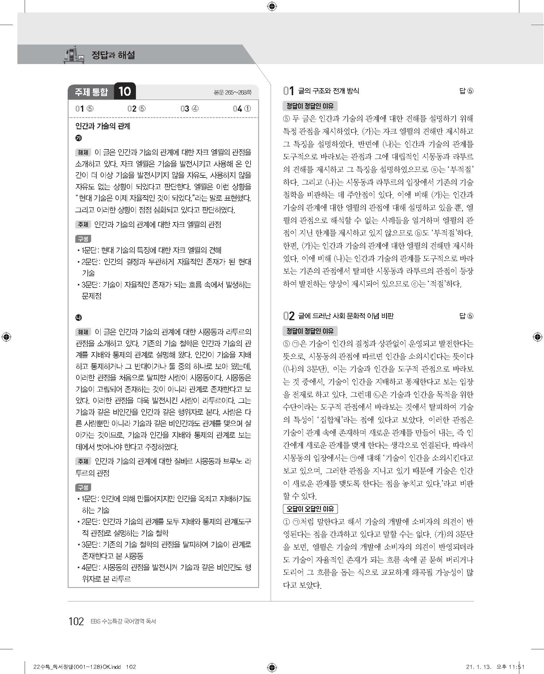 EBS 2022 수능특강 독서 사진답지 빠른답지 모바일최적화