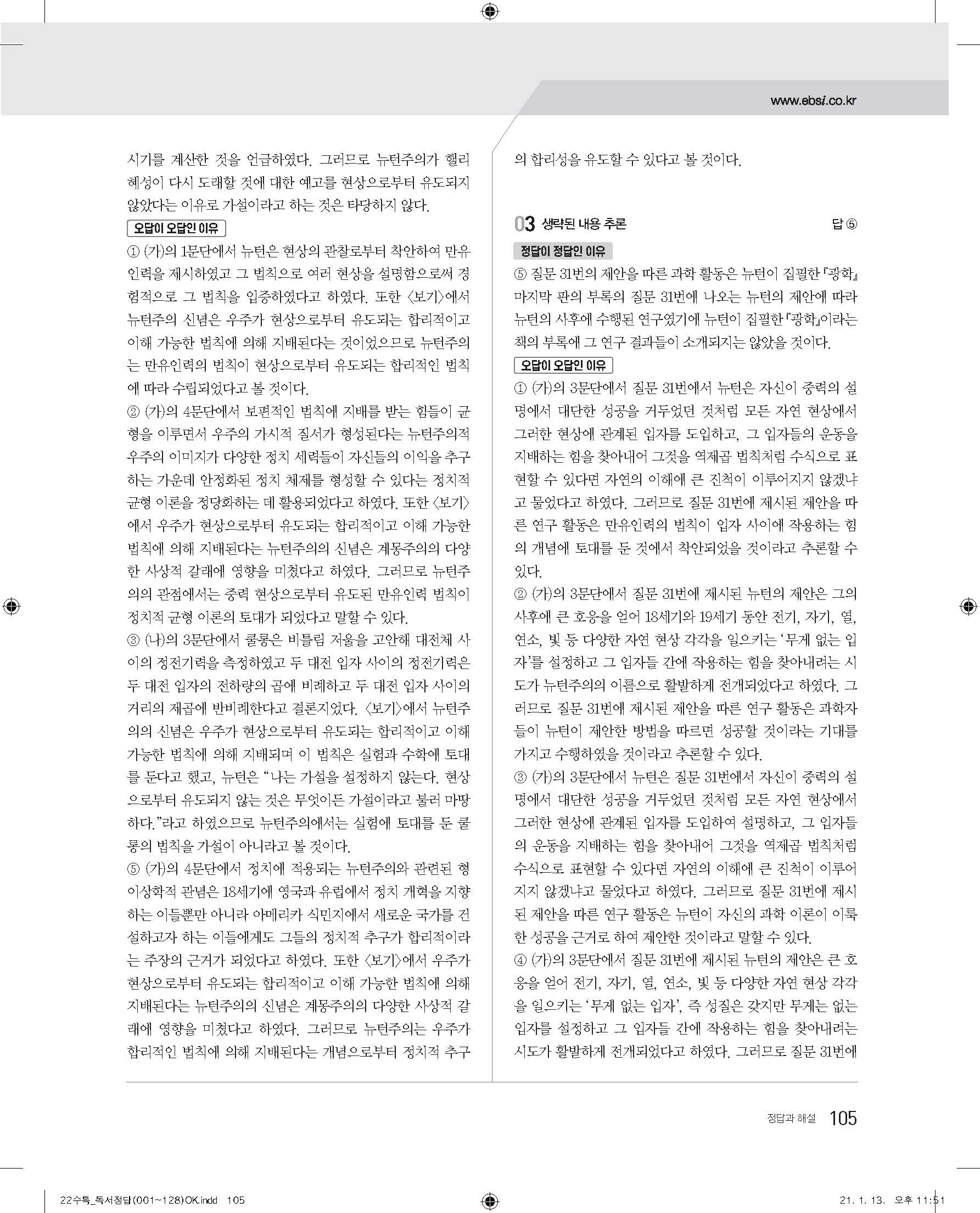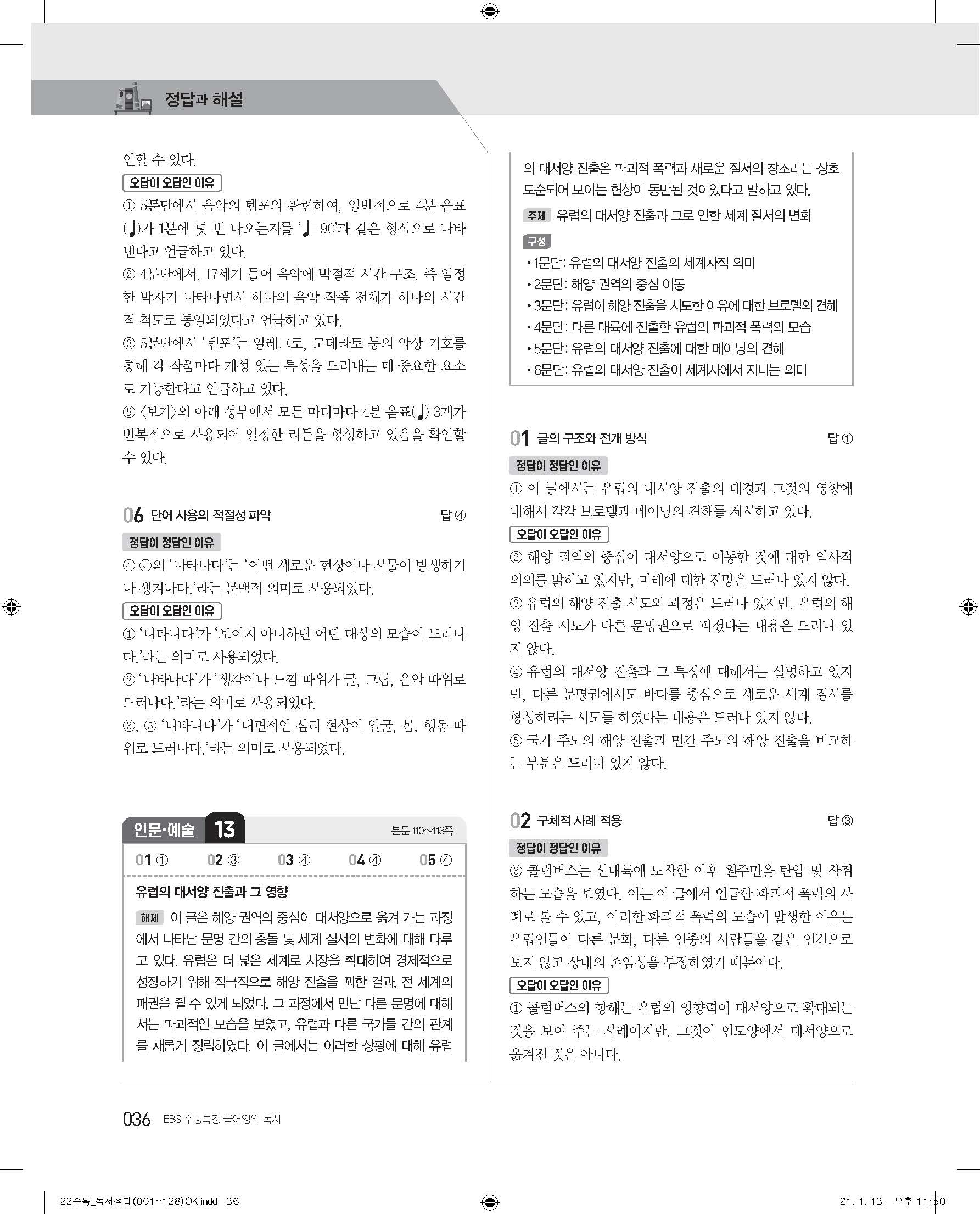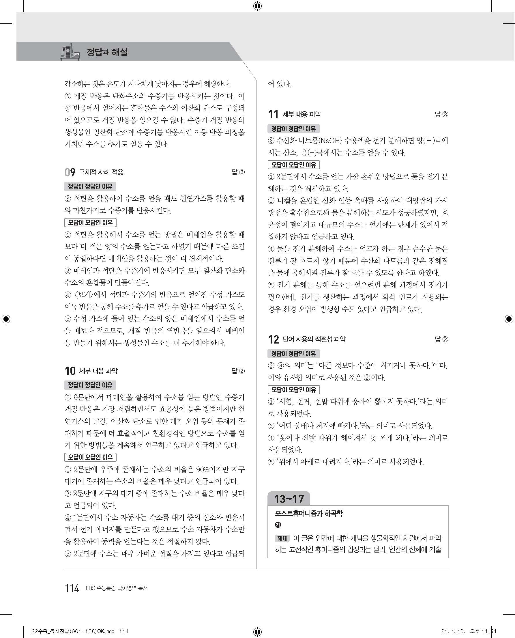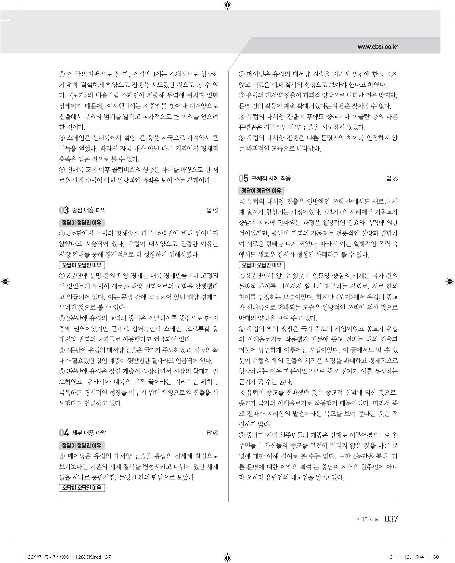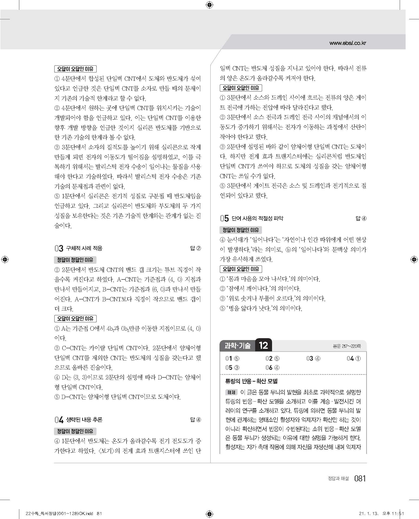 EBS 2022 수능특강 독서 사진답지 빠른답지 모바일최적화