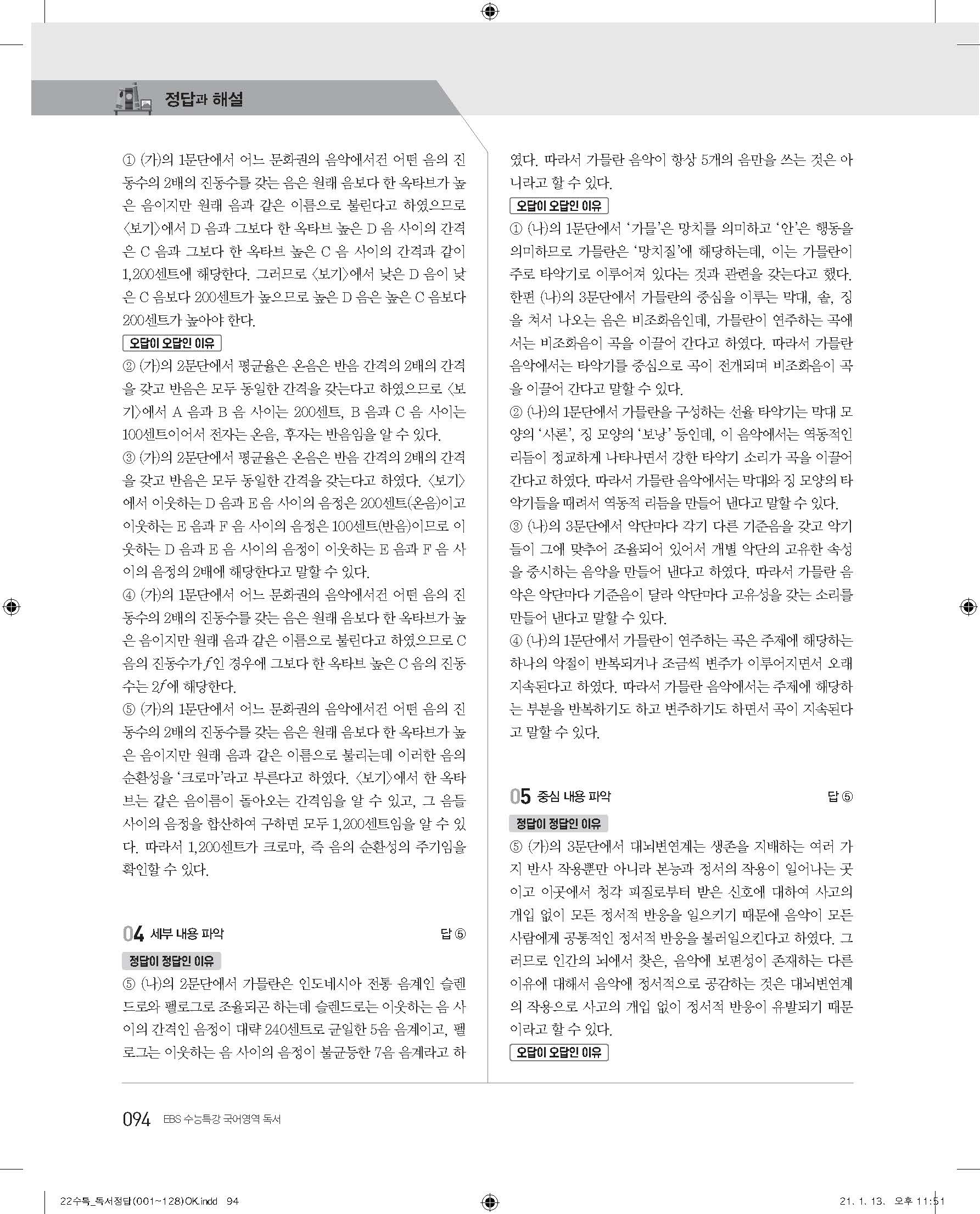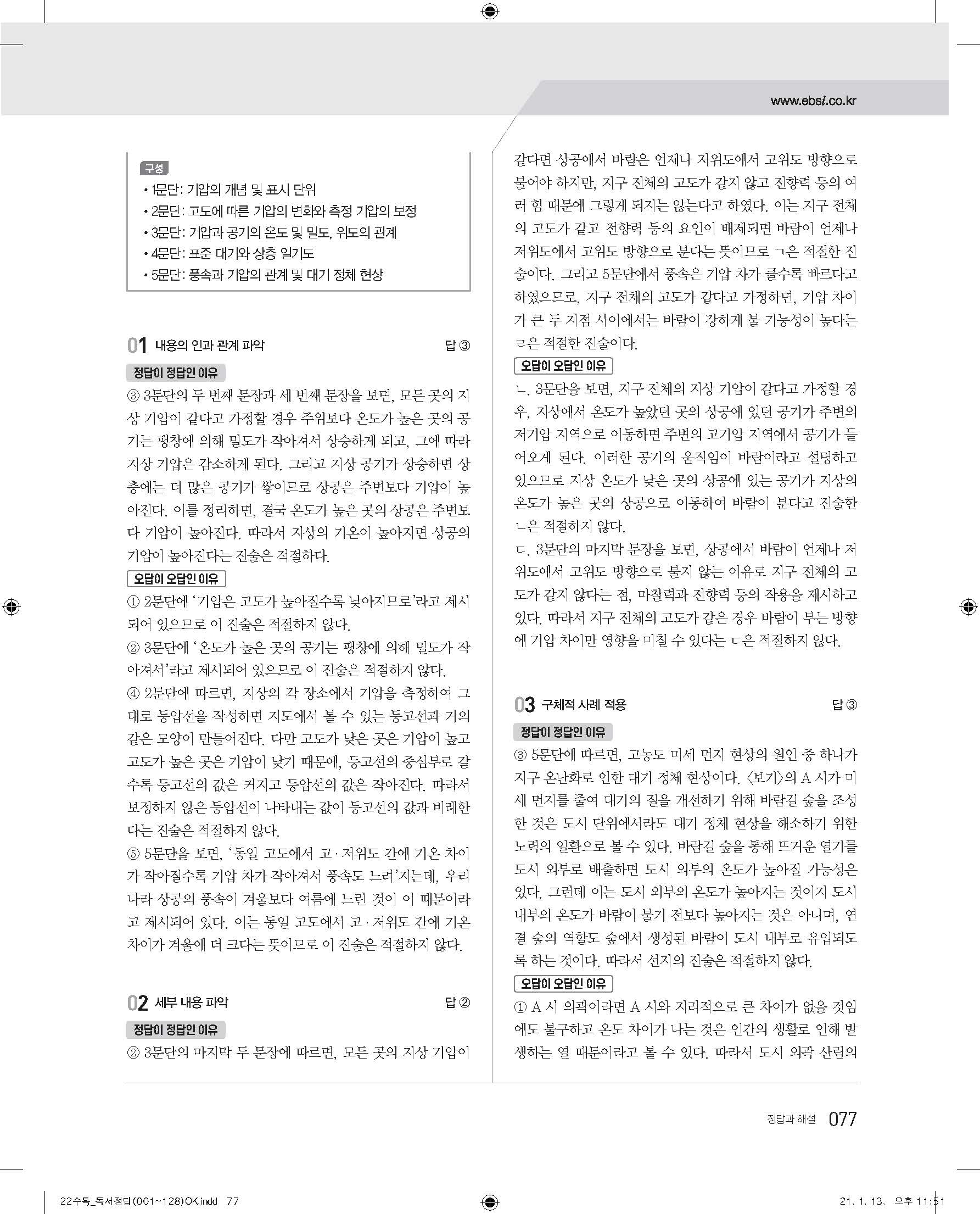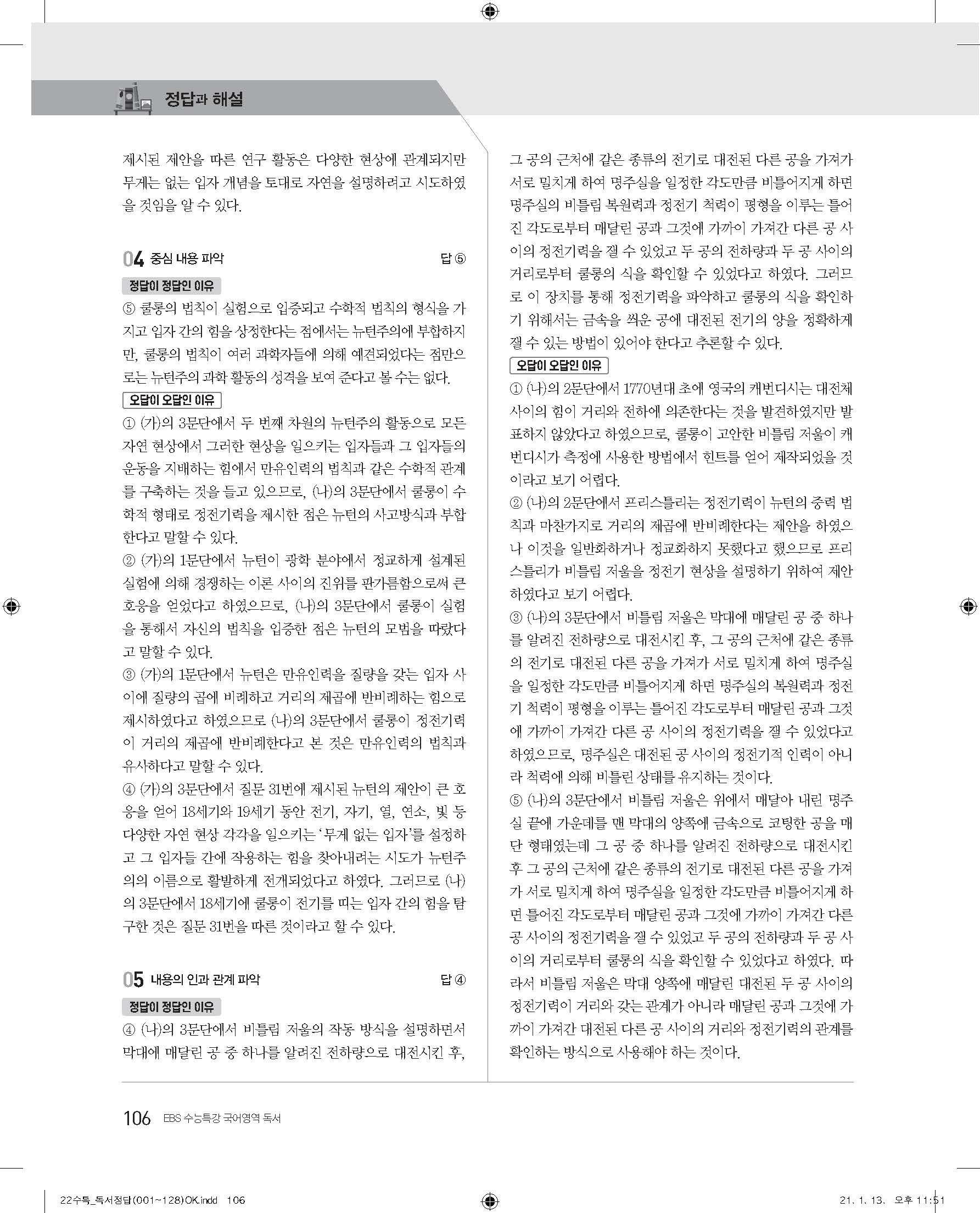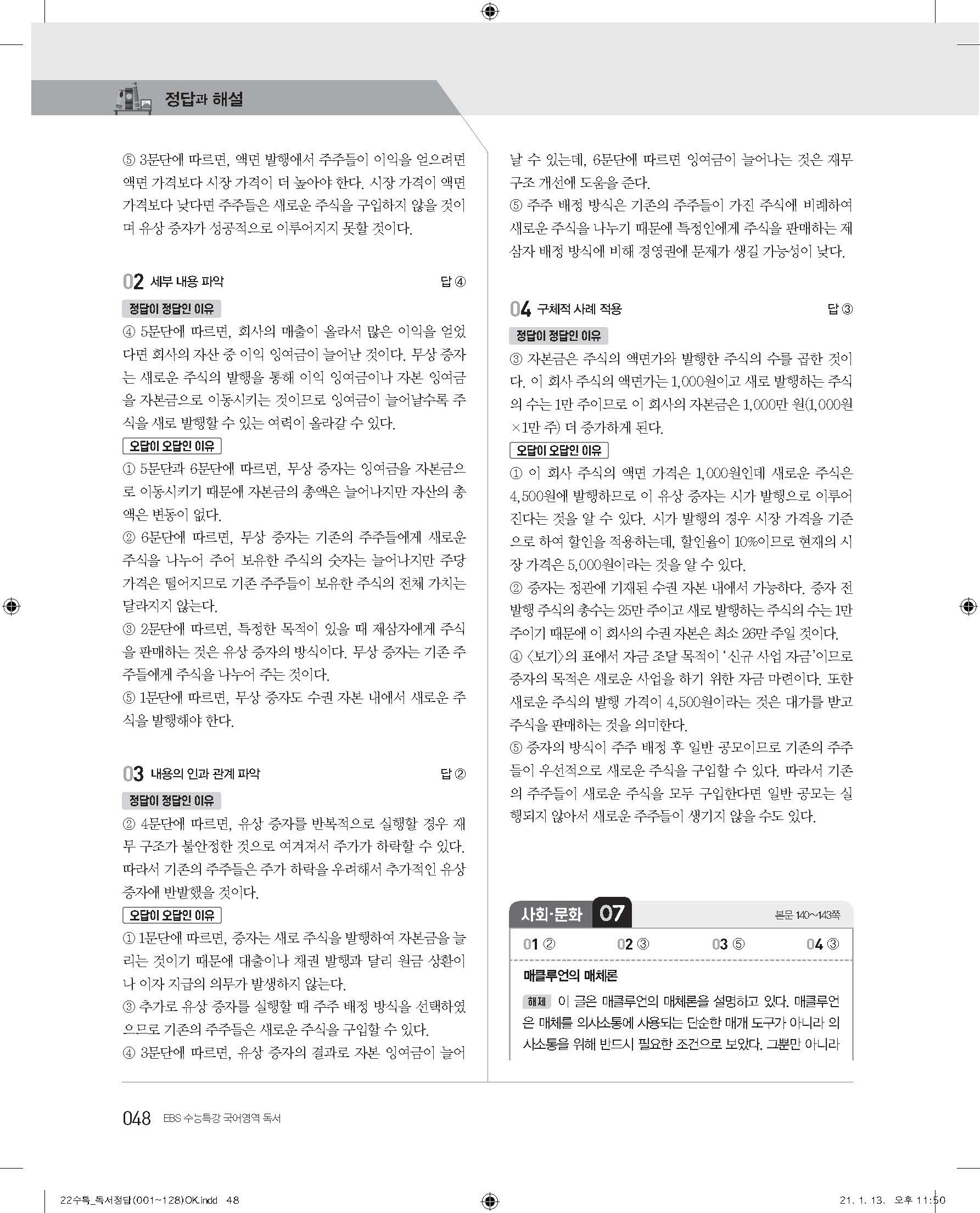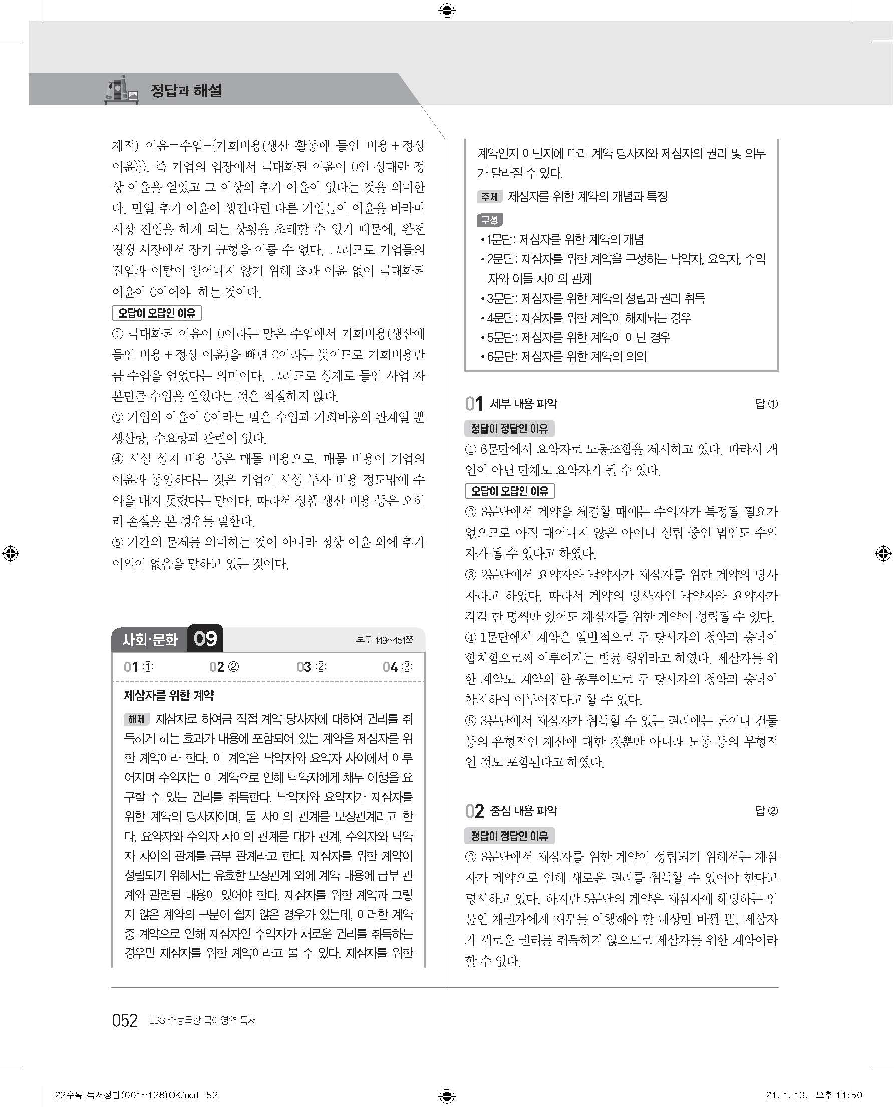 EBS 2022 수능특강 독서 사진답지 빠른답지 모바일최적화
