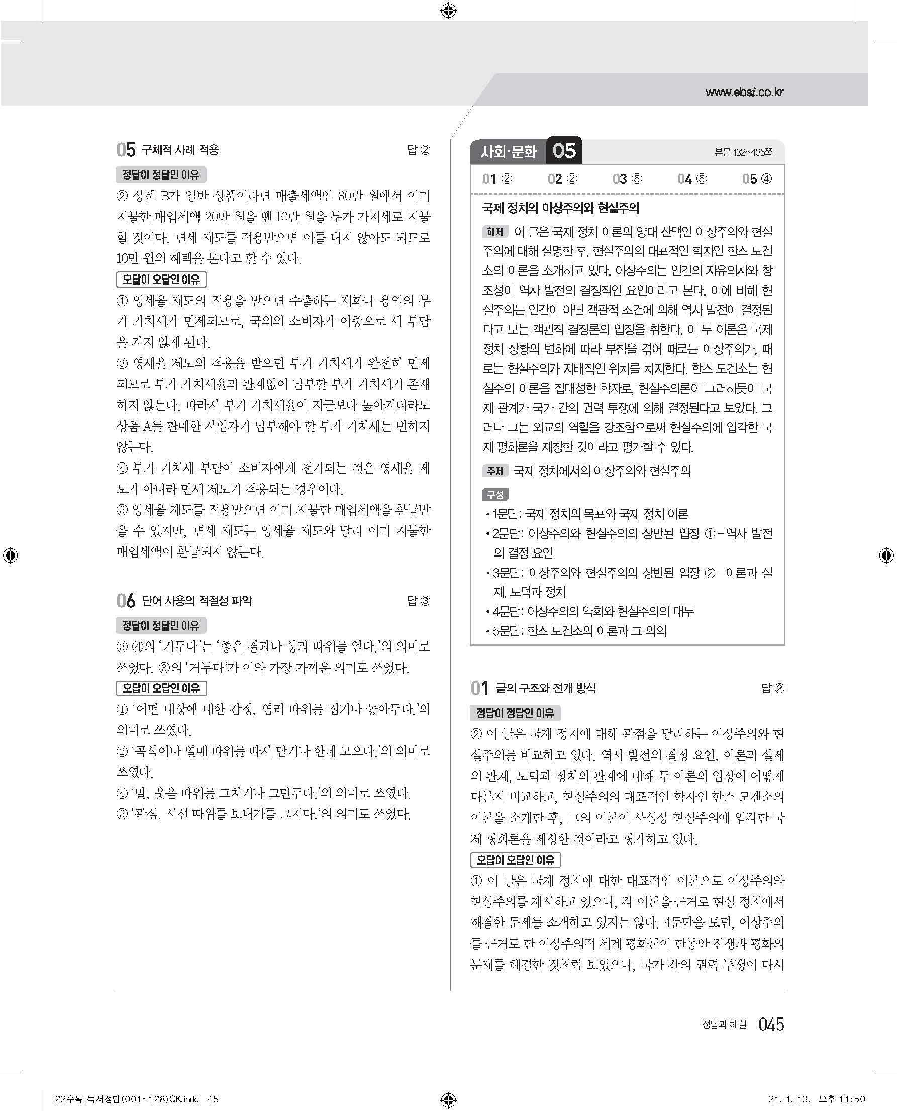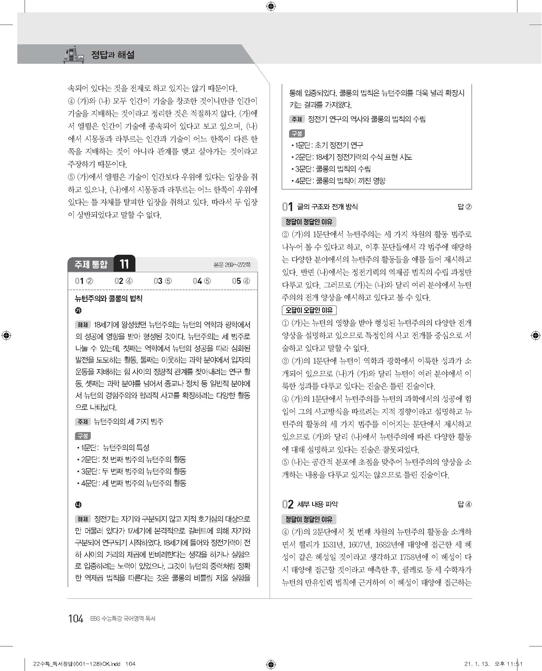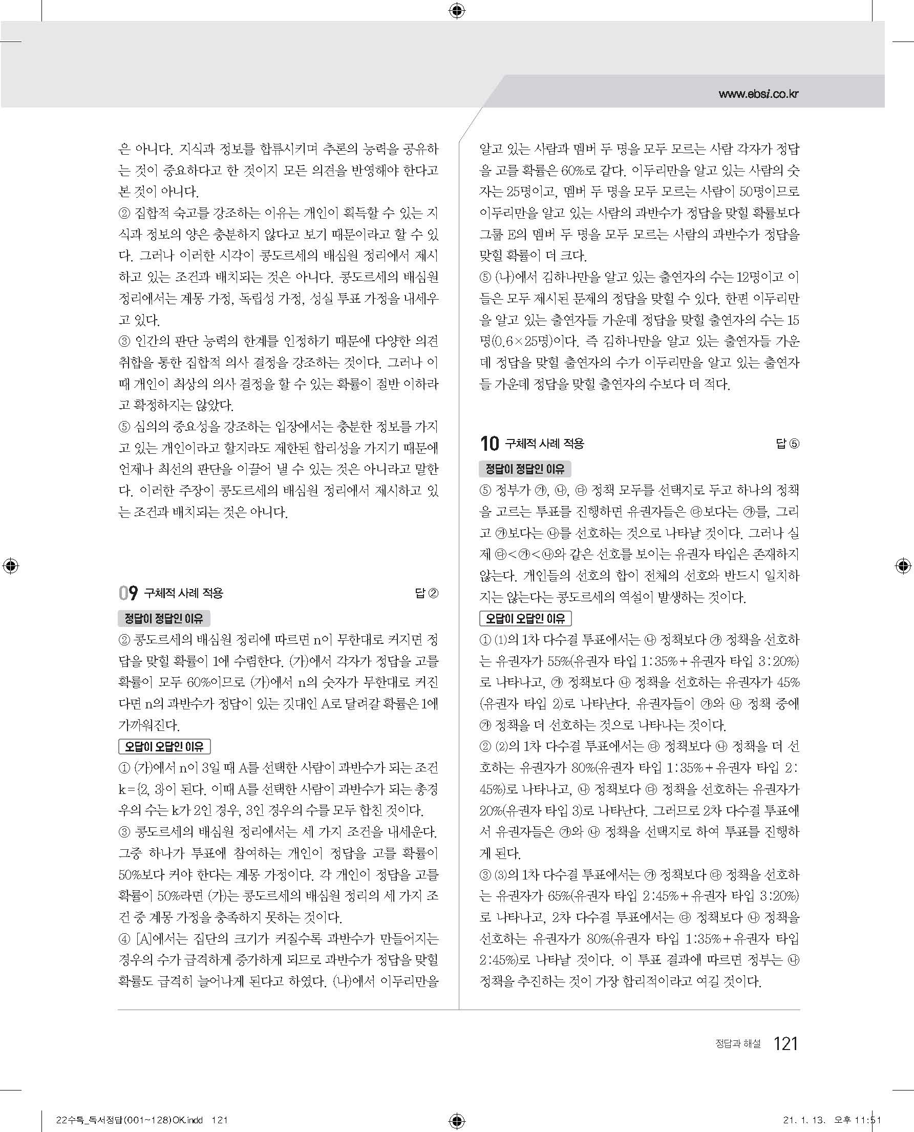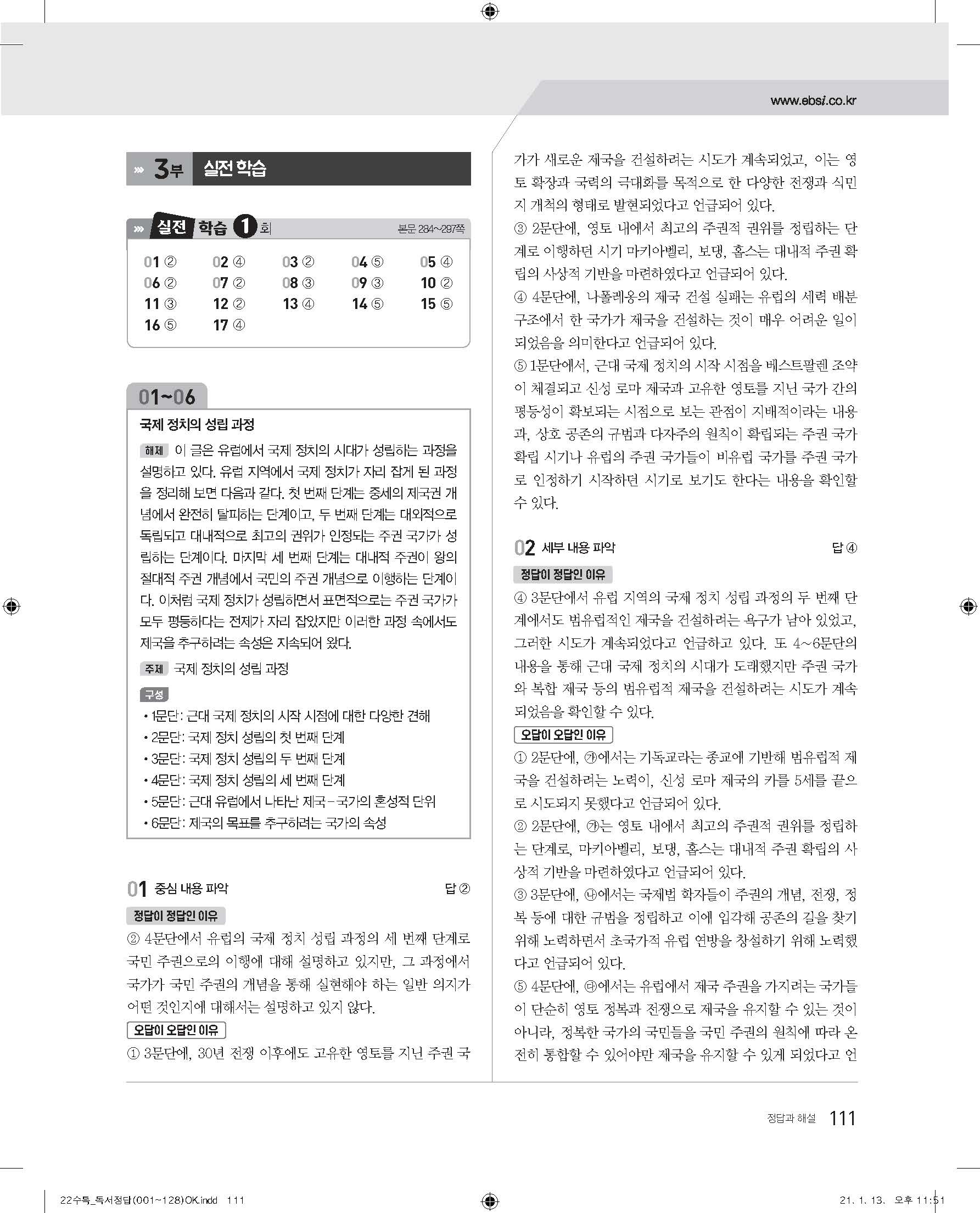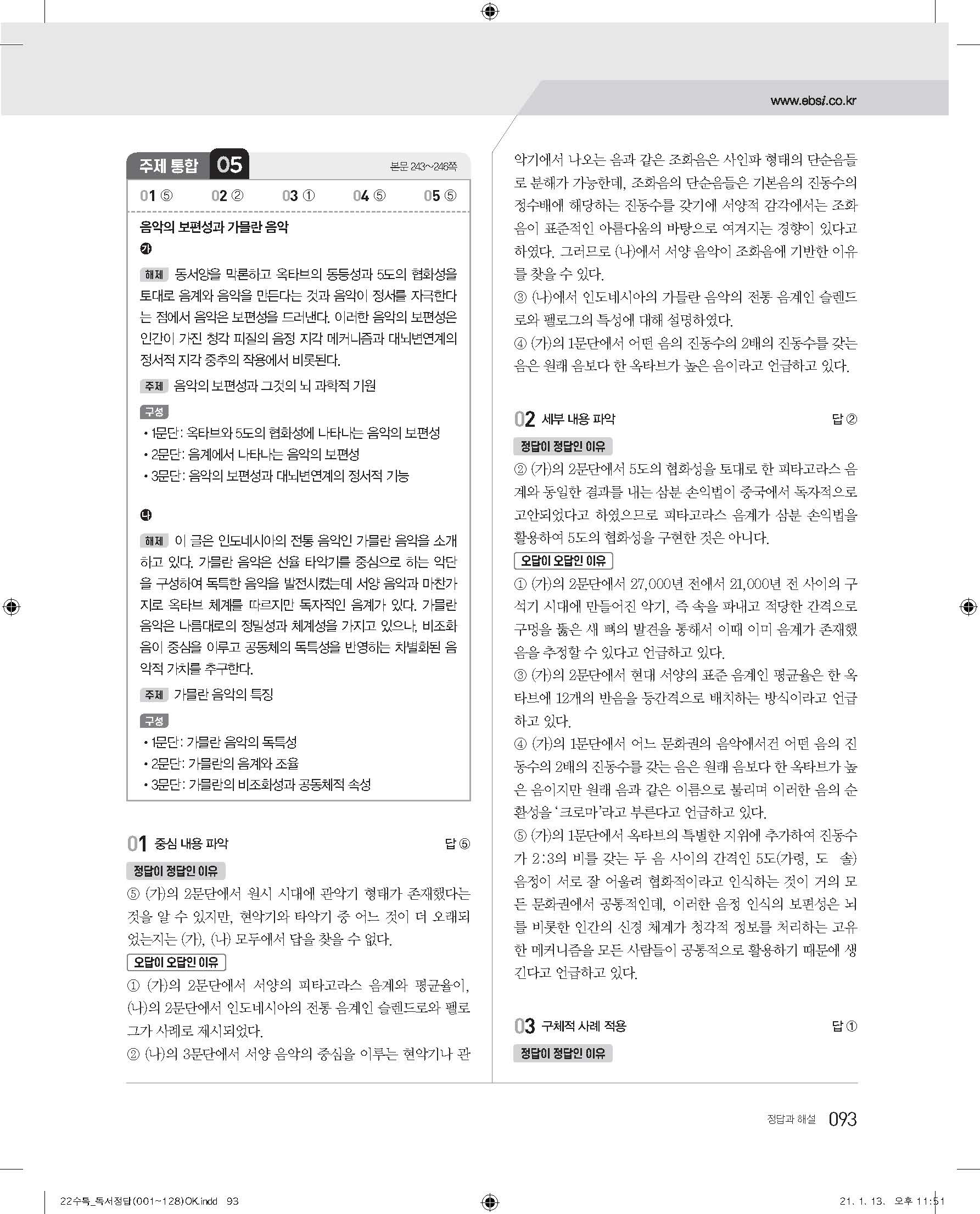 EBS 2022 수능특강 독서 사진답지 빠른답지 모바일최적화