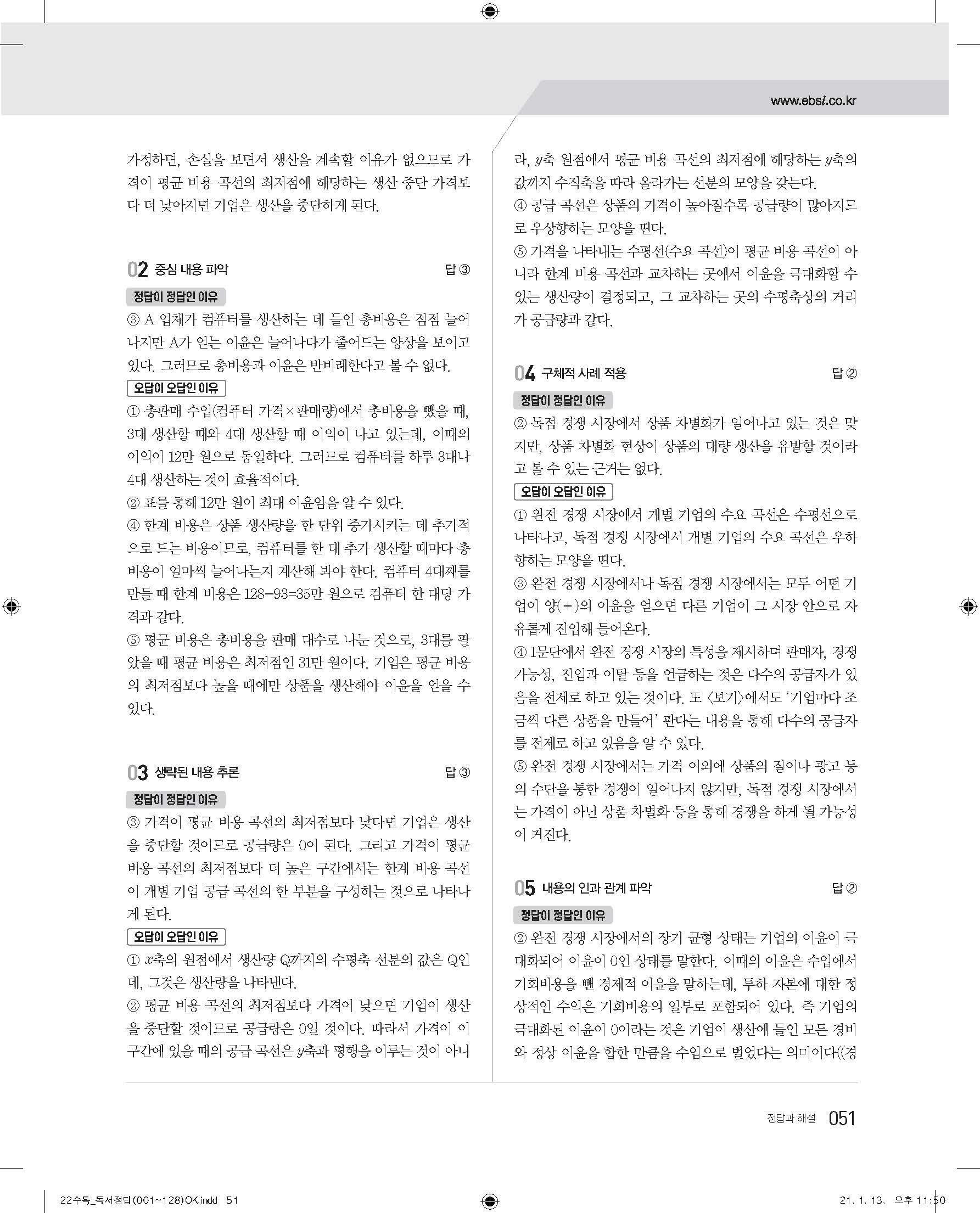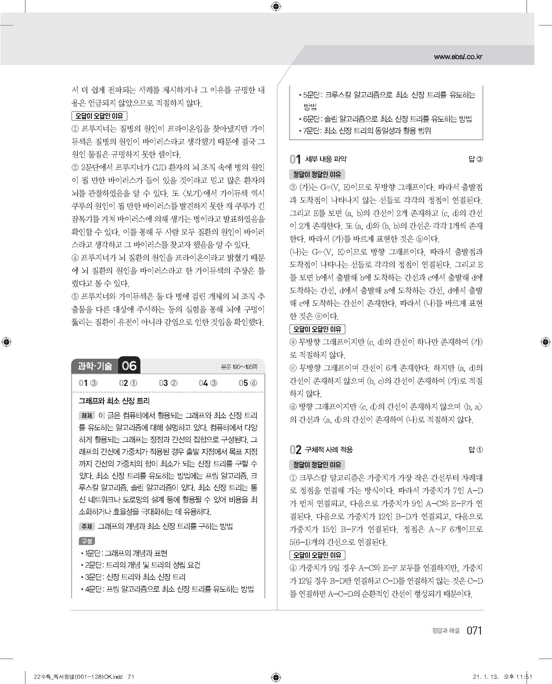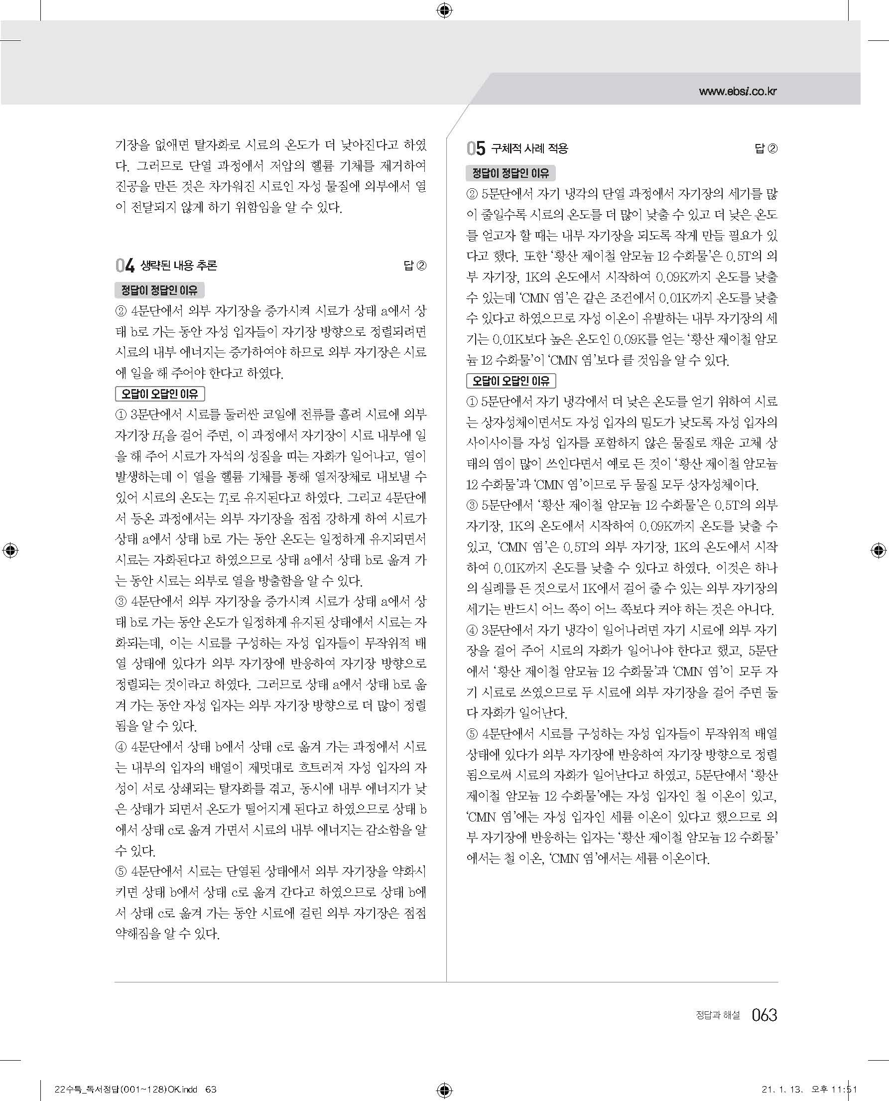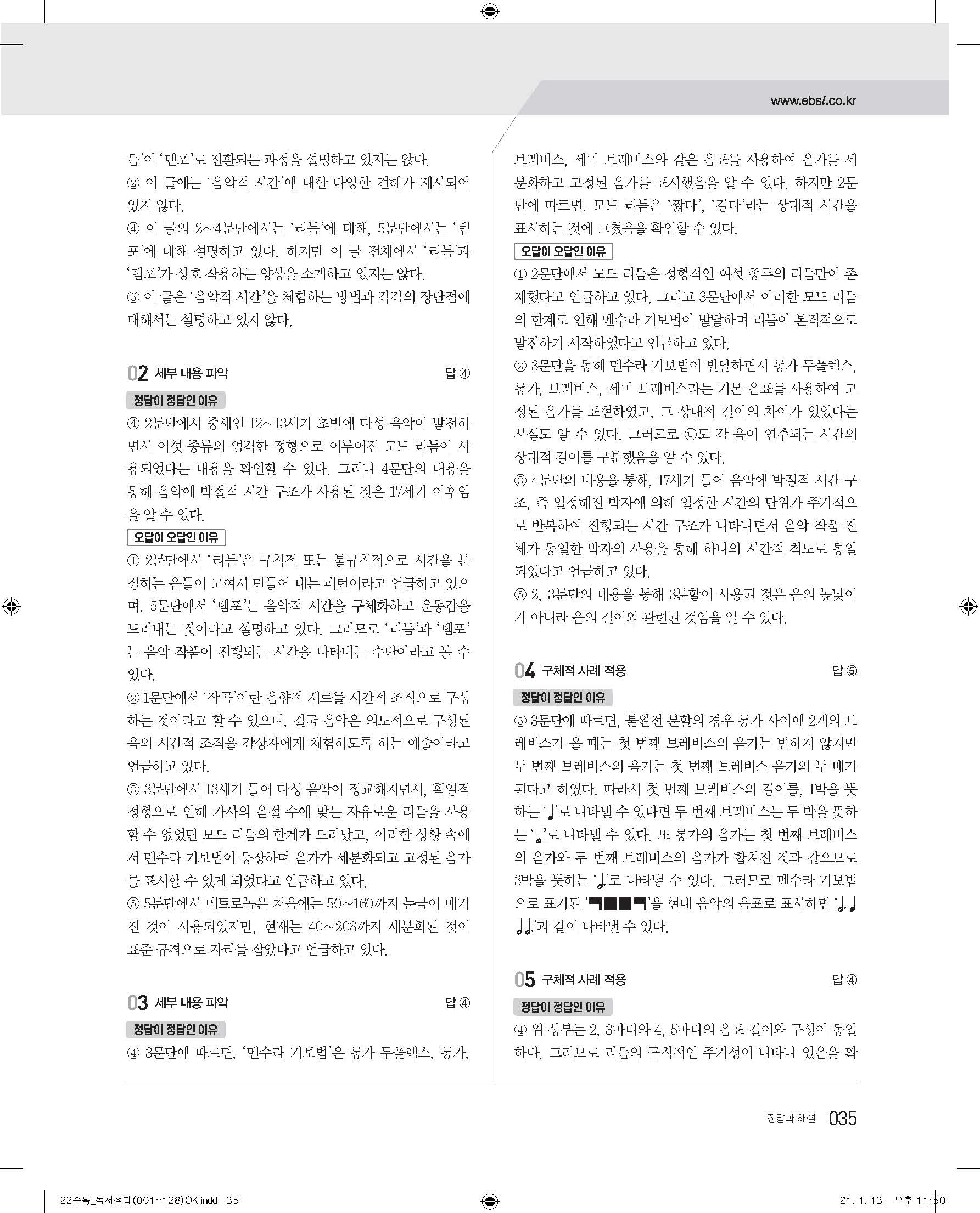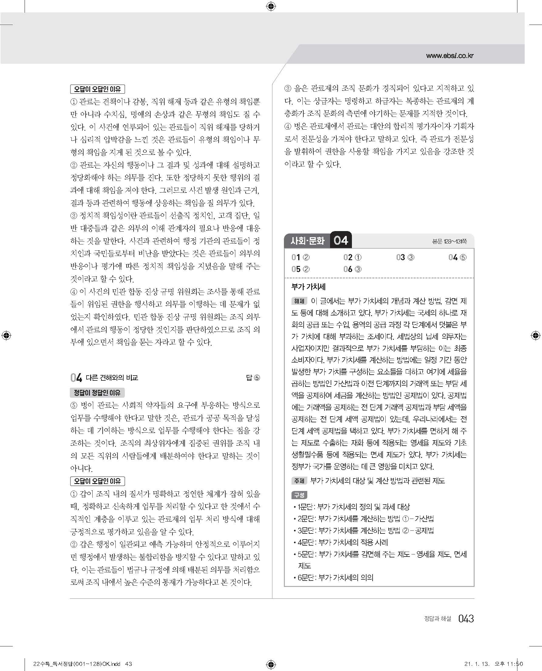 EBS 2022 수능특강 독서 사진답지 빠른답지 모바일최적화