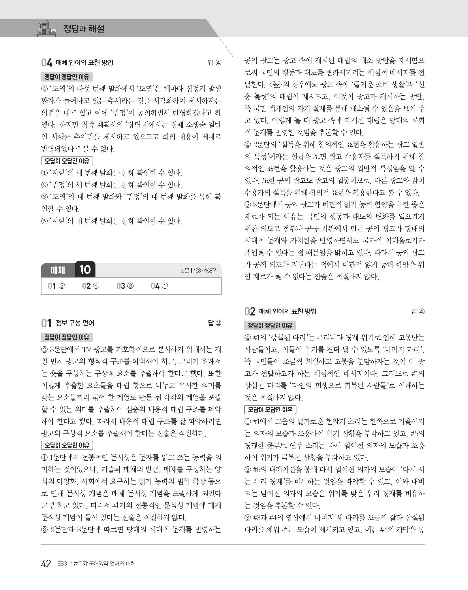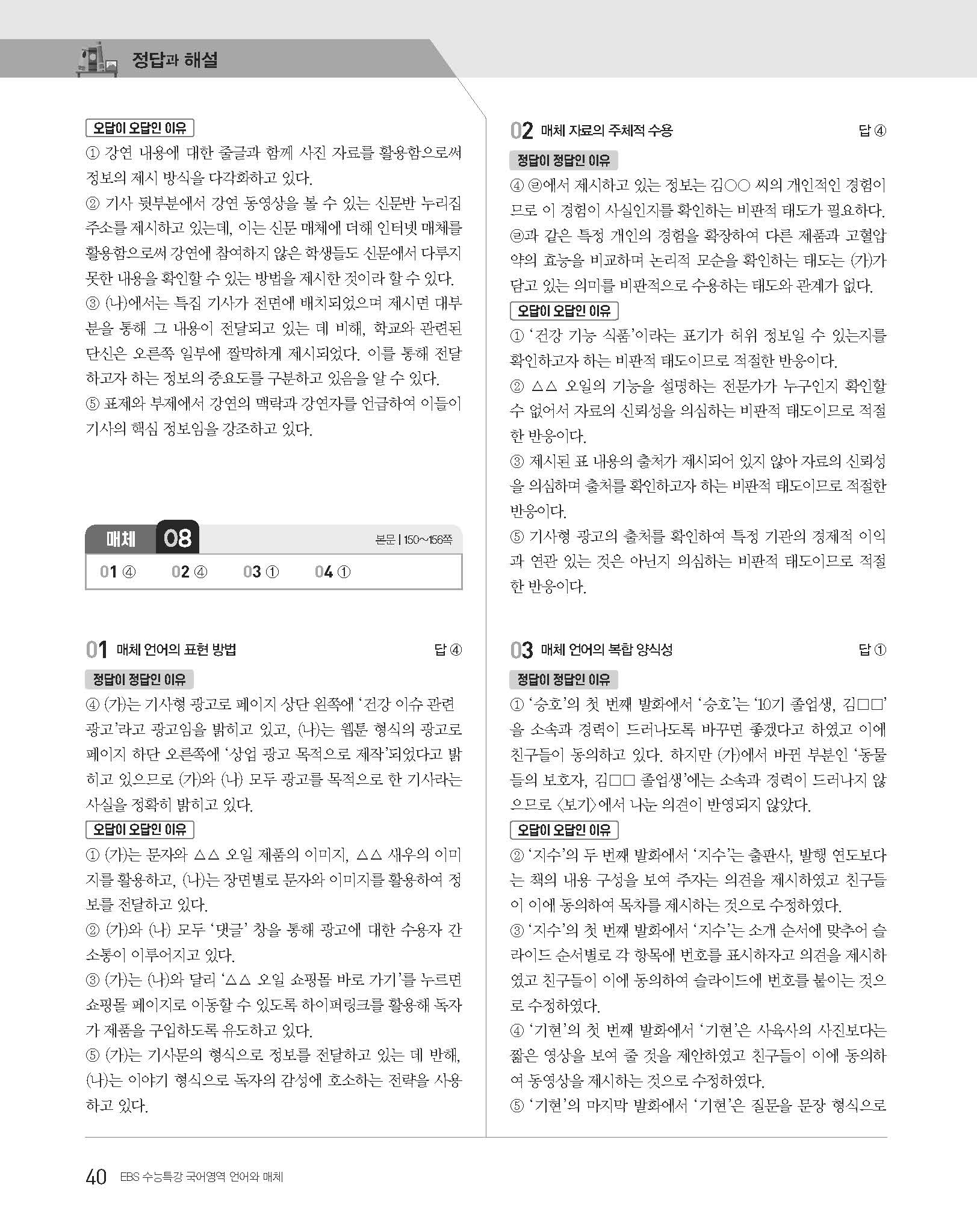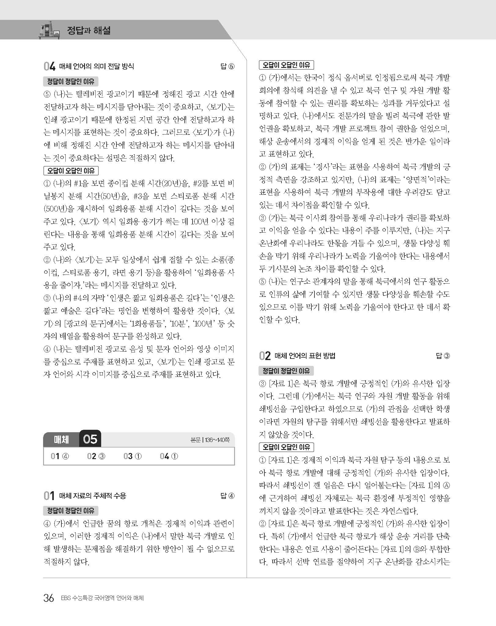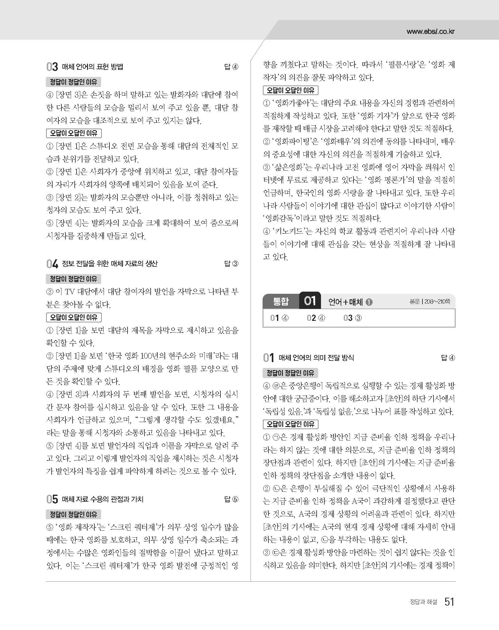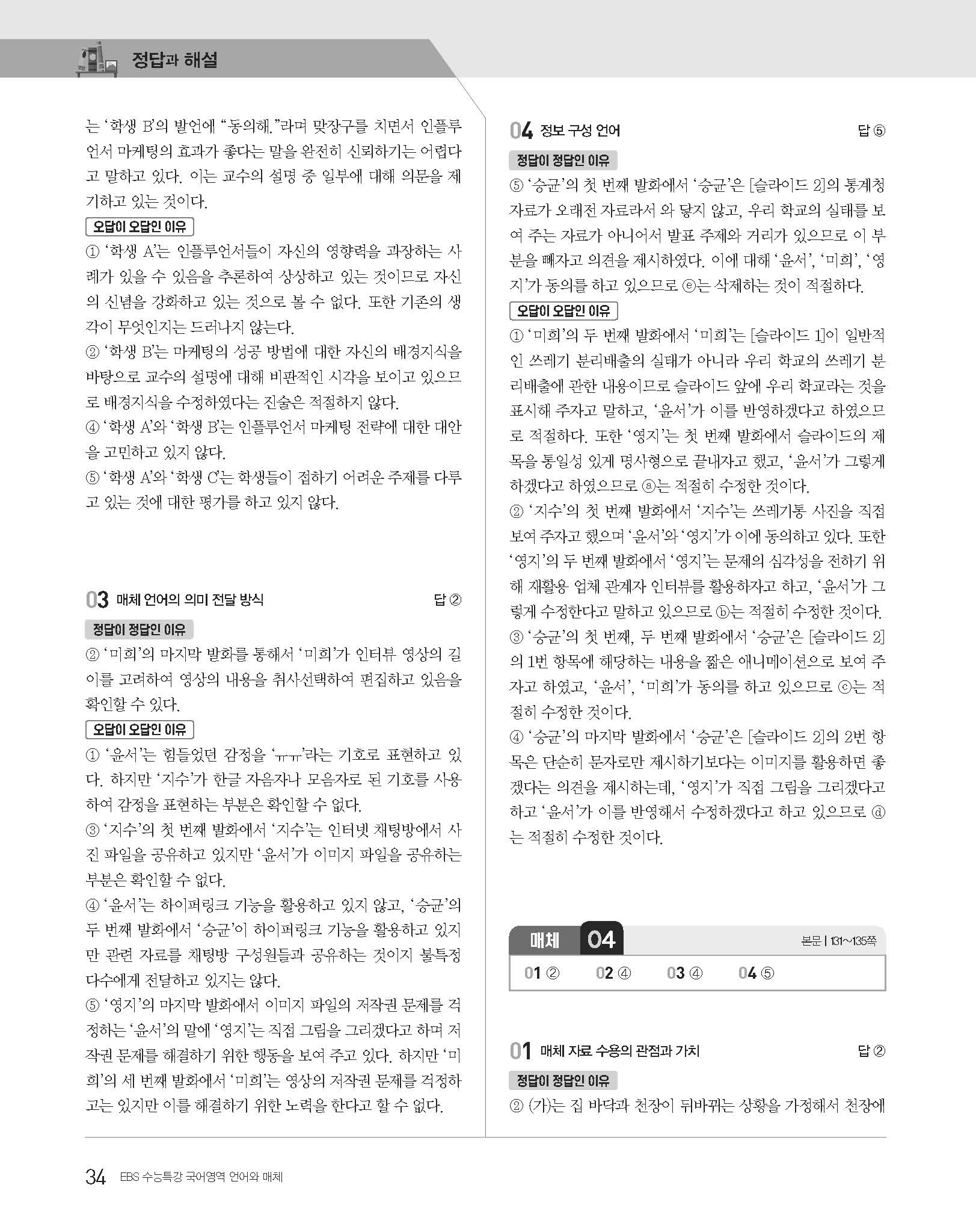 EBS 2022 수능특강 언어와 매체 사진답지 빠른답지 모바일최적화