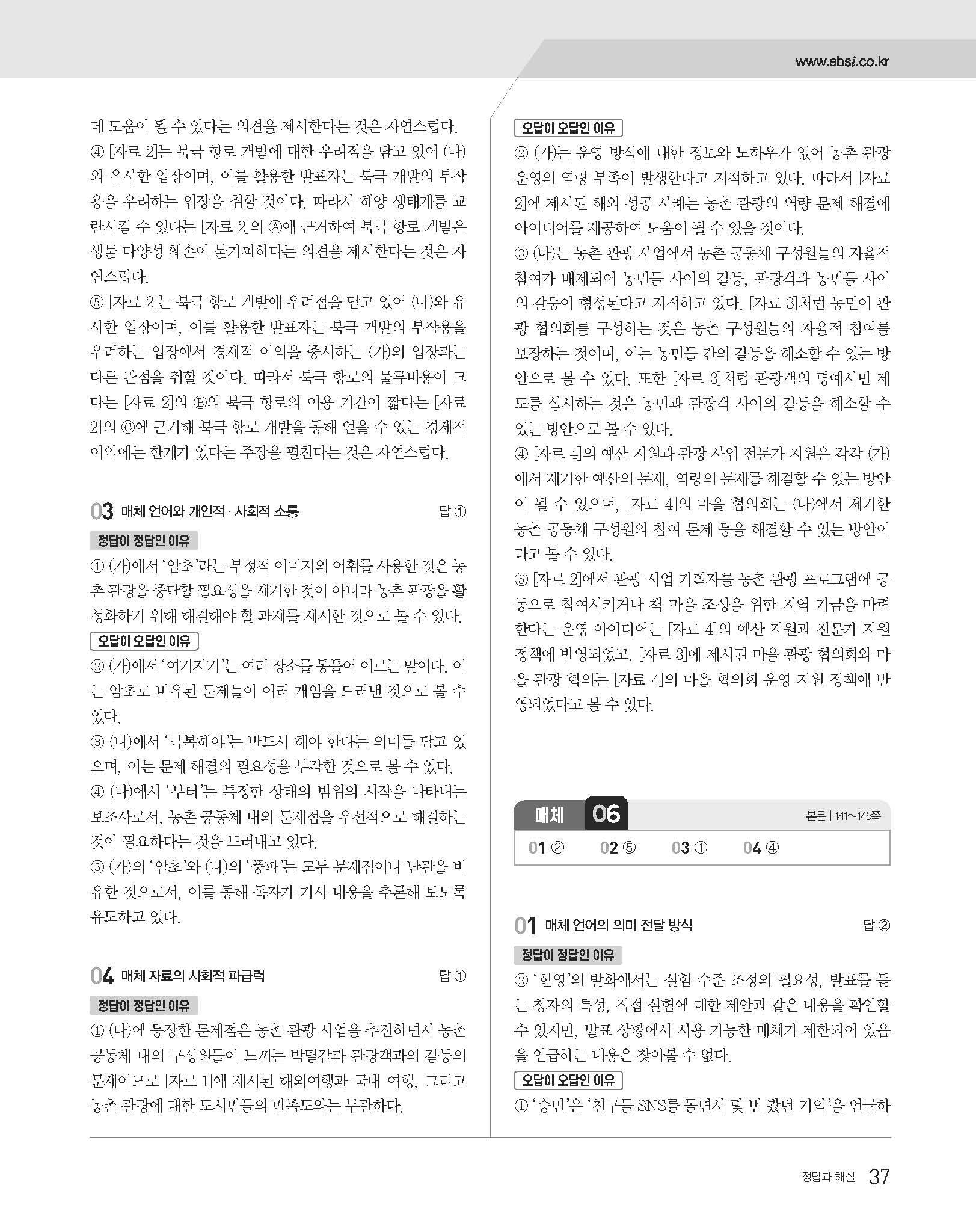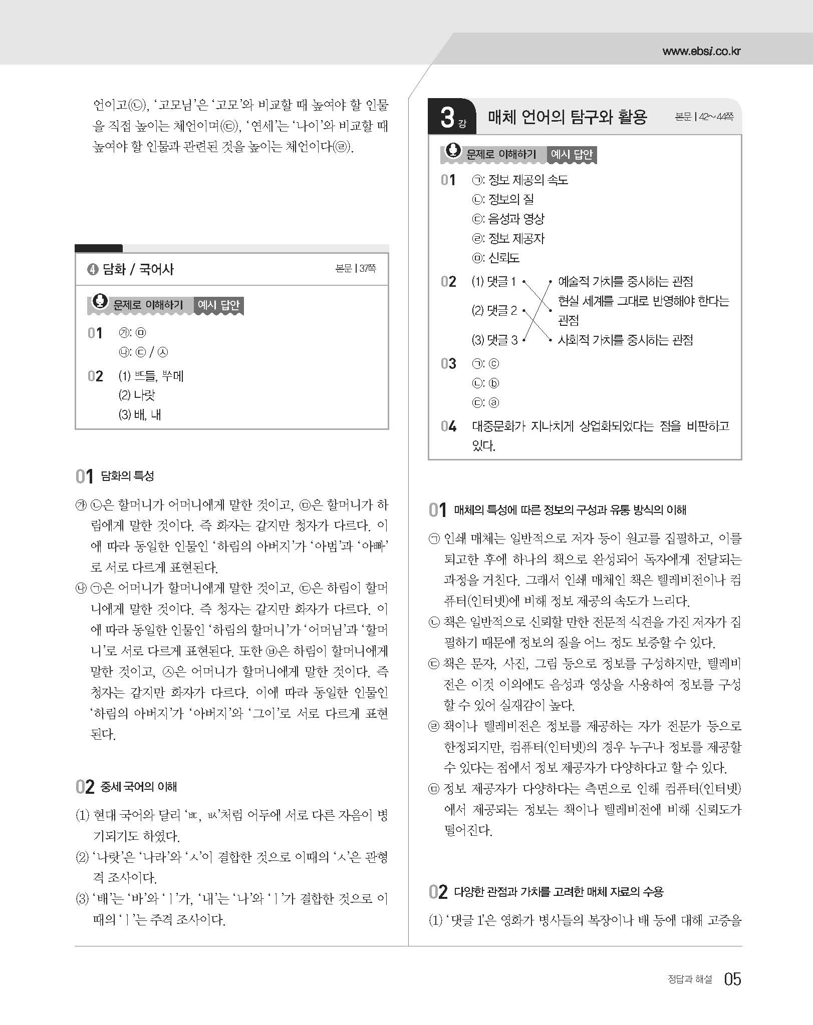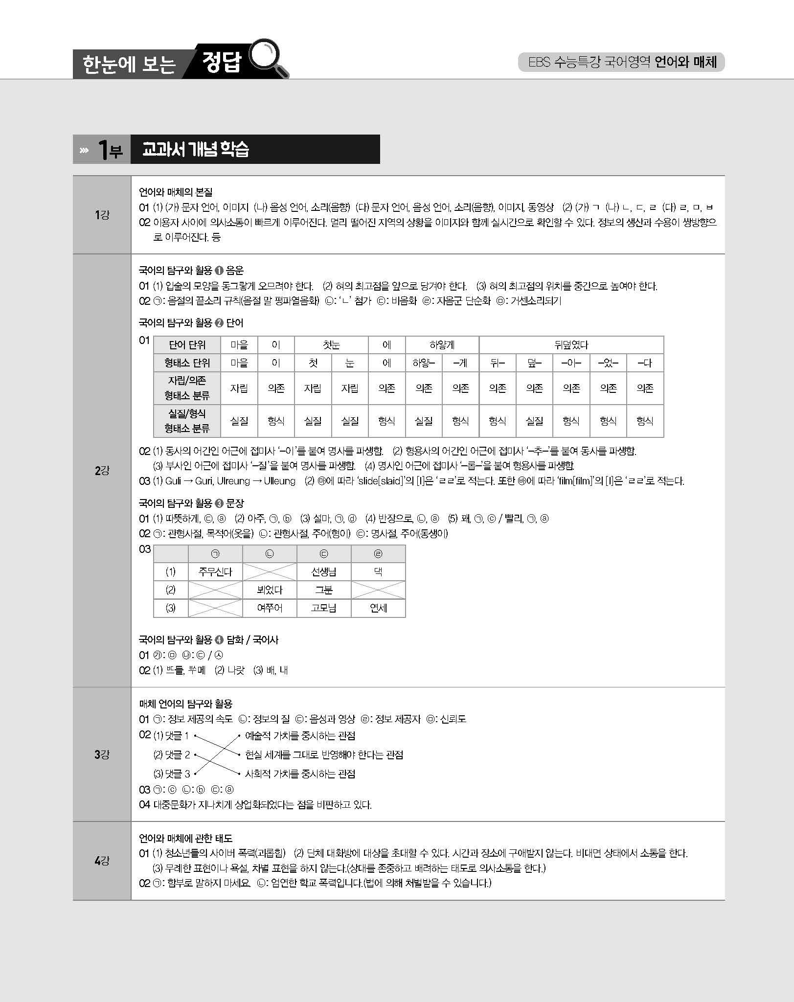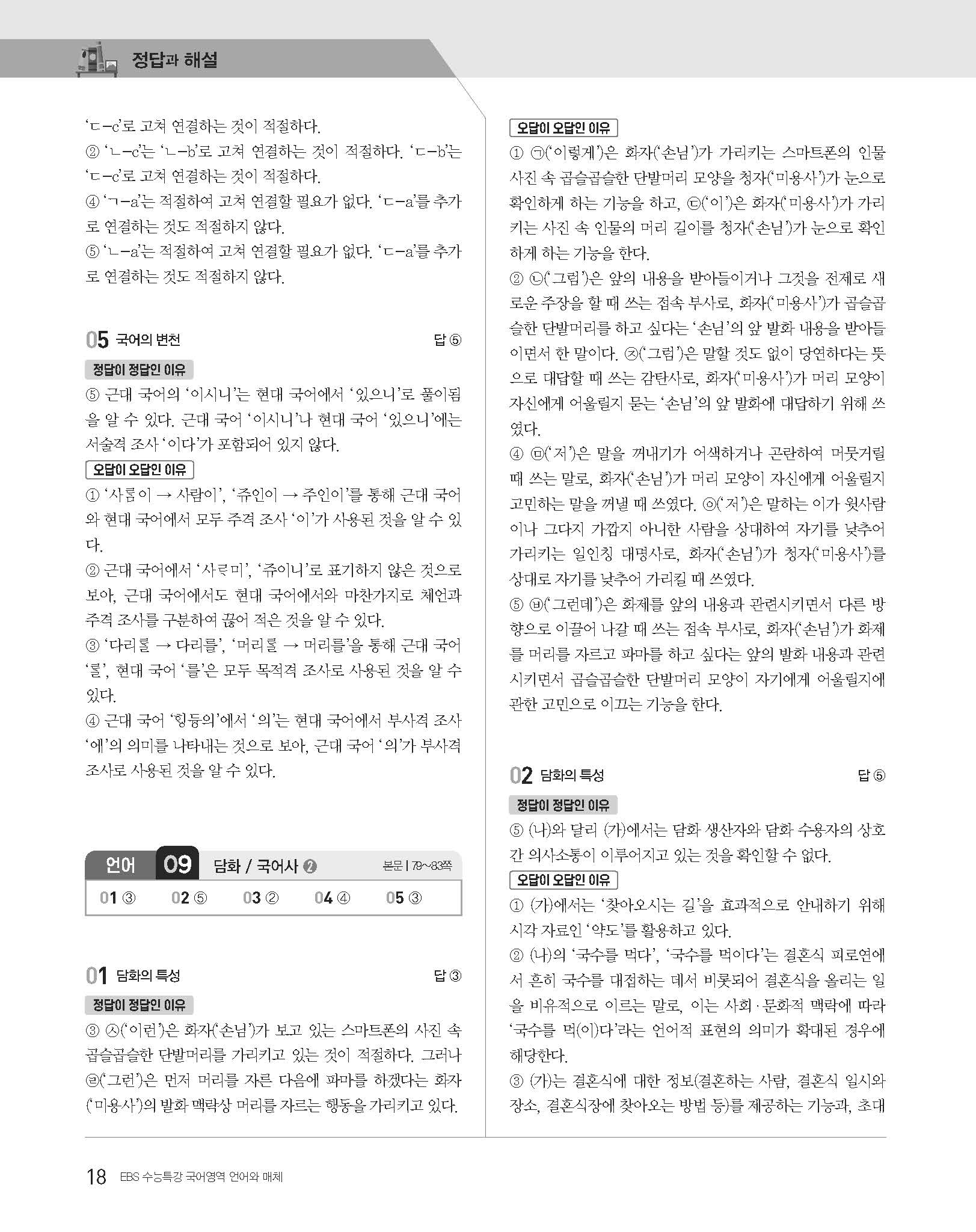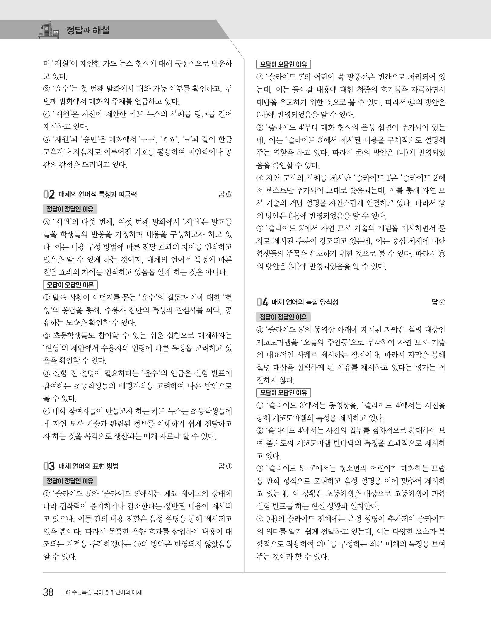EBS 2022 수능특강 언어와 매체 사진답지 빠른답지 모바일최적화