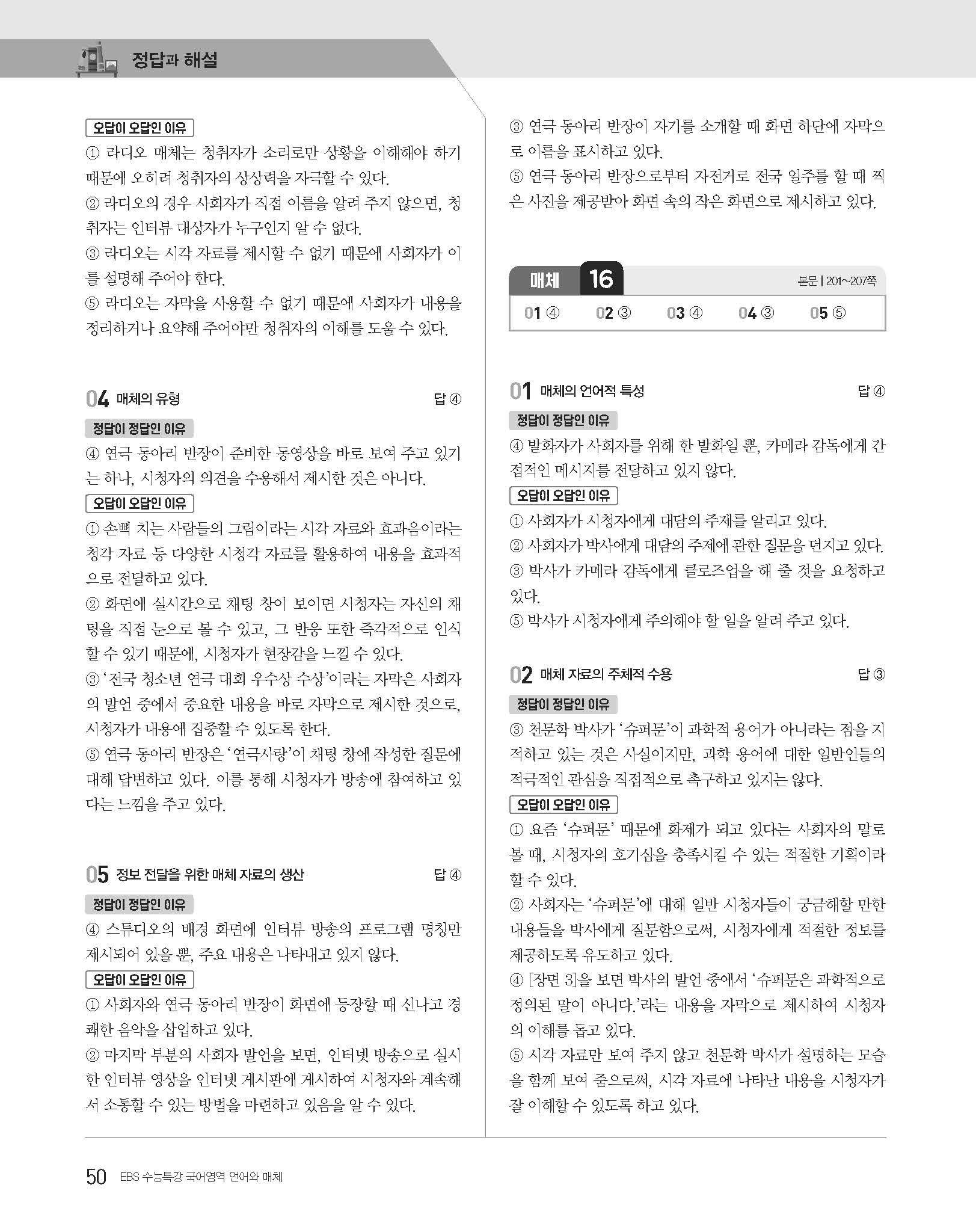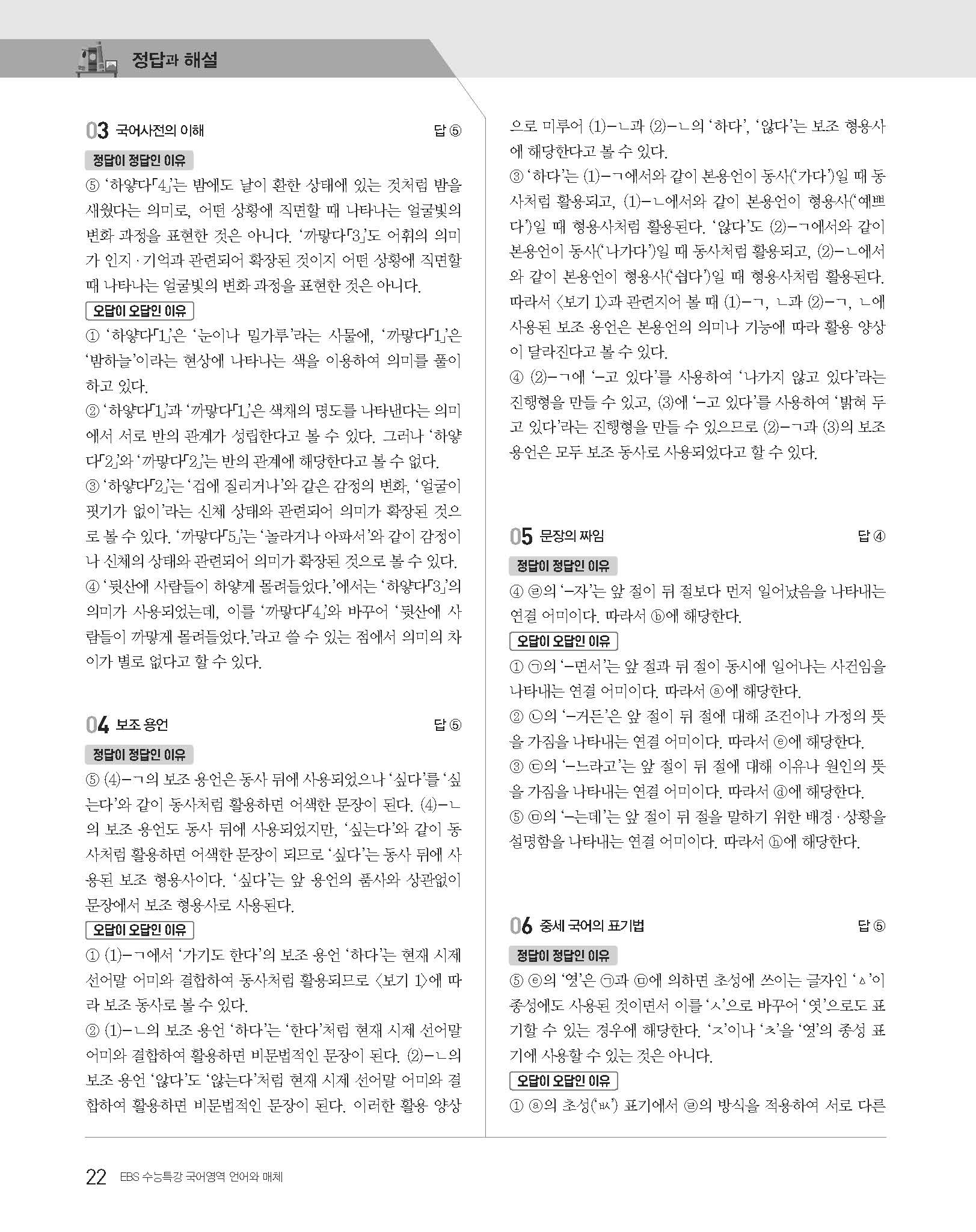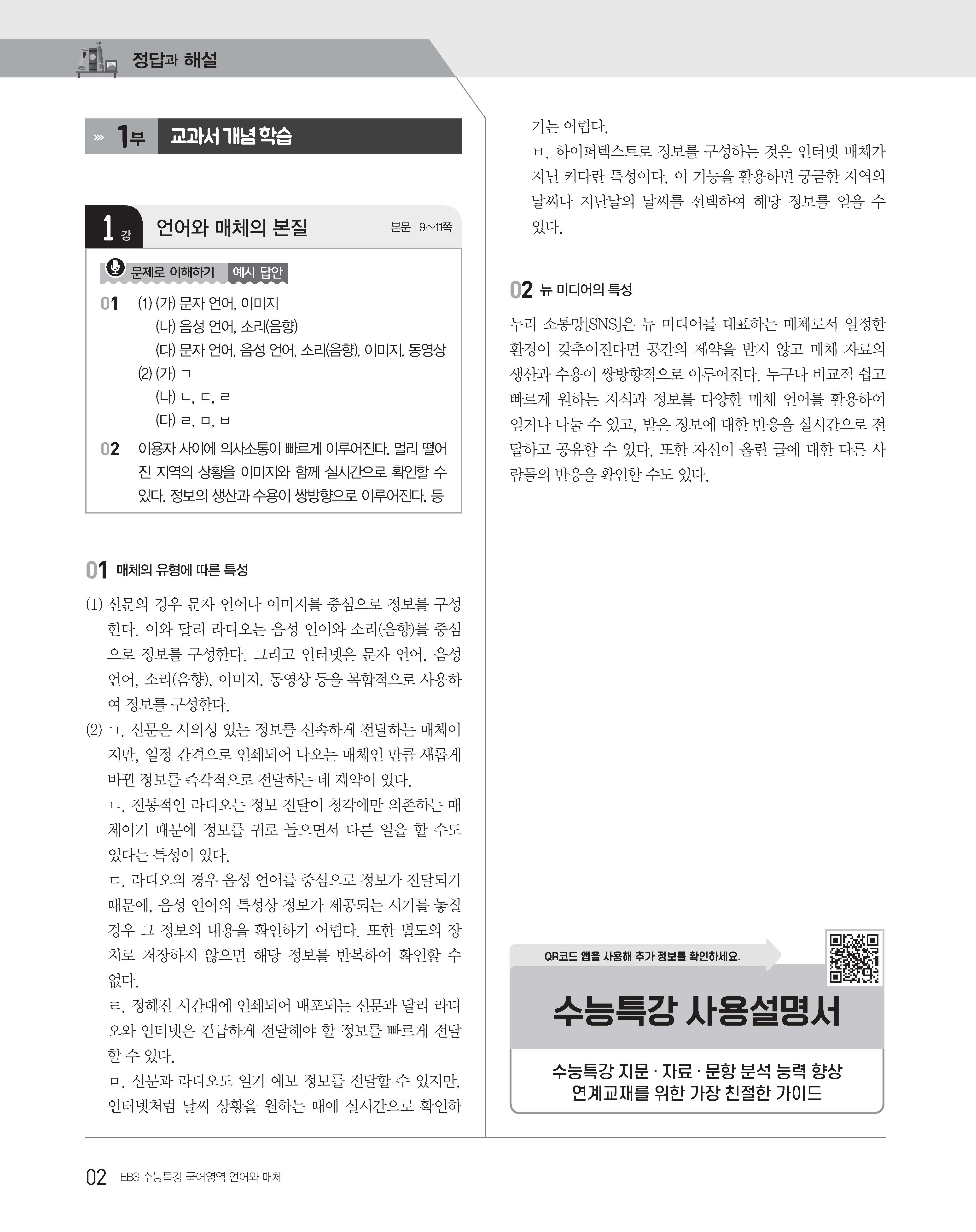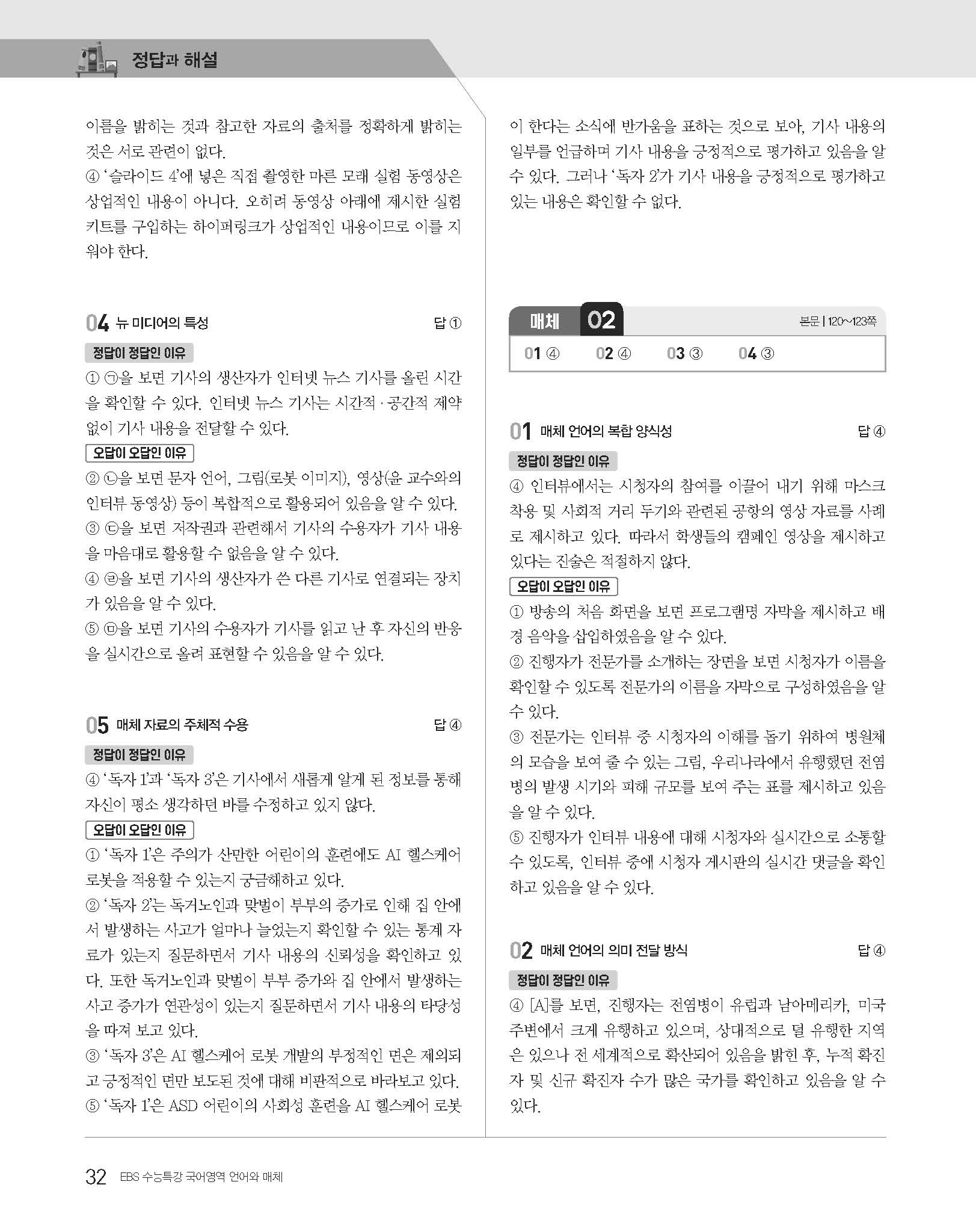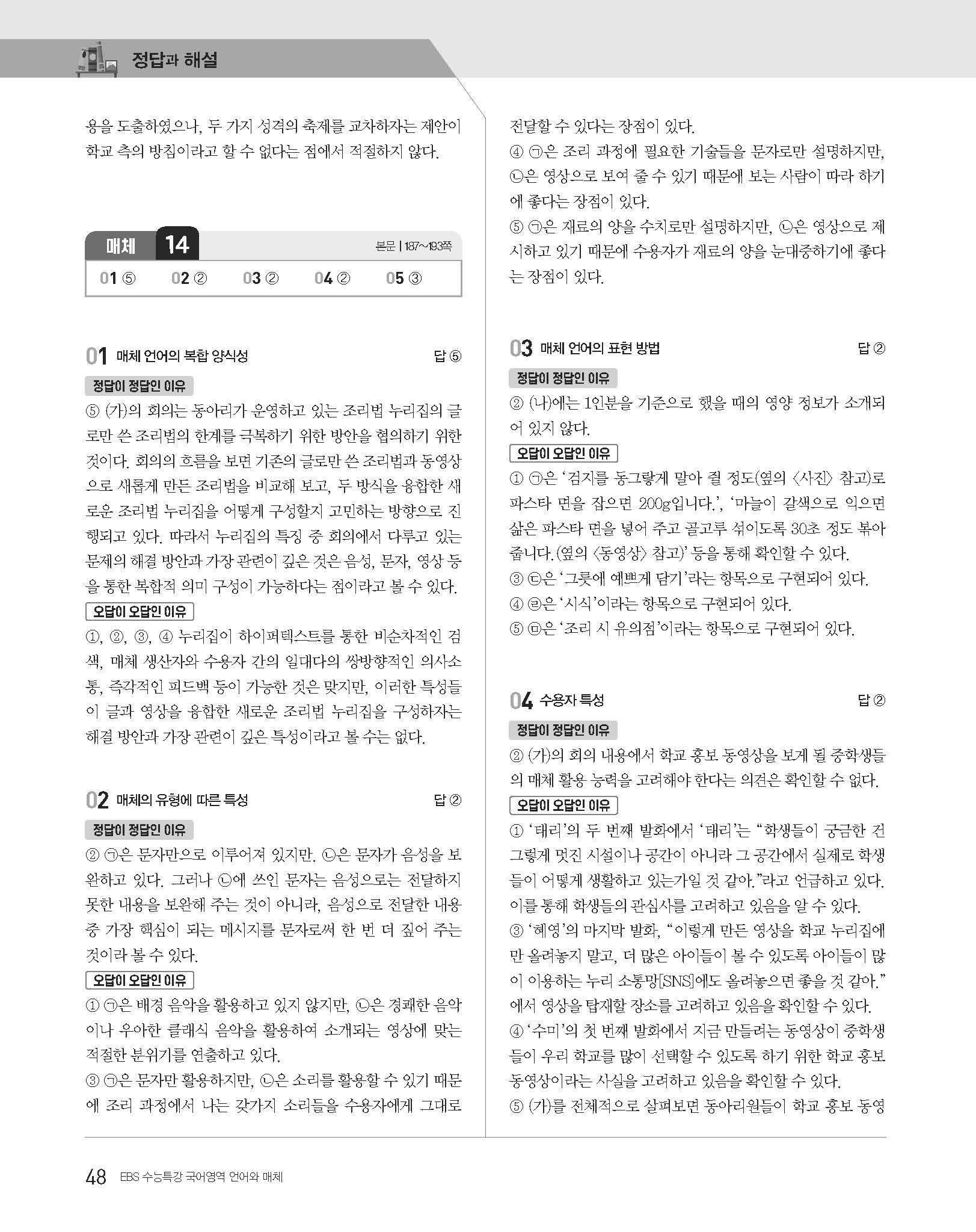 EBS 2022 수능특강 언어와 매체 사진답지 빠른답지 모바일최적화