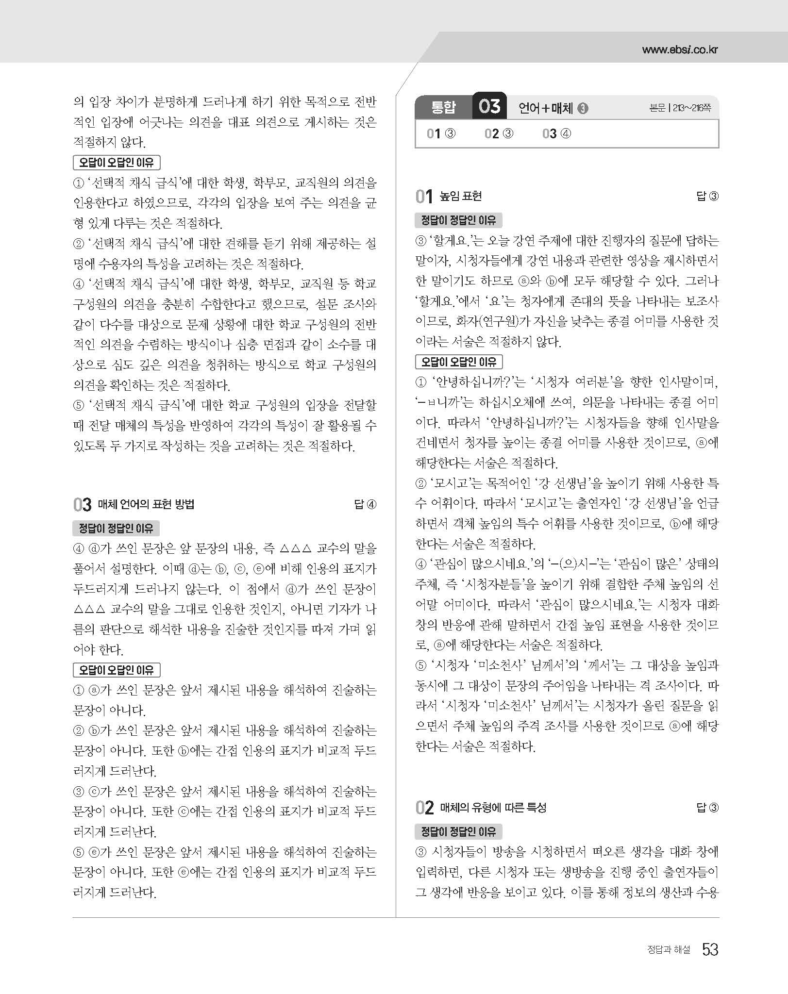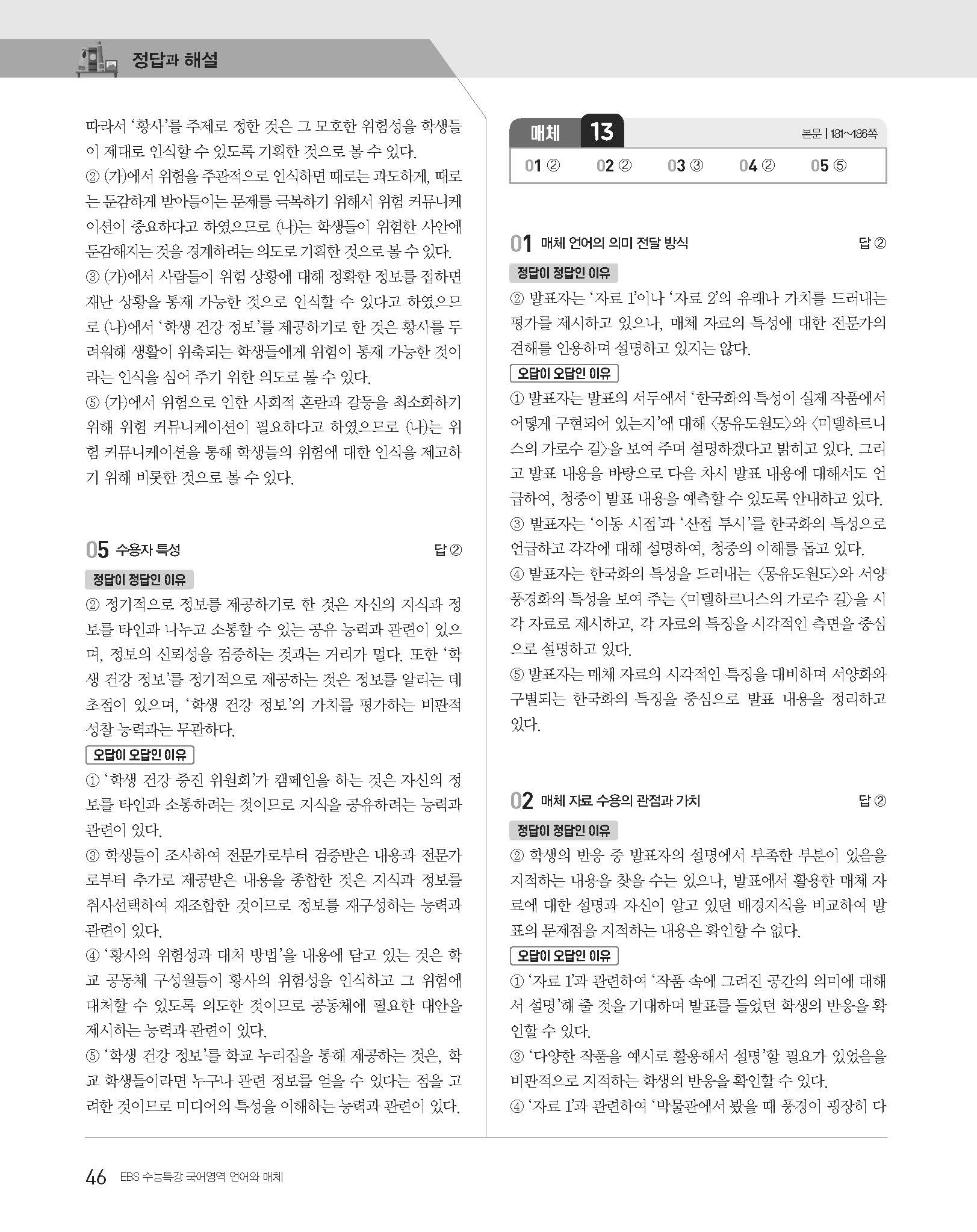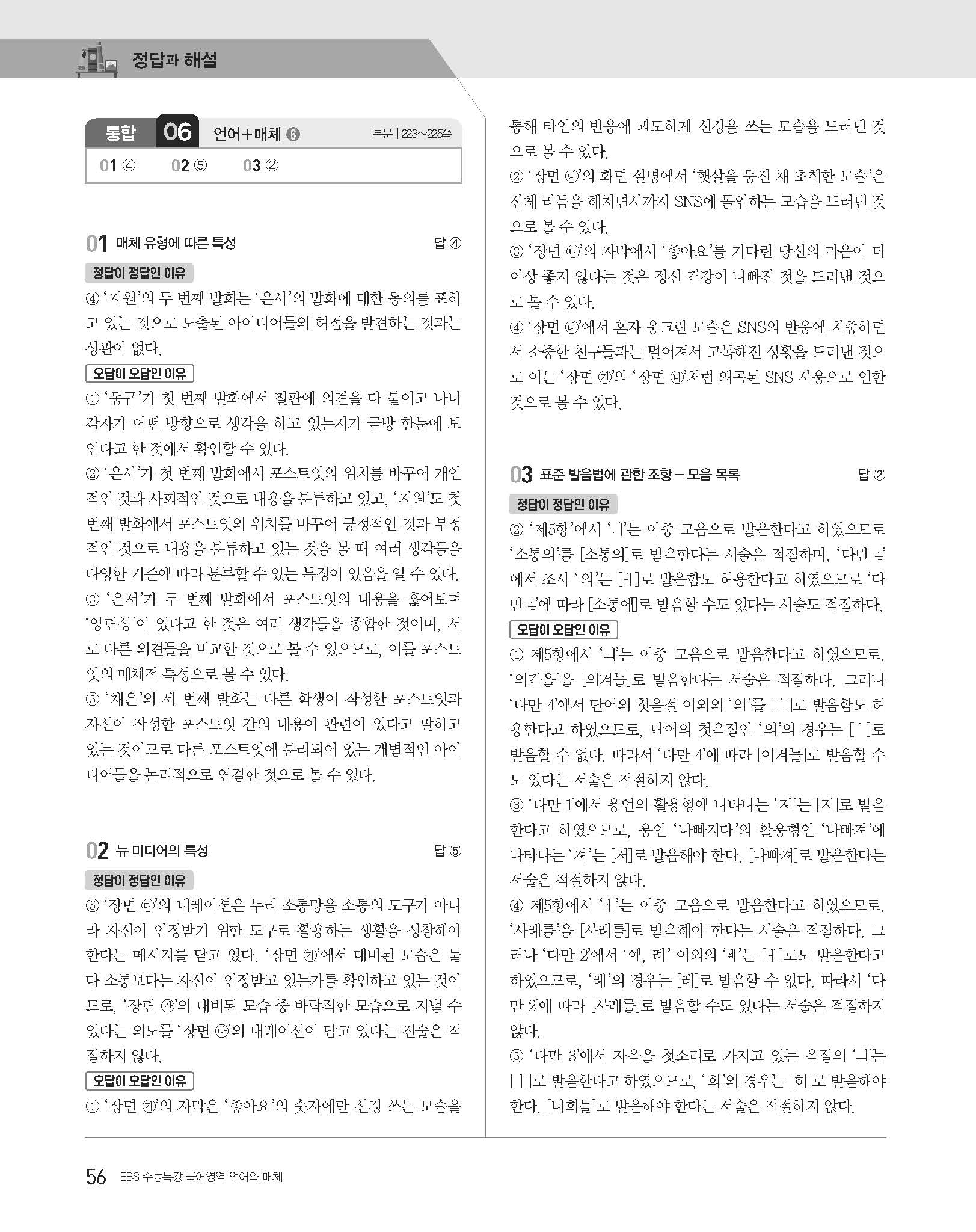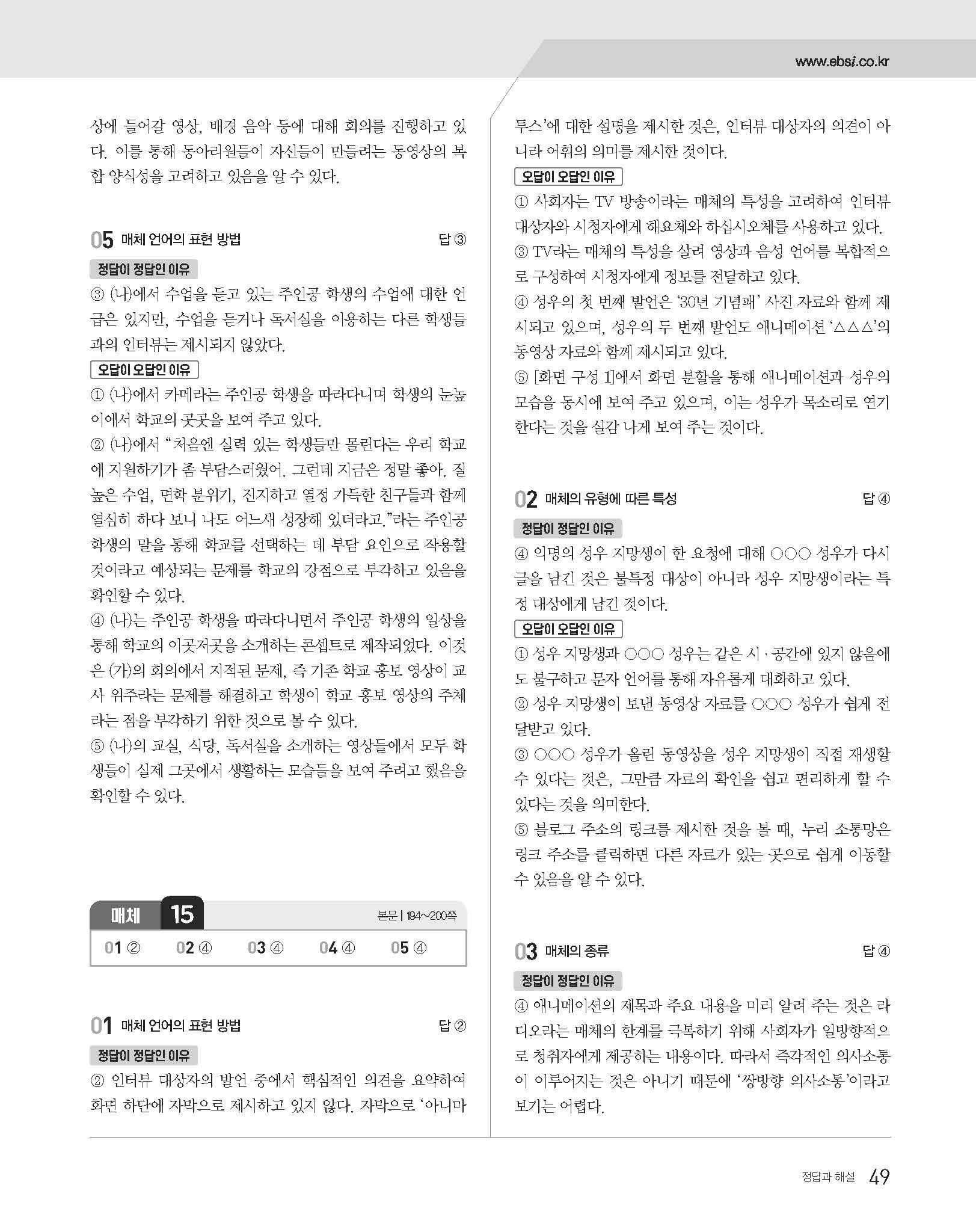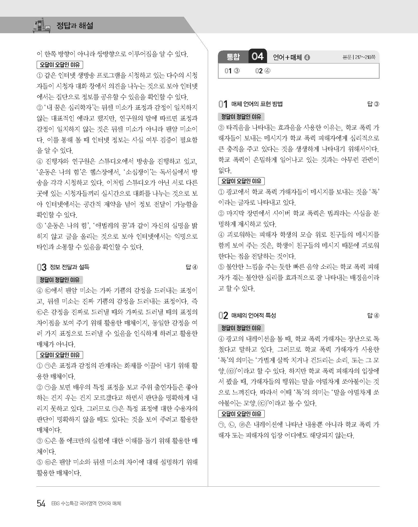 EBS 2022 수능특강 언어와 매체 사진답지 빠른답지 모바일최적화
