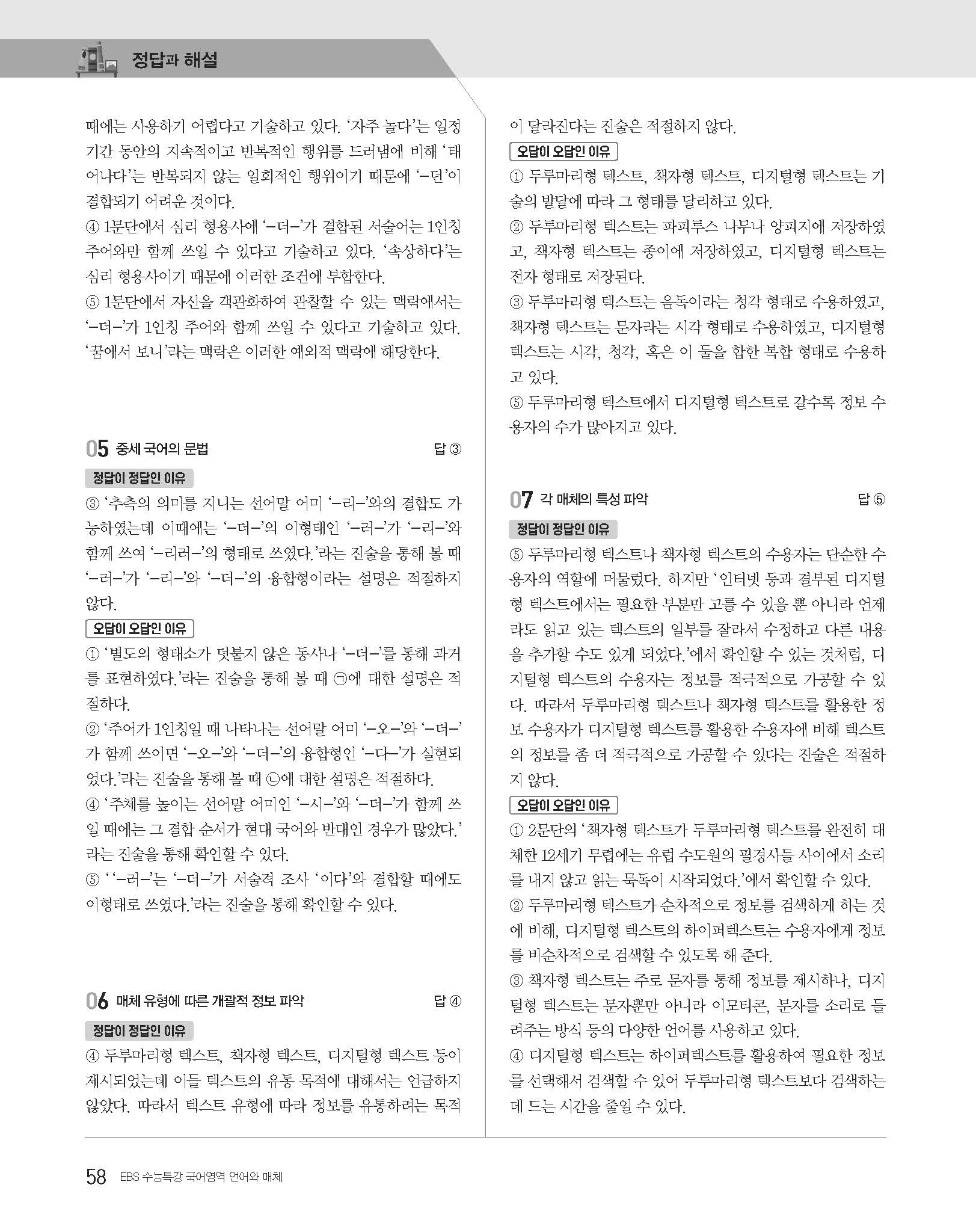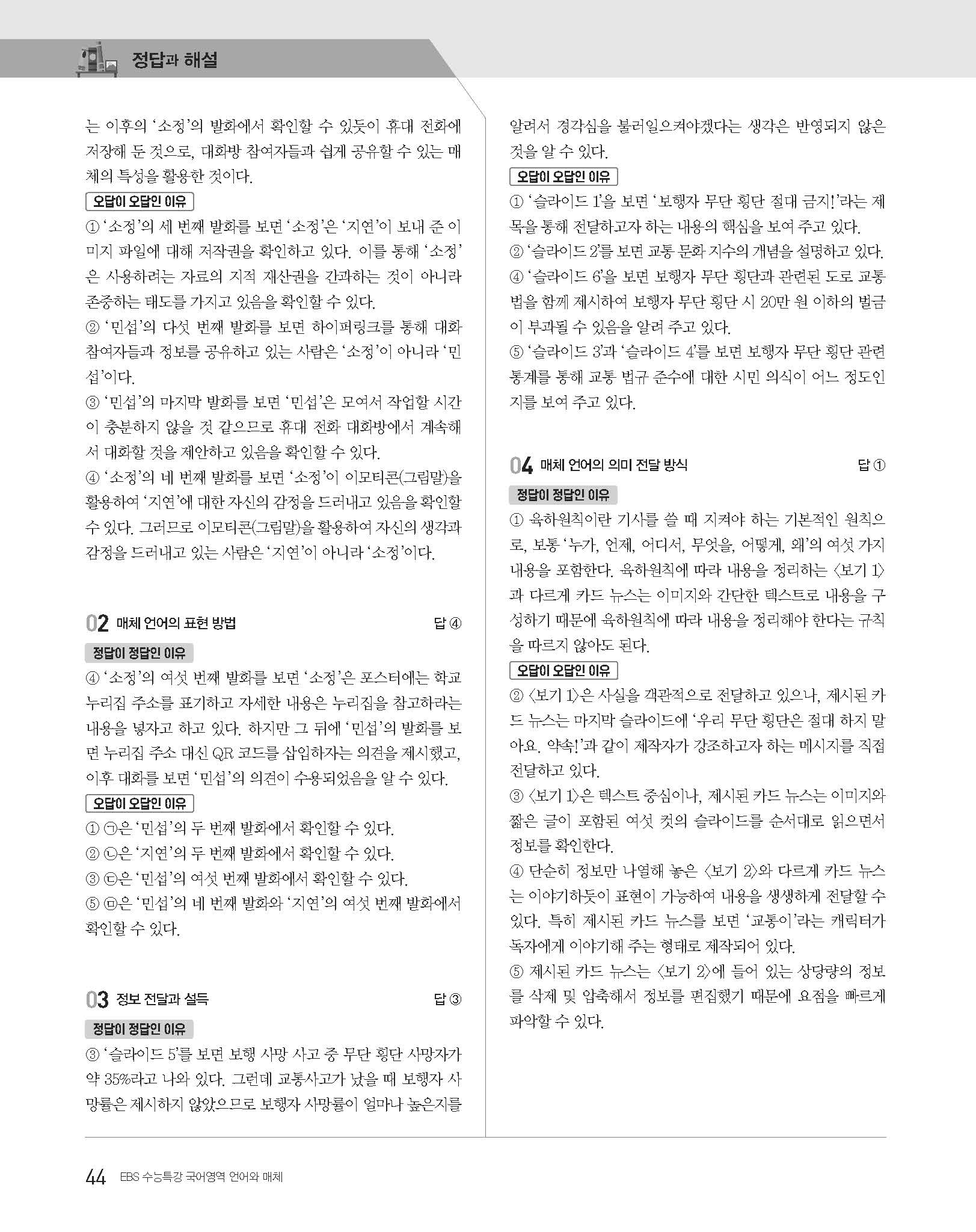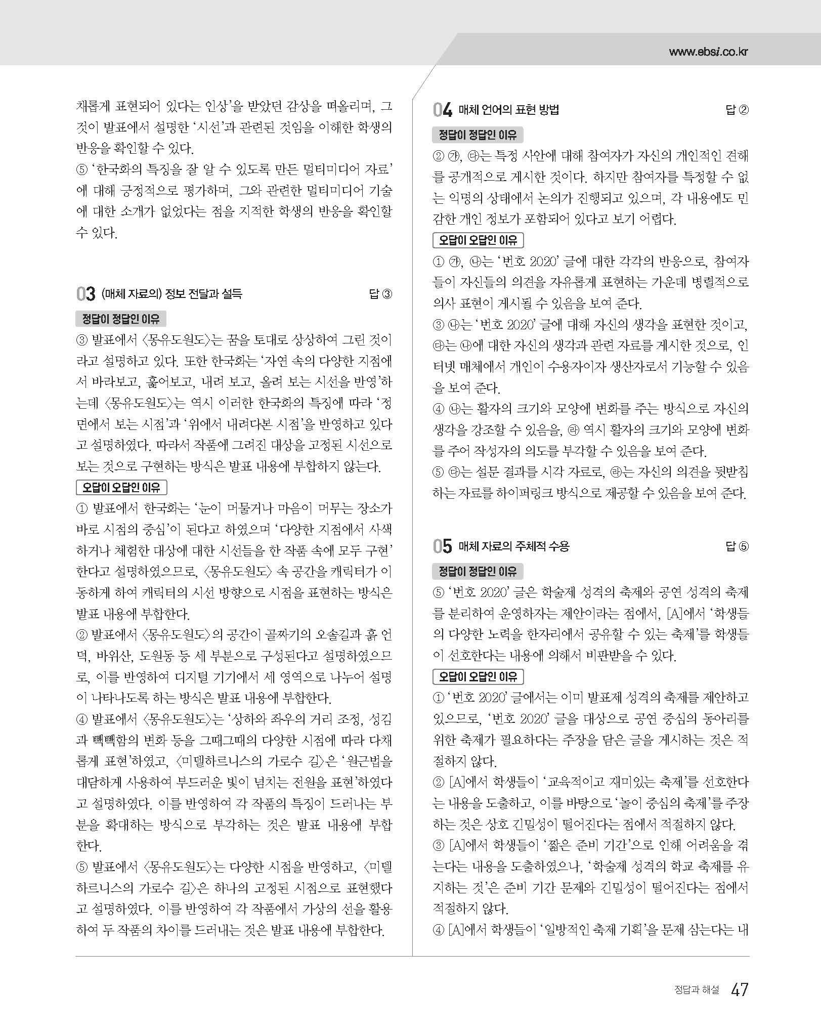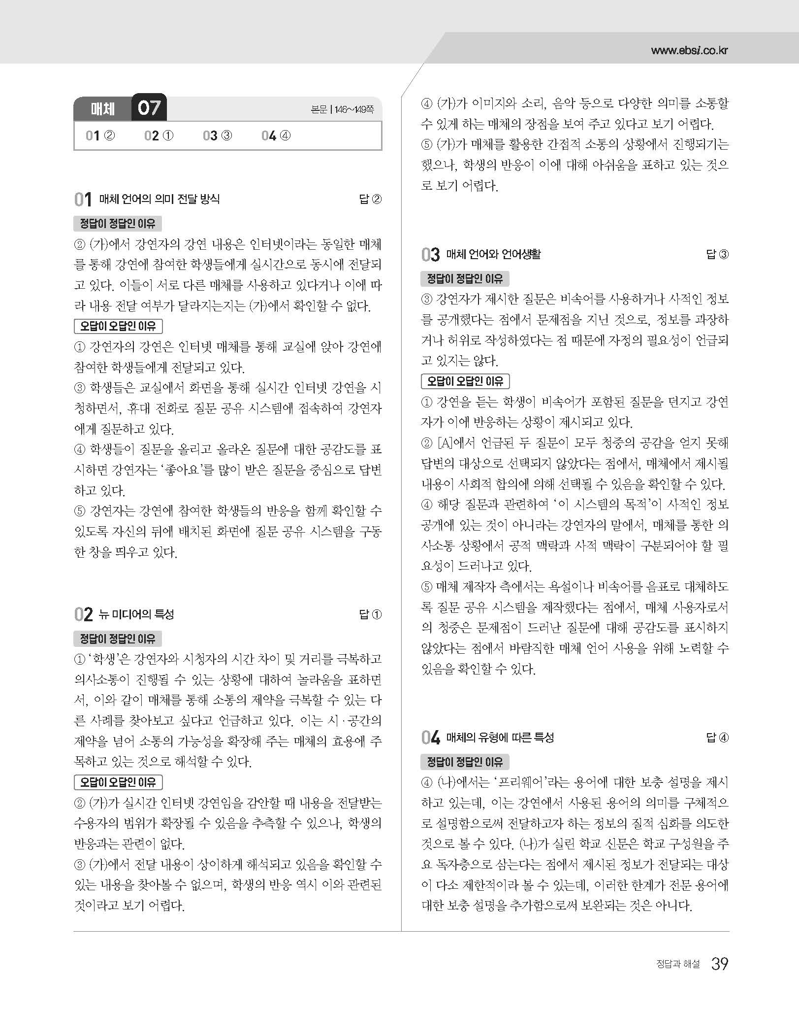 EBS 2022 수능특강 언어와 매체 사진답지 빠른답지 모바일최적화