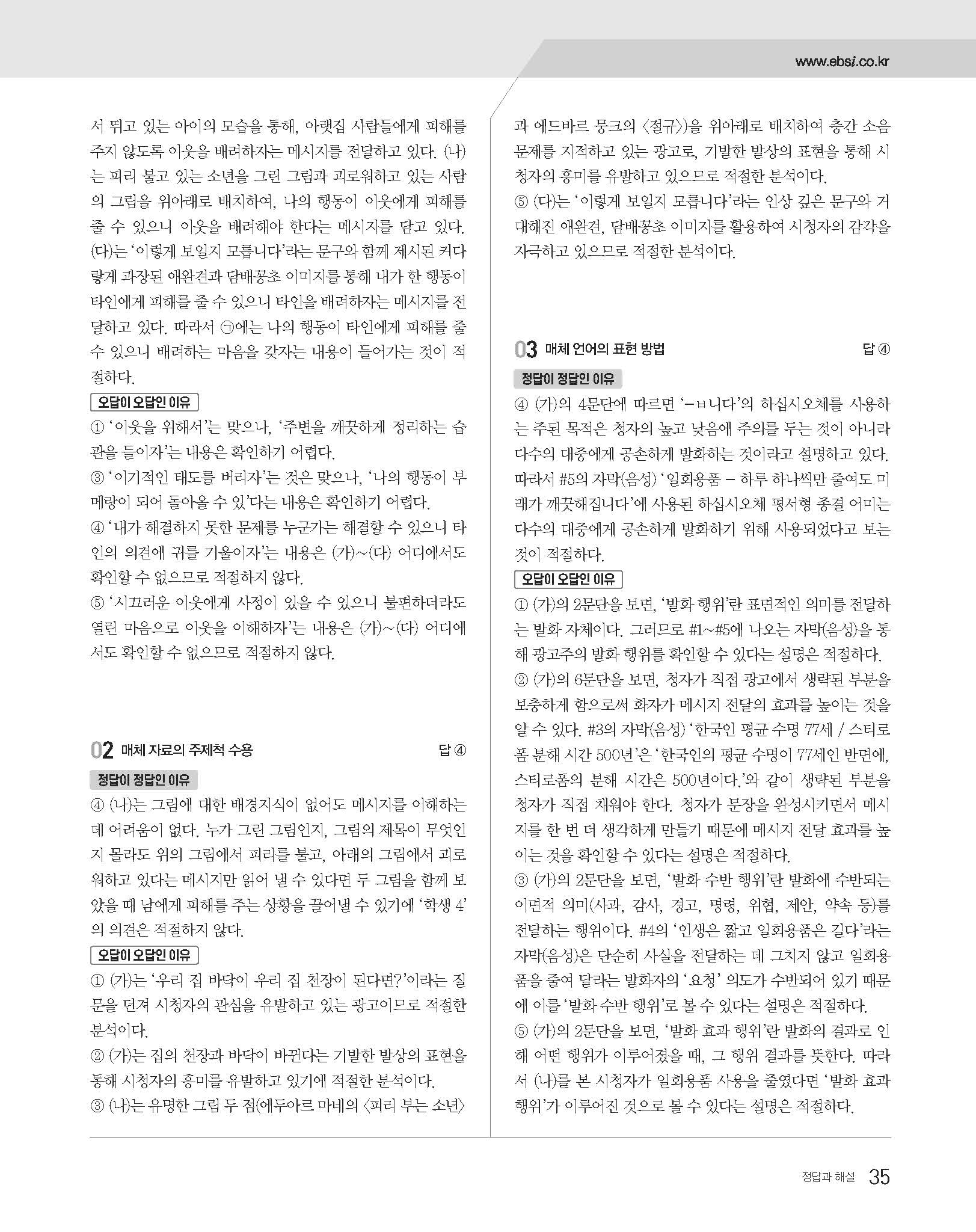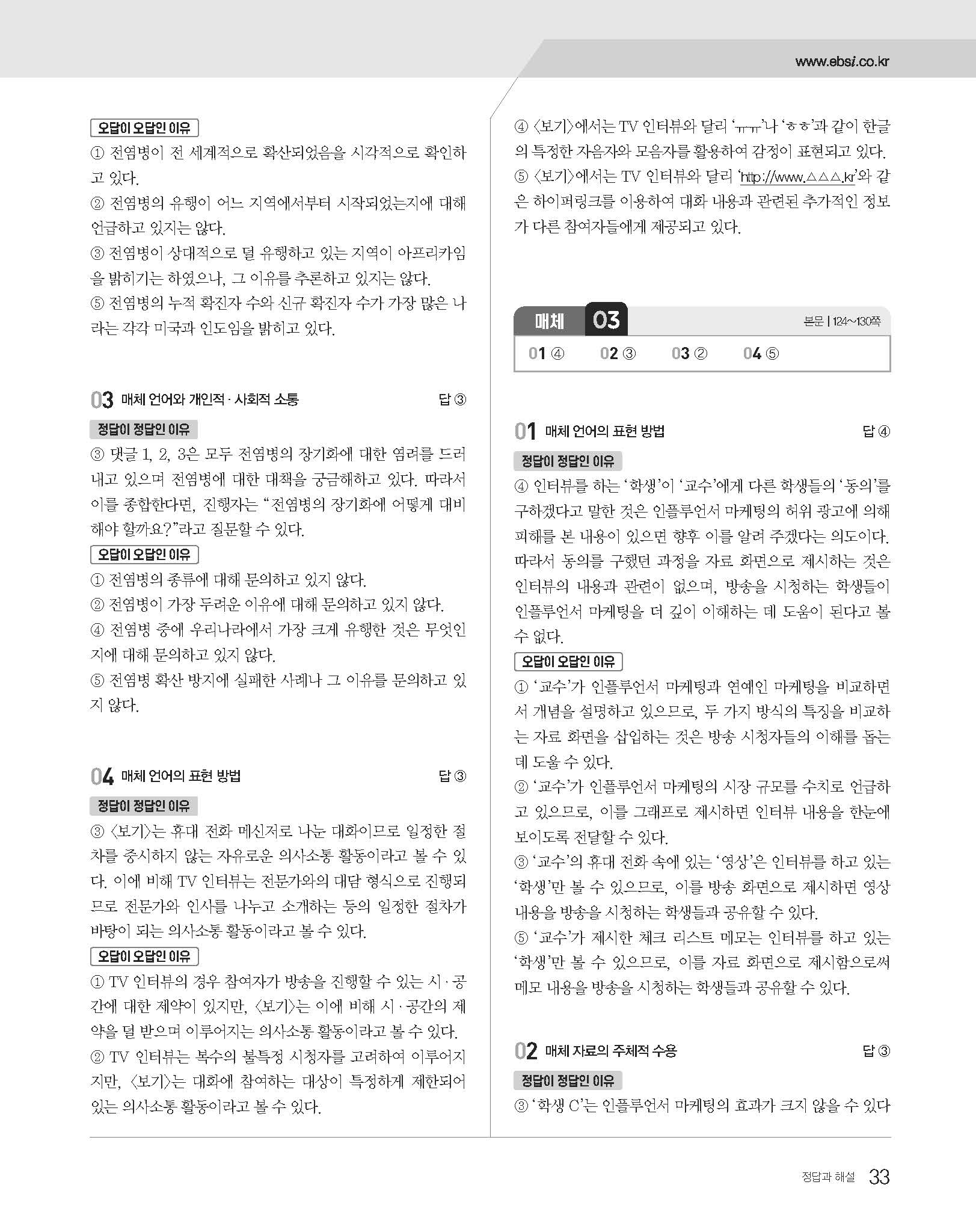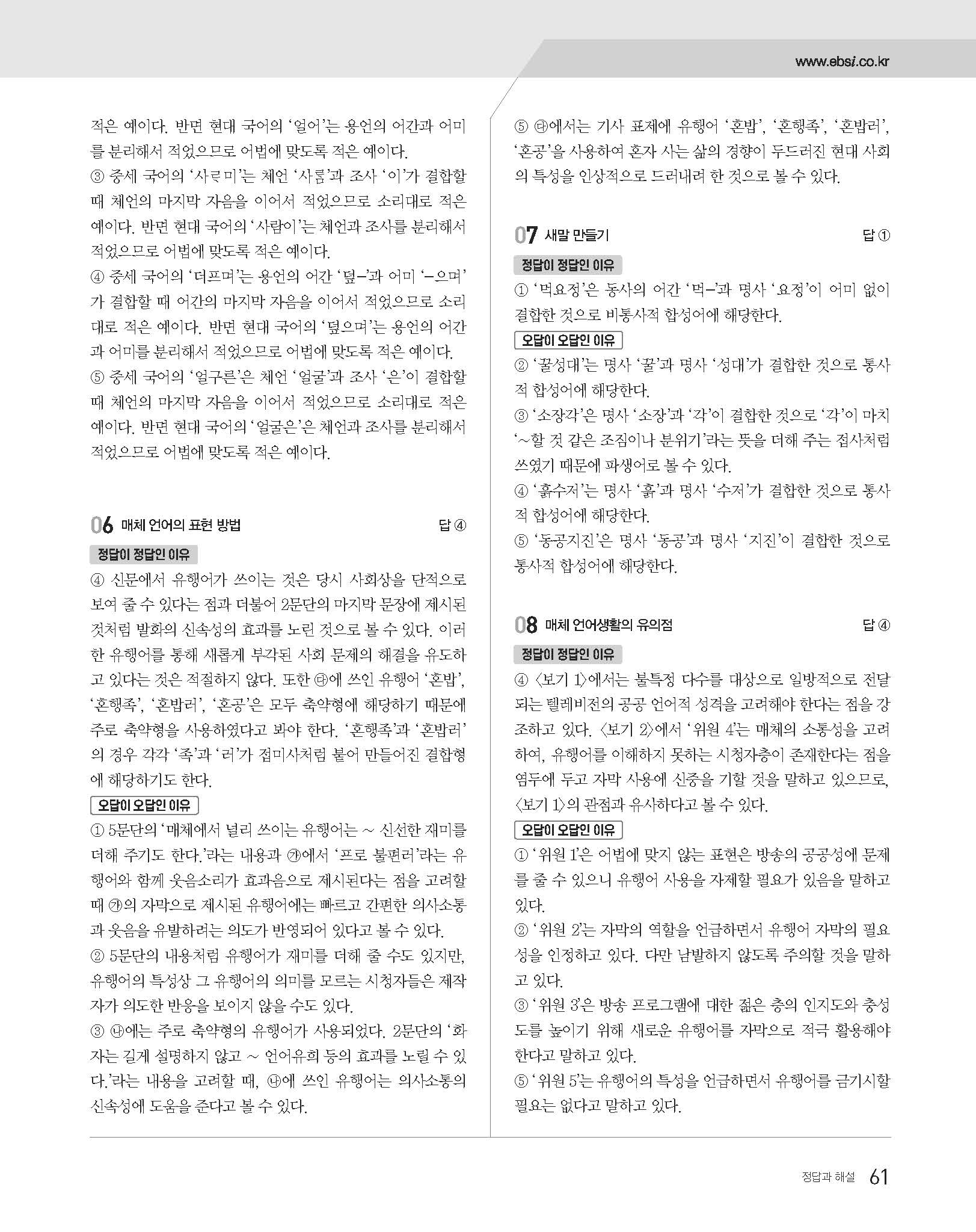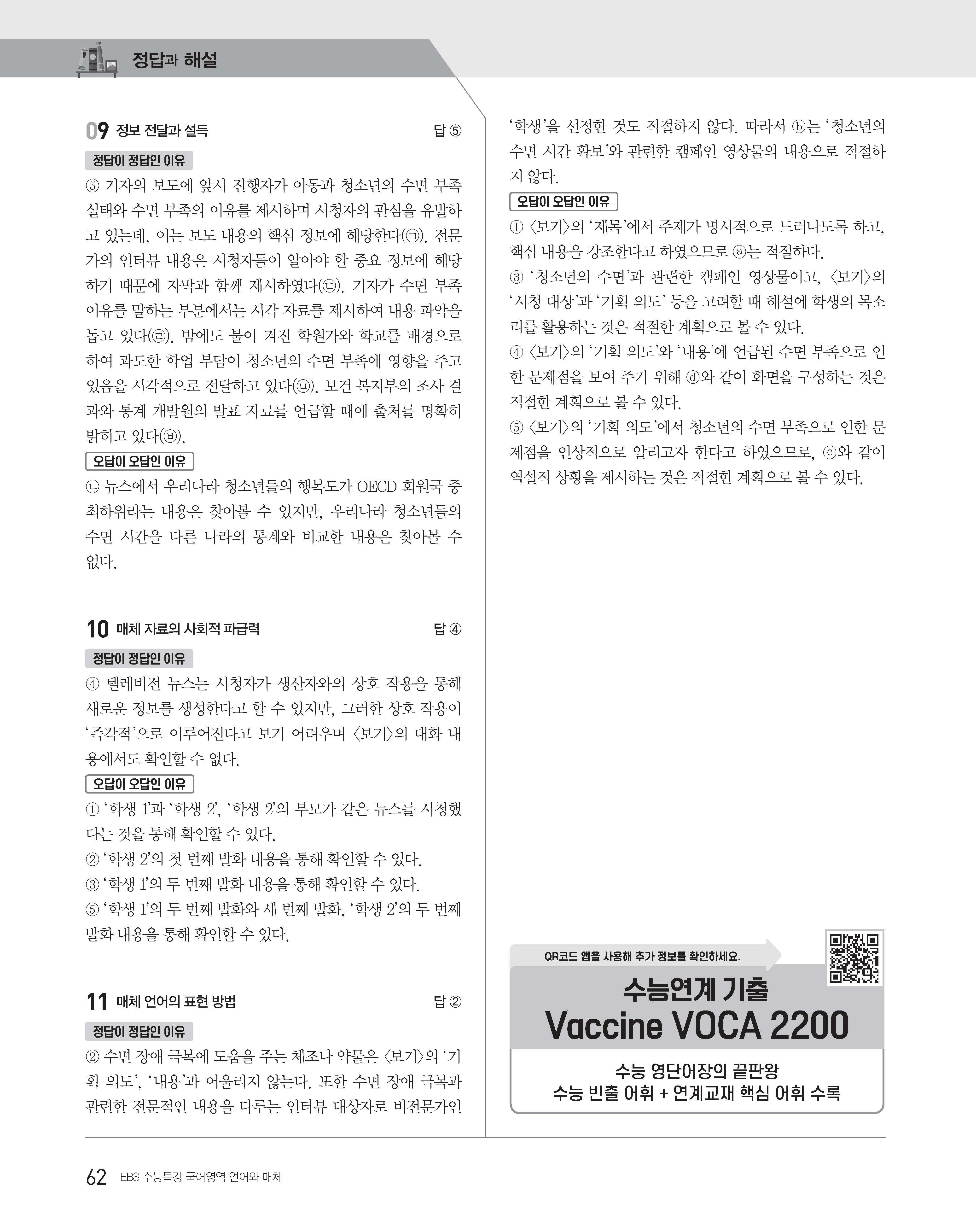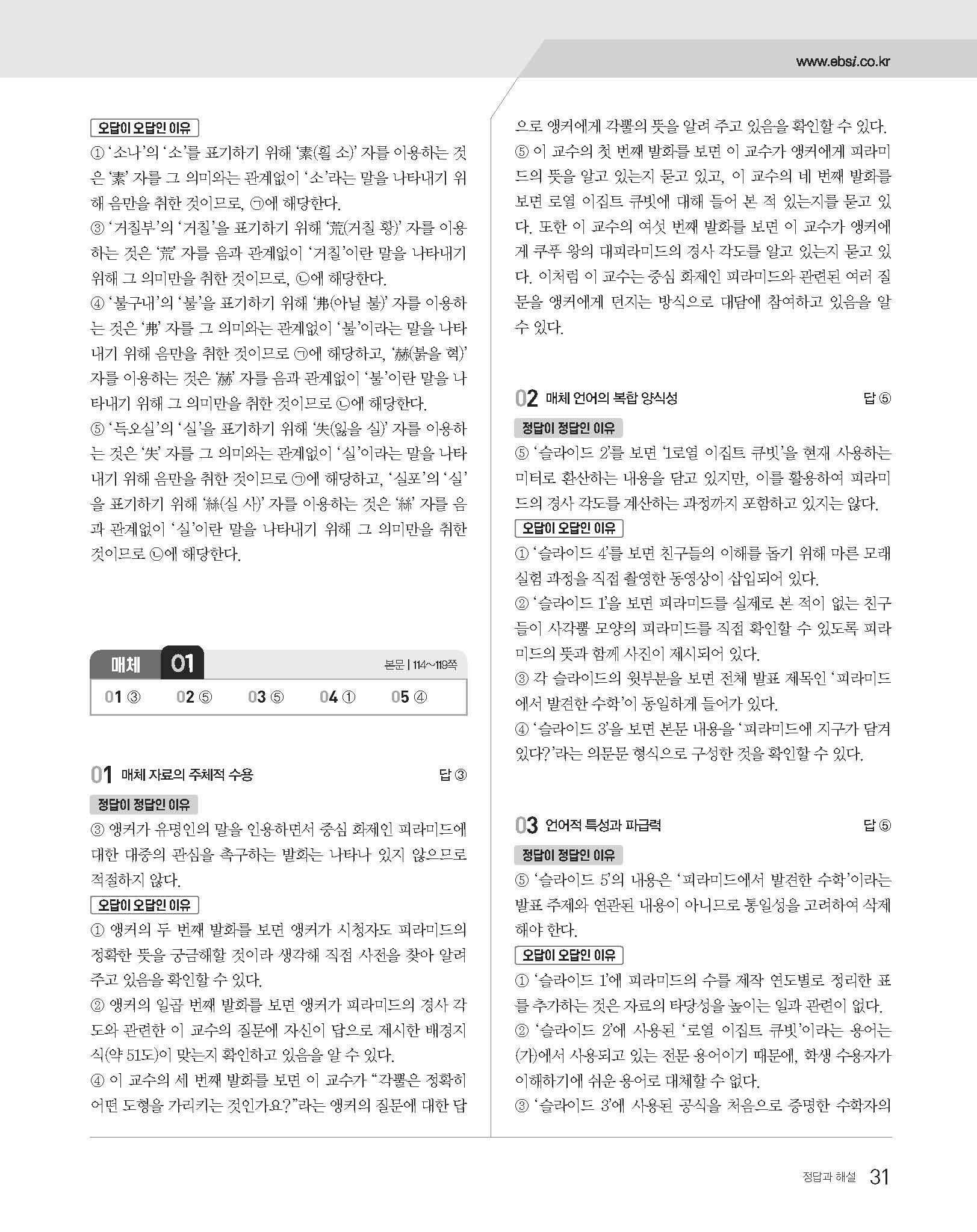 EBS 2022 수능특강 언어와 매체 사진답지 빠른답지 모바일최적화