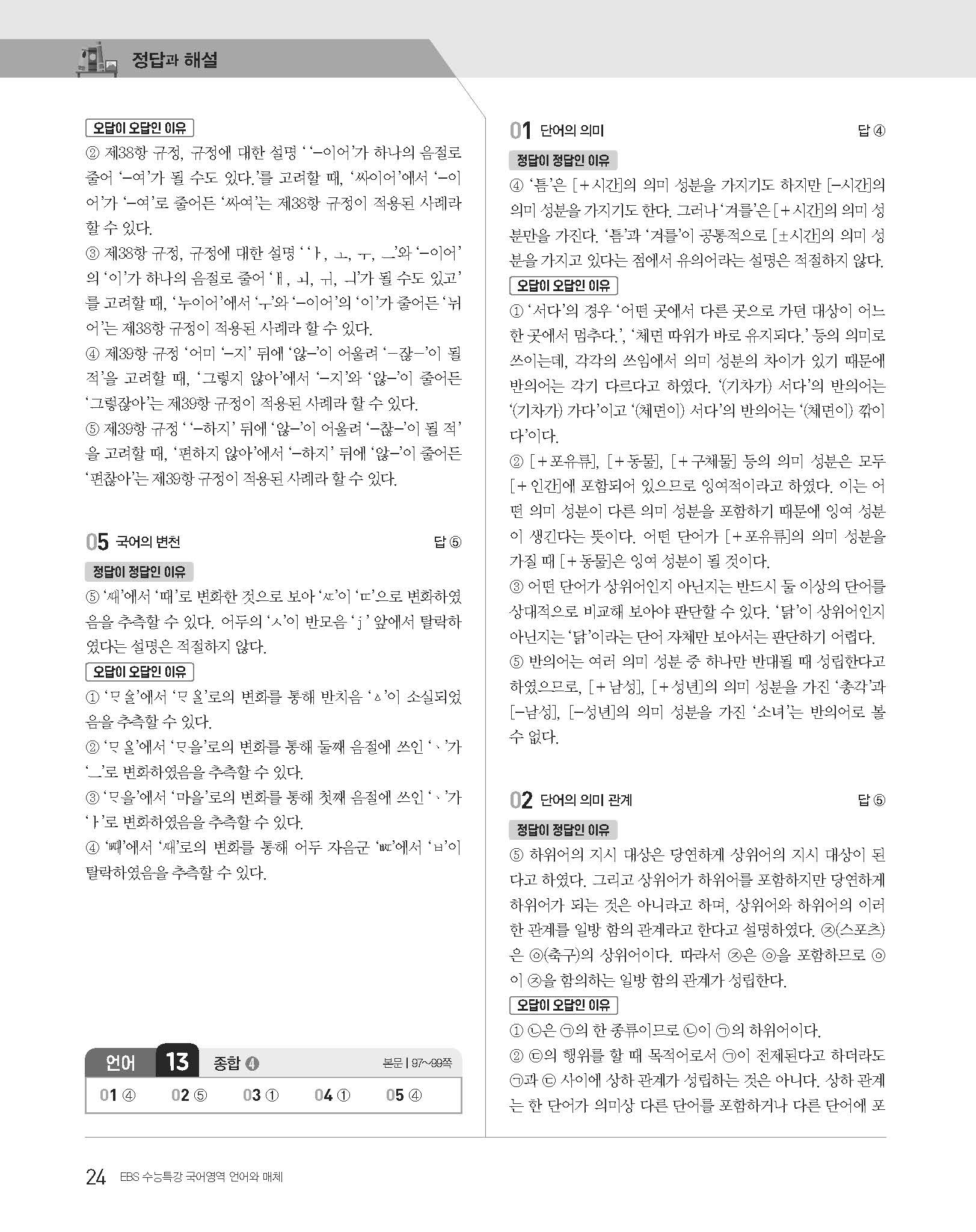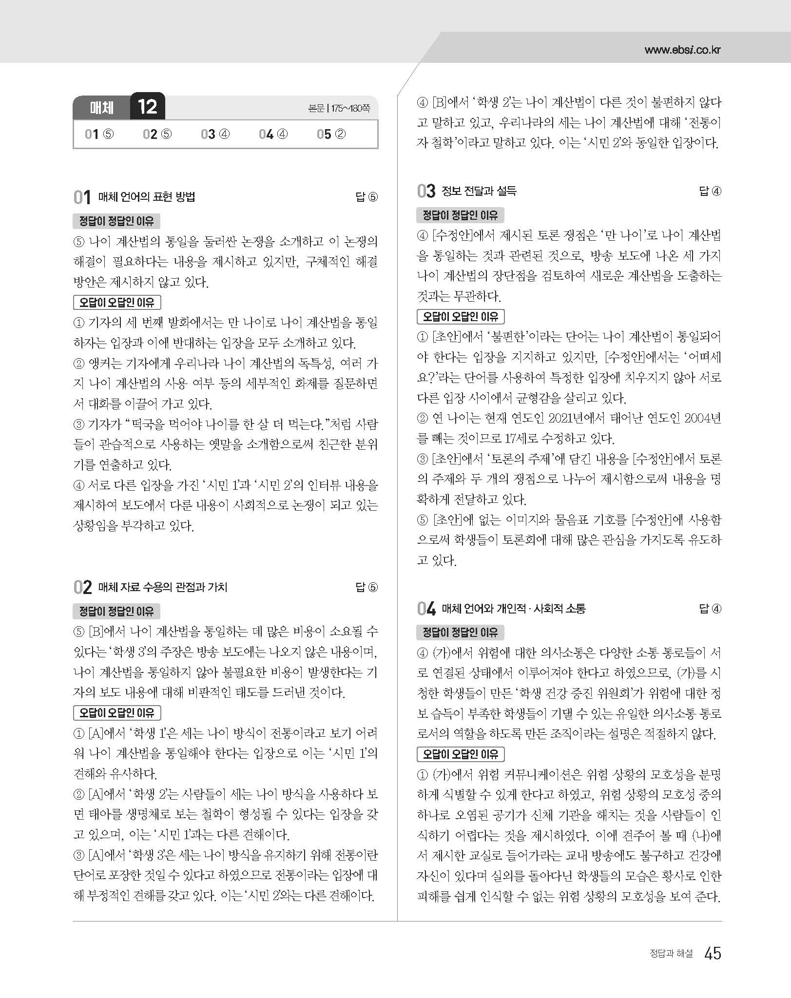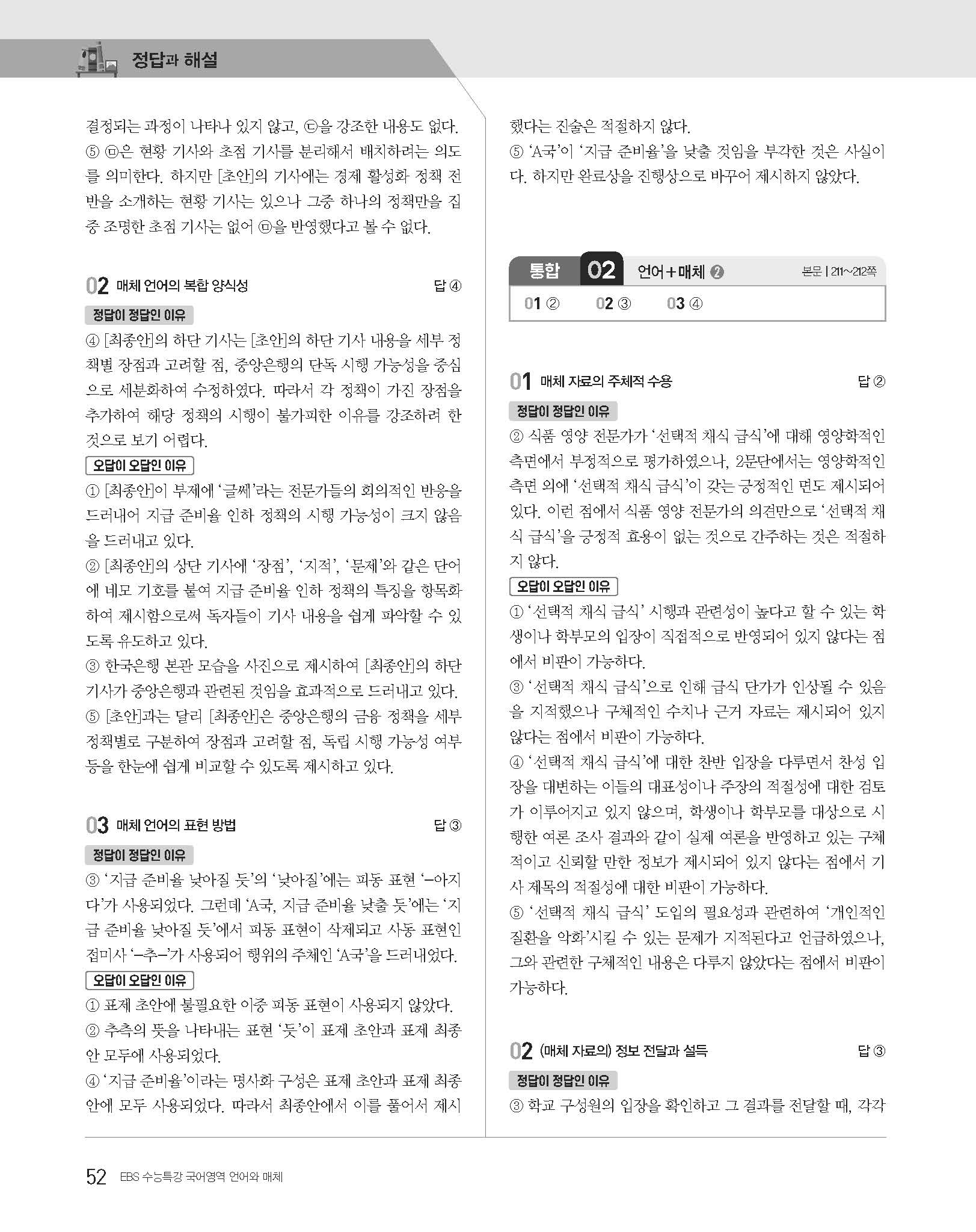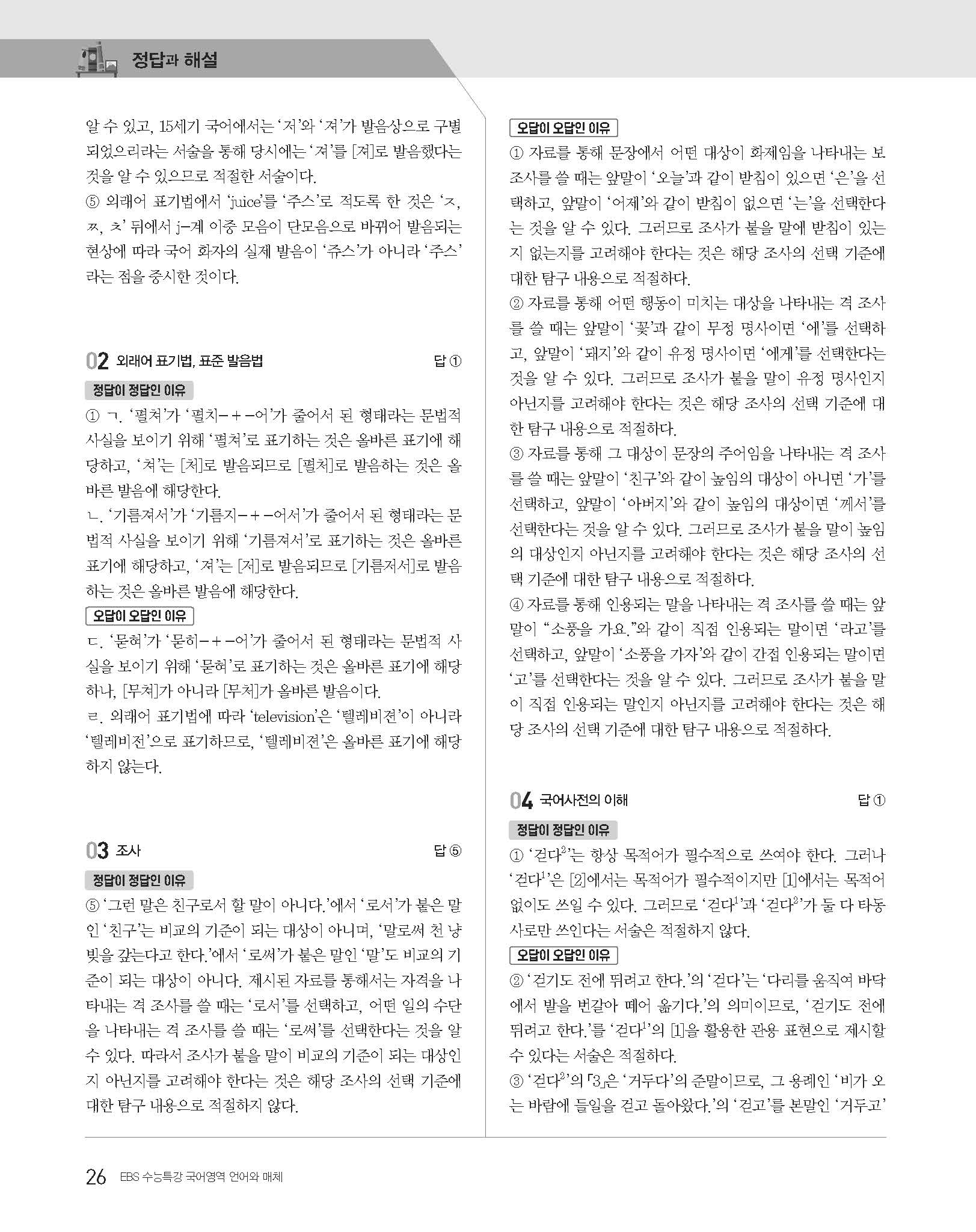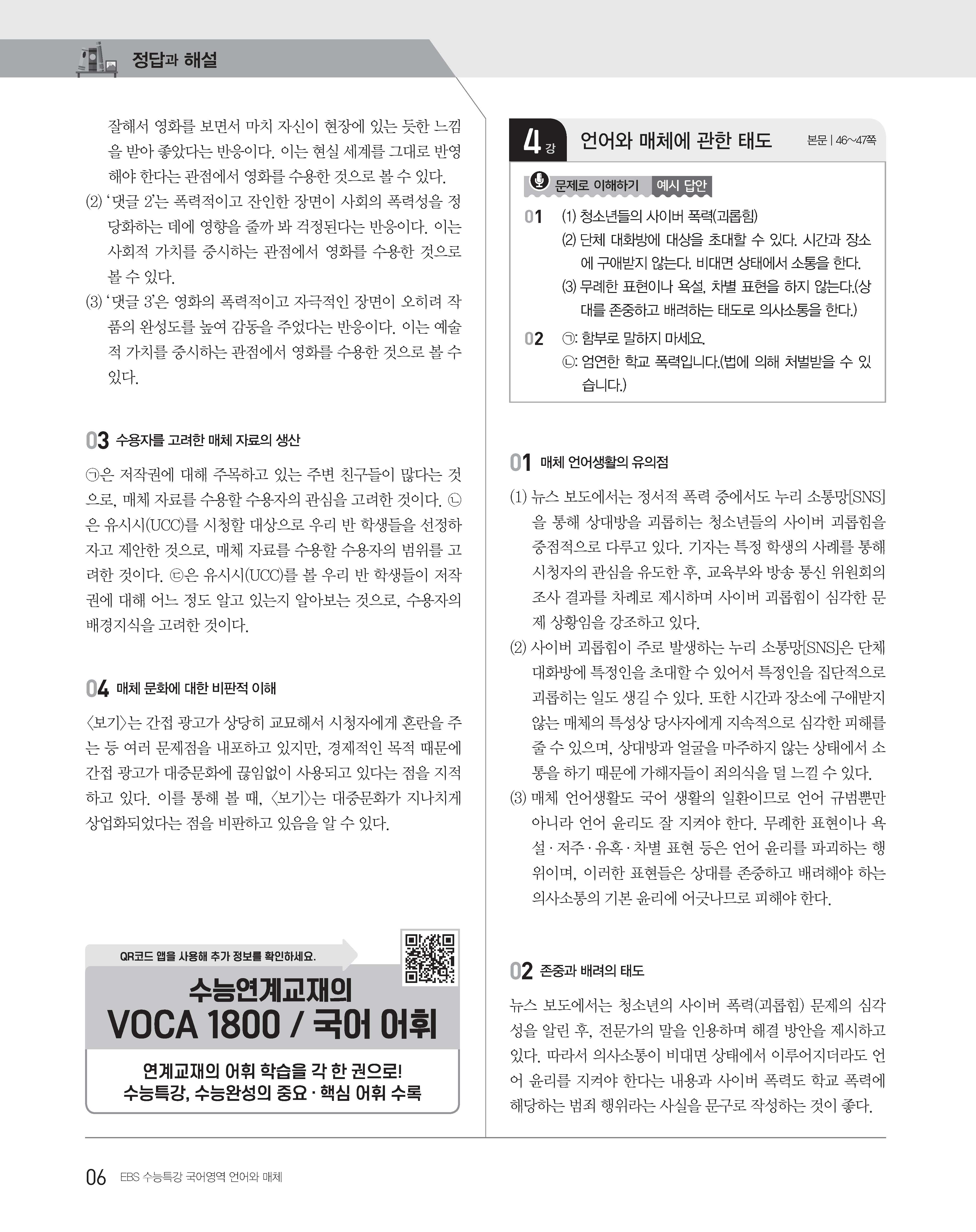 EBS 2022 수능특강 언어와 매체 사진답지 빠른답지 모바일최적화