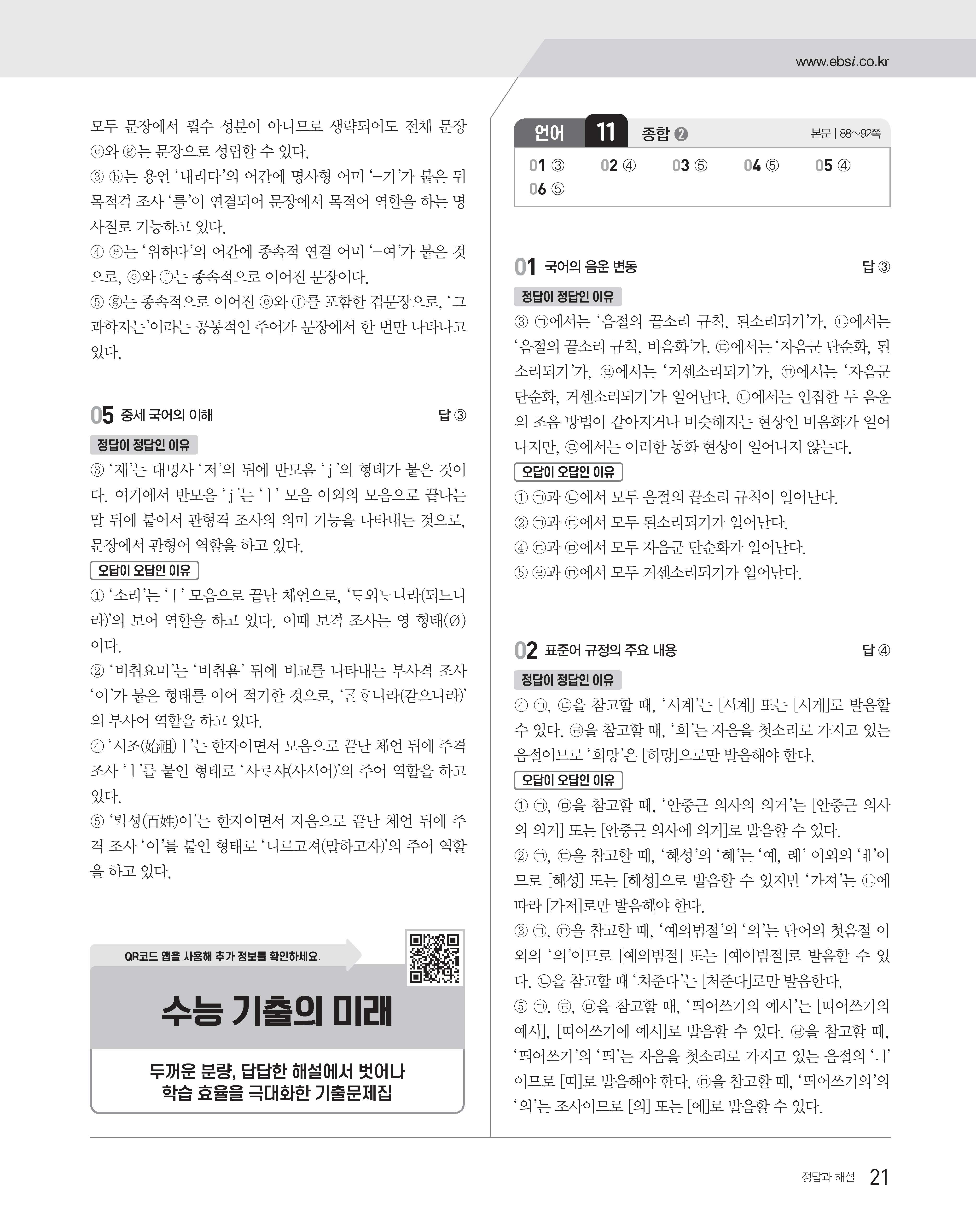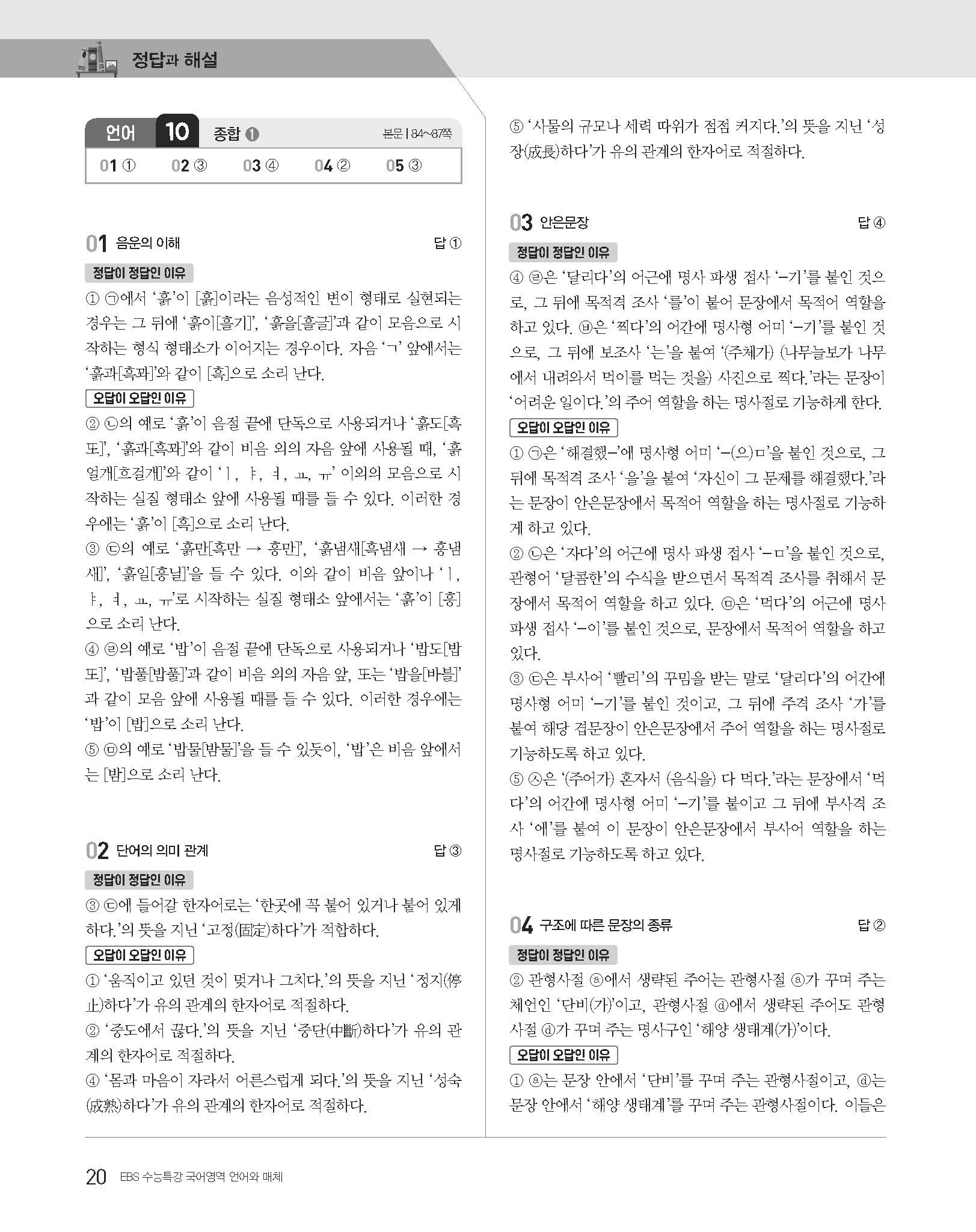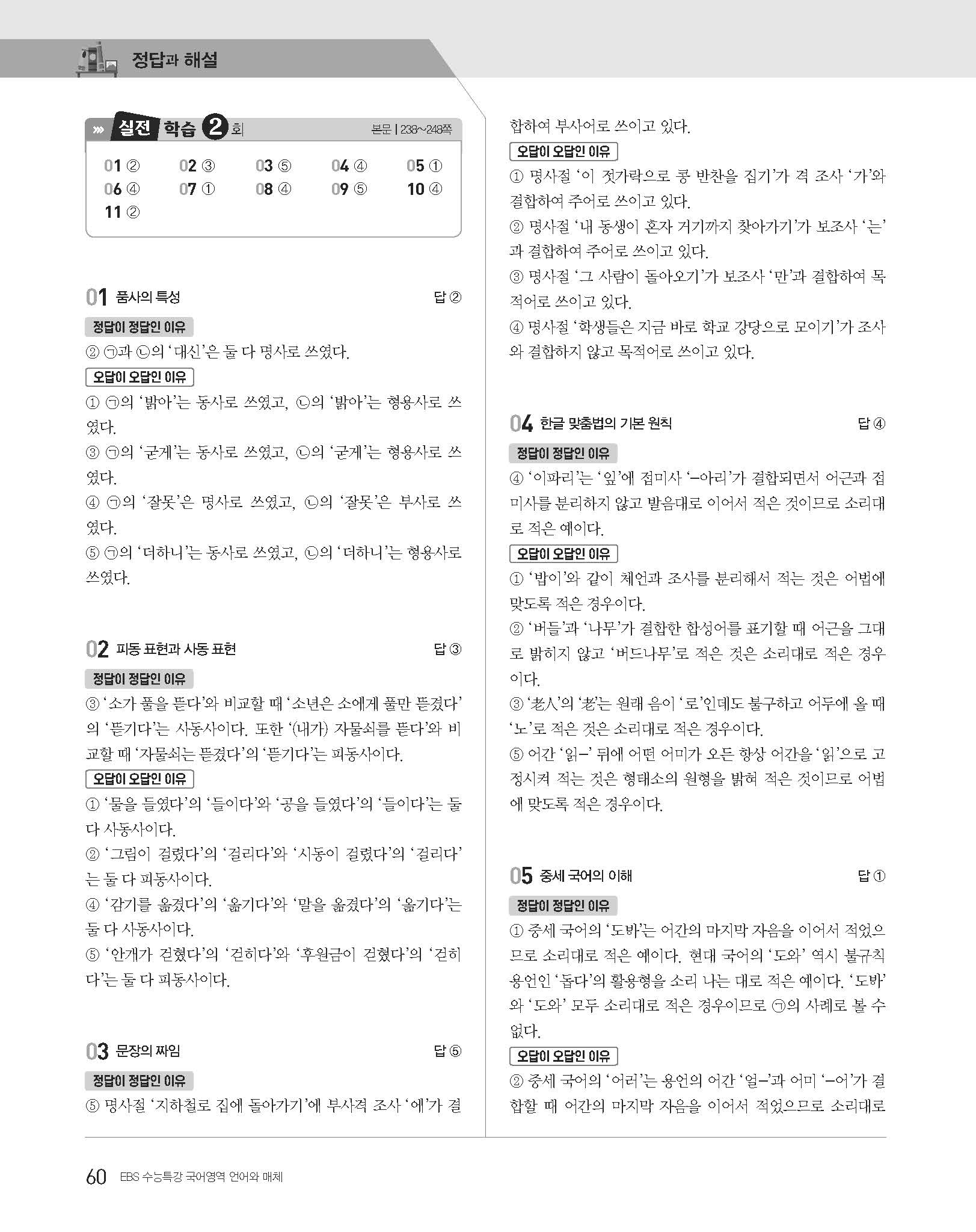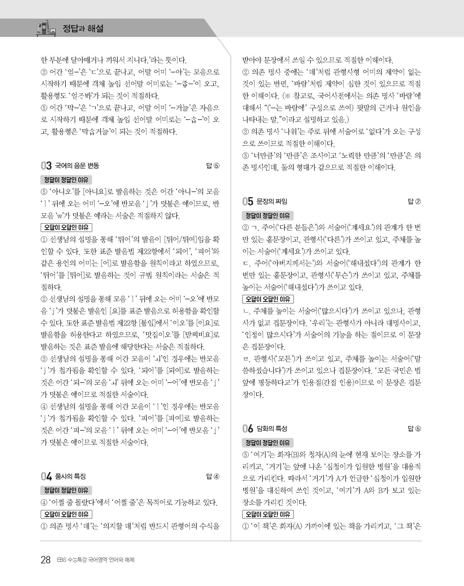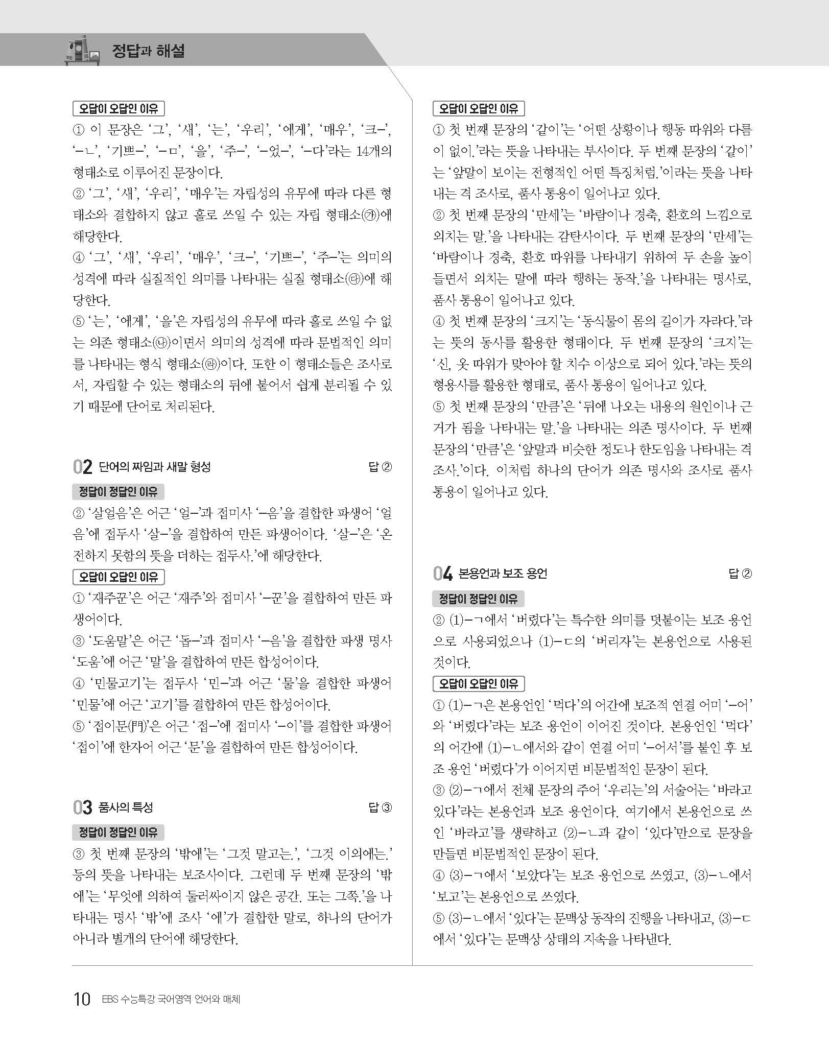 EBS 2022 수능특강 언어와 매체 사진답지 빠른답지 모바일최적화