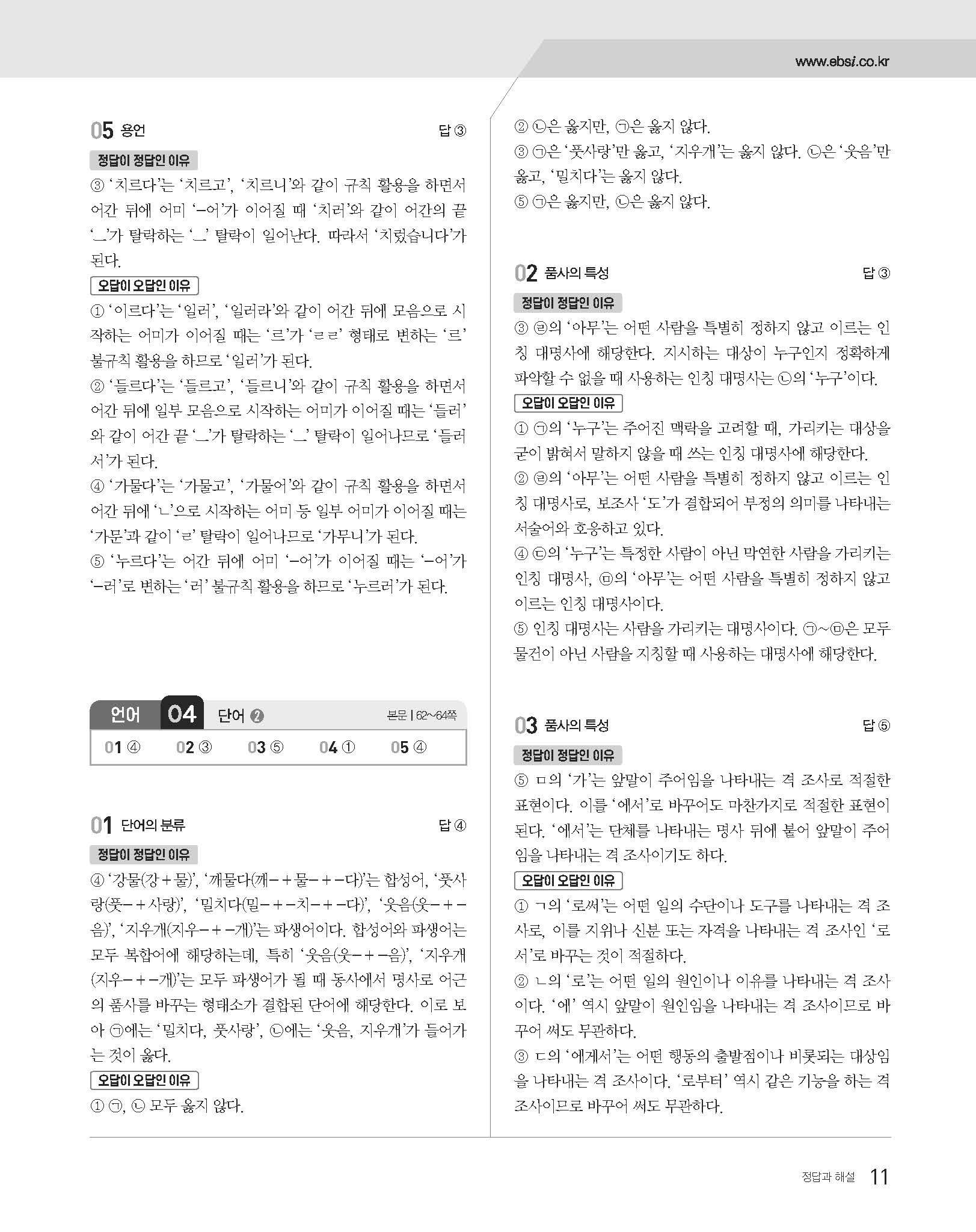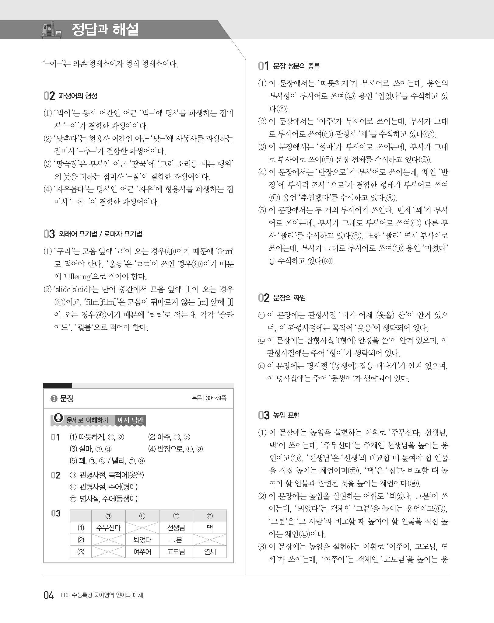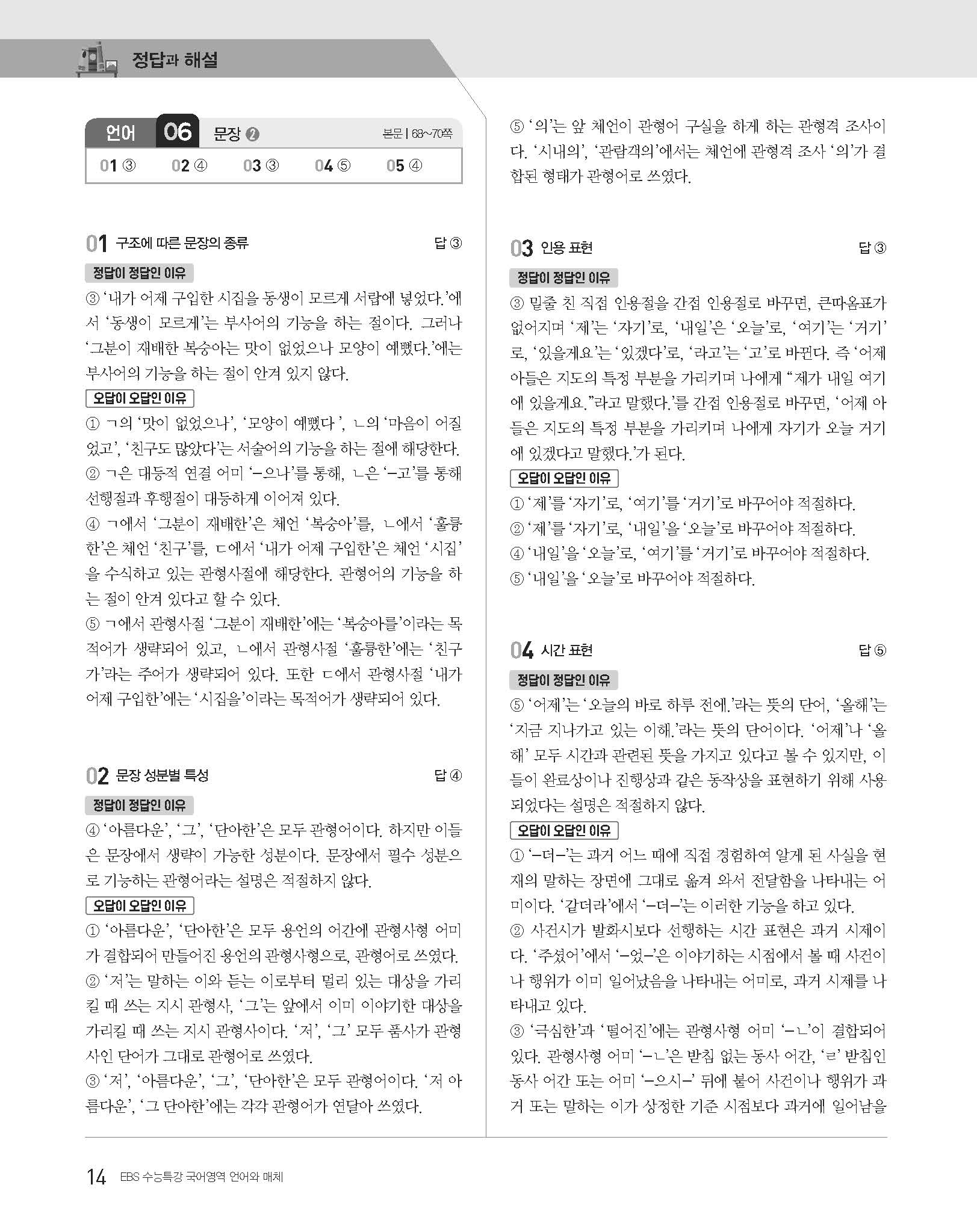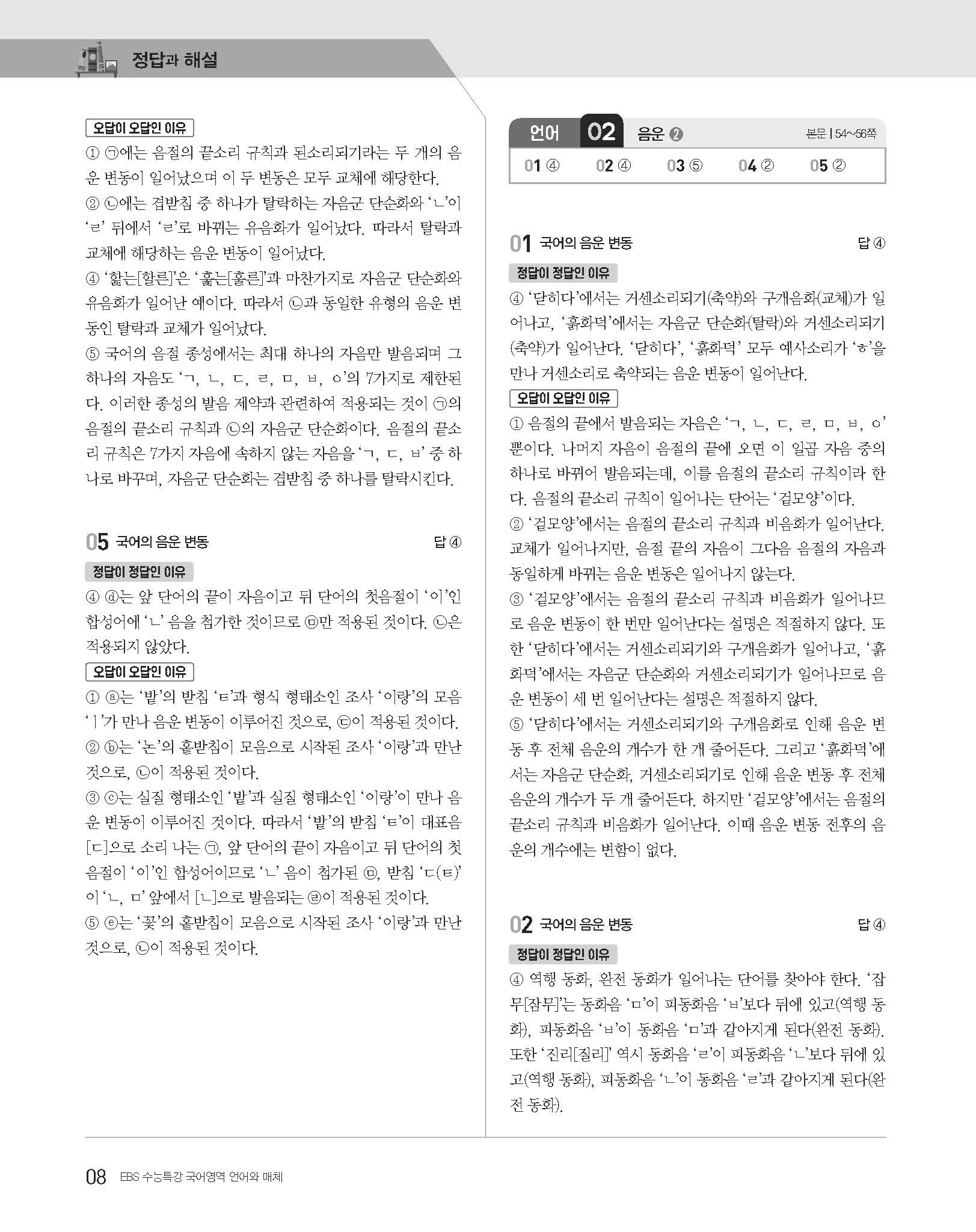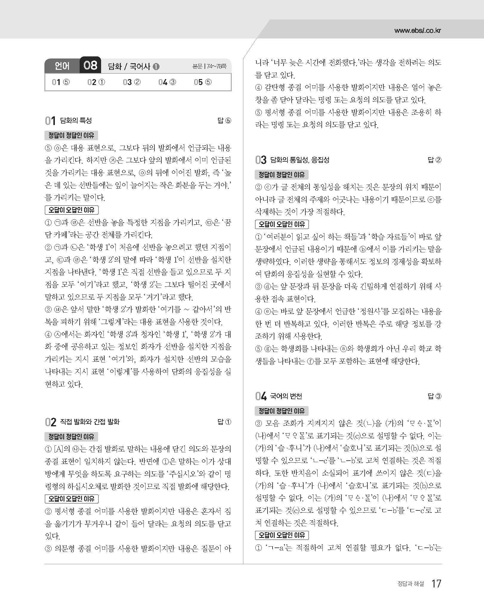 EBS 2022 수능특강 언어와 매체 사진답지 빠른답지 모바일최적화