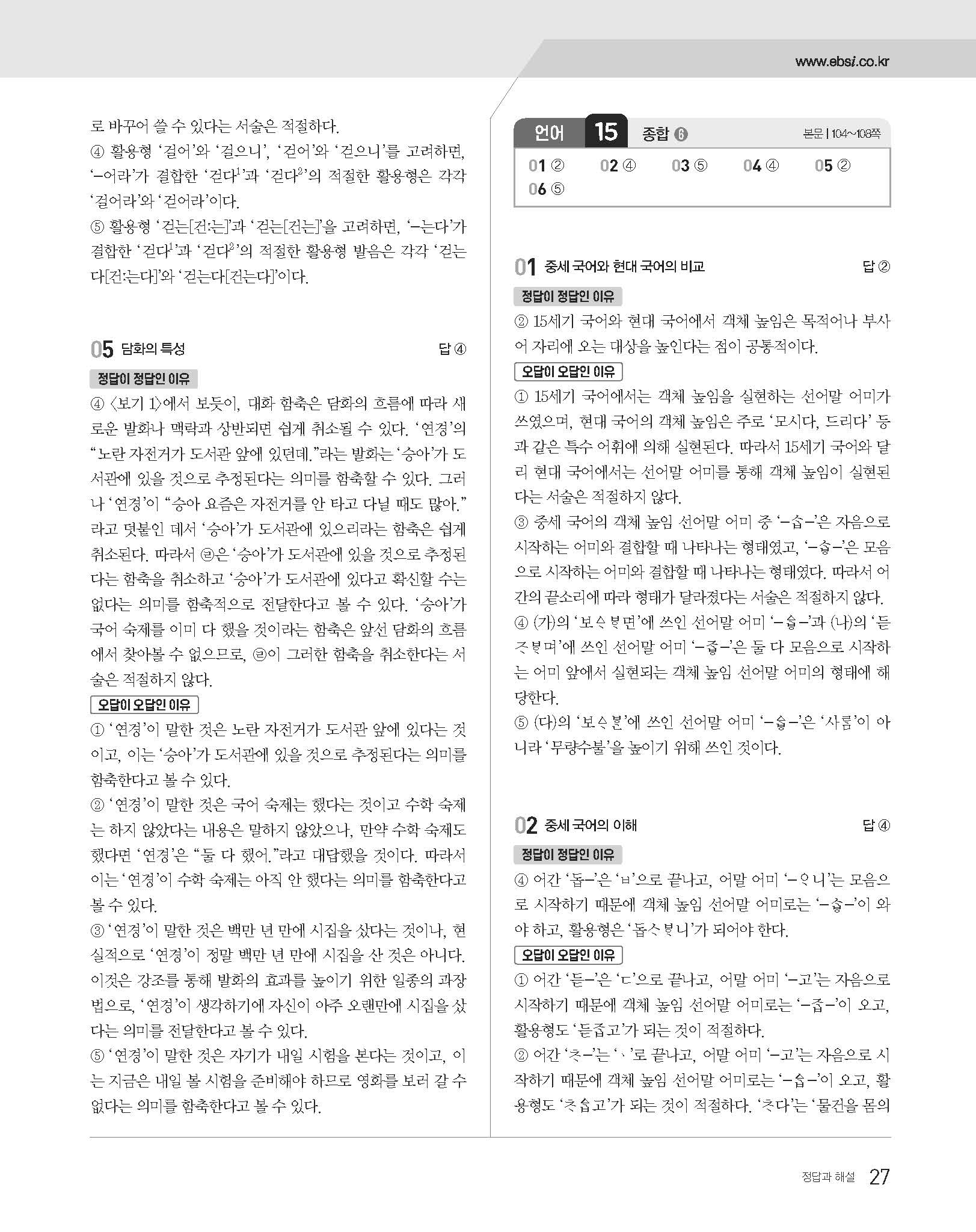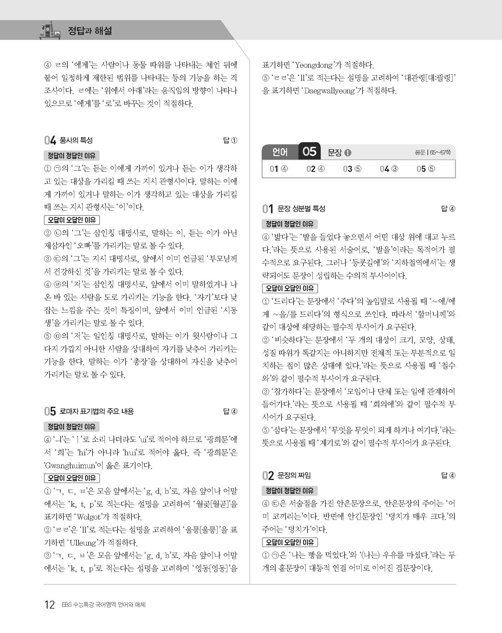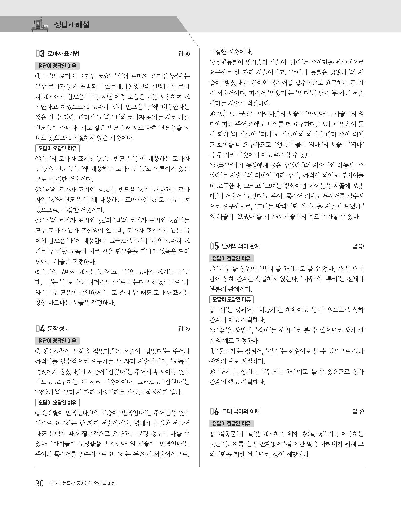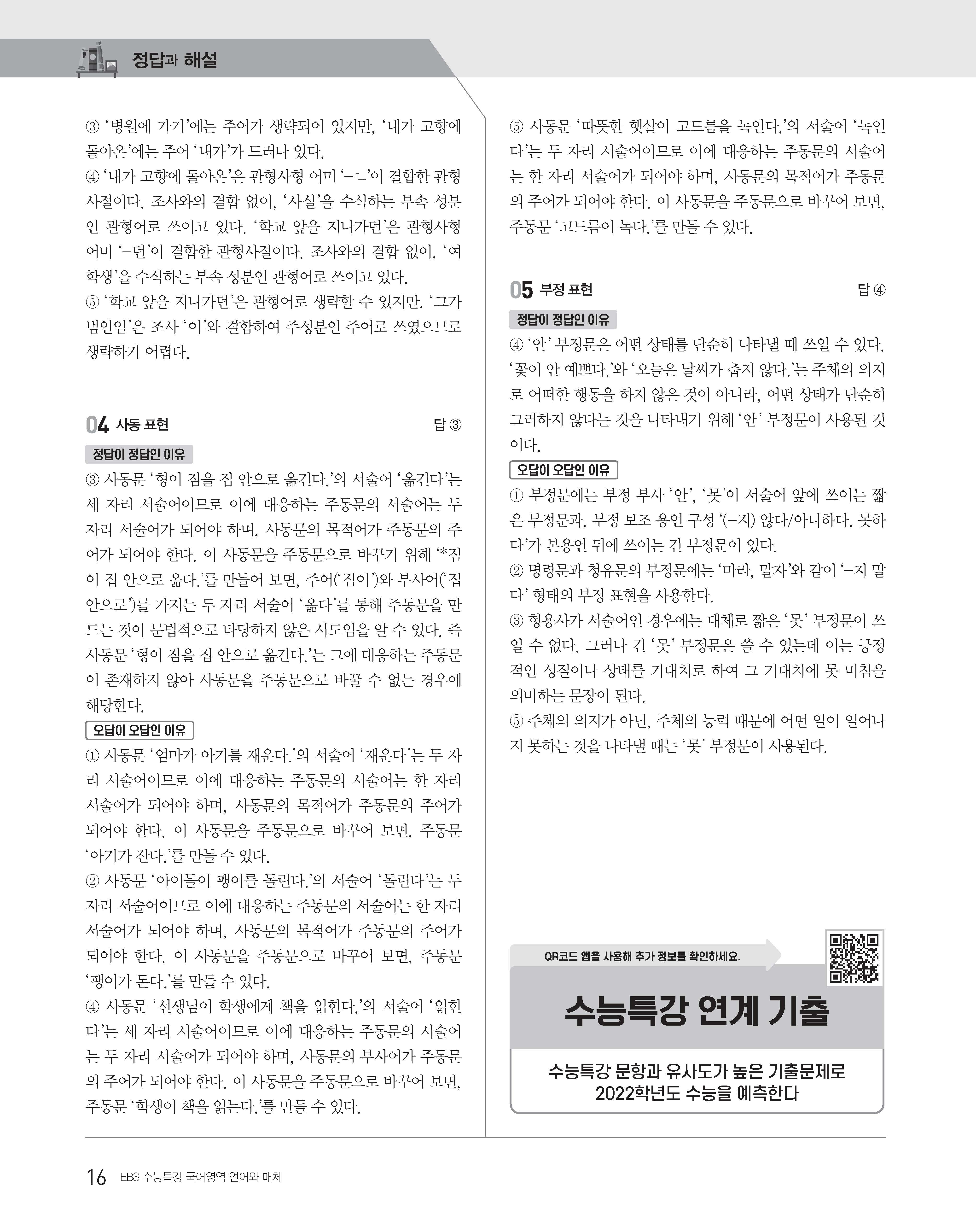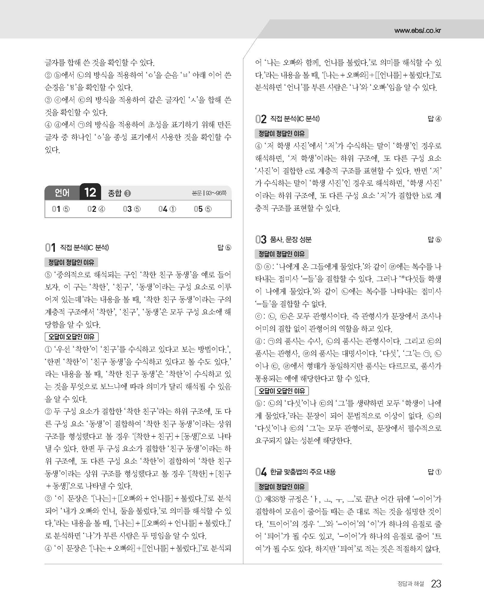 EBS 2022 수능특강 언어와 매체 사진답지 빠른답지 모바일최적화