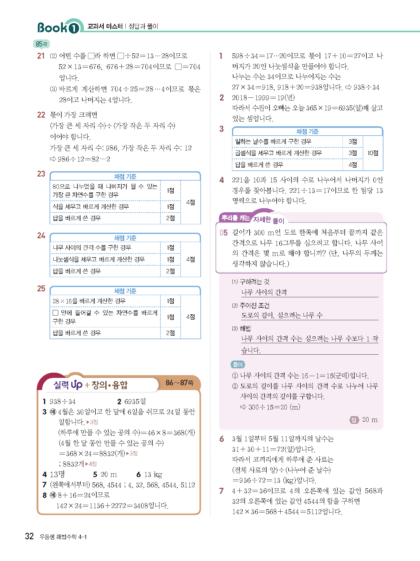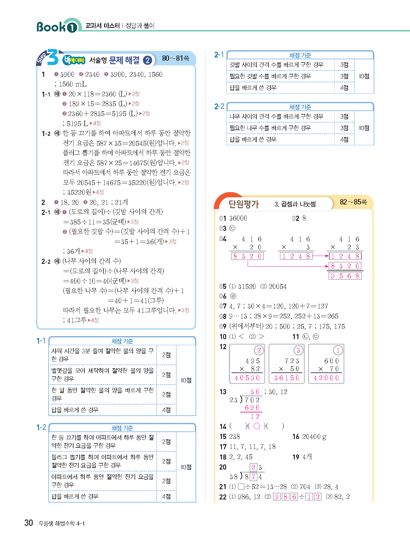 2021우등생수학4-1 사진답지 빠른답지 모바일최적화