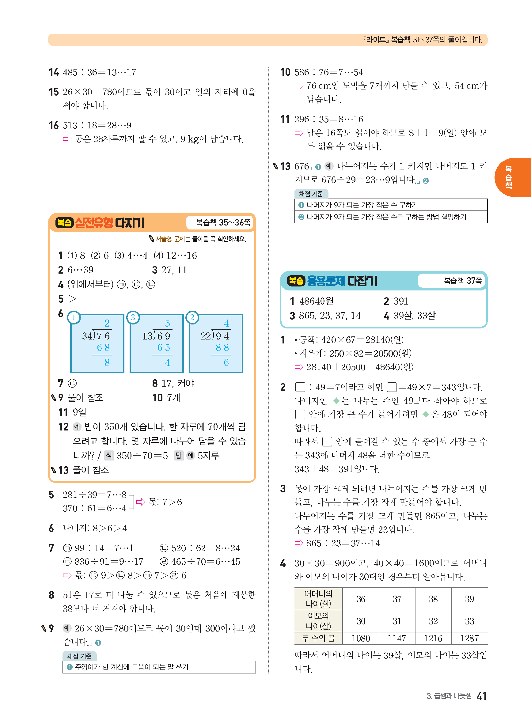 2021개념플러스유형_초등수학4-1_라이트(15개정)_사진답지 빠른답지 모바일최적화