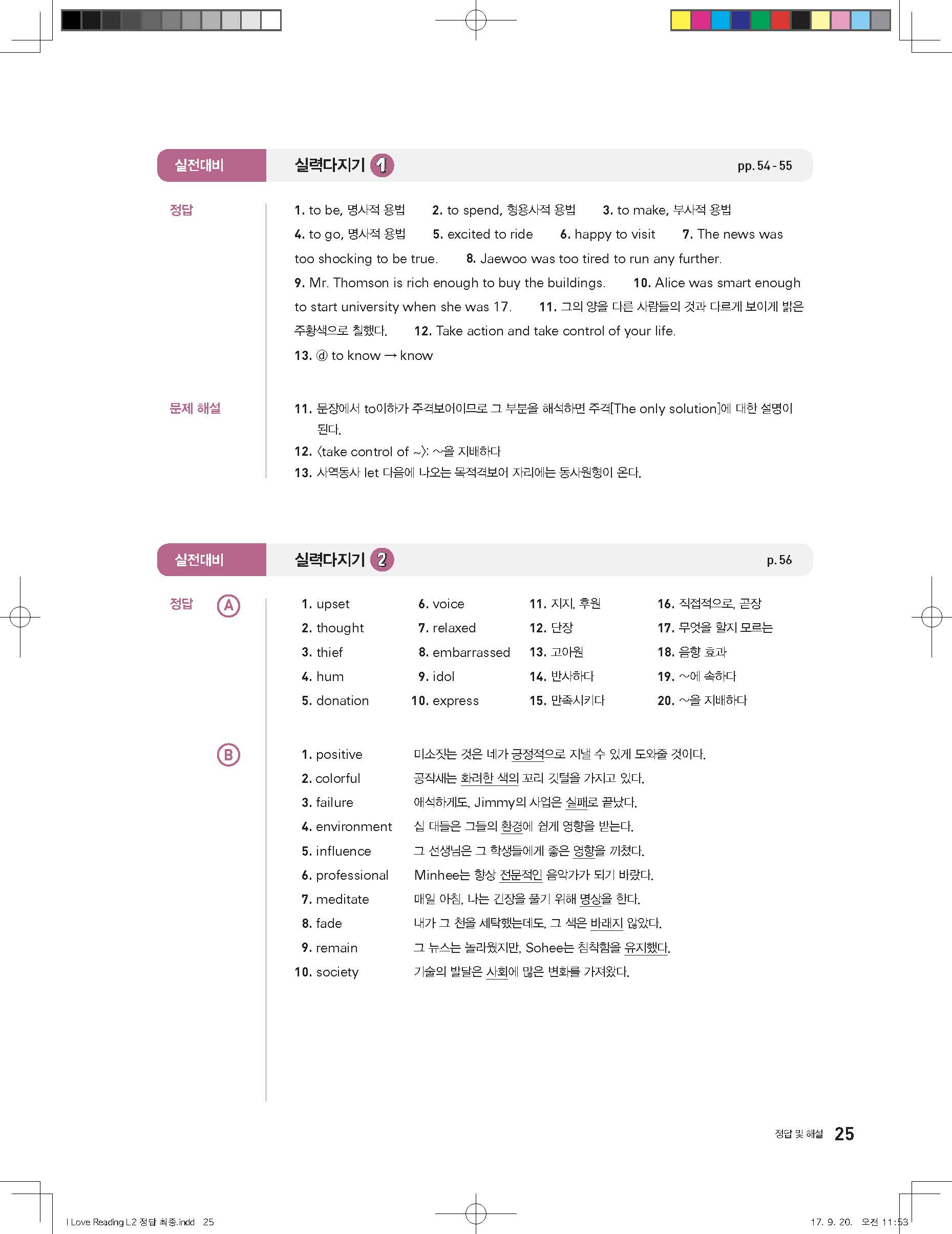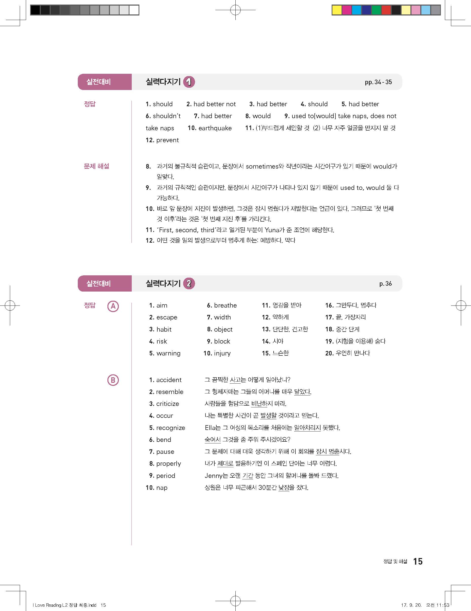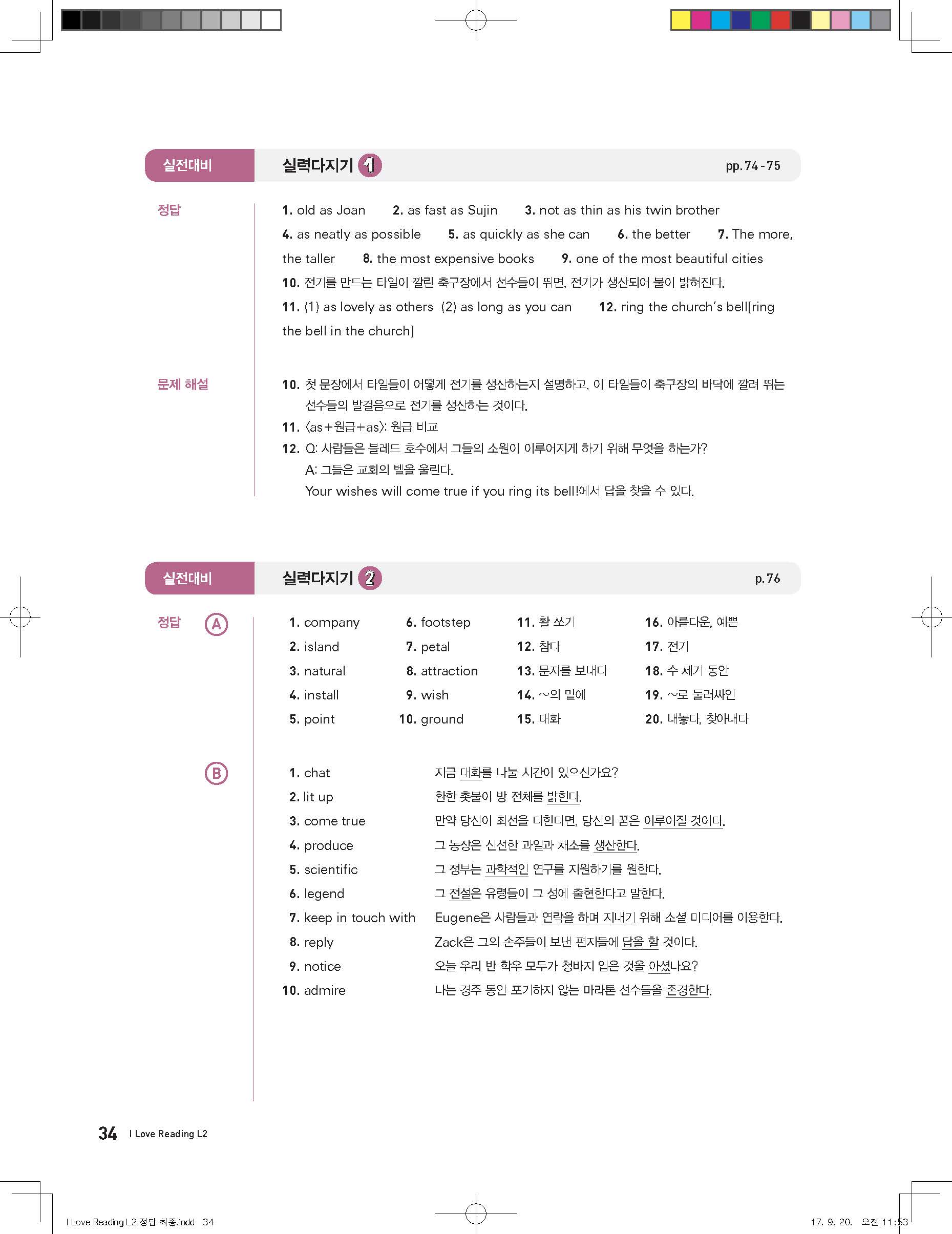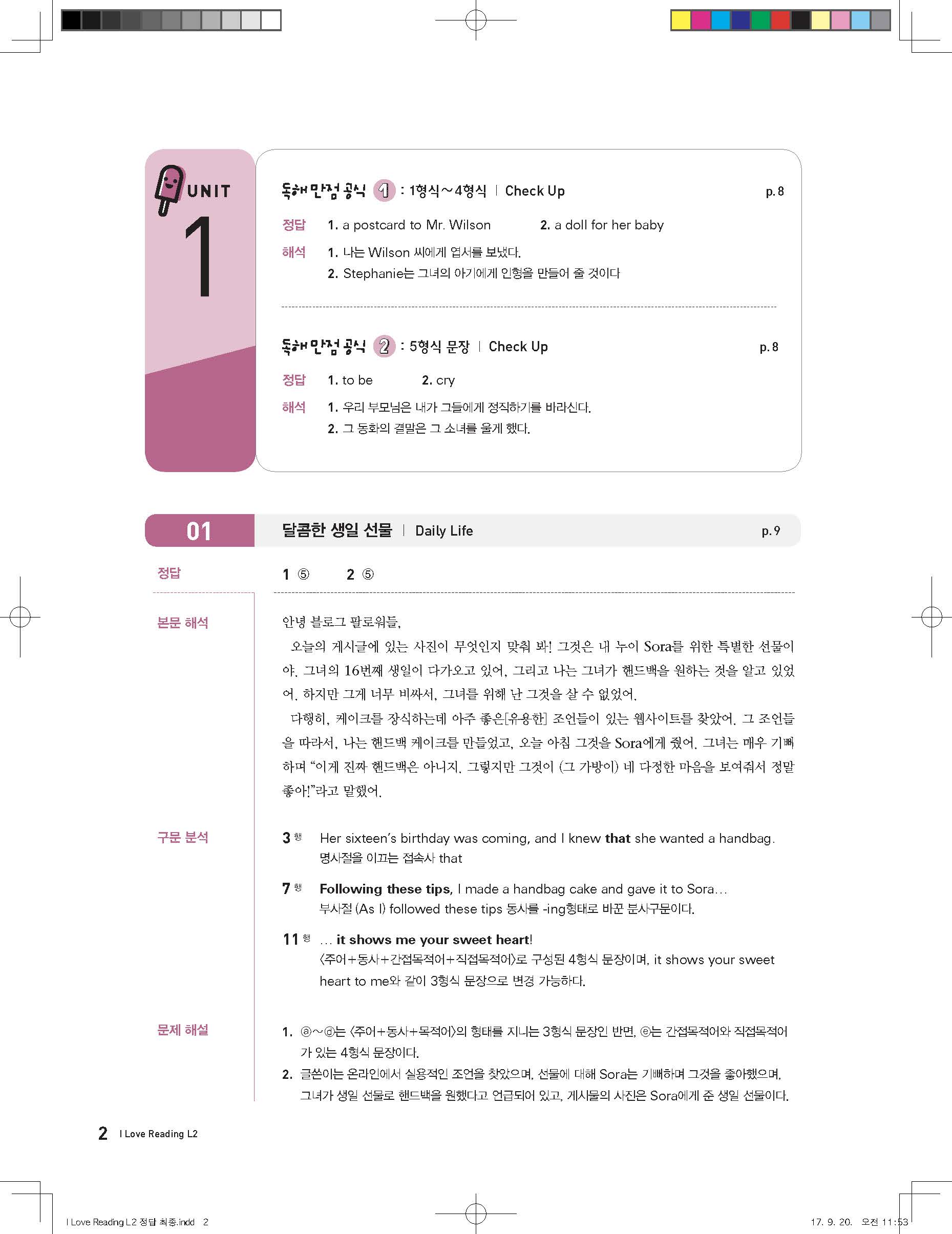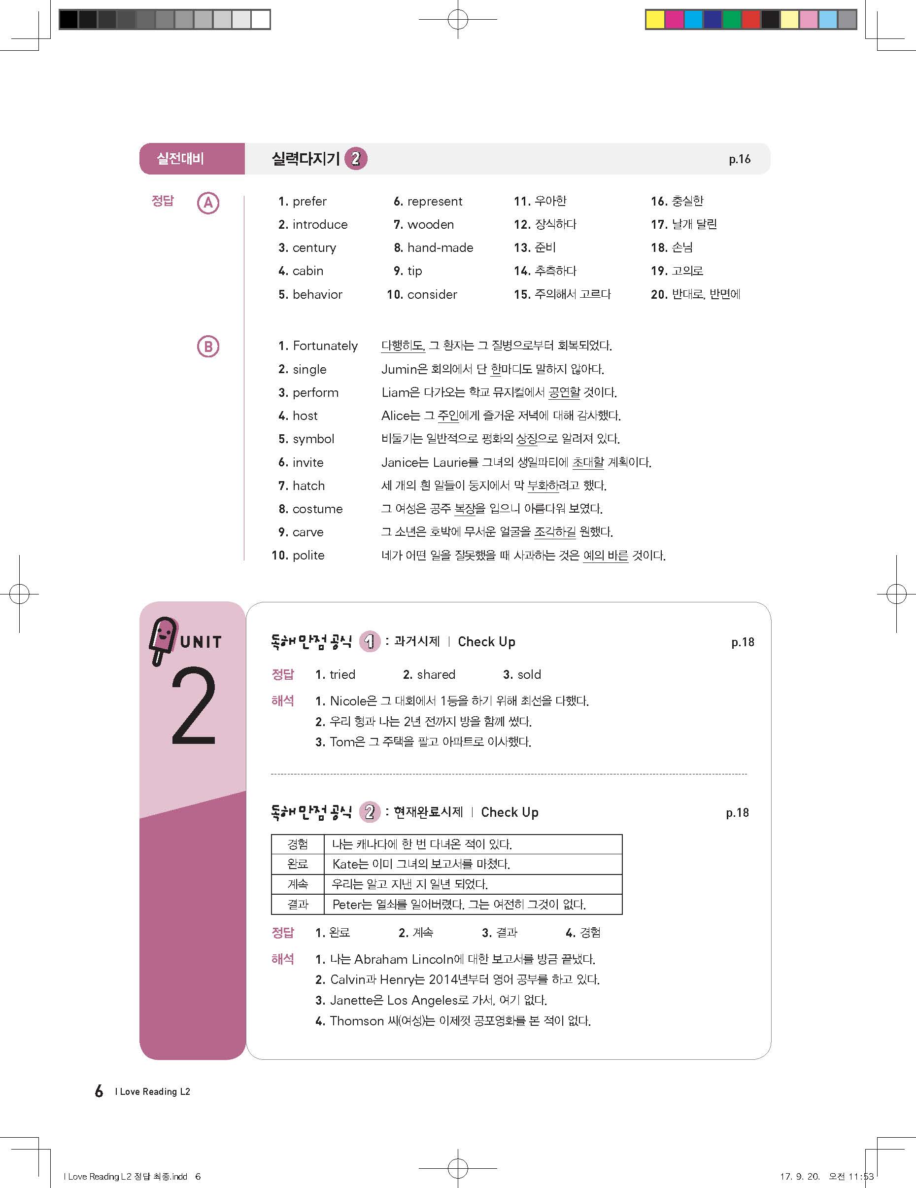 YBM시사 아이러브리딩 레벨2 I love Reading Level2 사진답지 빠른답지 모바일최적화