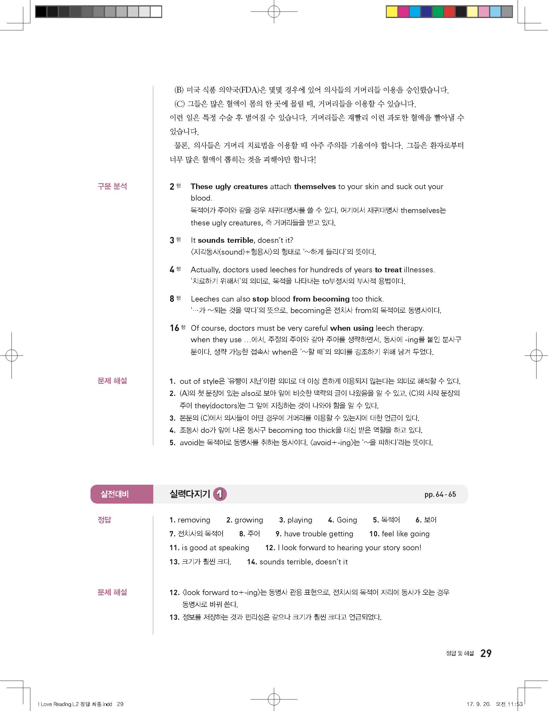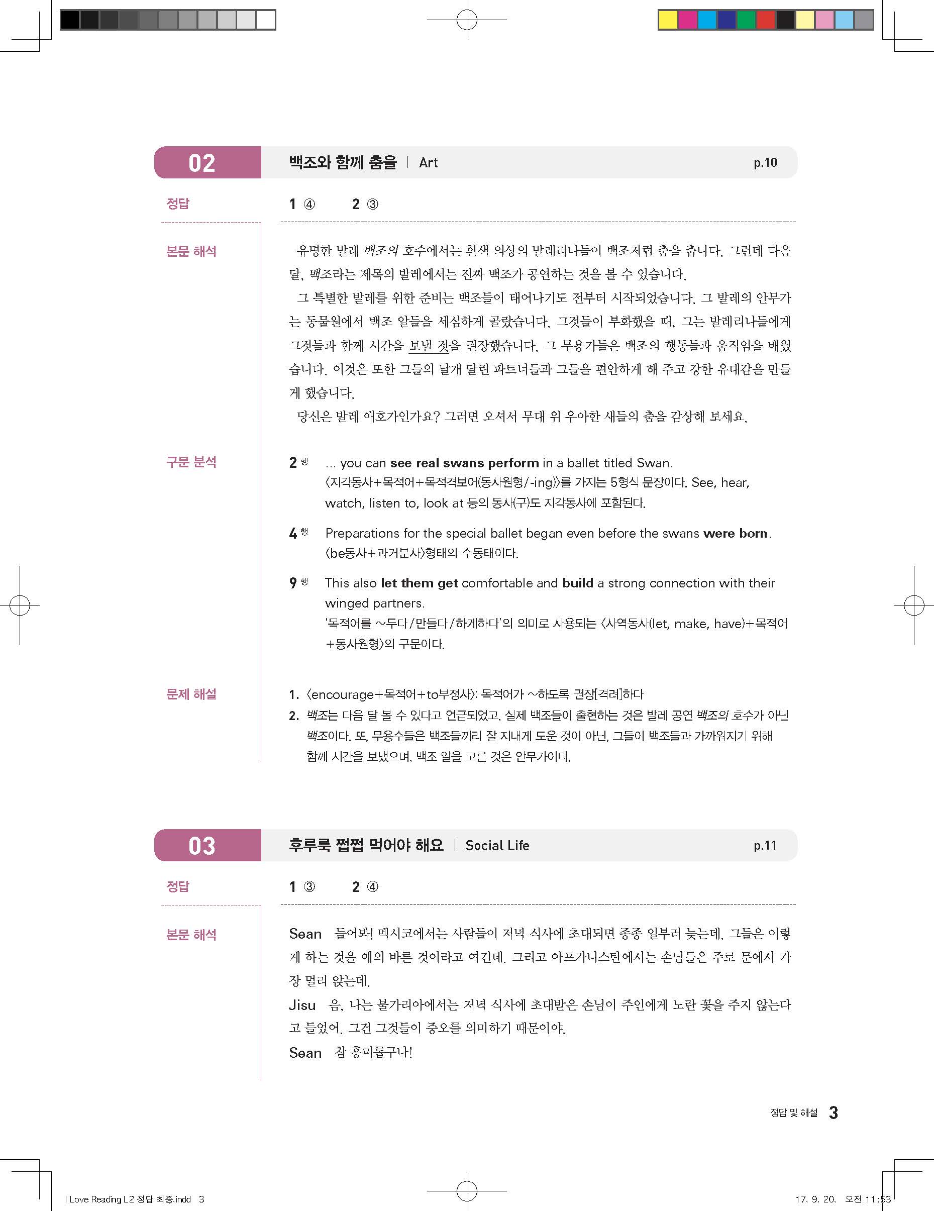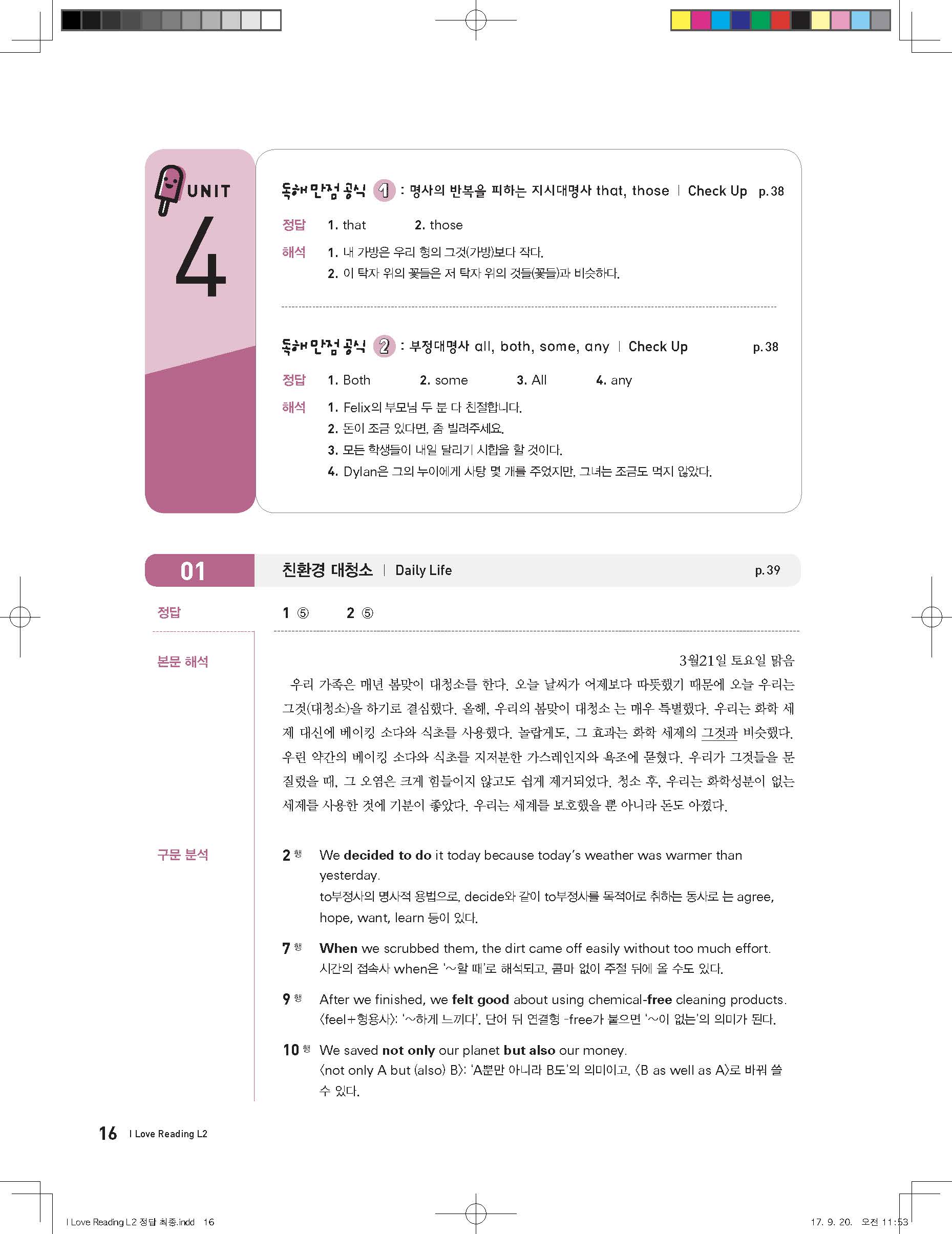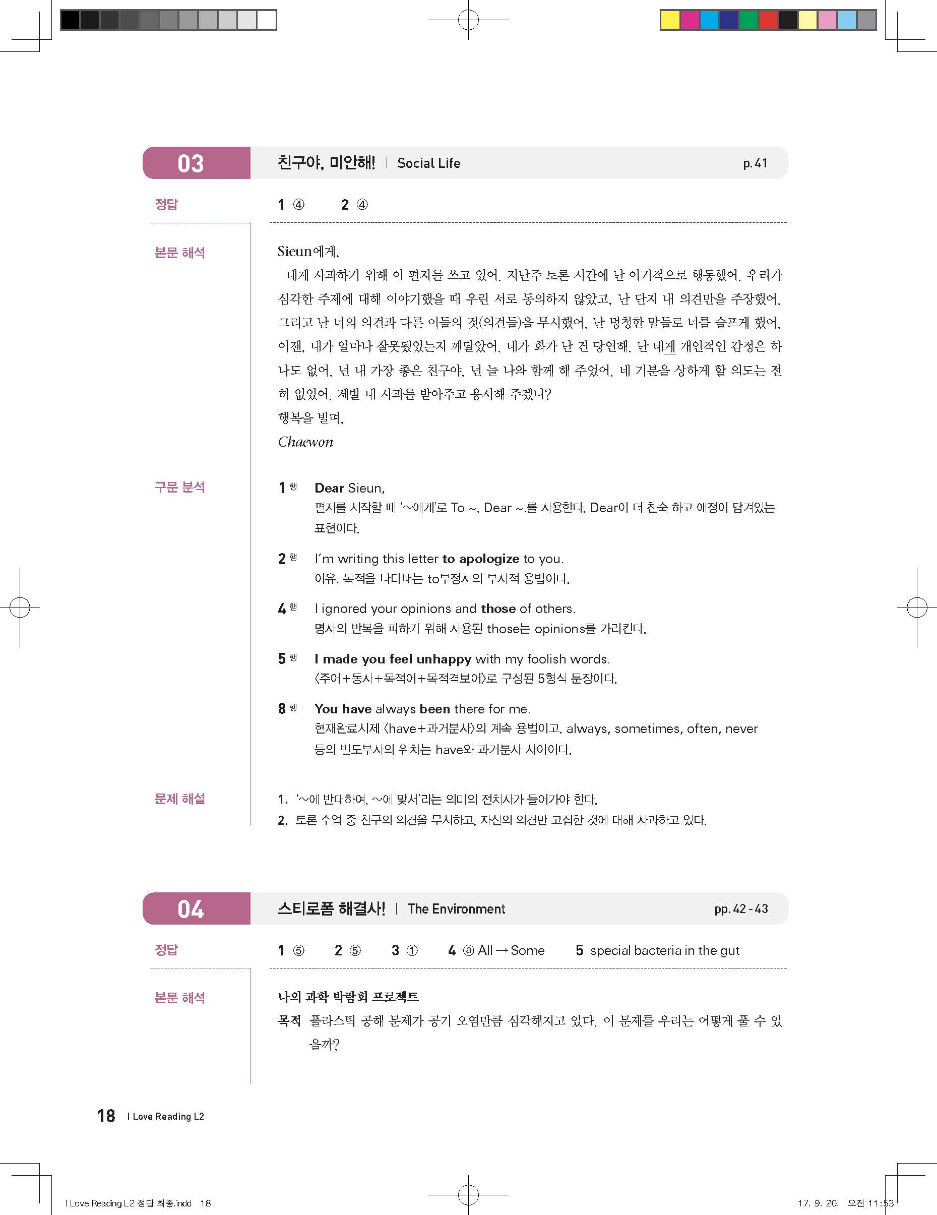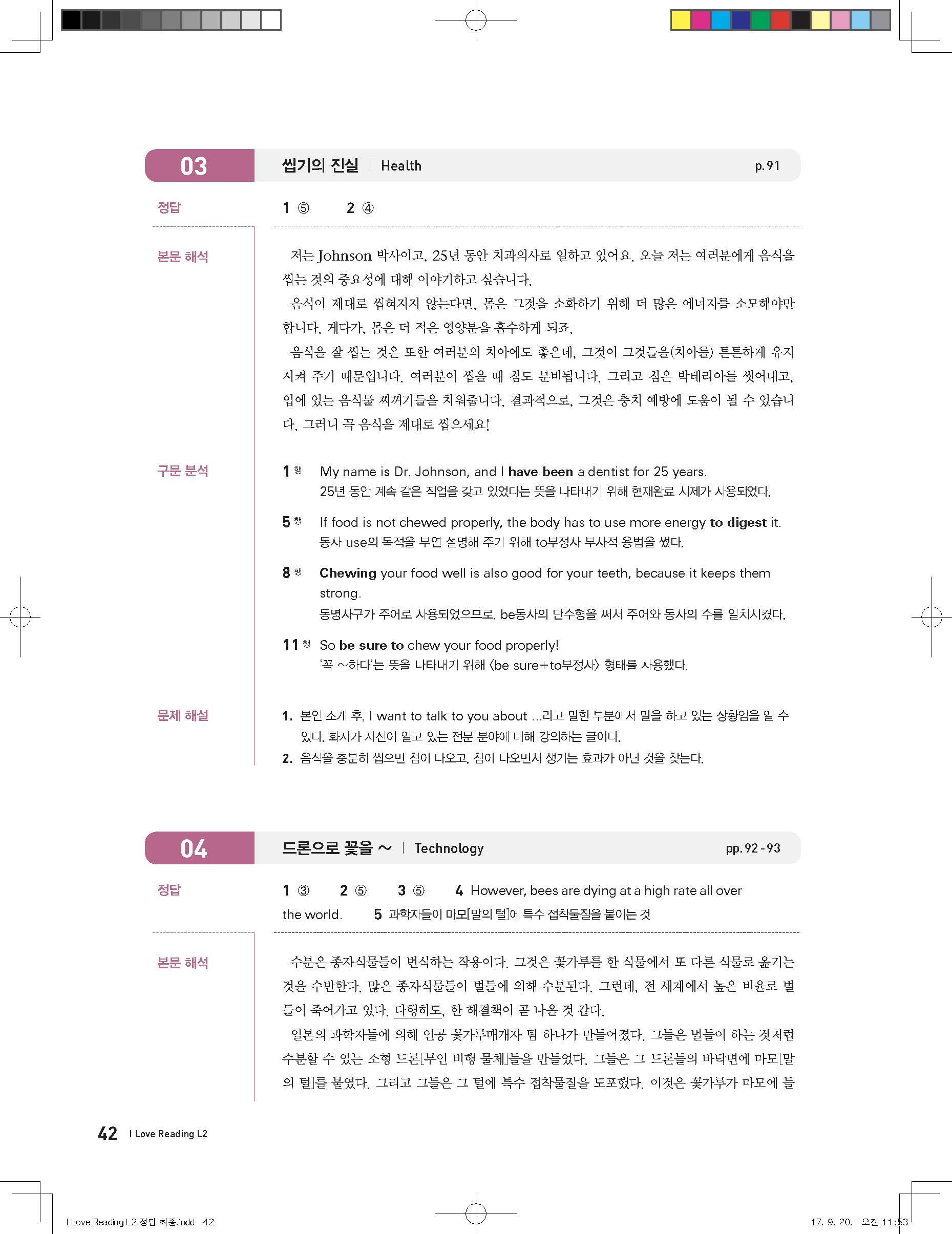 YBM시사 아이러브리딩 레벨2 I love Reading Level2 사진답지 빠른답지 모바일최적화