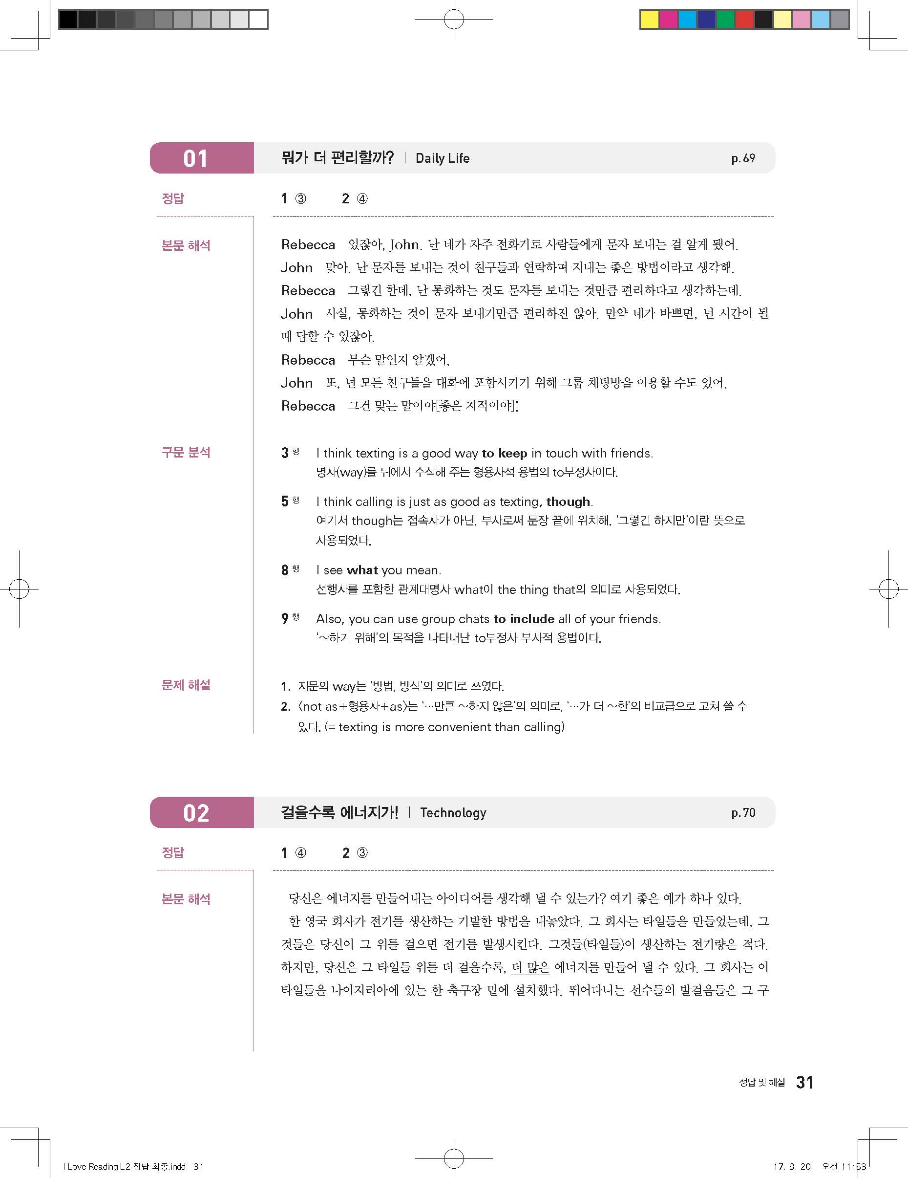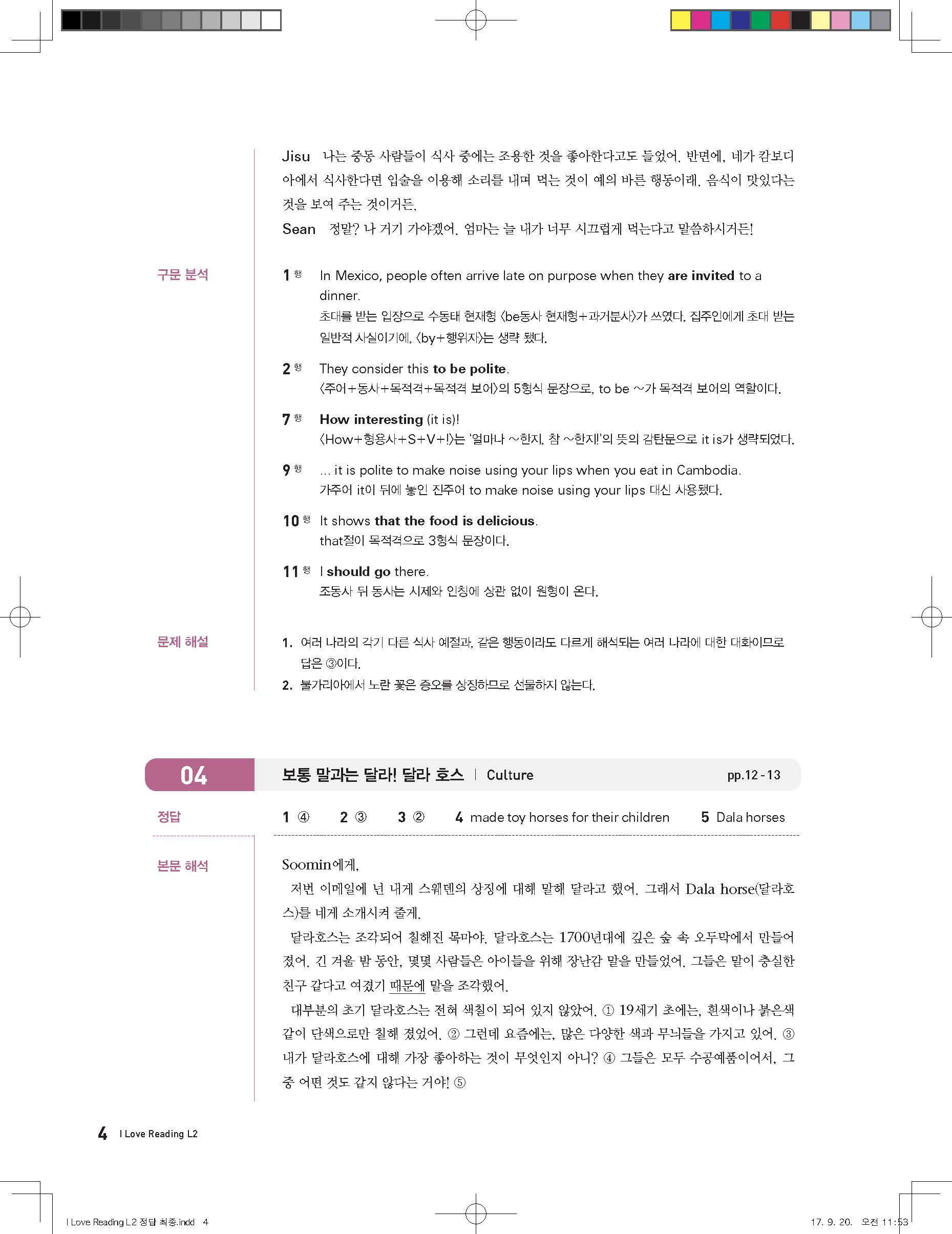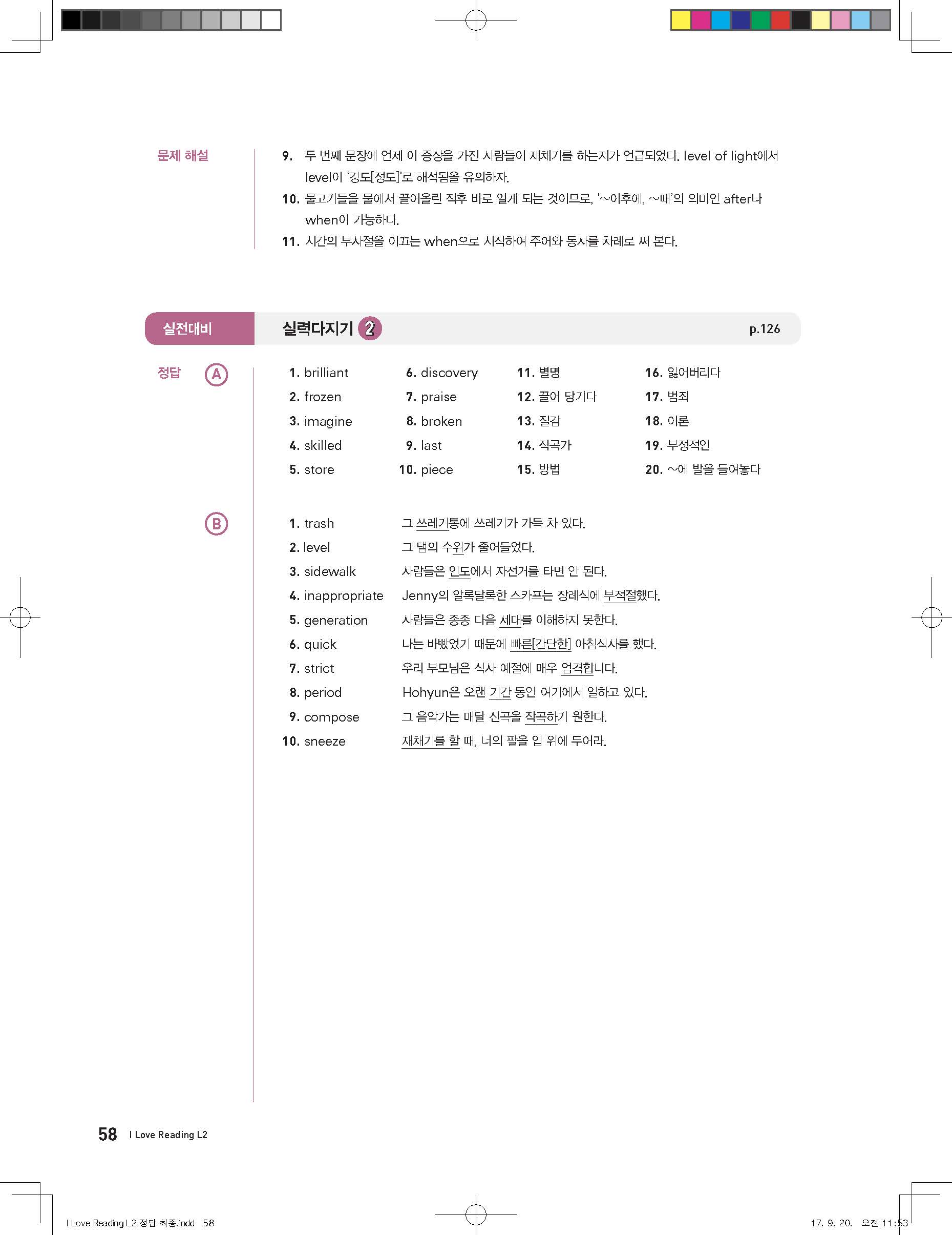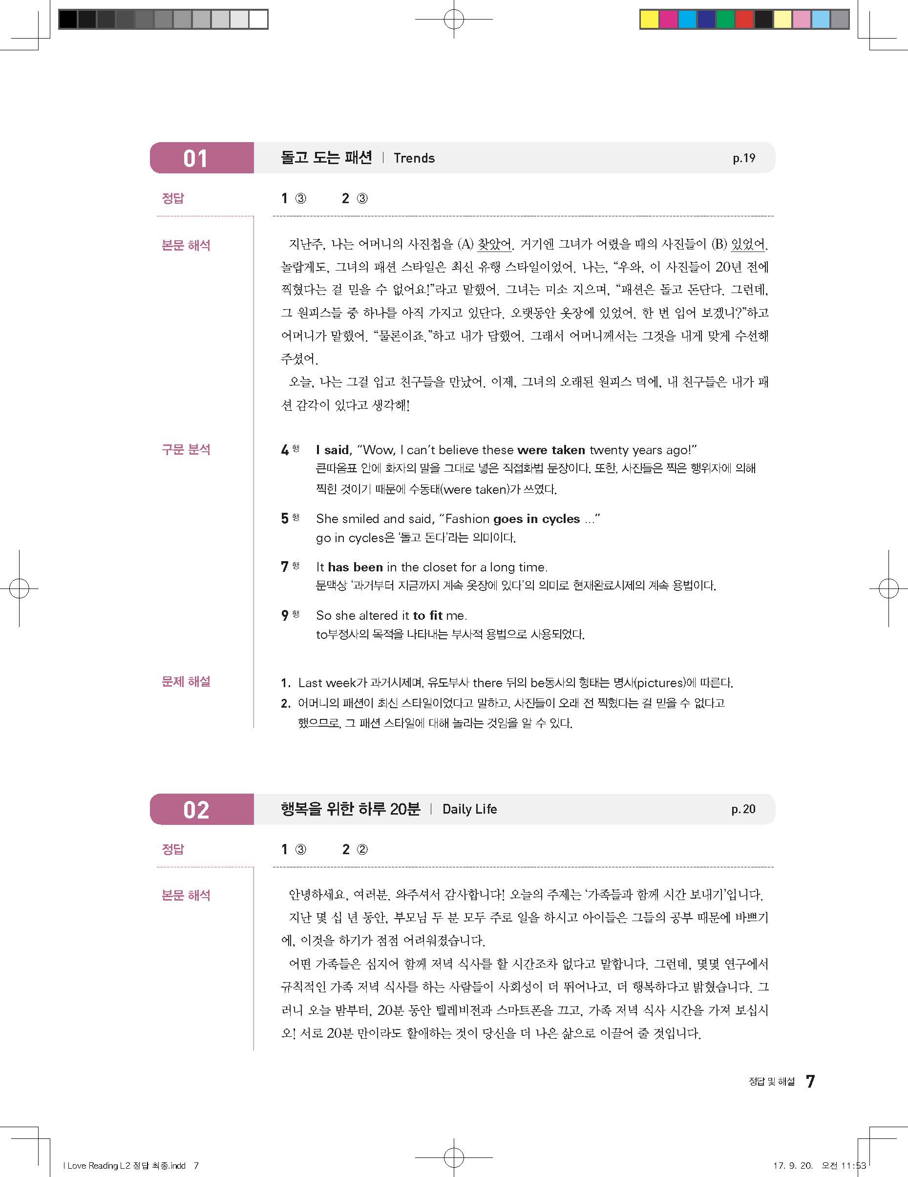 YBM시사 아이러브리딩 레벨2 I love Reading Level2 사진답지 빠른답지 모바일최적화