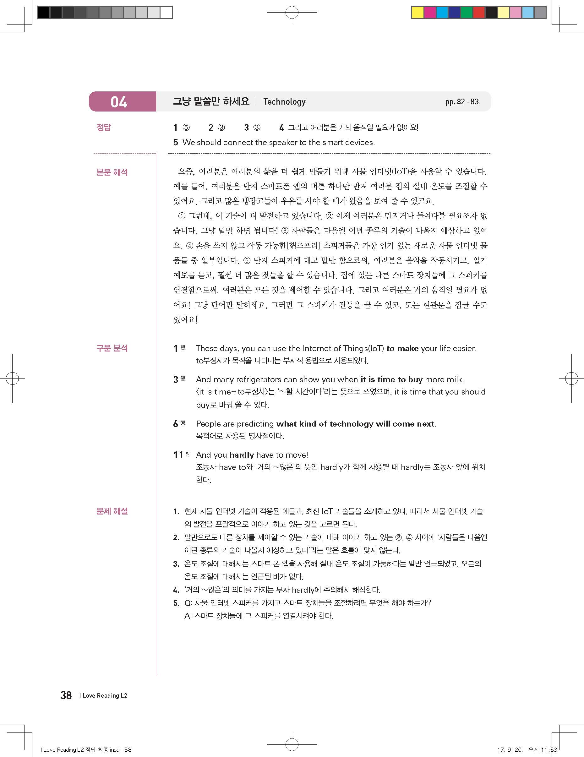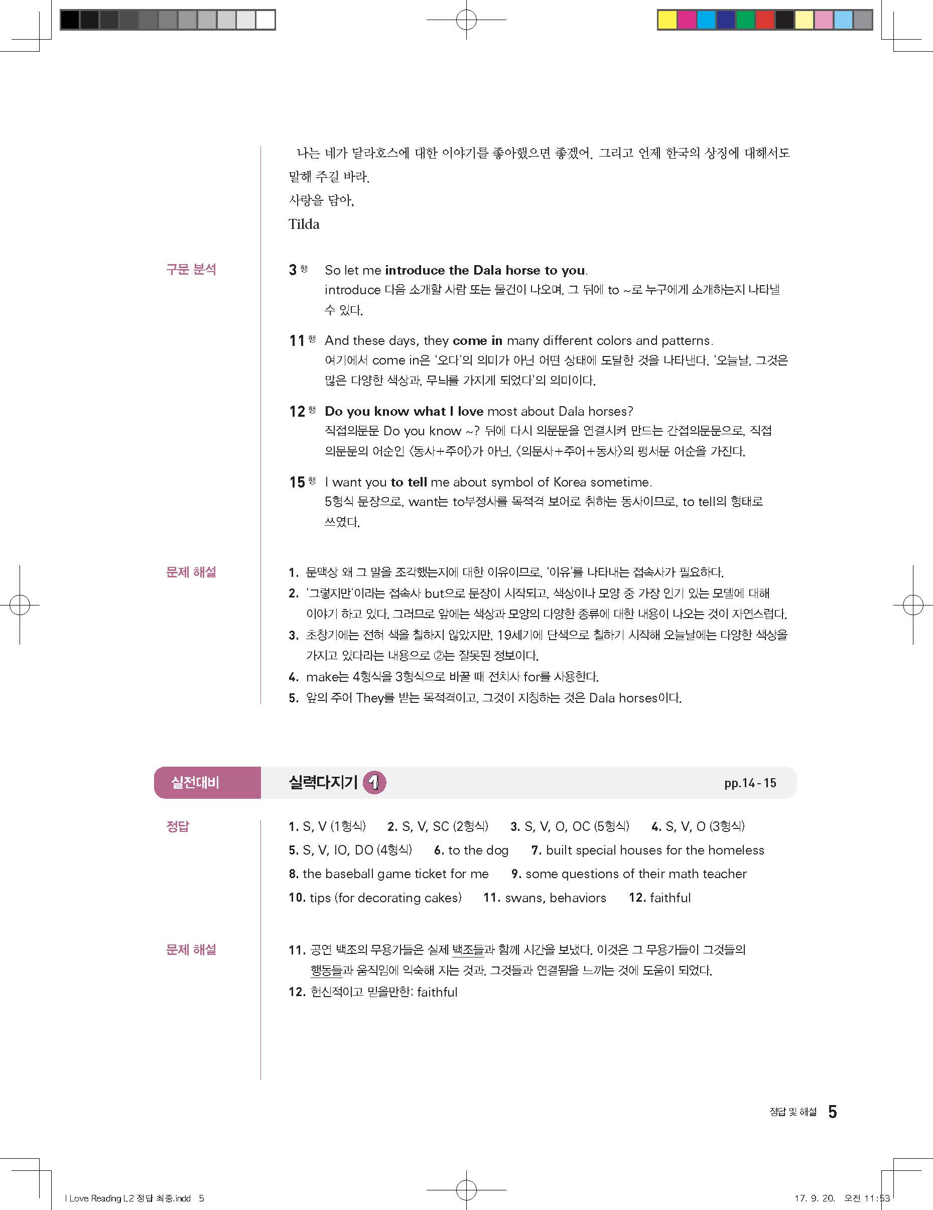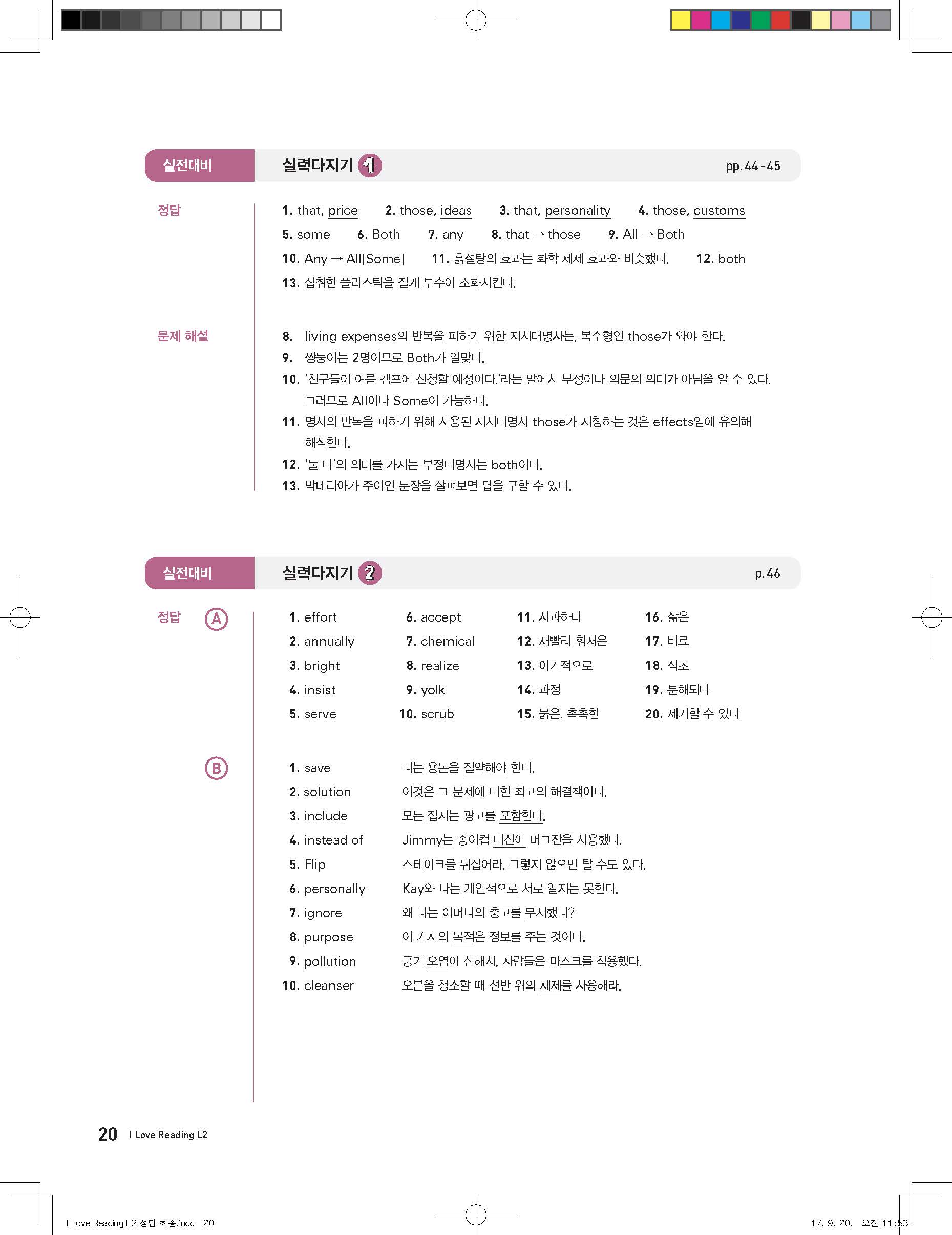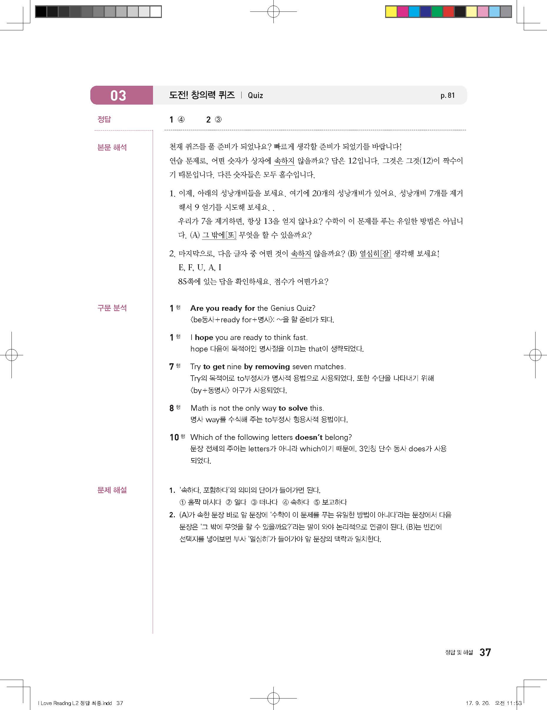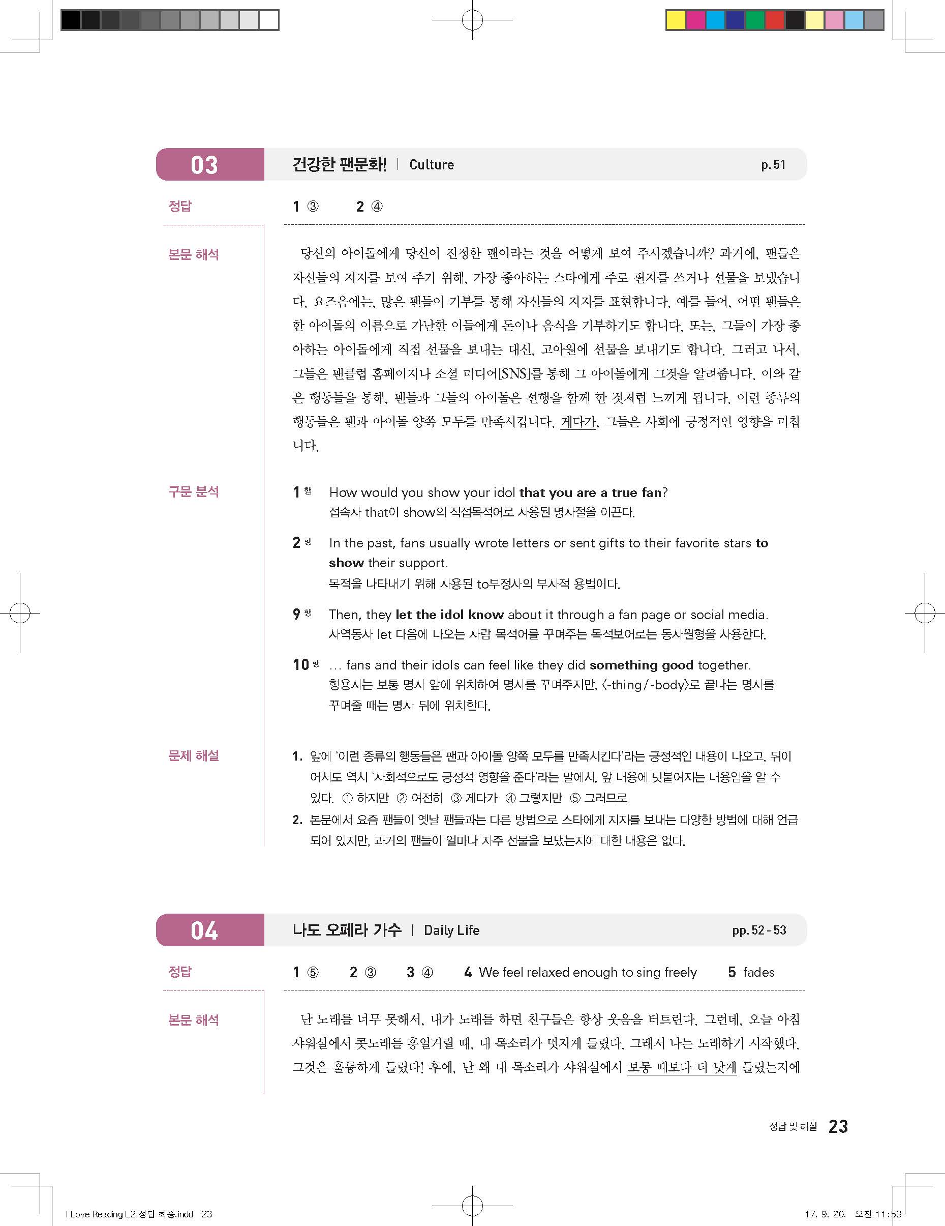 YBM시사 아이러브리딩 레벨2 I love Reading Level2 사진답지 빠른답지 모바일최적화