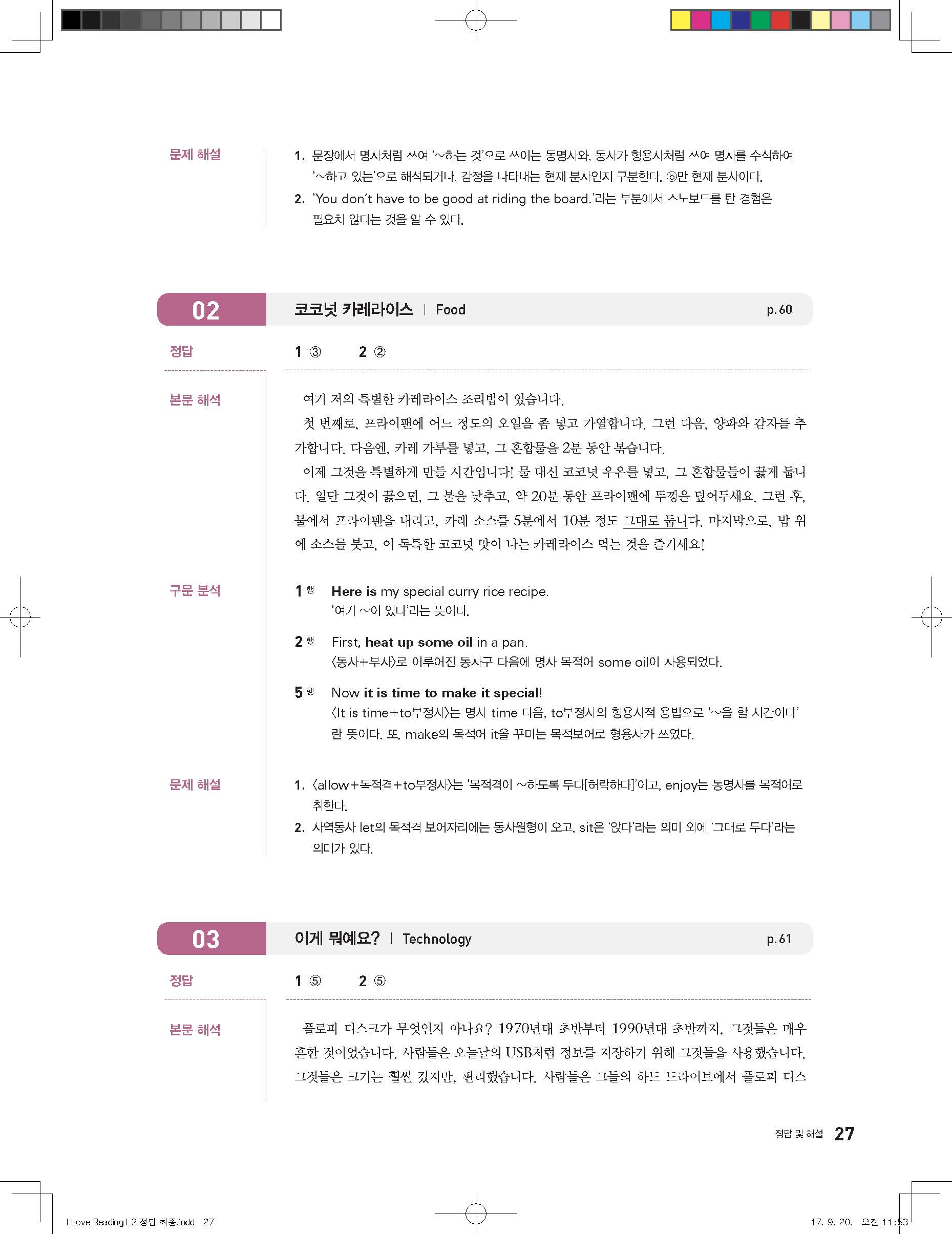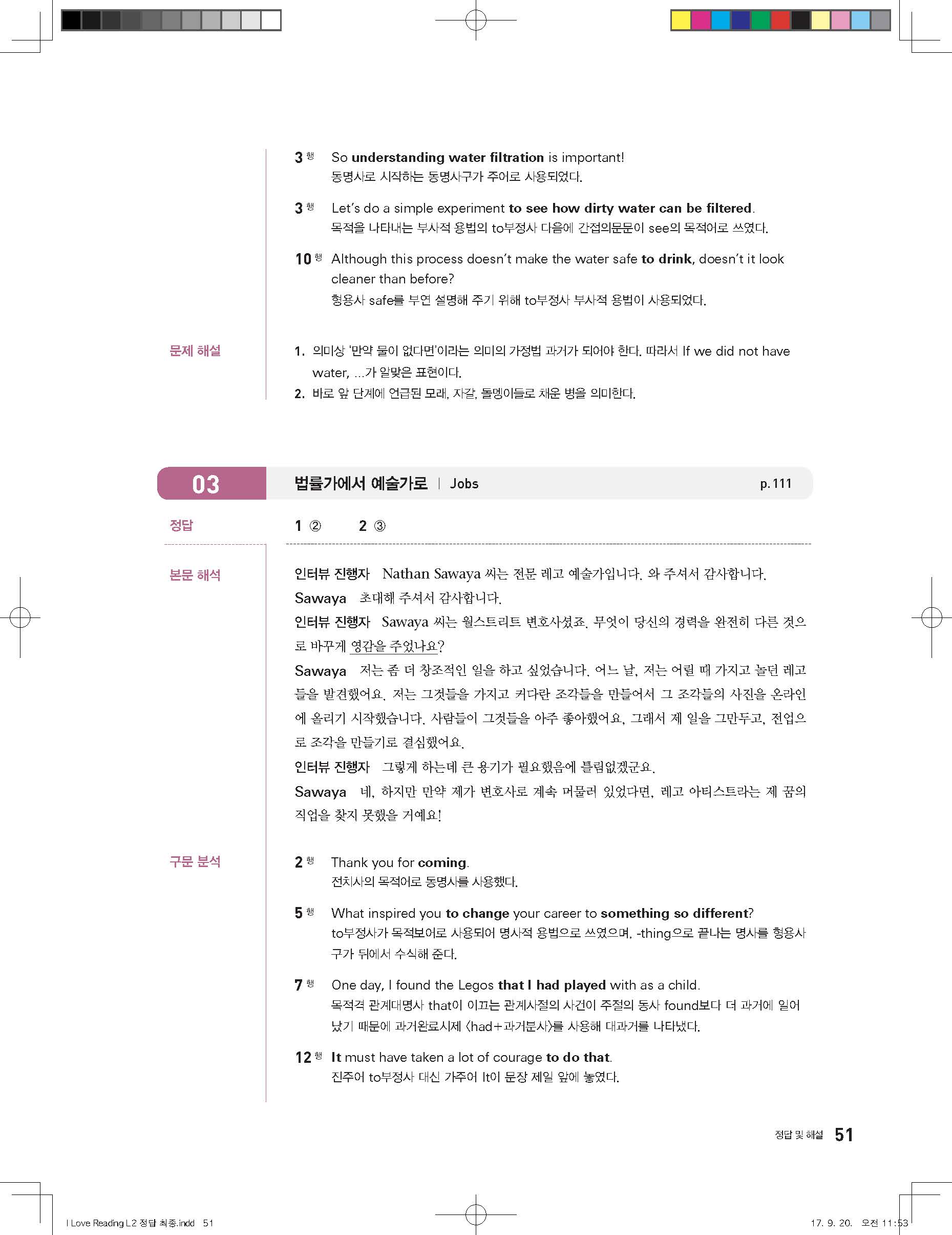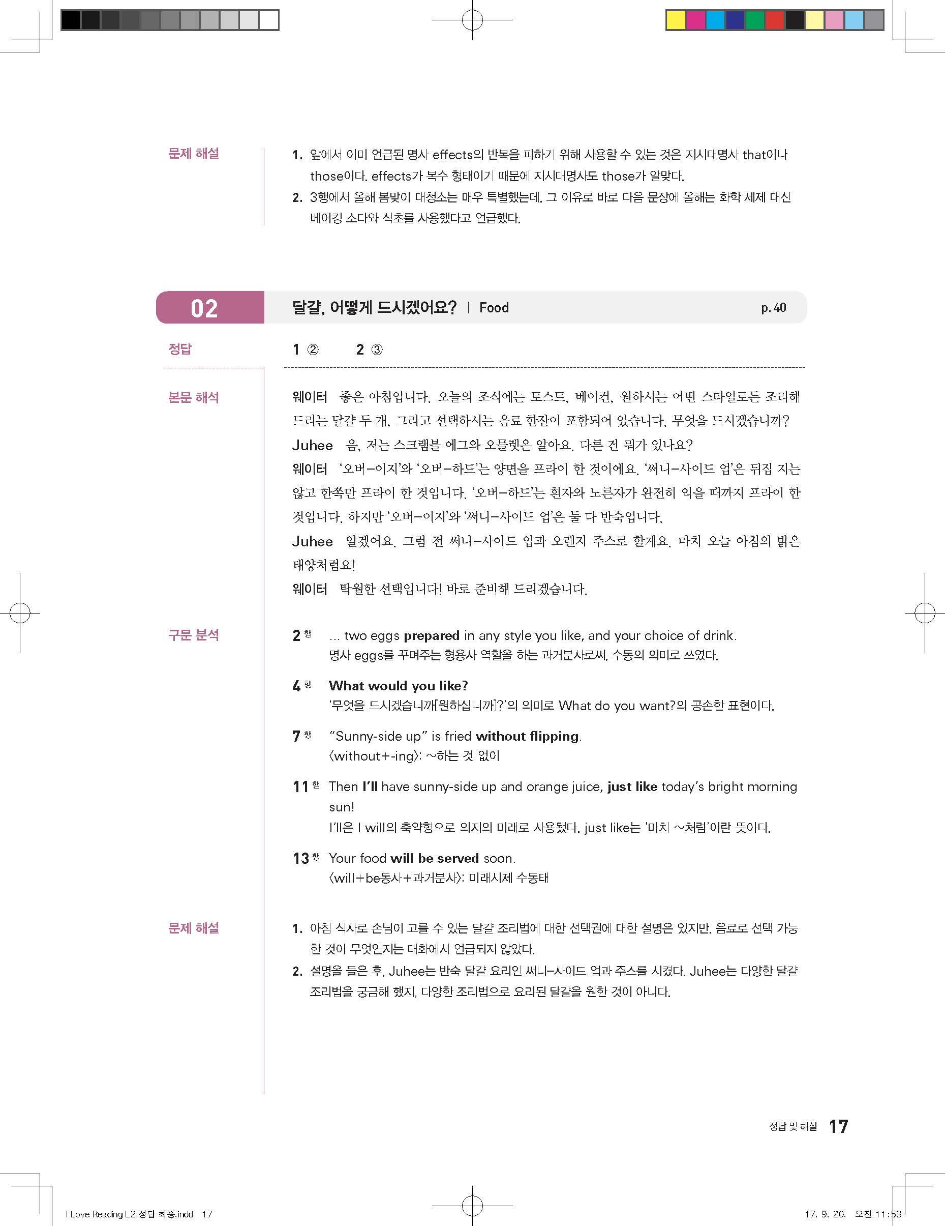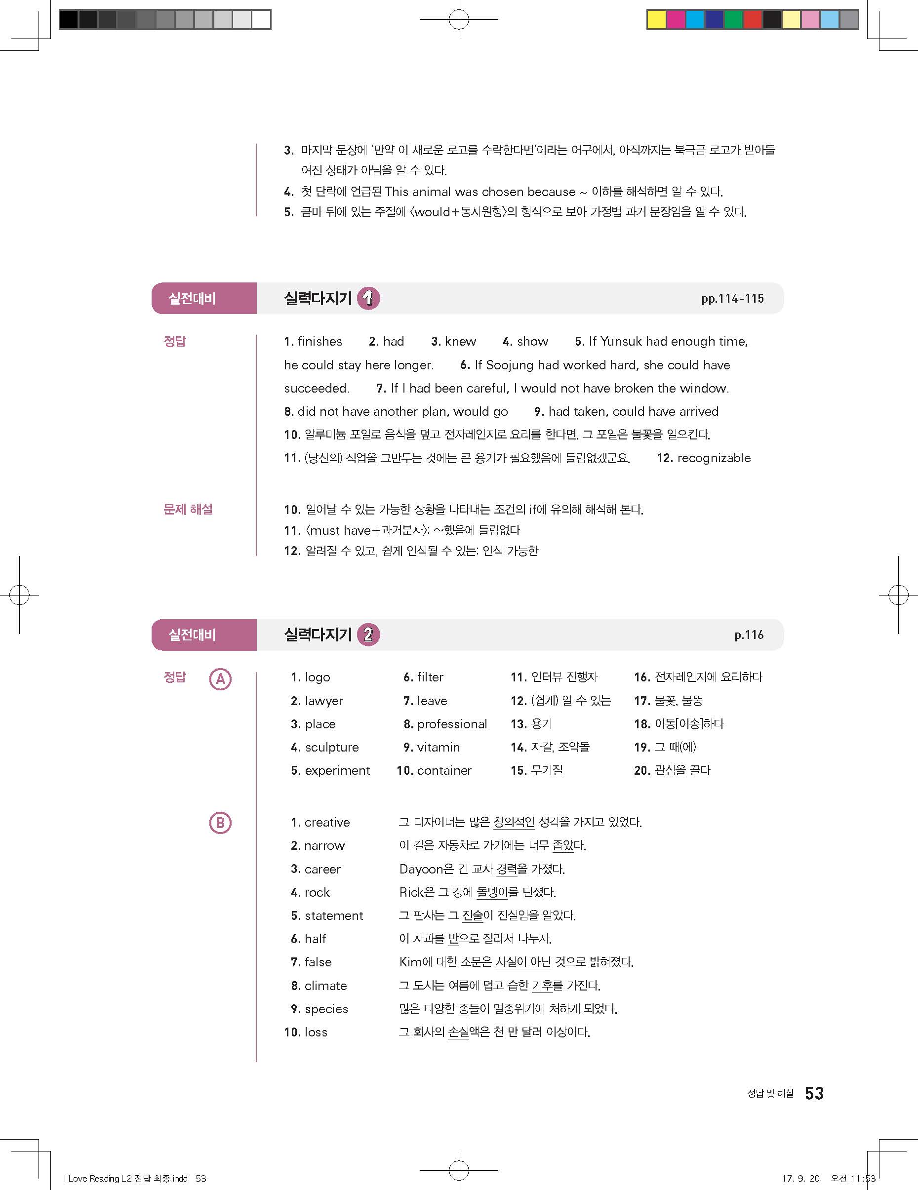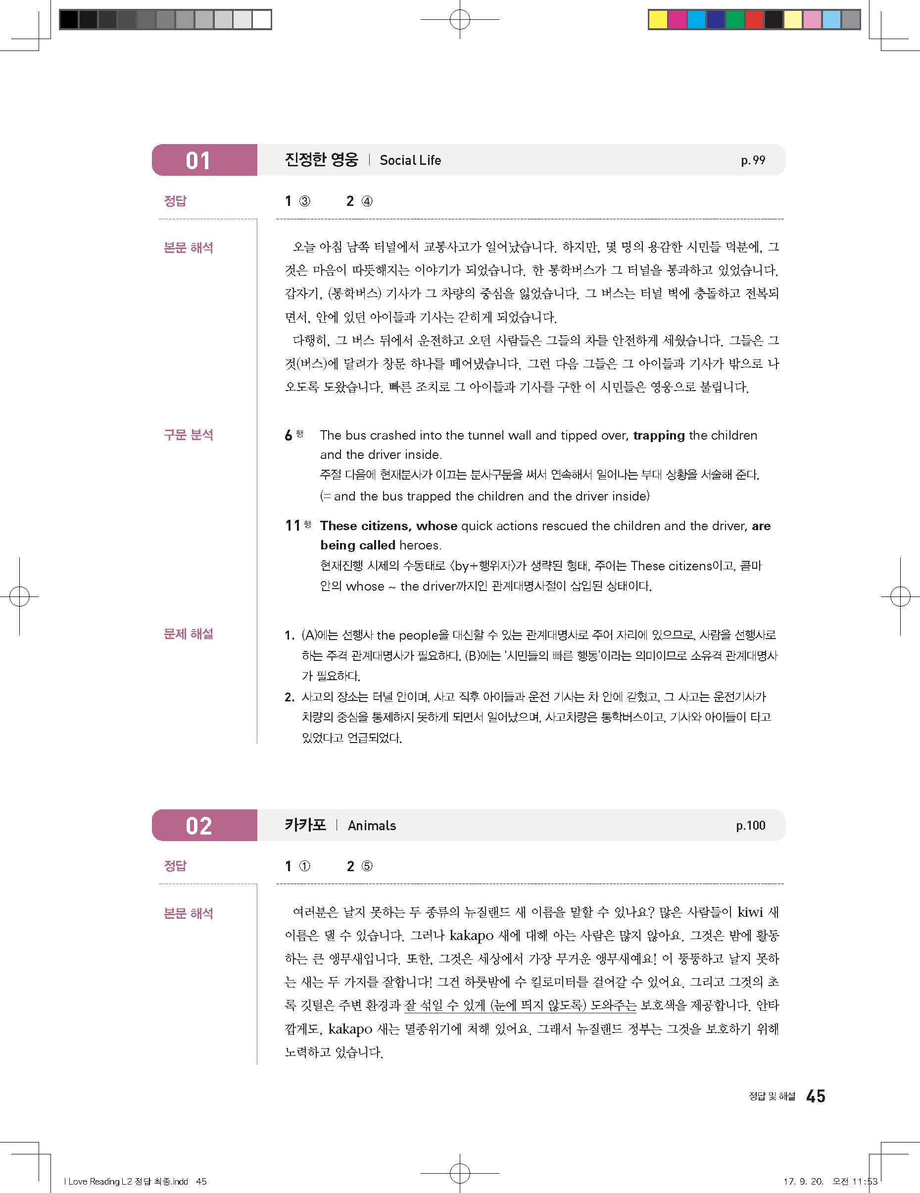 YBM시사 아이러브리딩 레벨2 I love Reading Level2 사진답지 빠른답지 모바일최적화