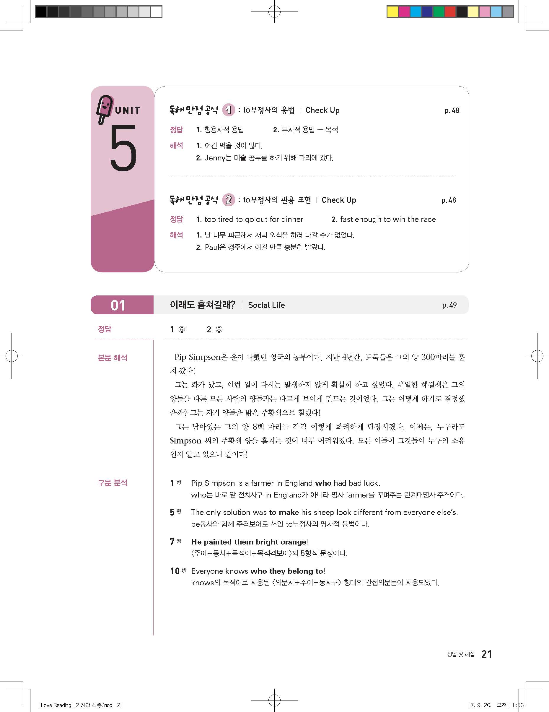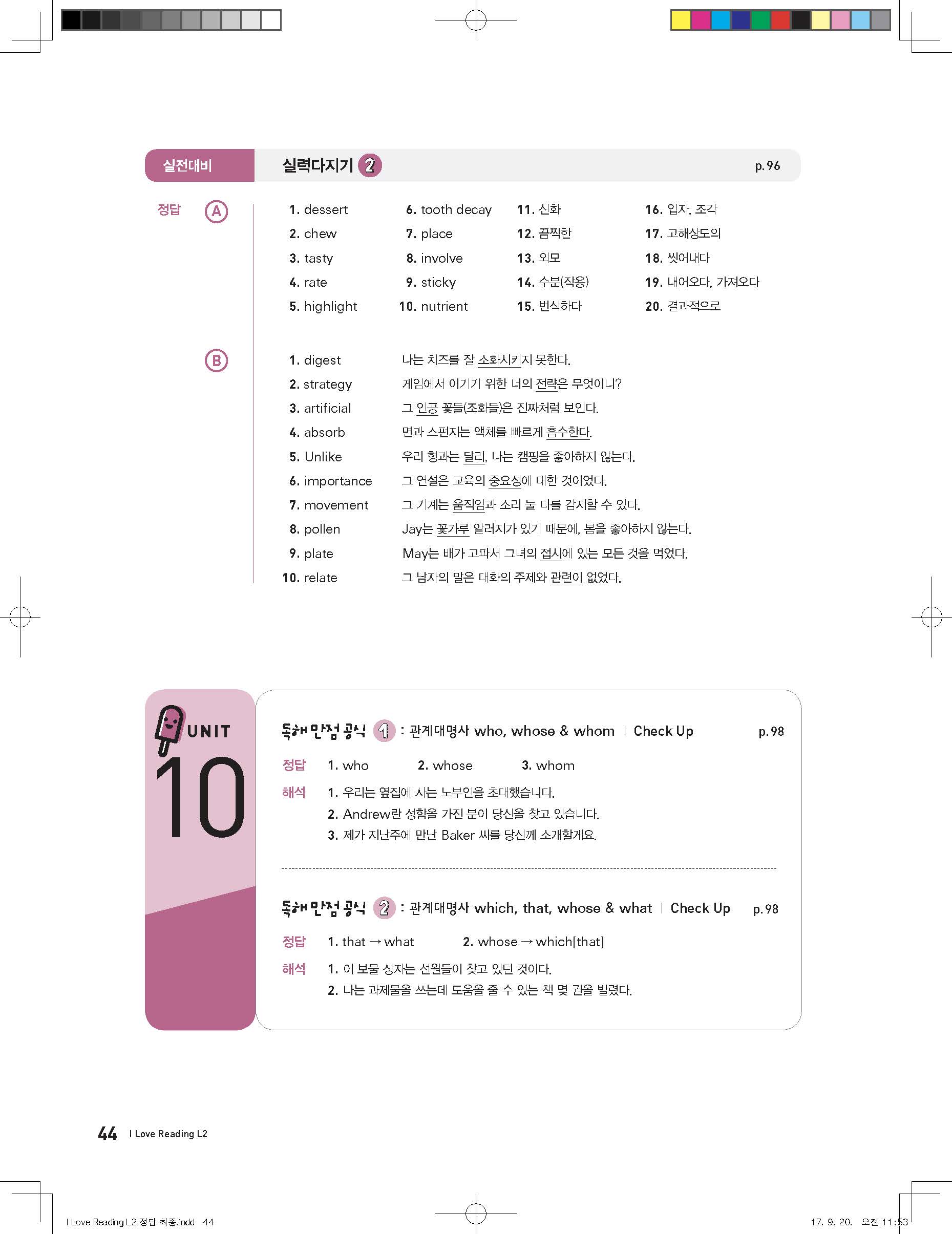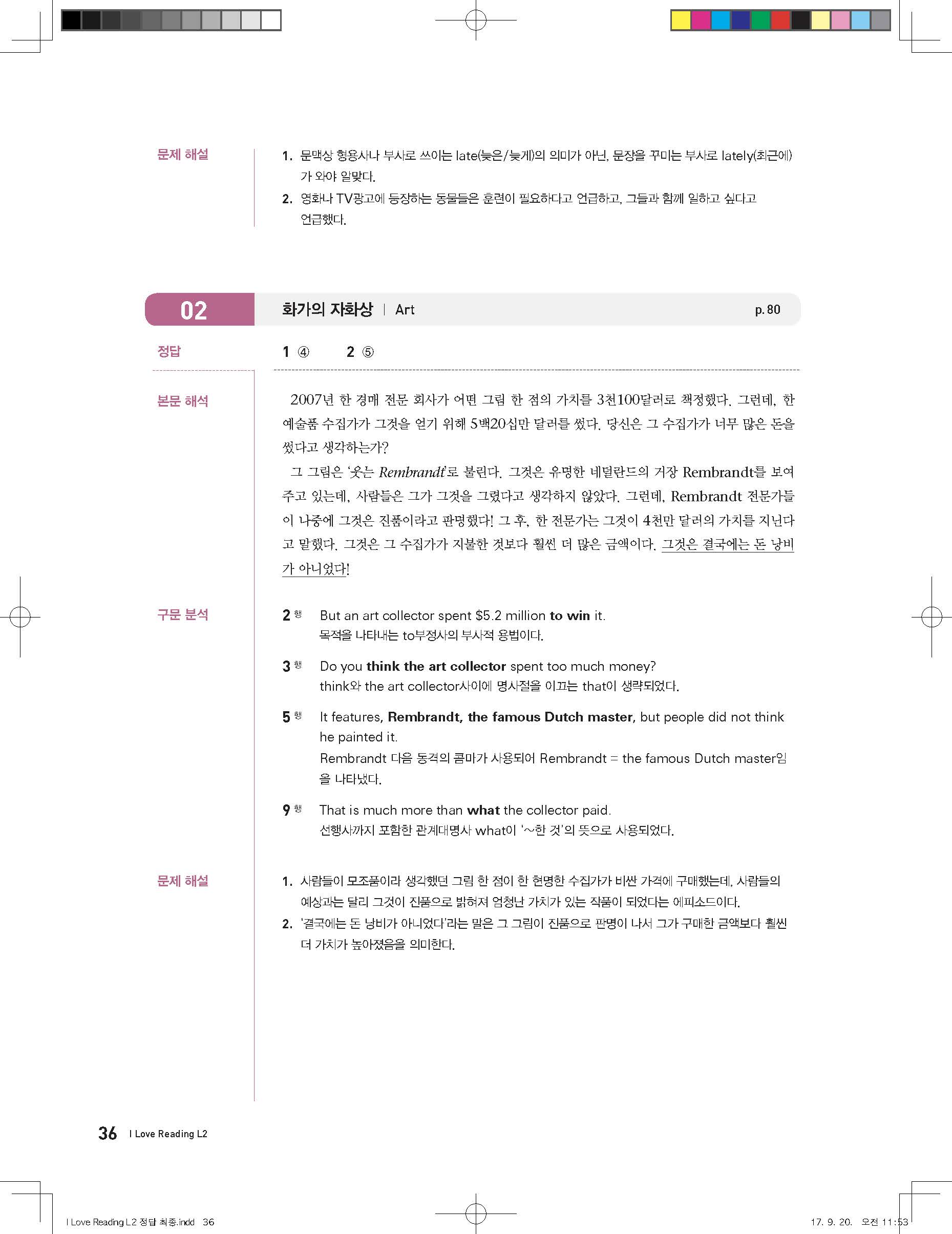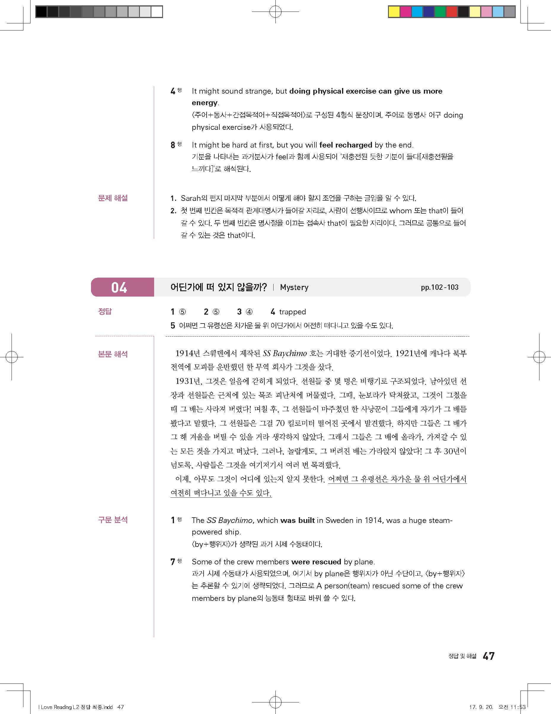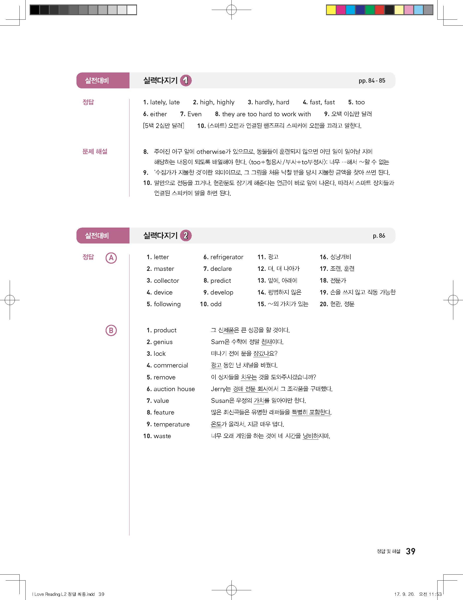 YBM시사 아이러브리딩 레벨2 I love Reading Level2 사진답지 빠른답지 모바일최적화