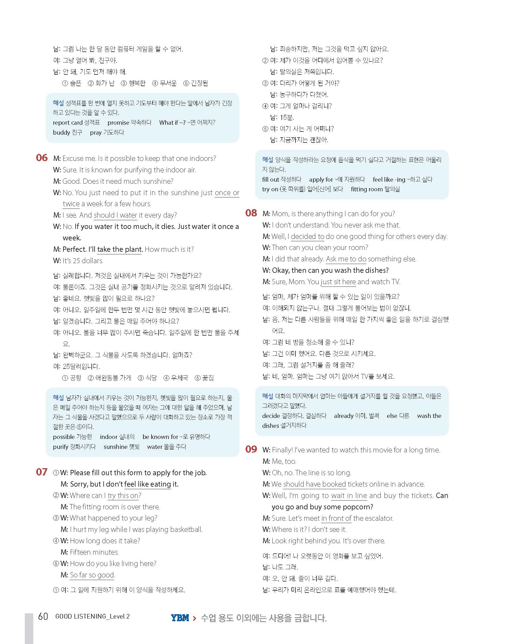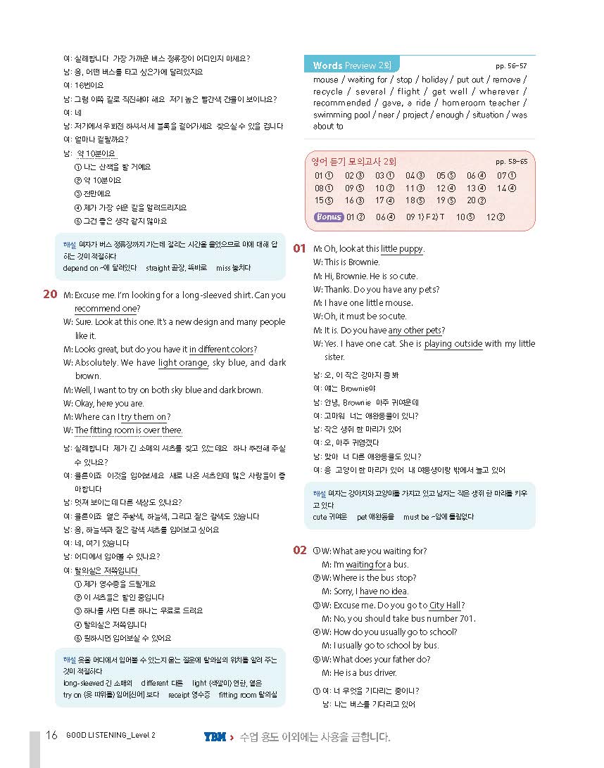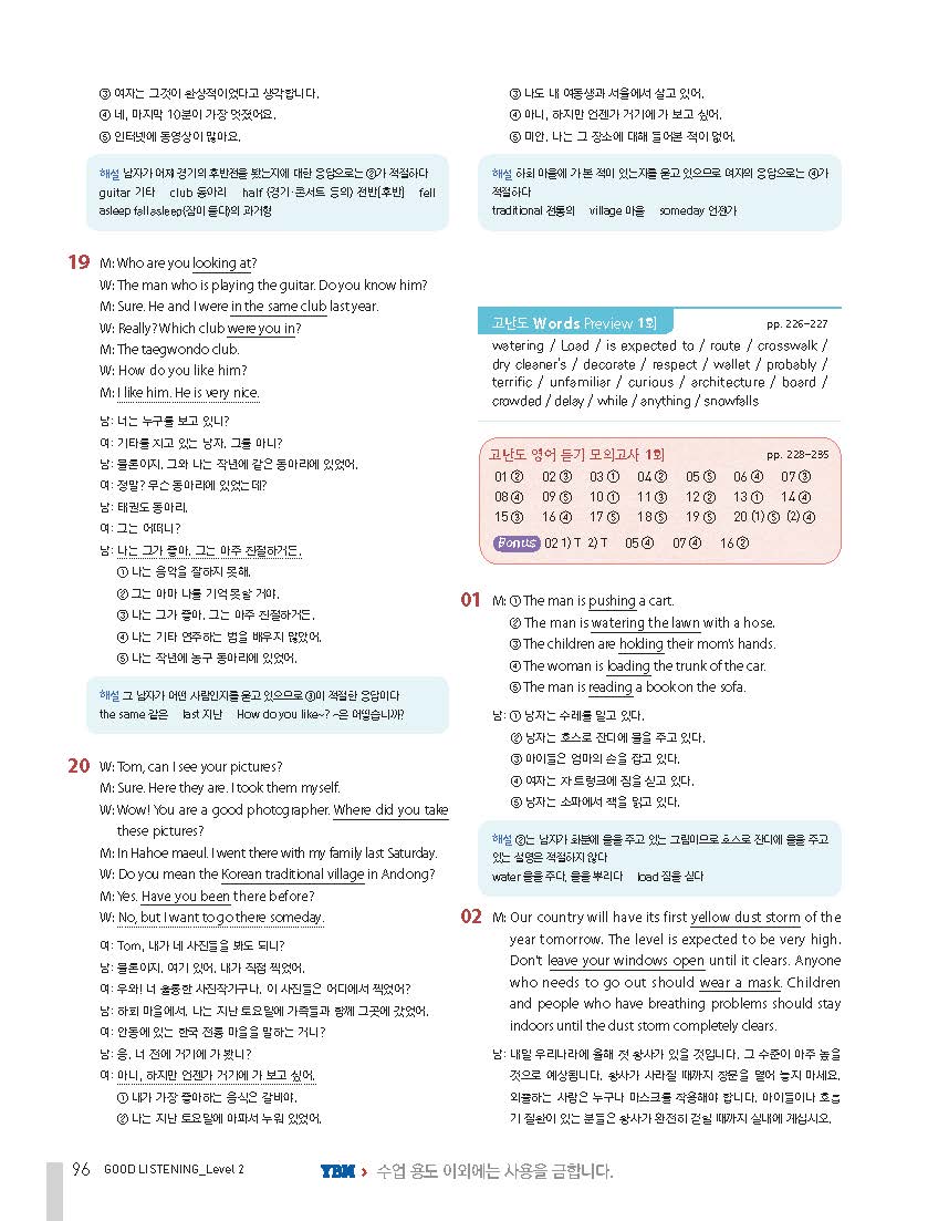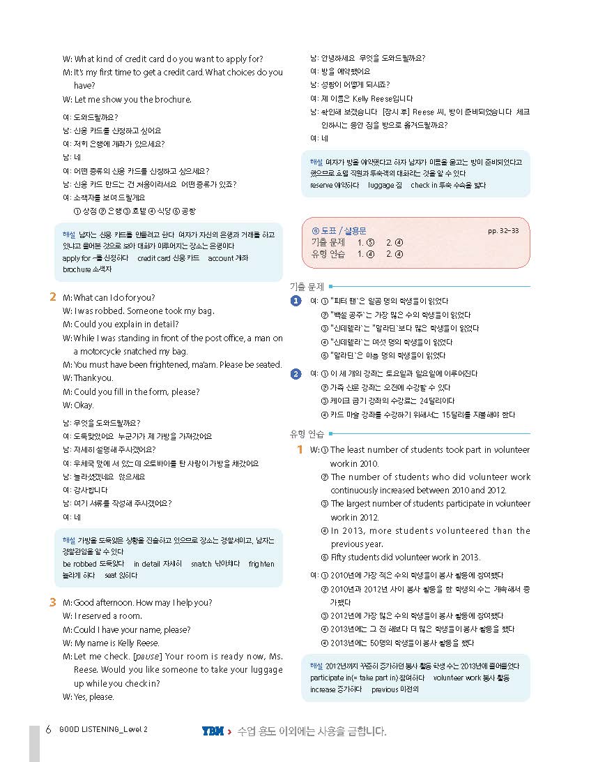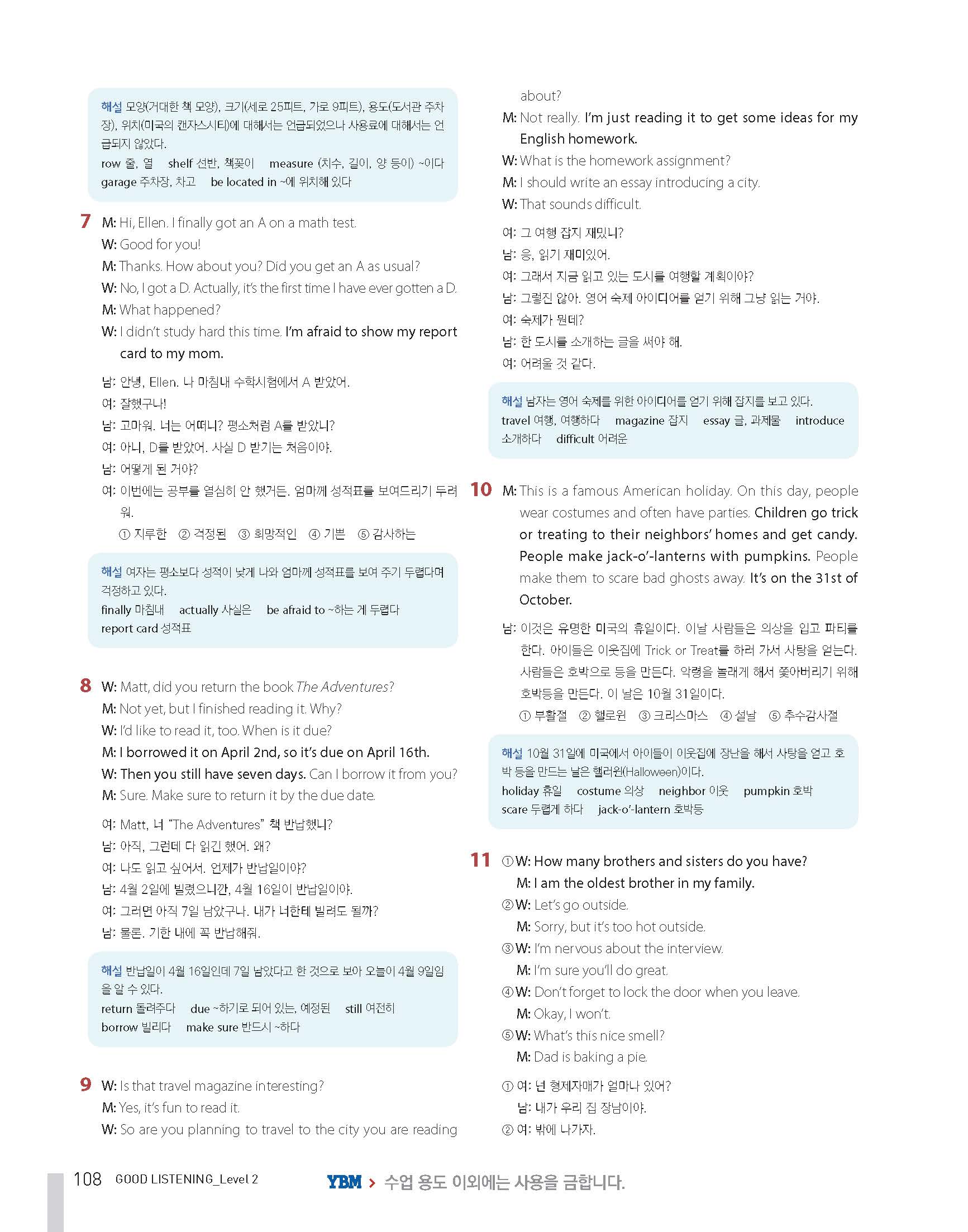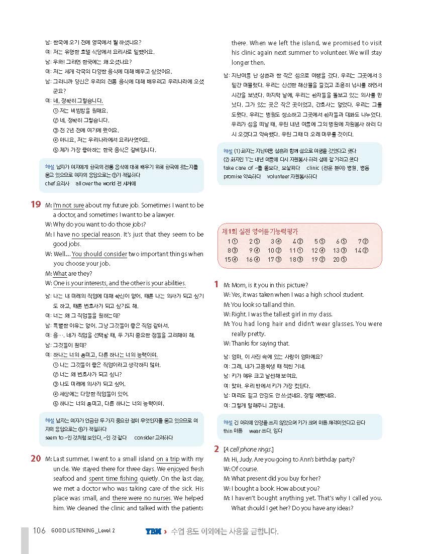 YBM시사 굿리스닝2 Good Listening 2 사진답지 빠른답지 모바일최적화