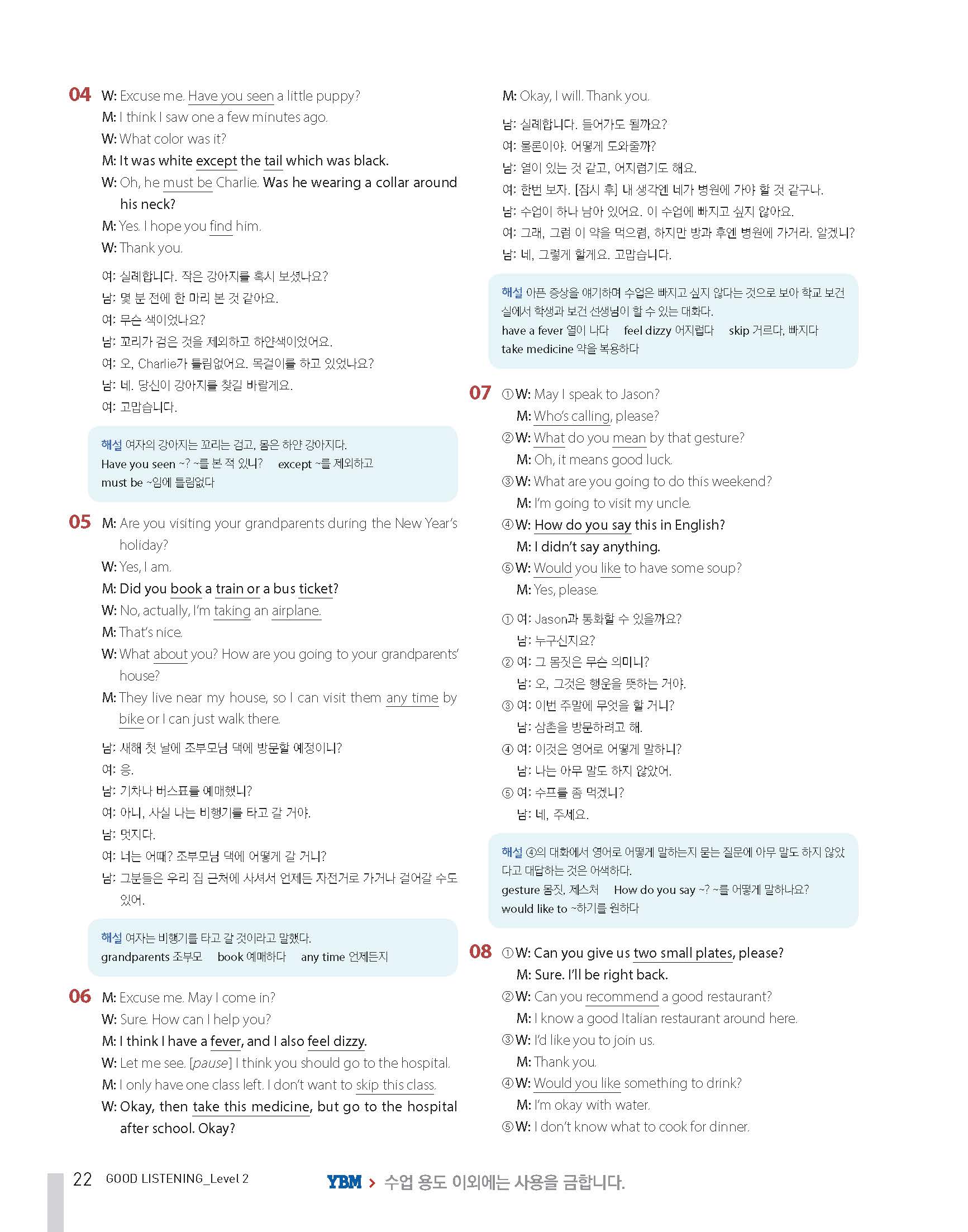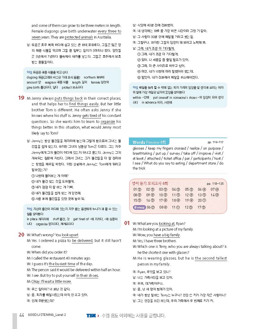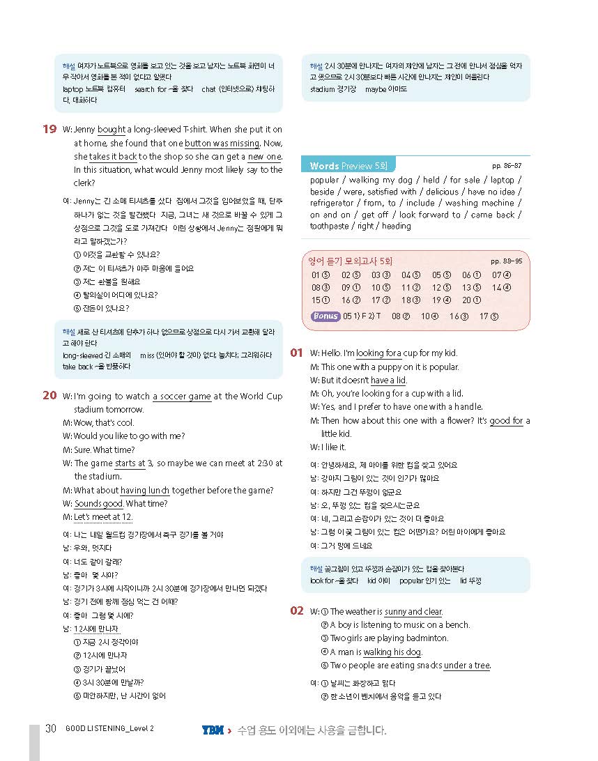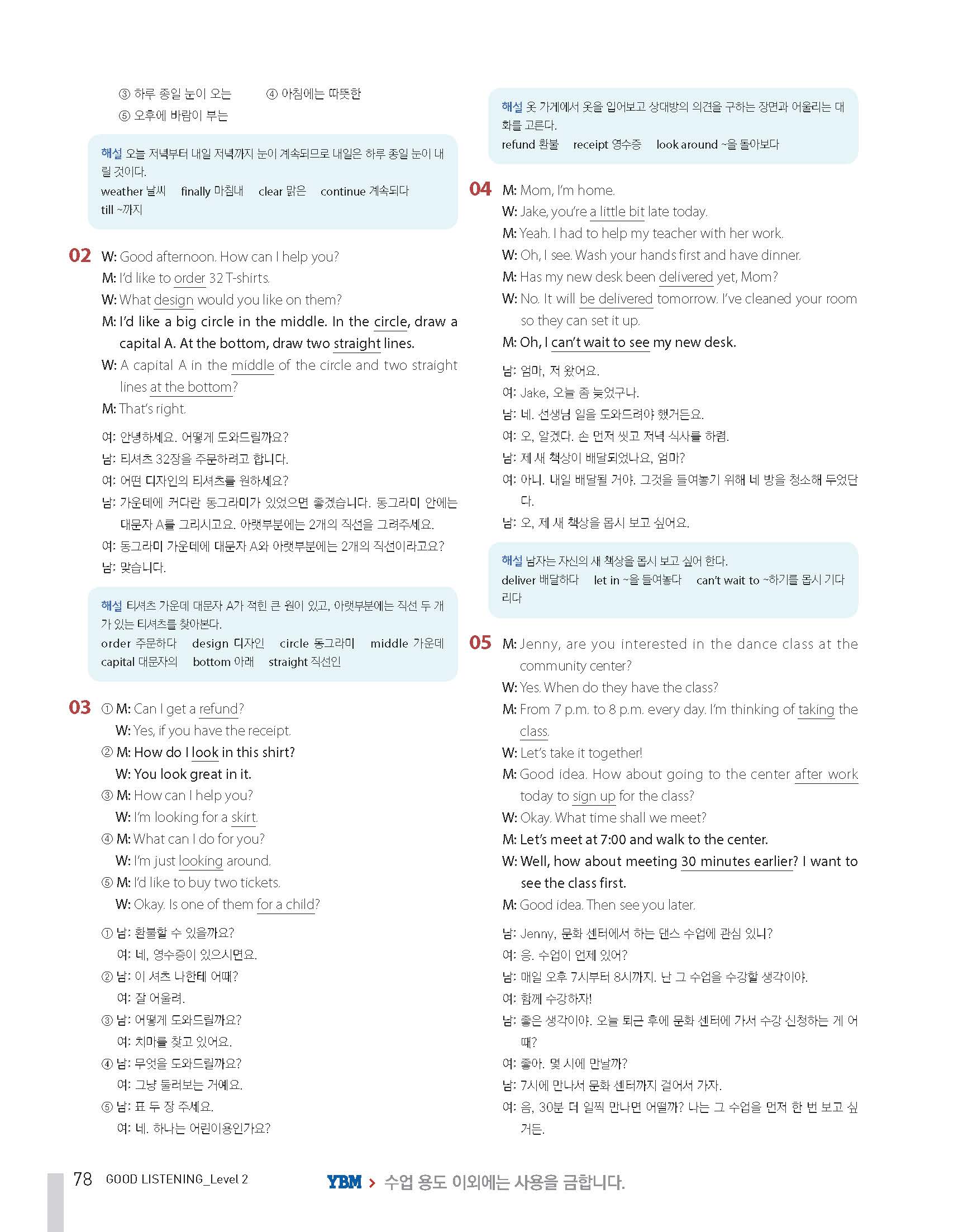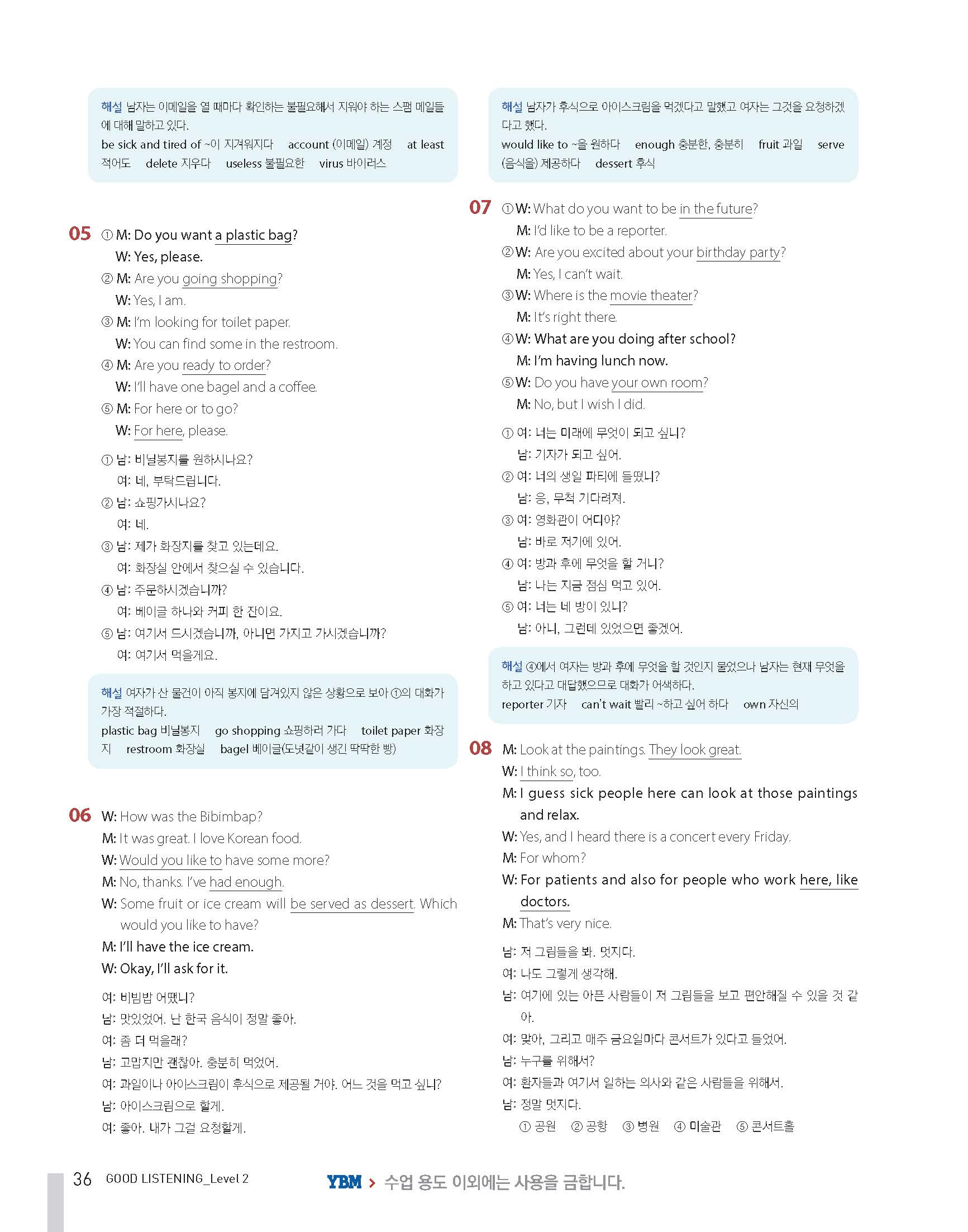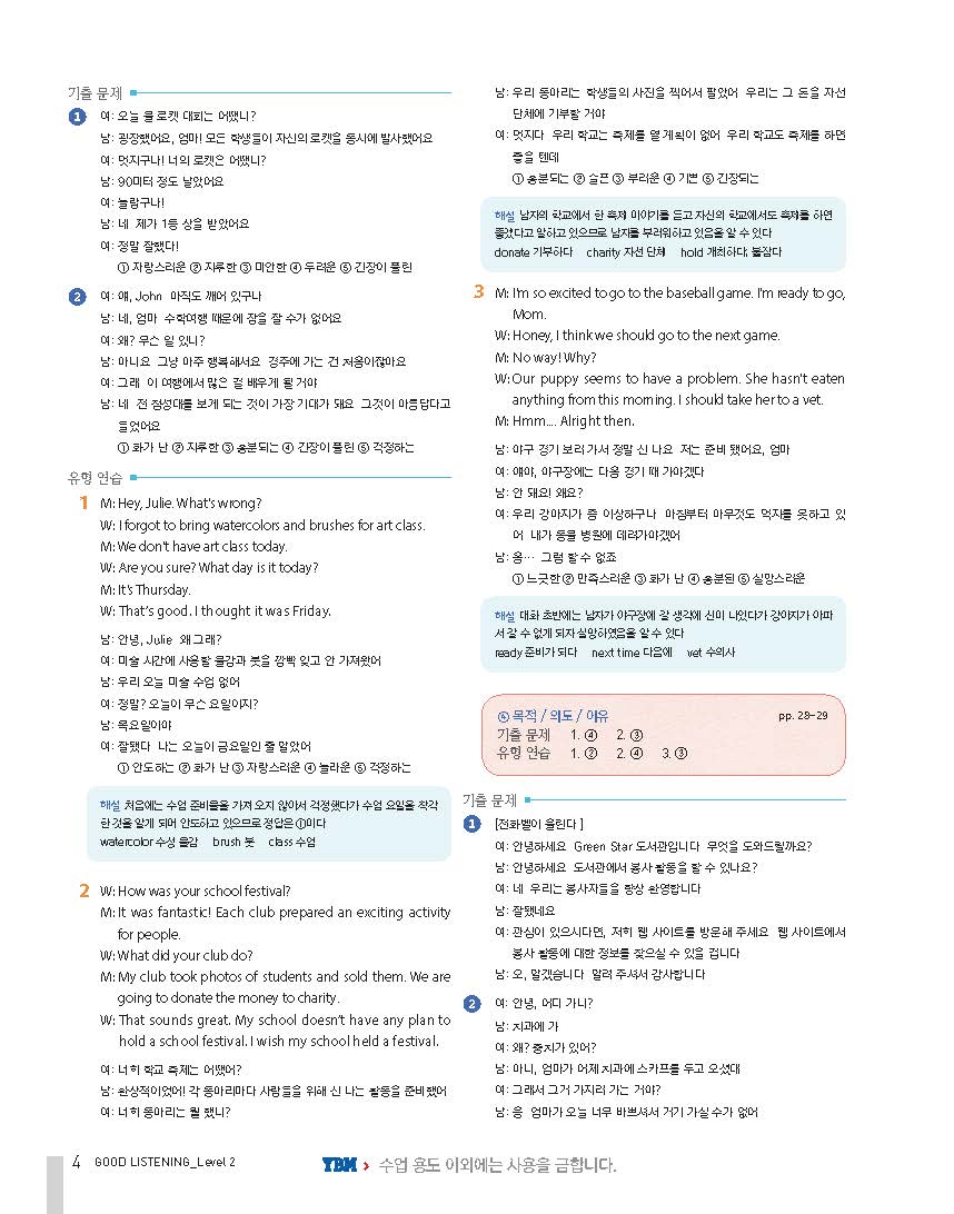 YBM시사 굿리스닝2 Good Listening 2 사진답지 빠른답지 모바일최적화