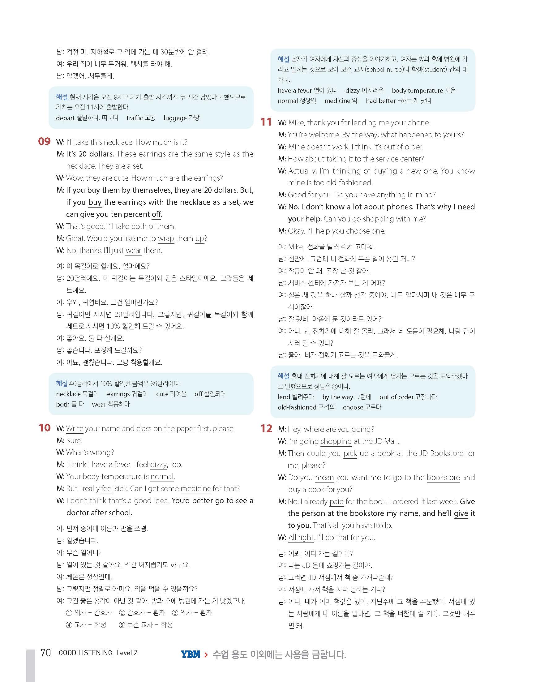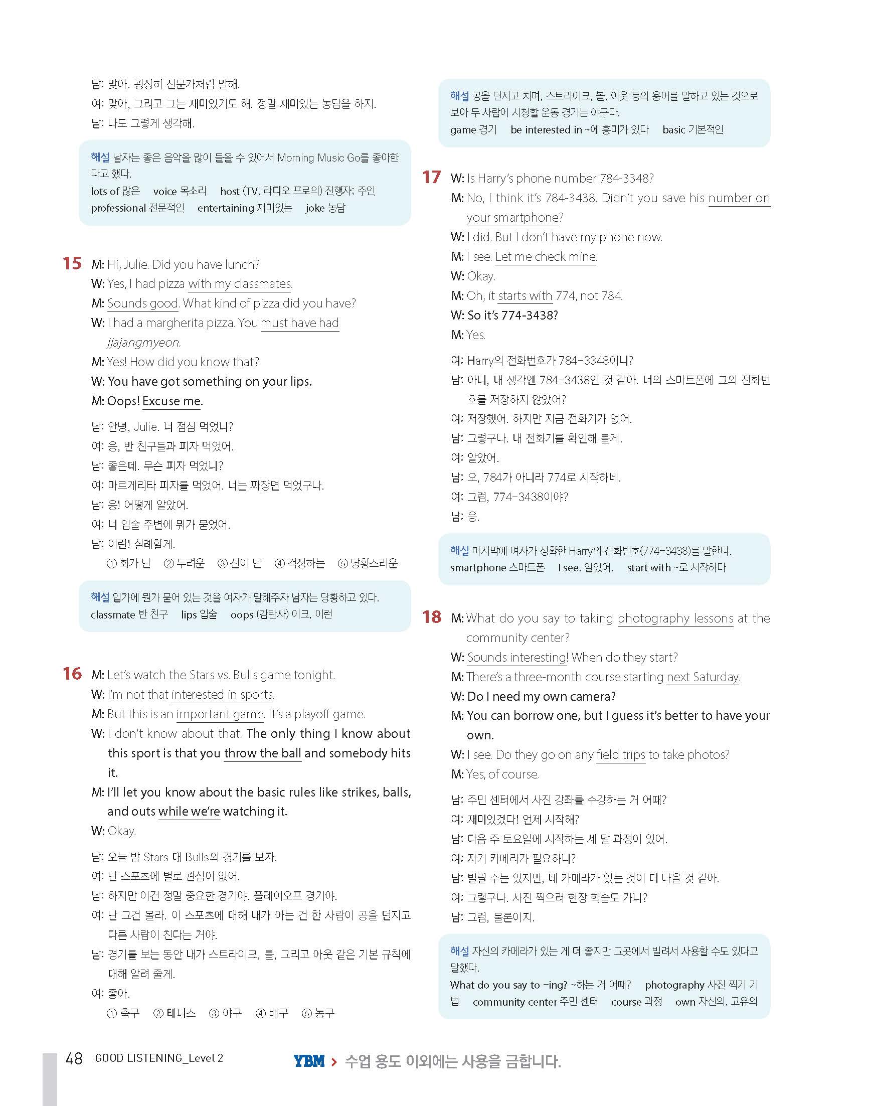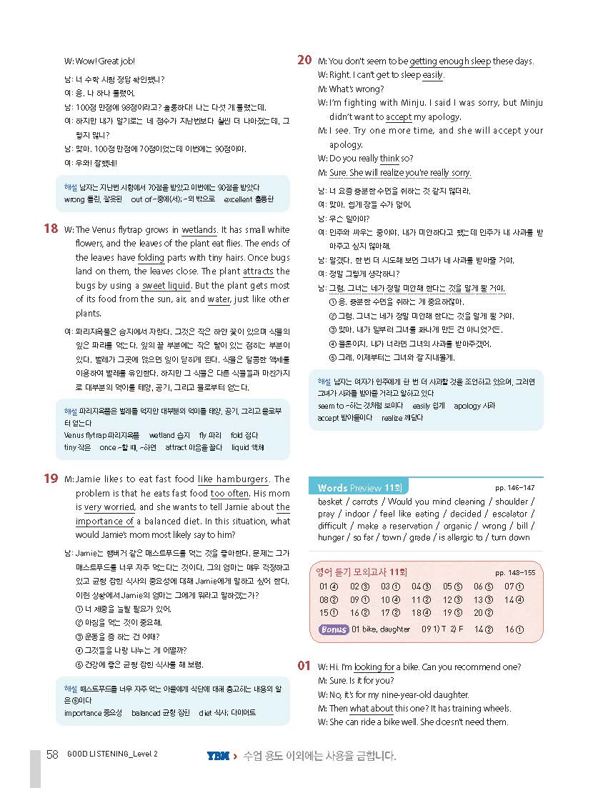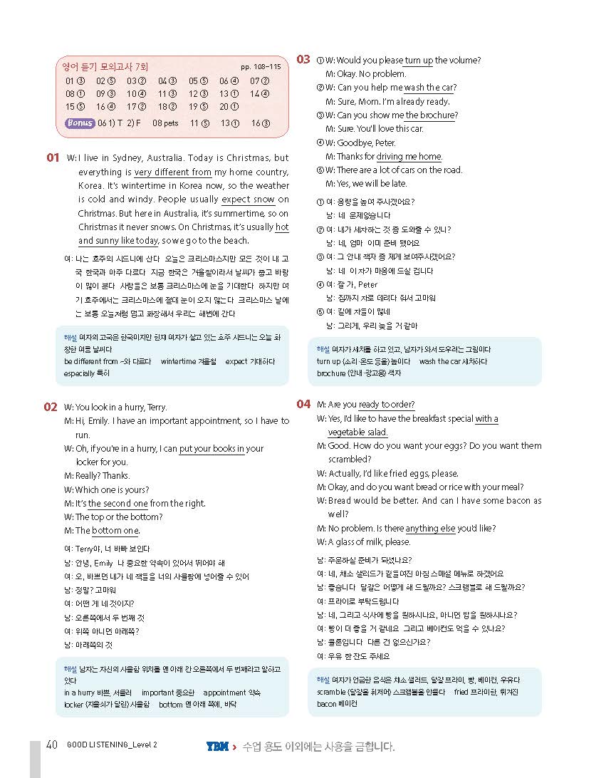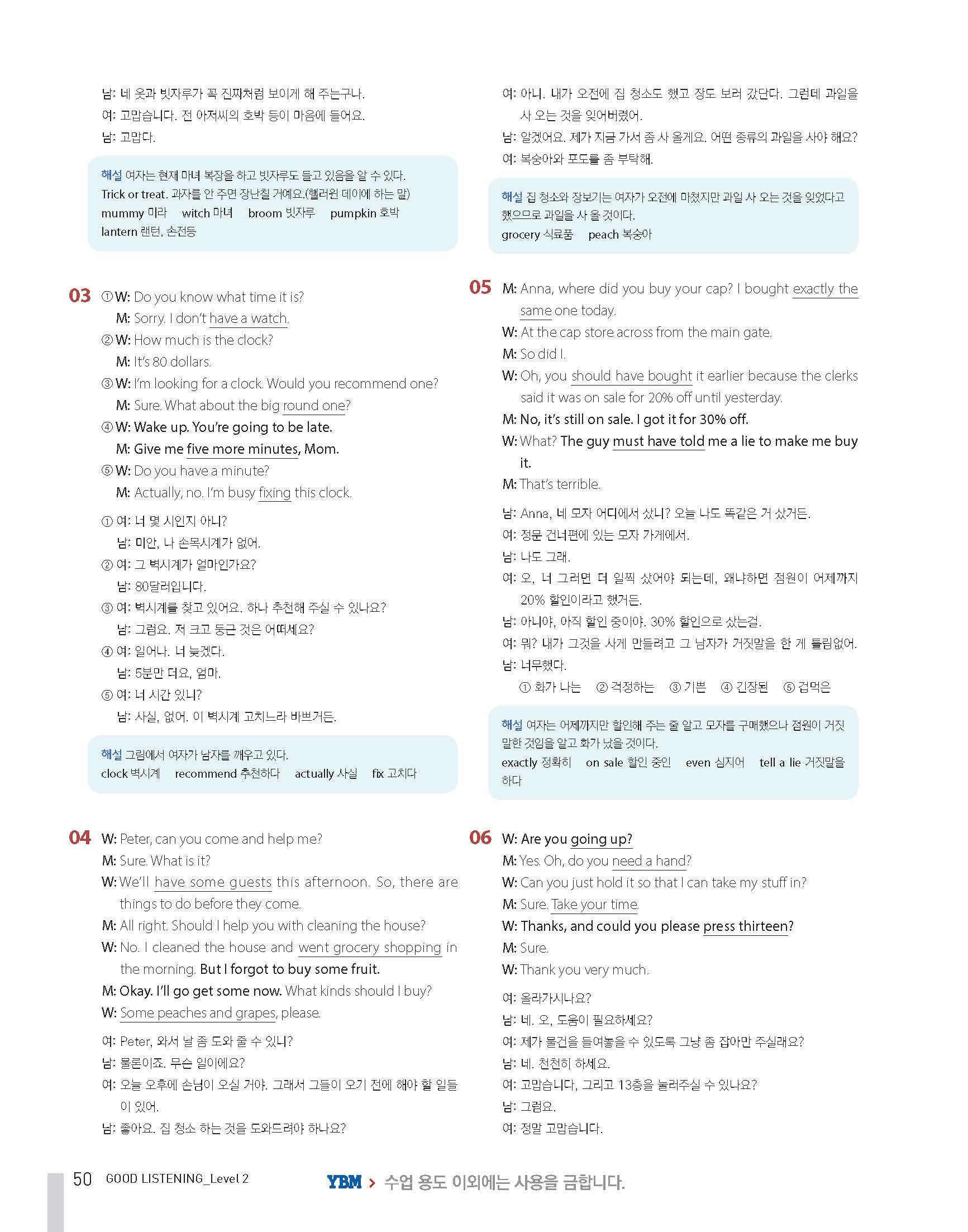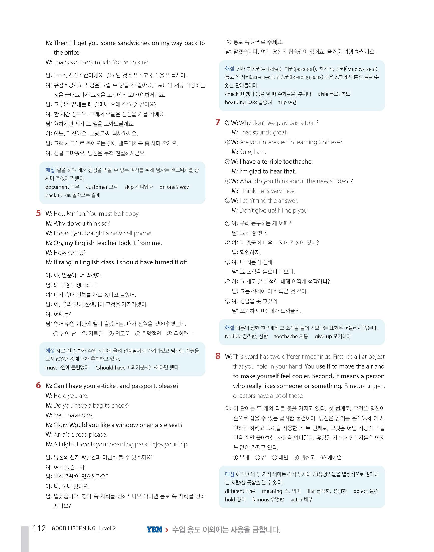 YBM시사 굿리스닝2 Good Listening 2 사진답지 빠른답지 모바일최적화