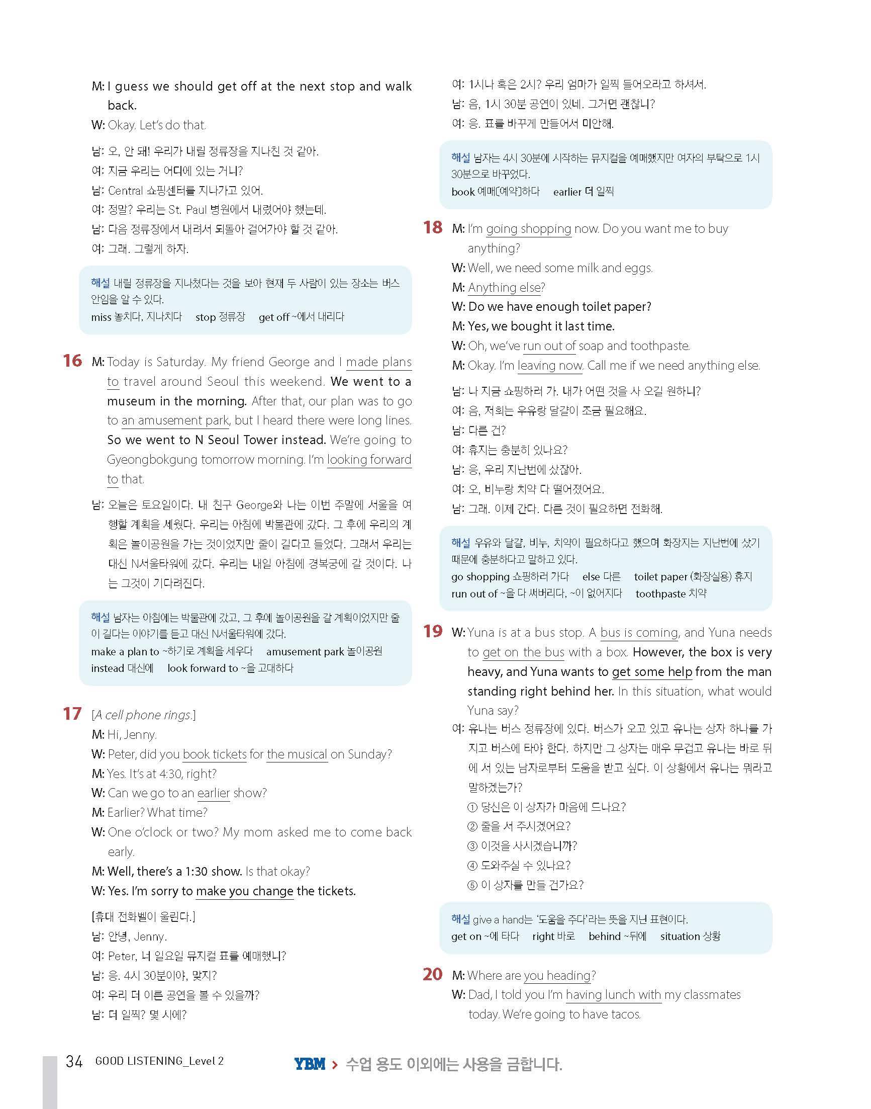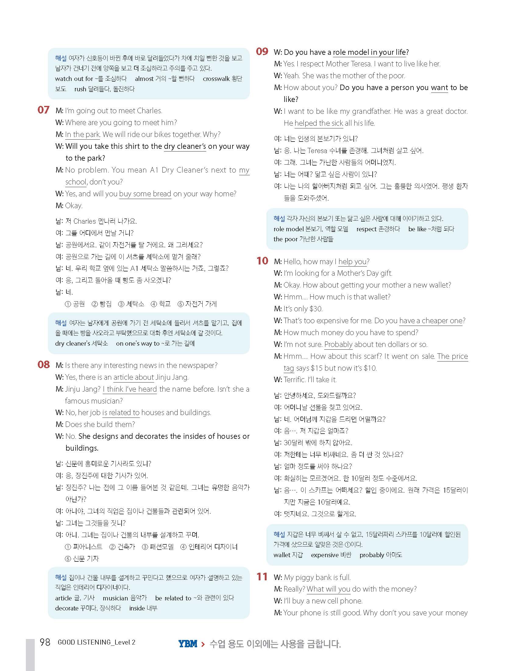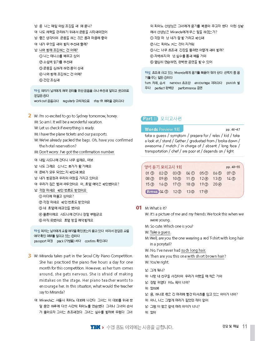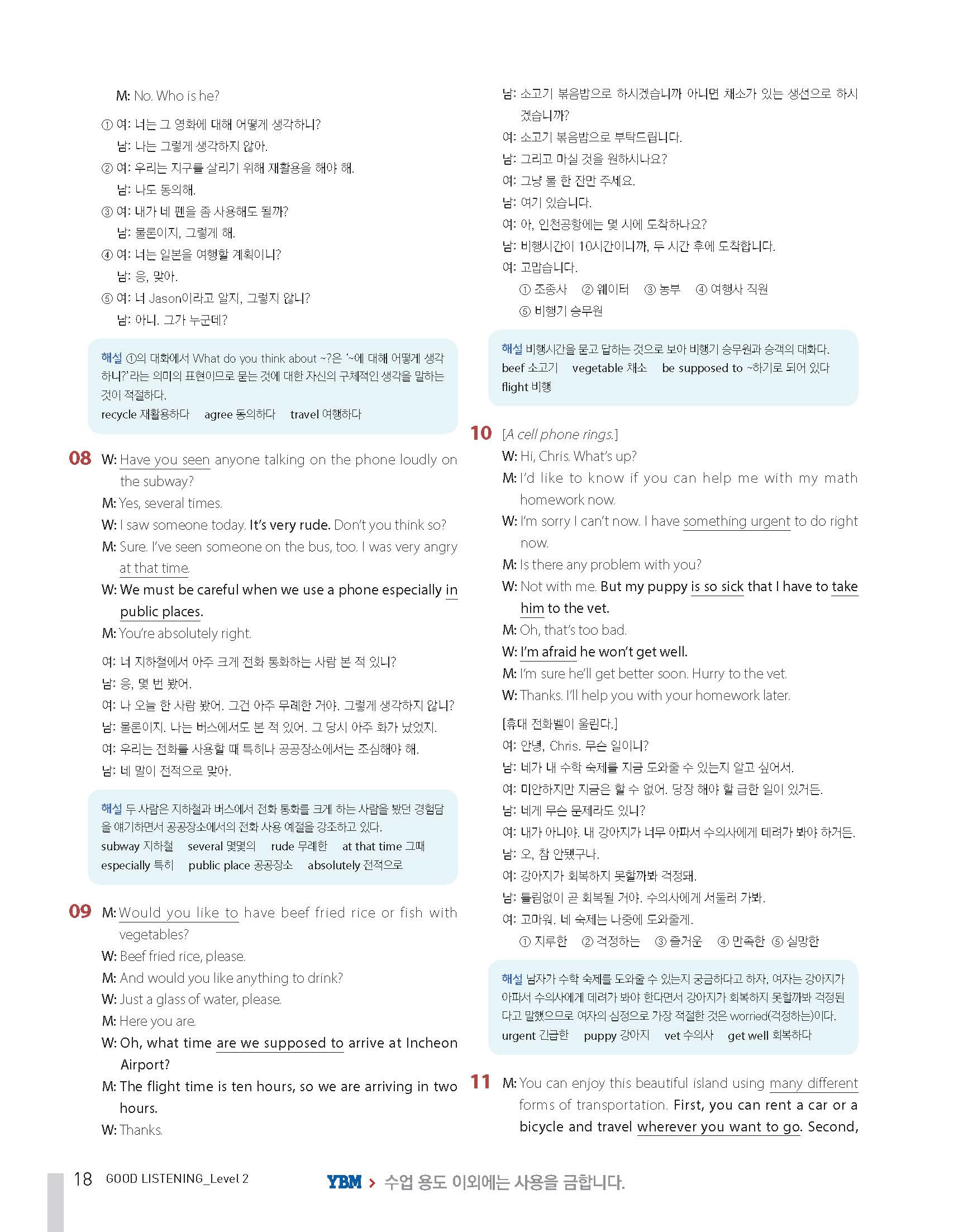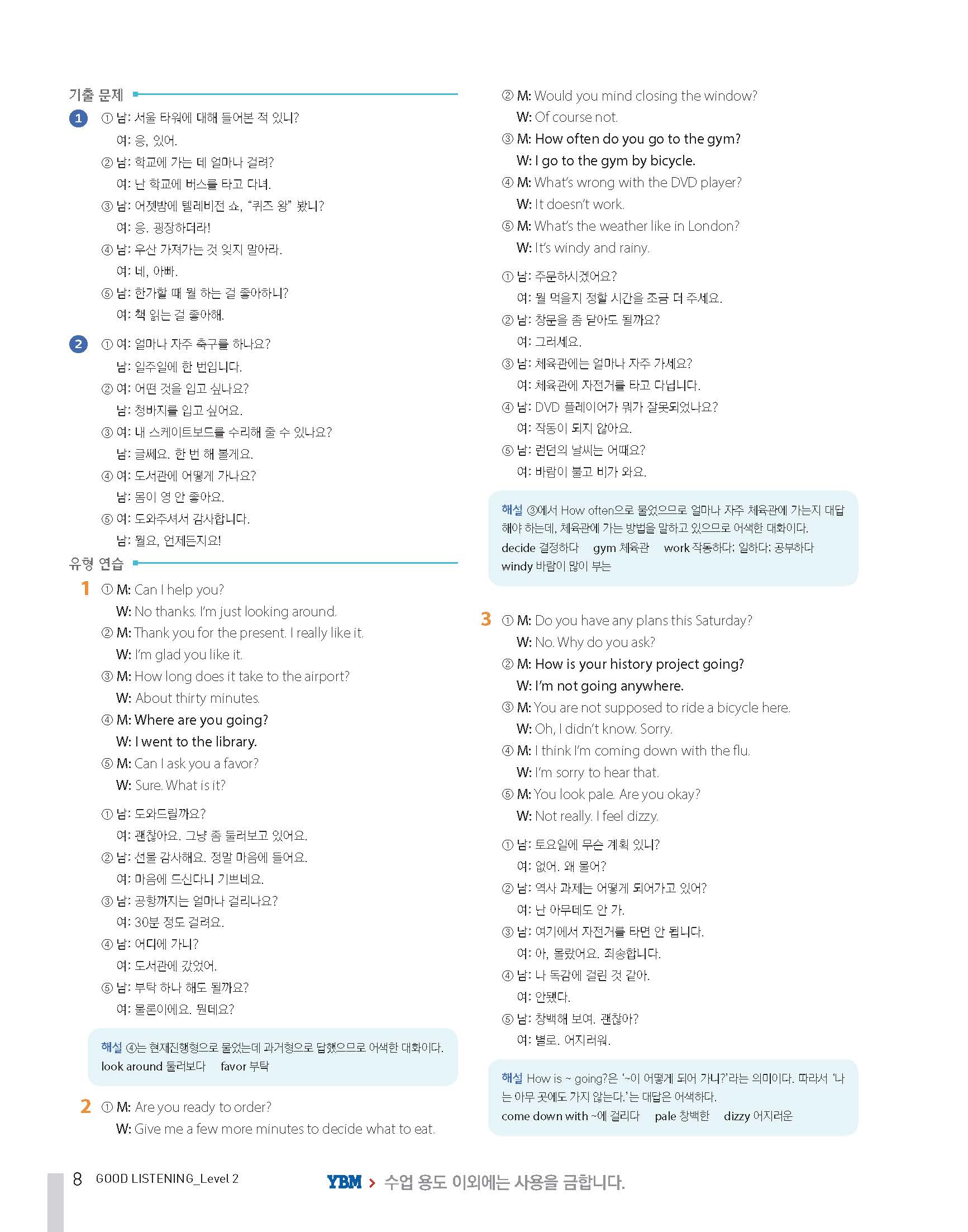 YBM시사 굿리스닝2 Good Listening 2 사진답지 빠른답지 모바일최적화