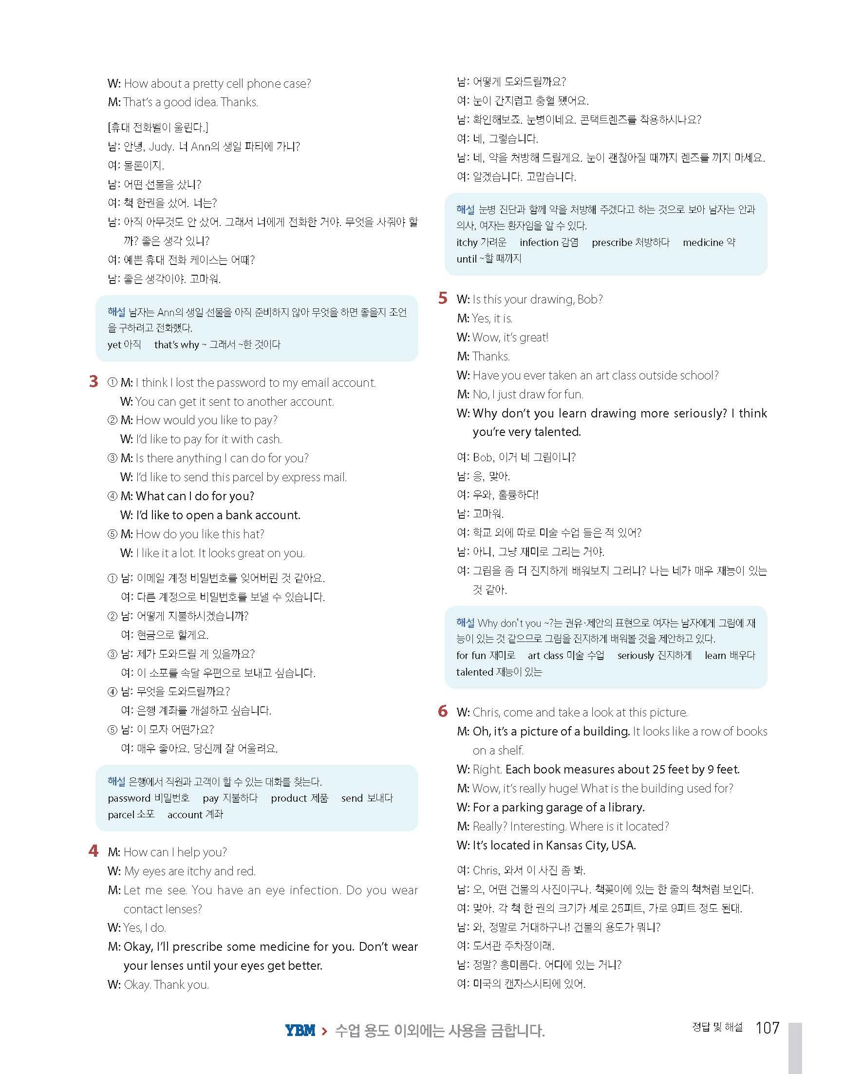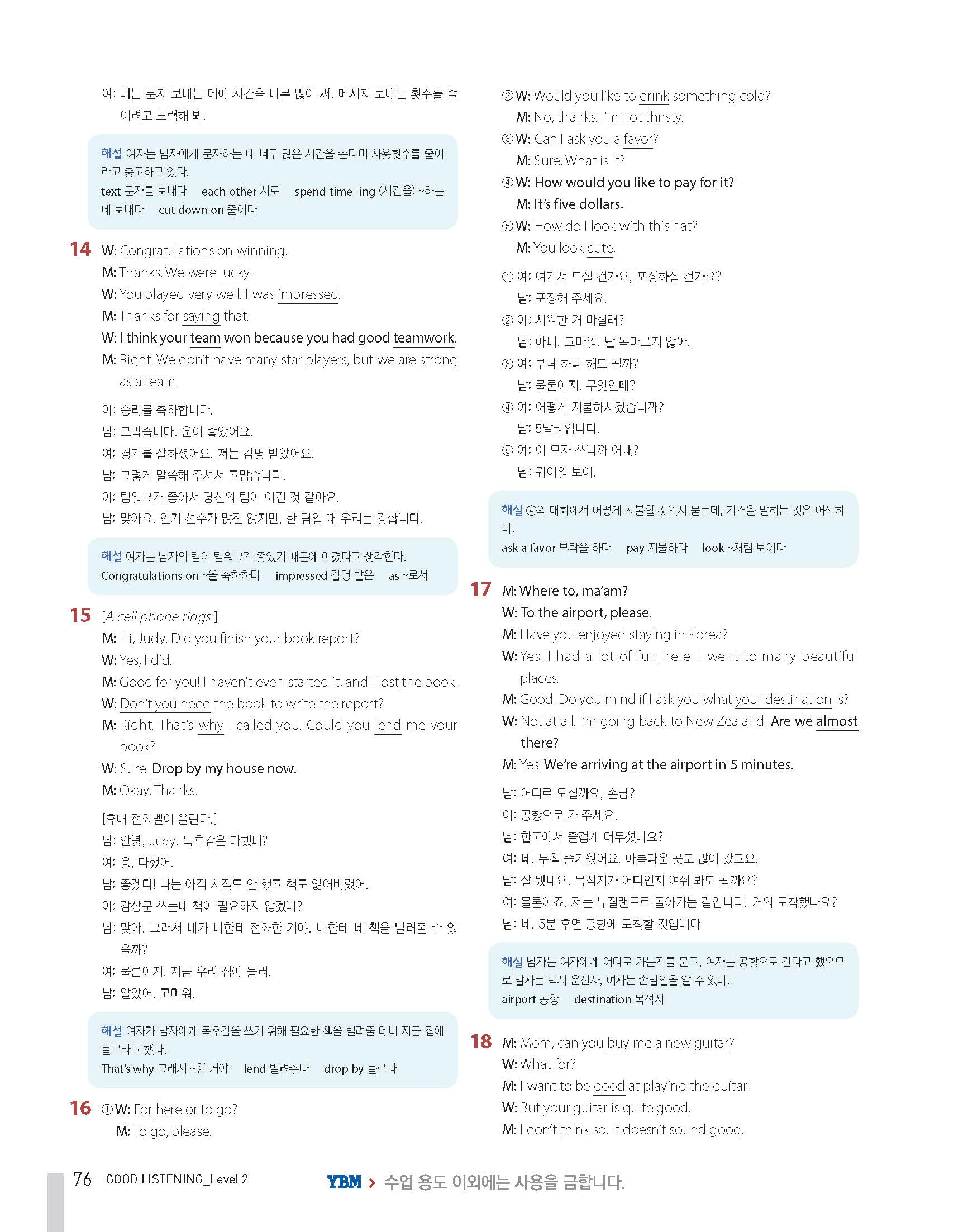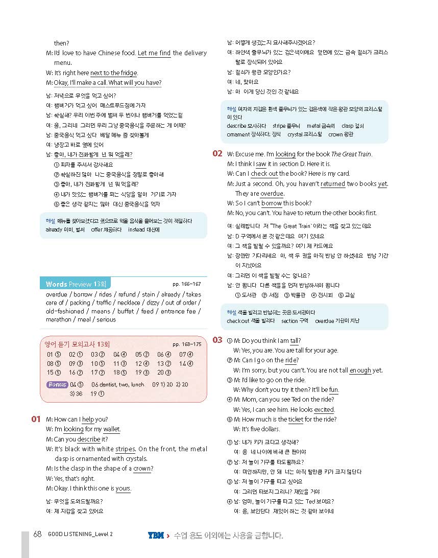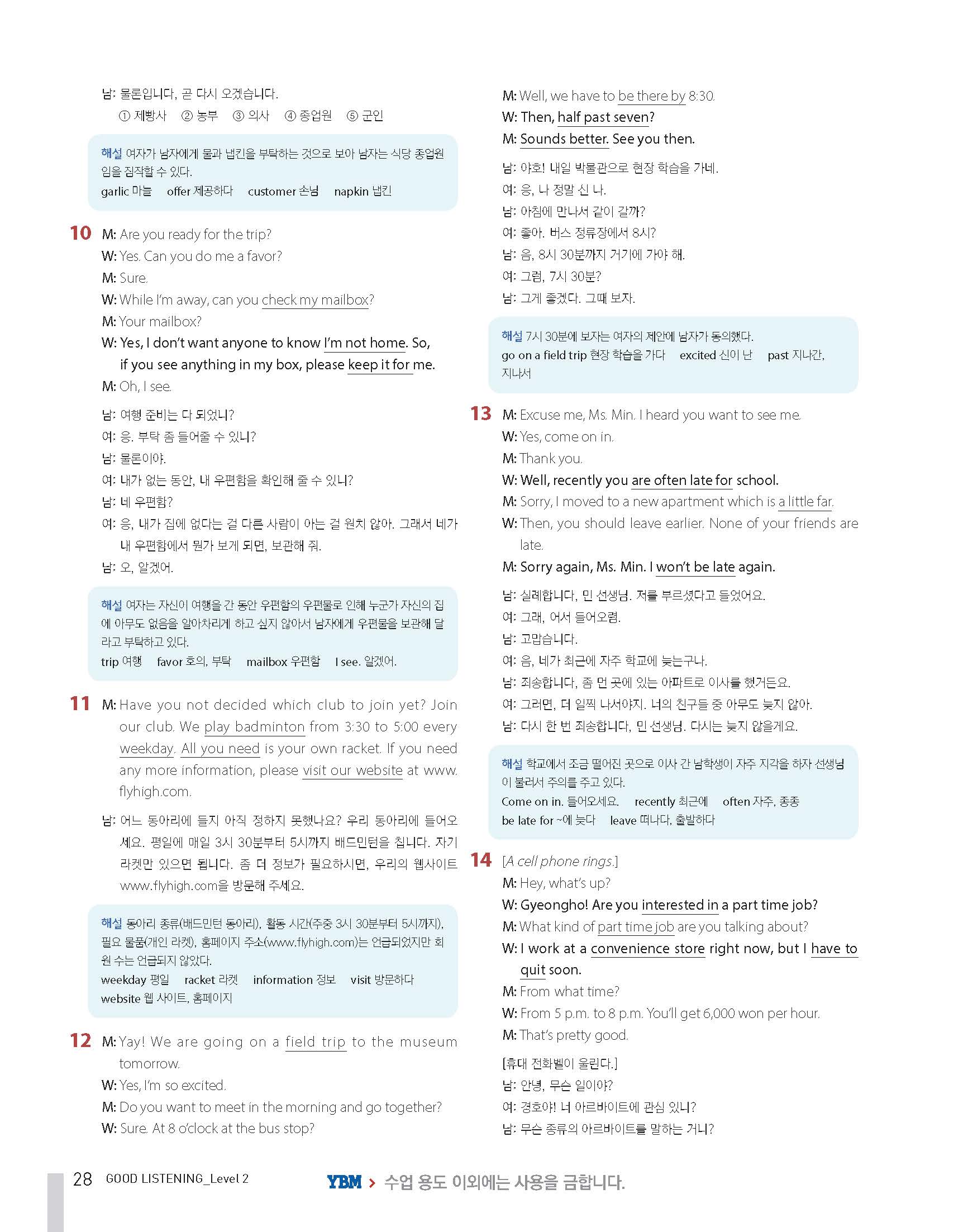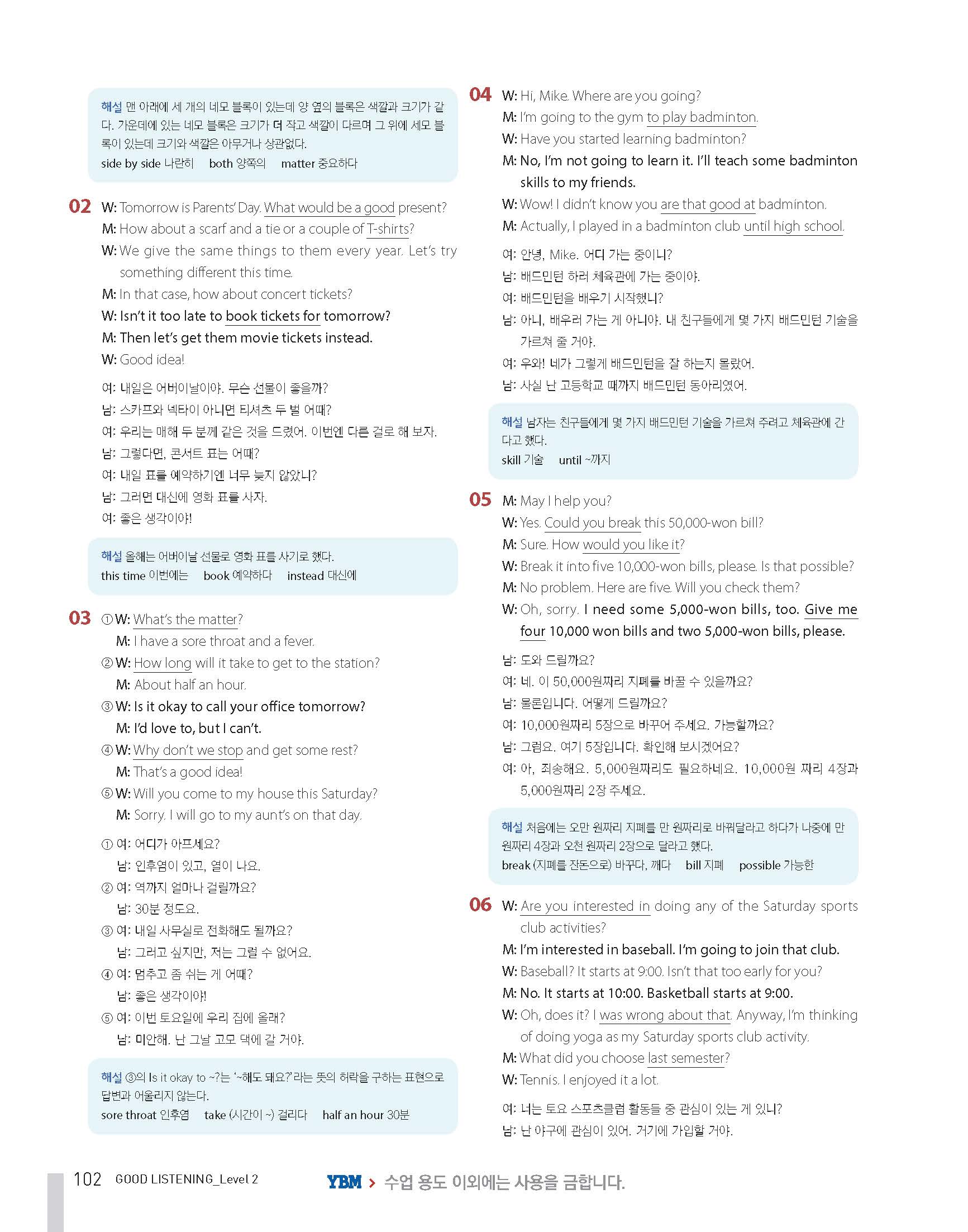 YBM시사 굿리스닝2 Good Listening 2 사진답지 빠른답지 모바일최적화
