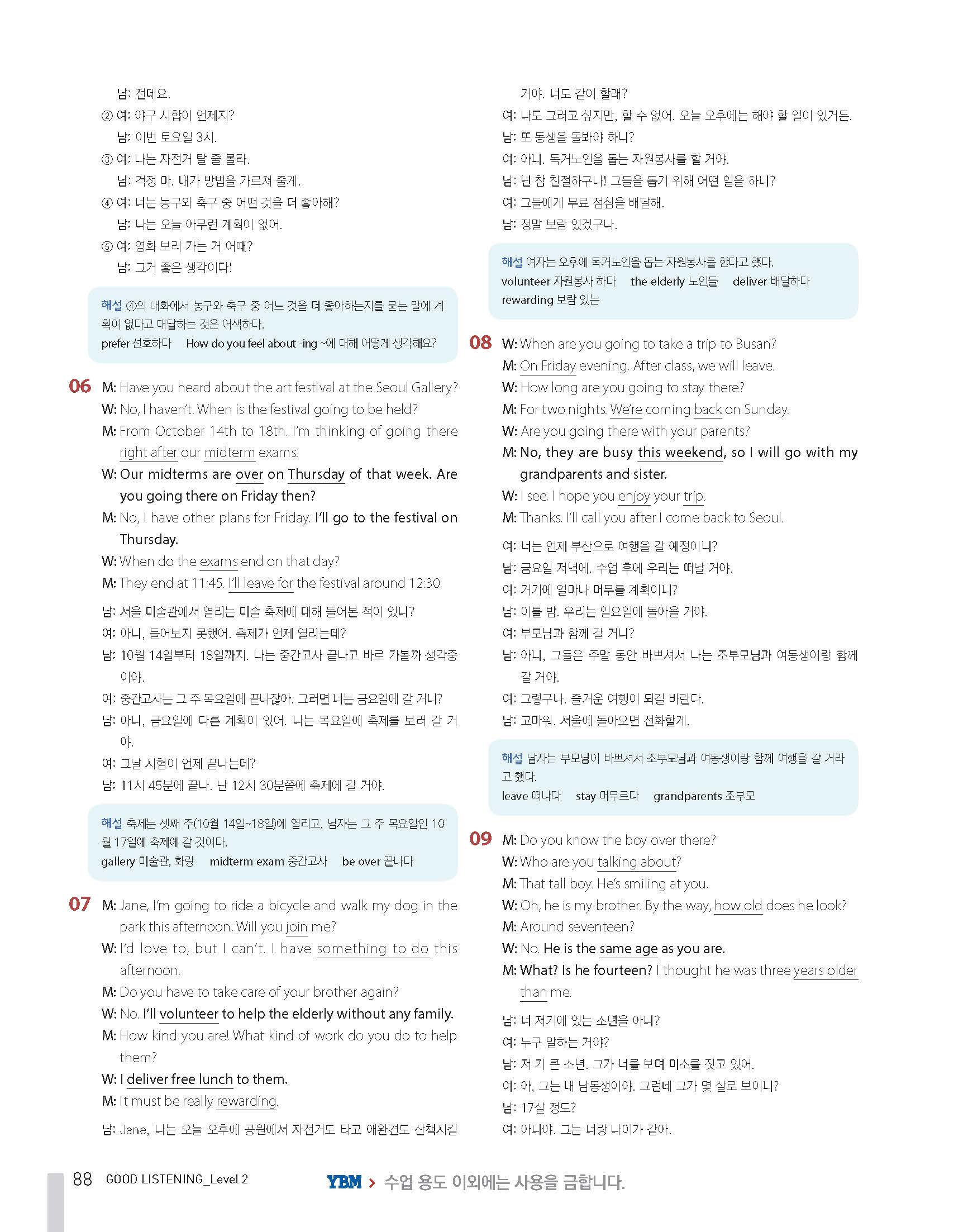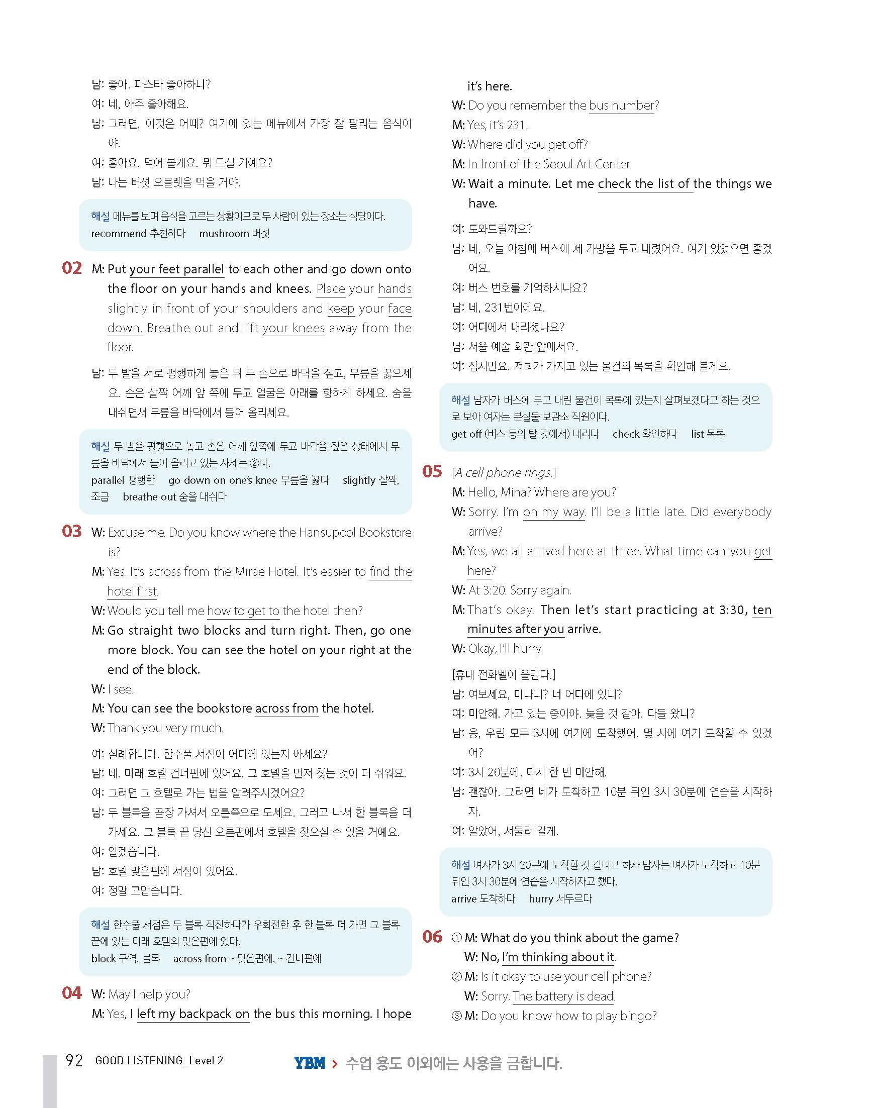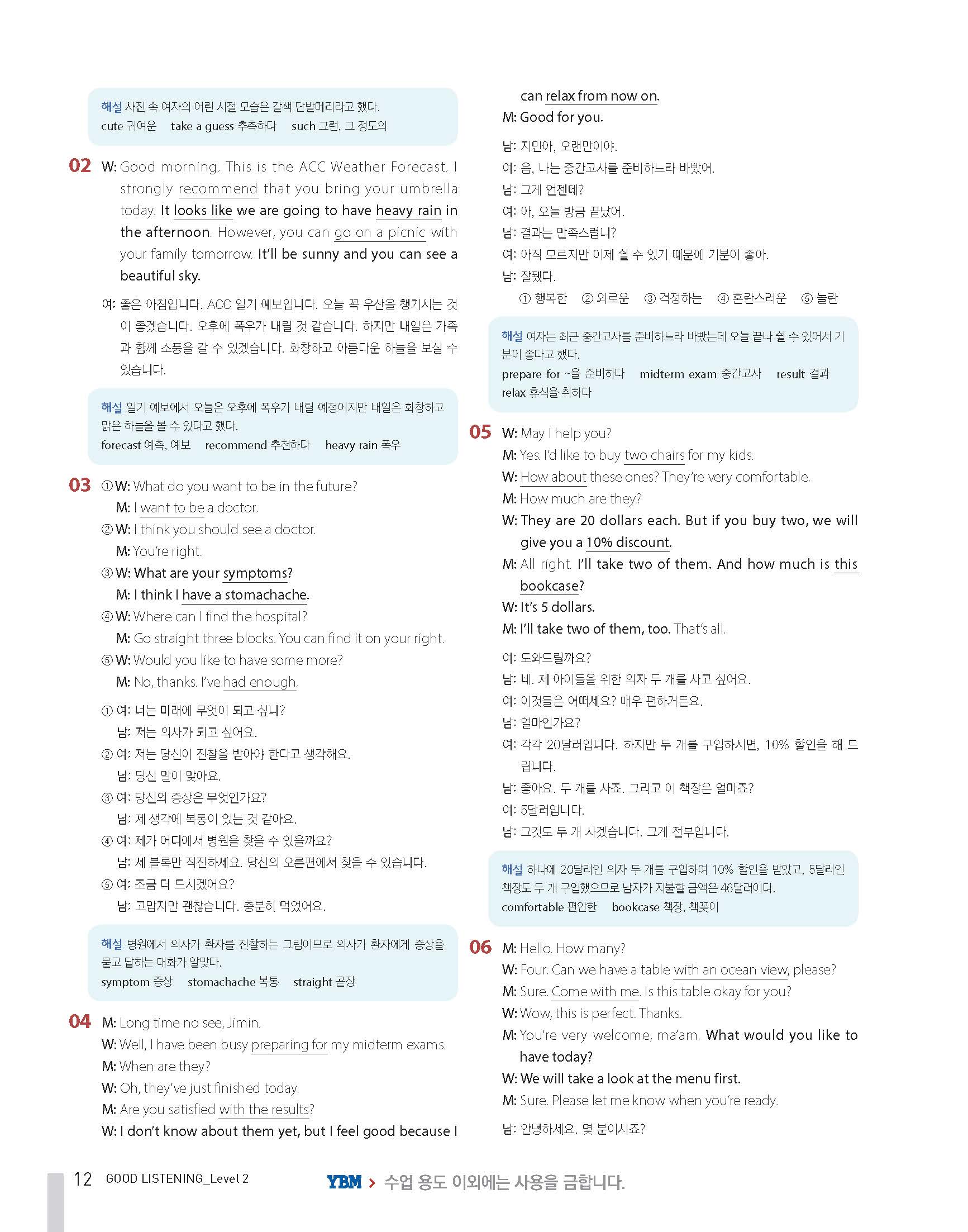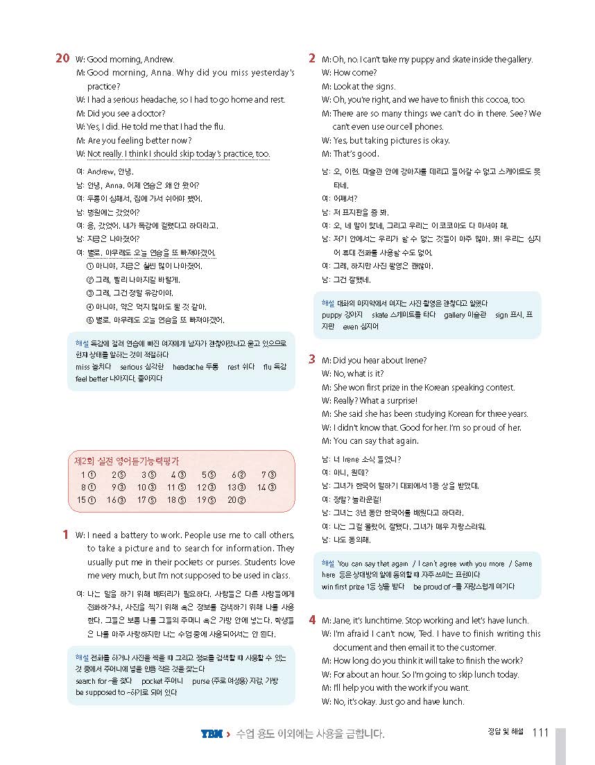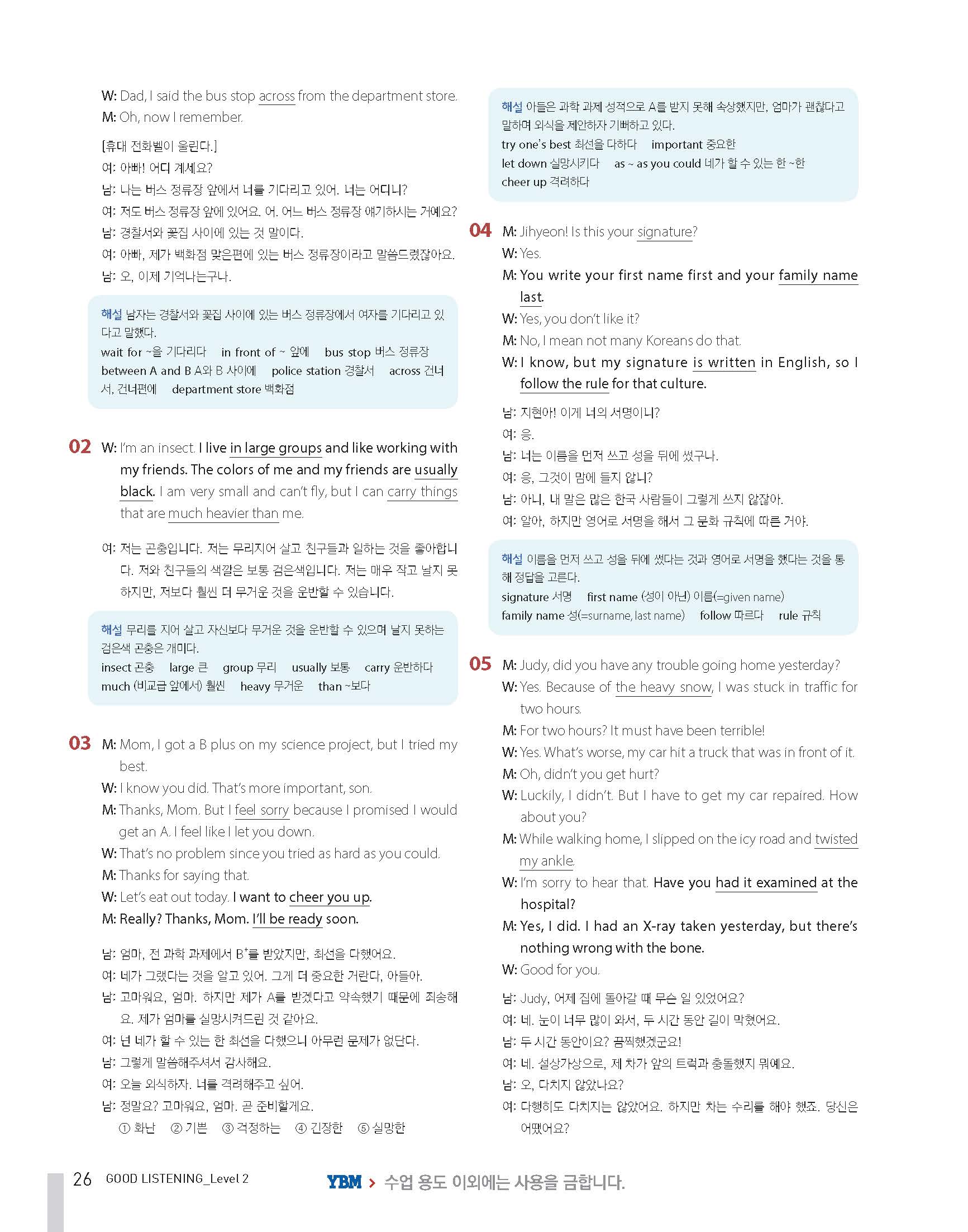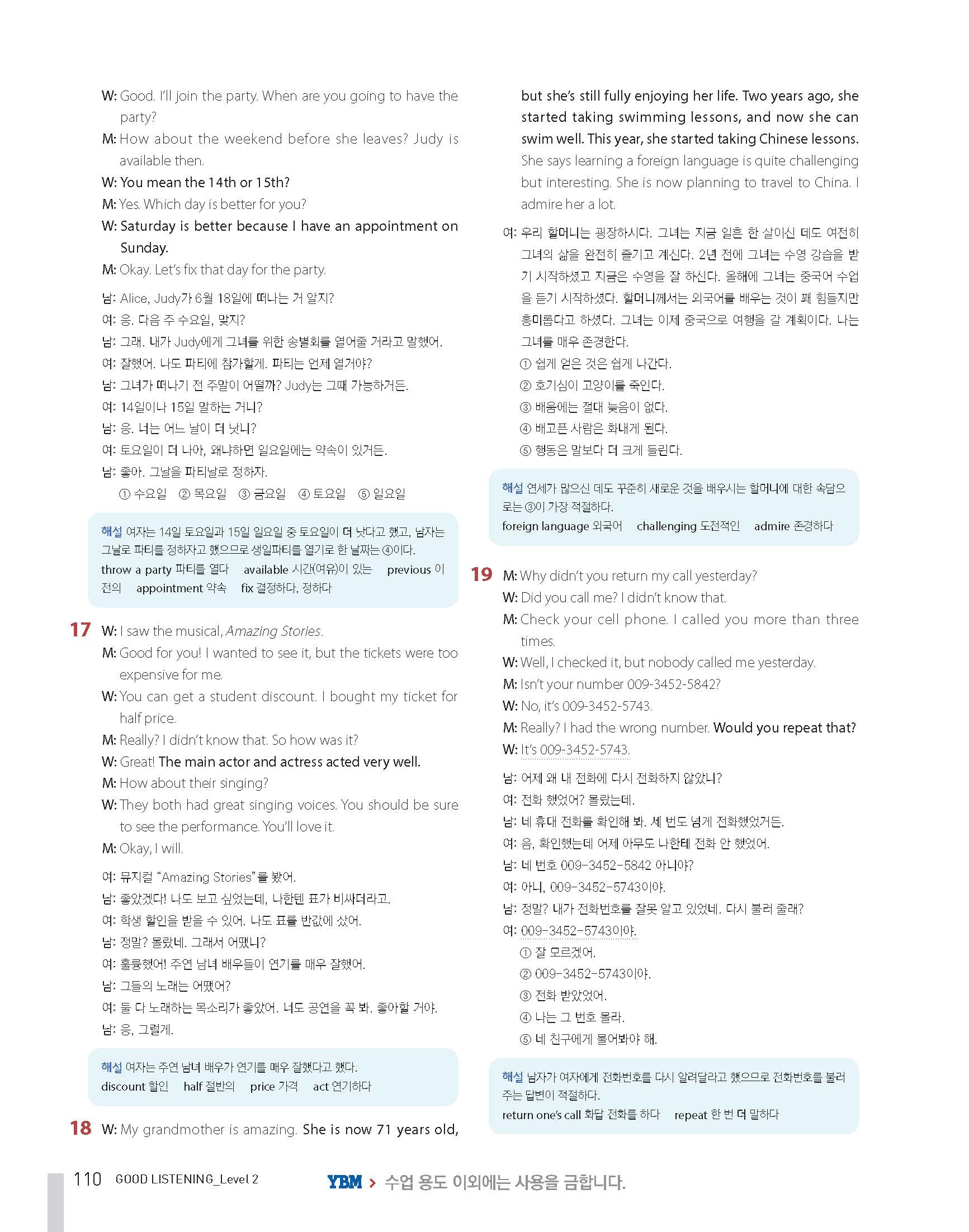 YBM시사 굿리스닝2 Good Listening 2 사진답지 빠른답지 모바일최적화