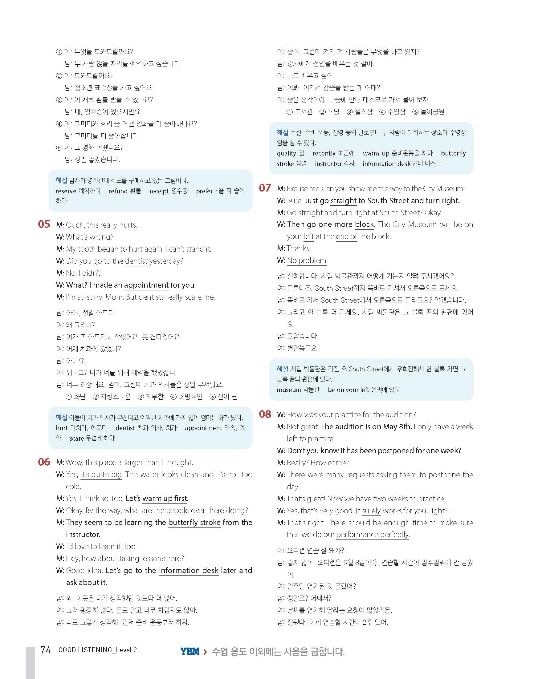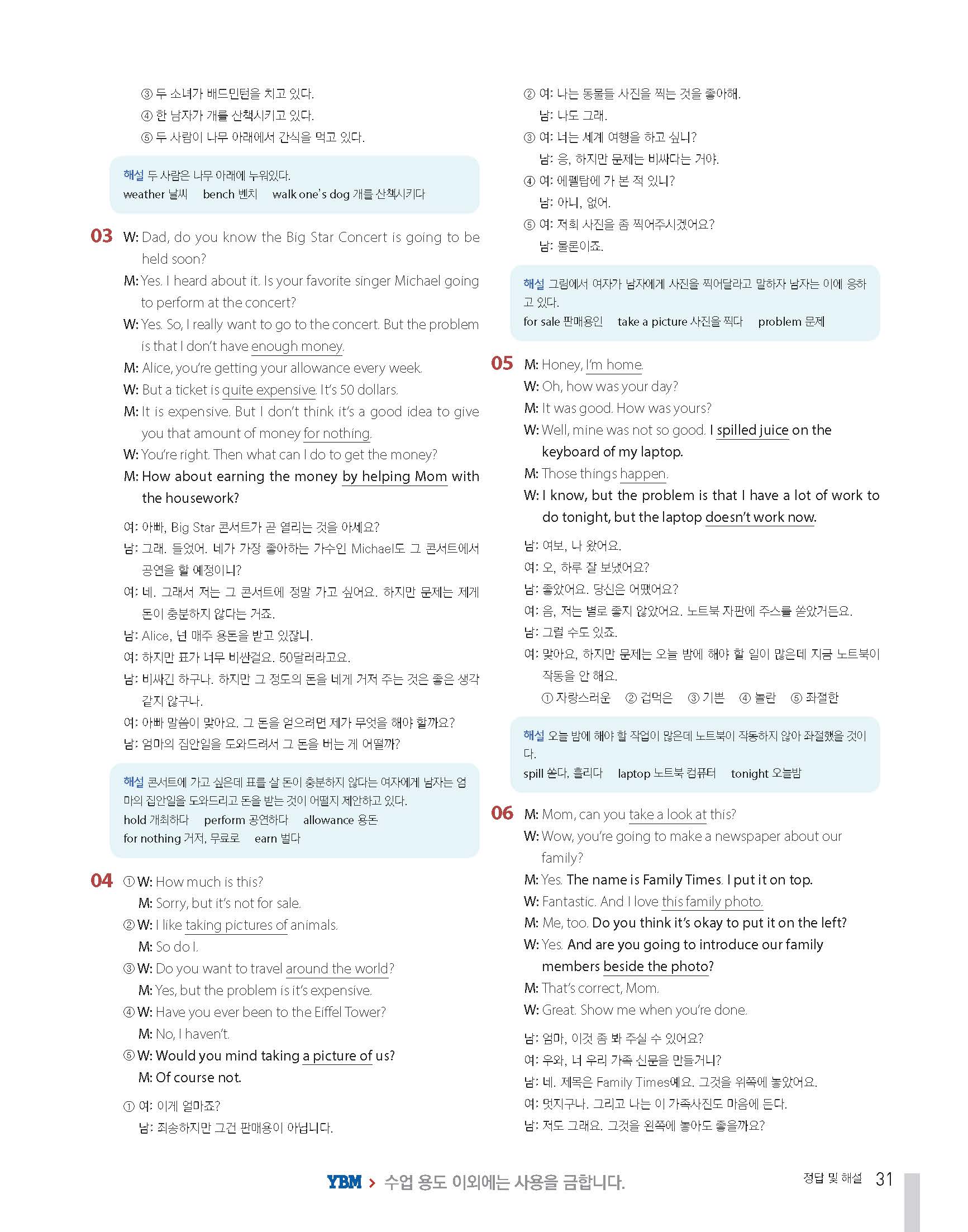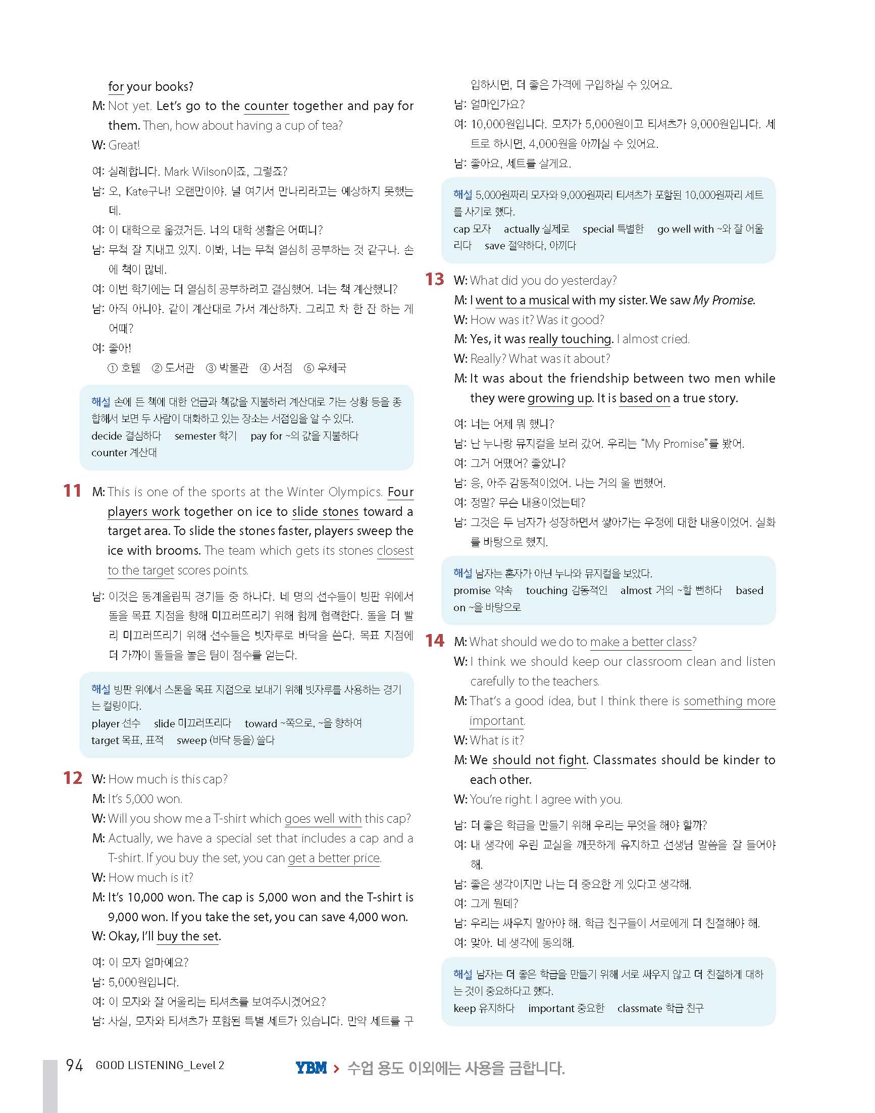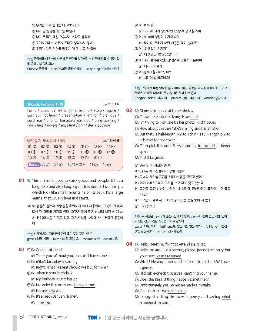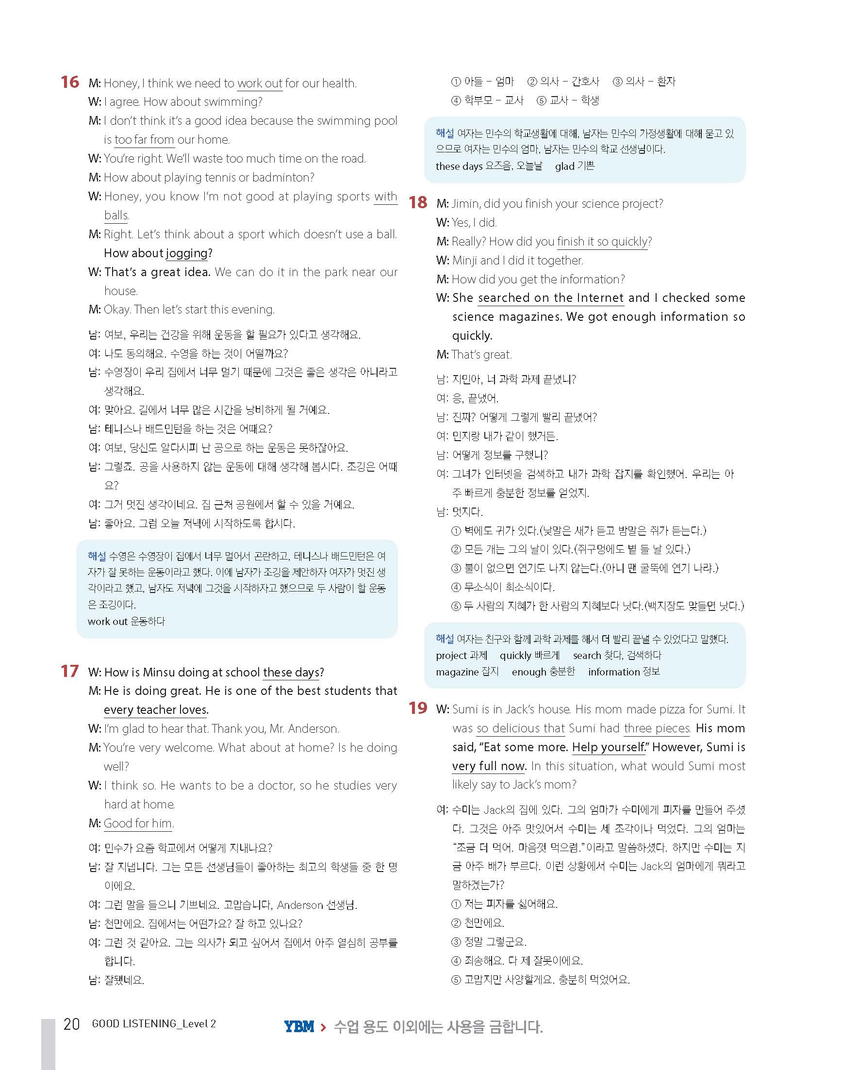 YBM시사 굿리스닝2 Good Listening 2 사진답지 빠른답지 모바일최적화