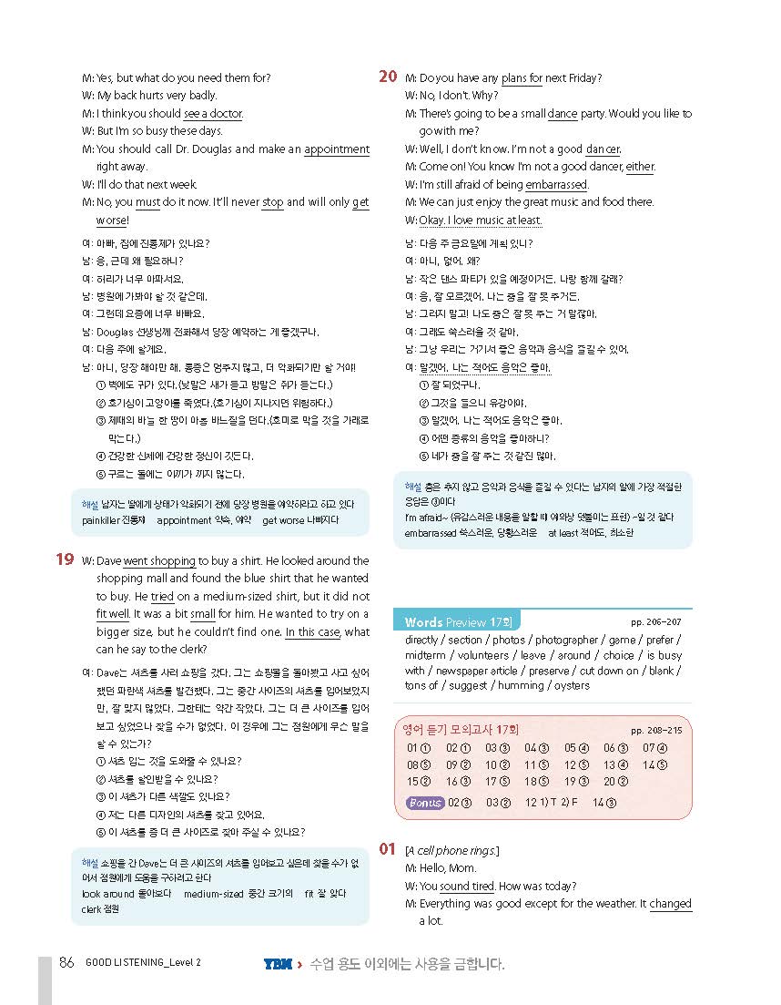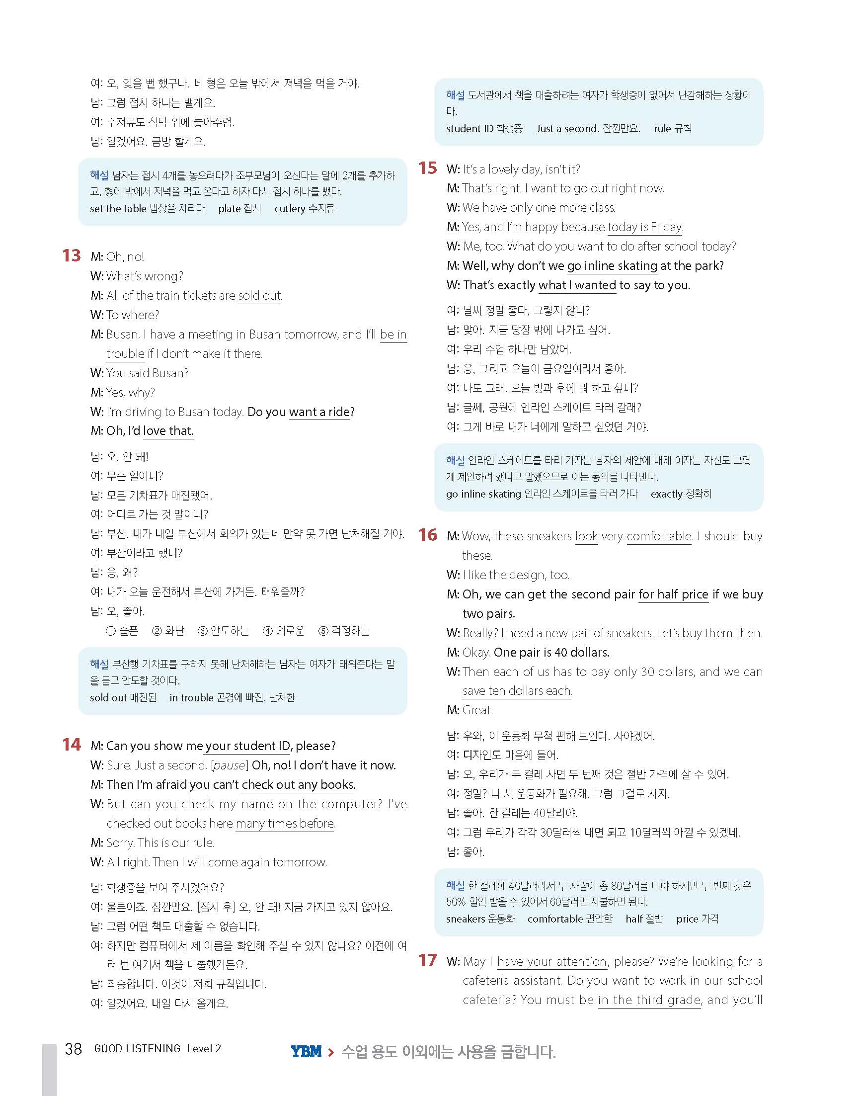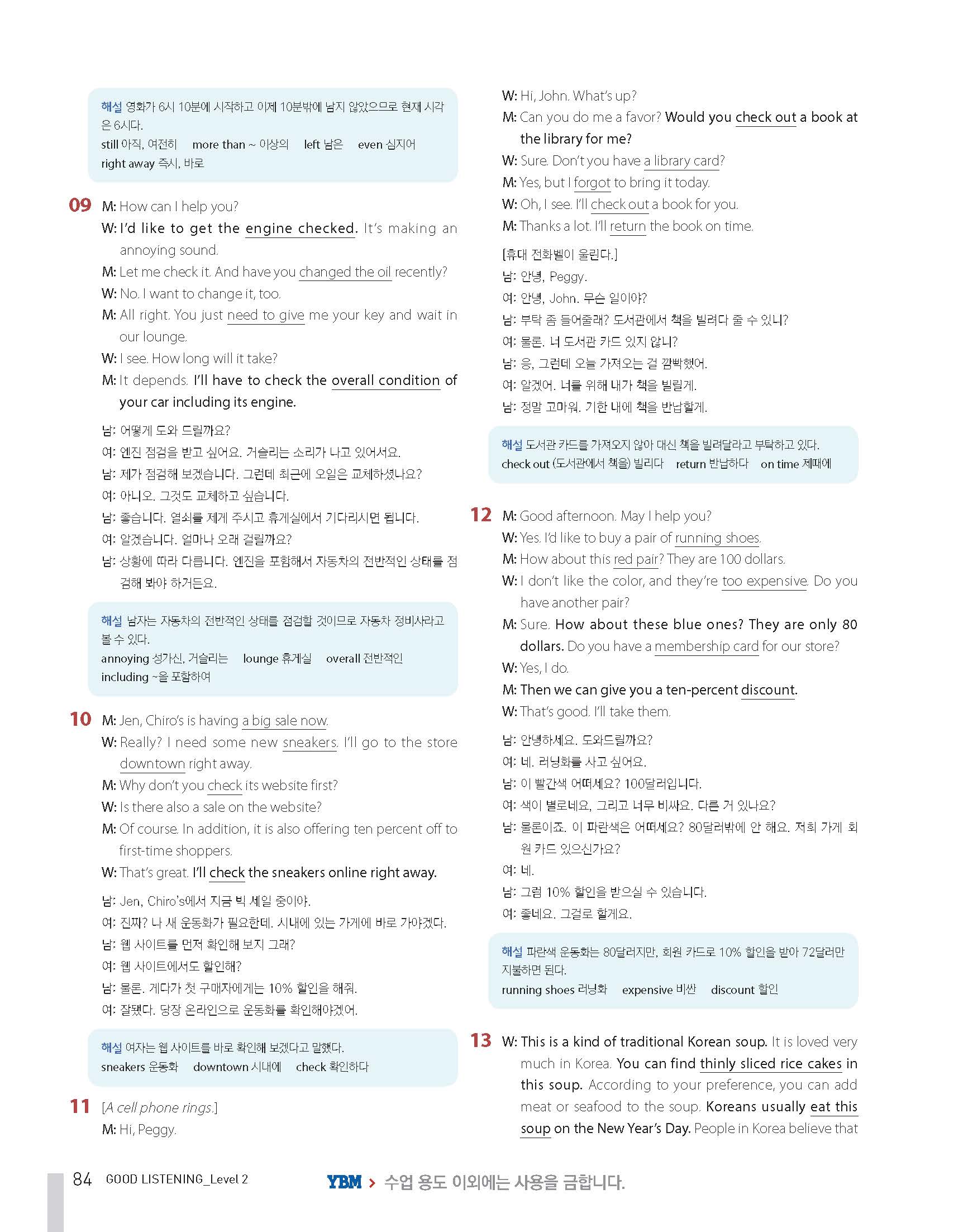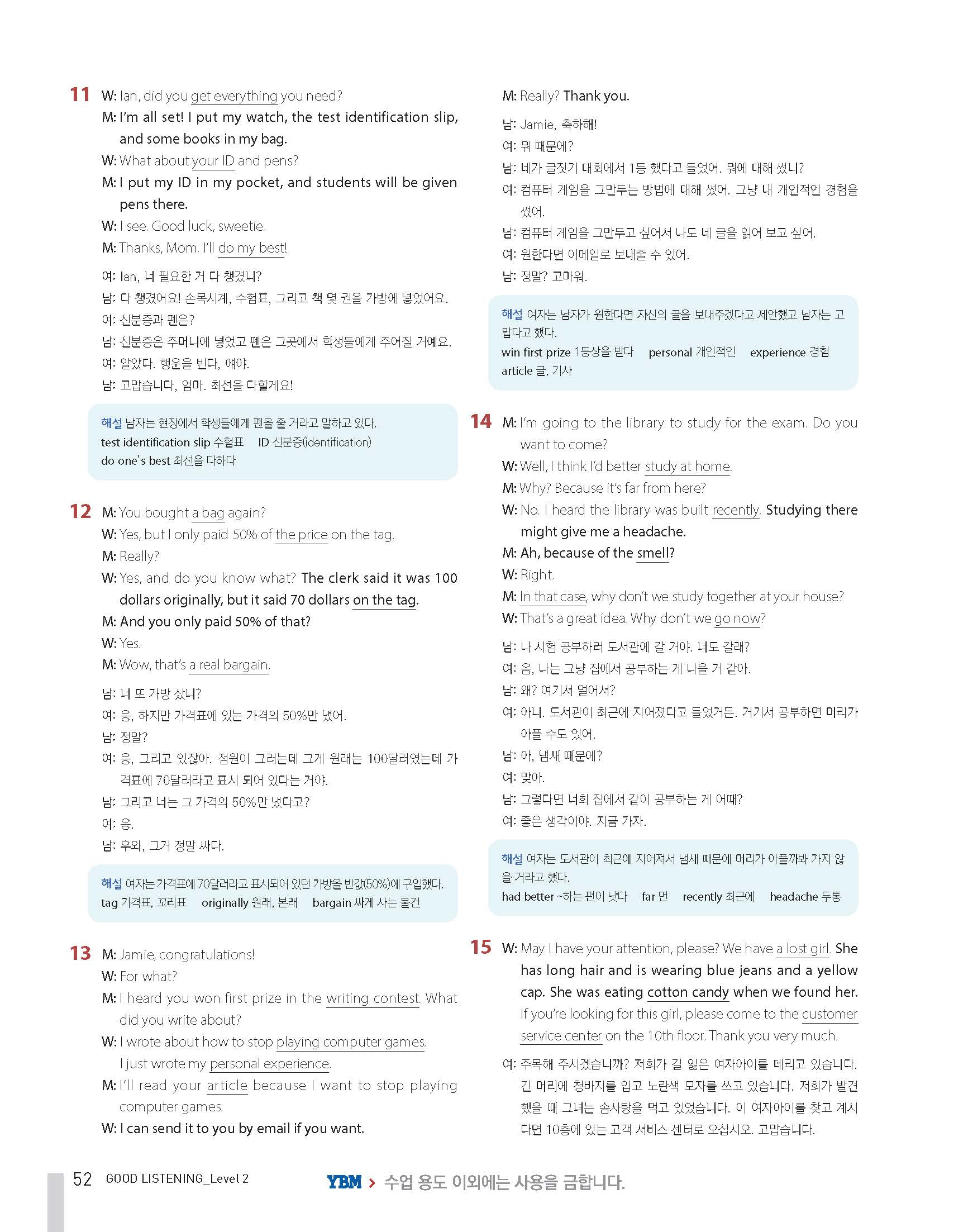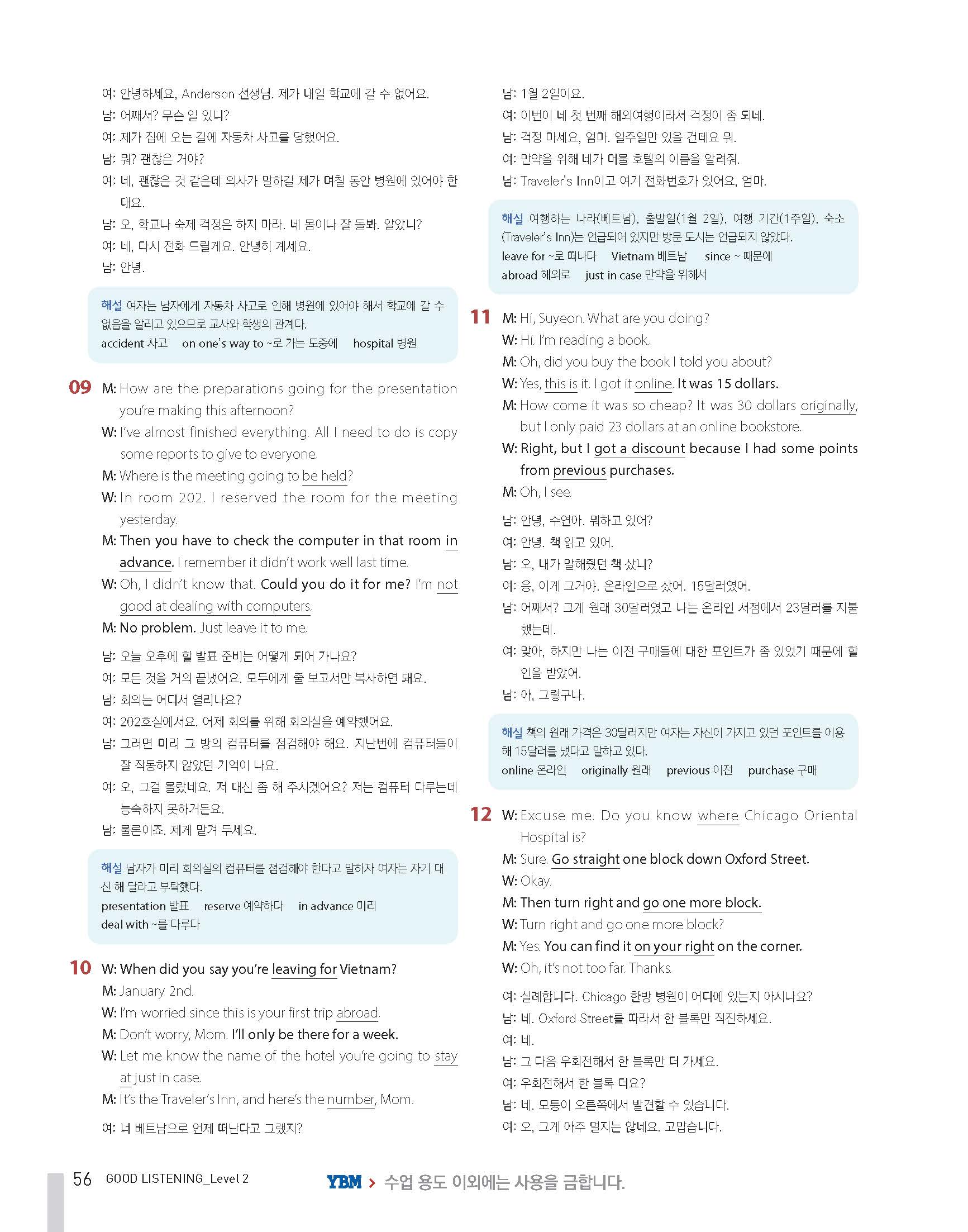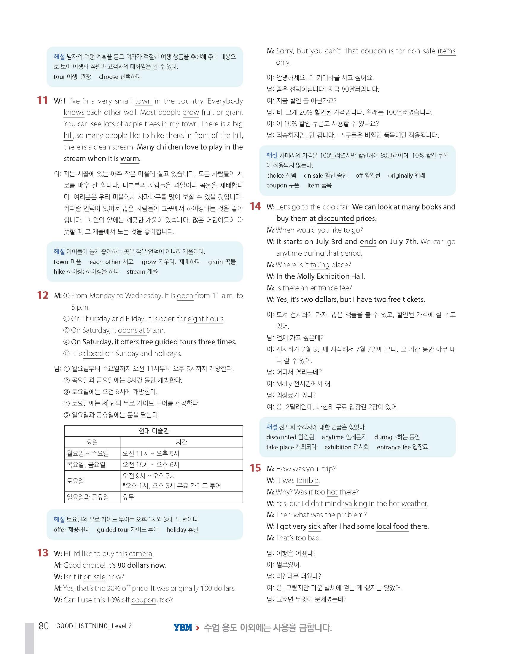 YBM시사 굿리스닝2 Good Listening 2 사진답지 빠른답지 모바일최적화