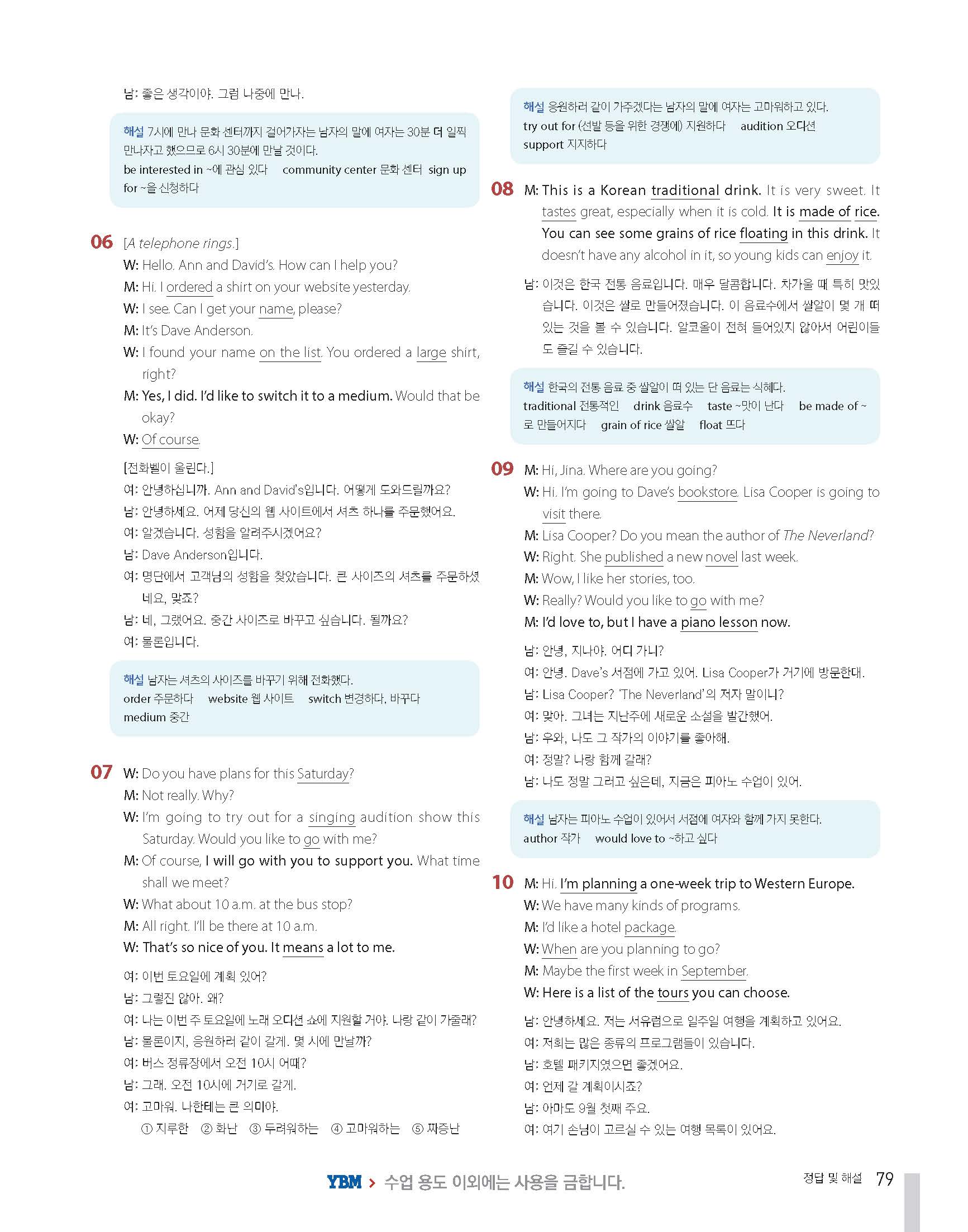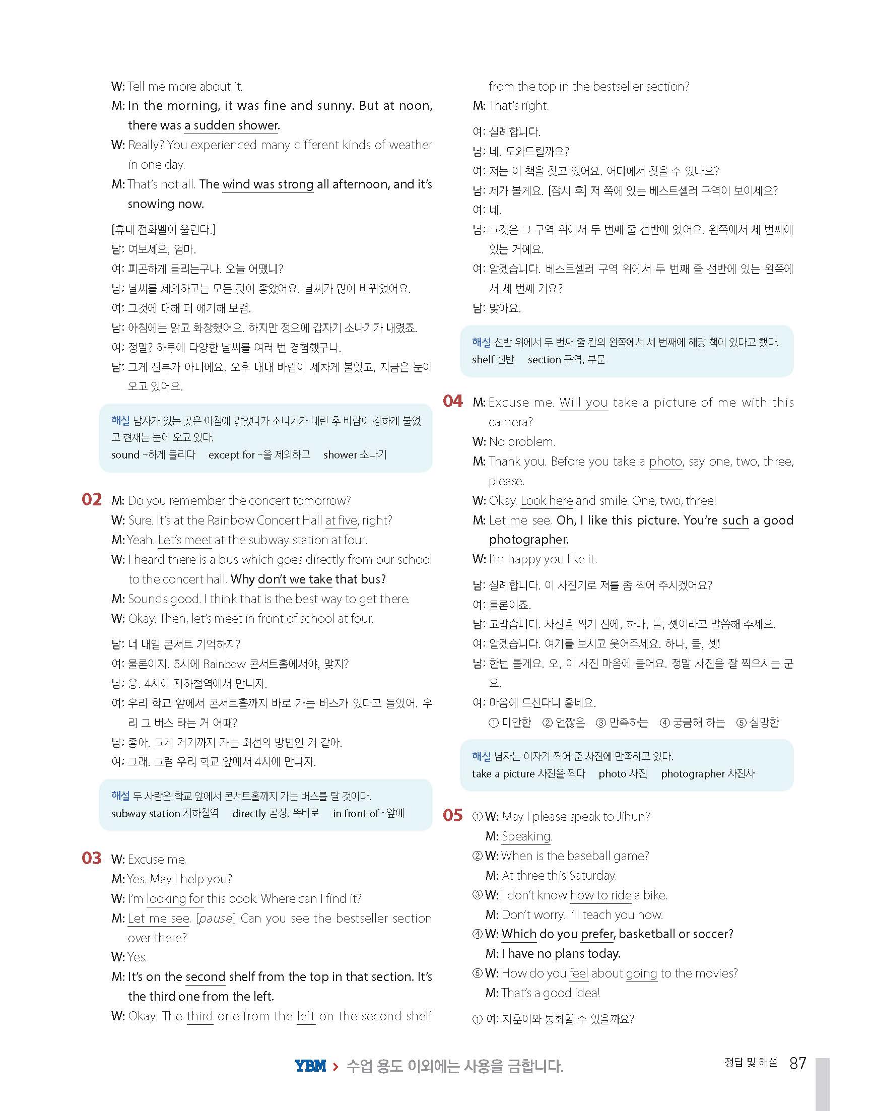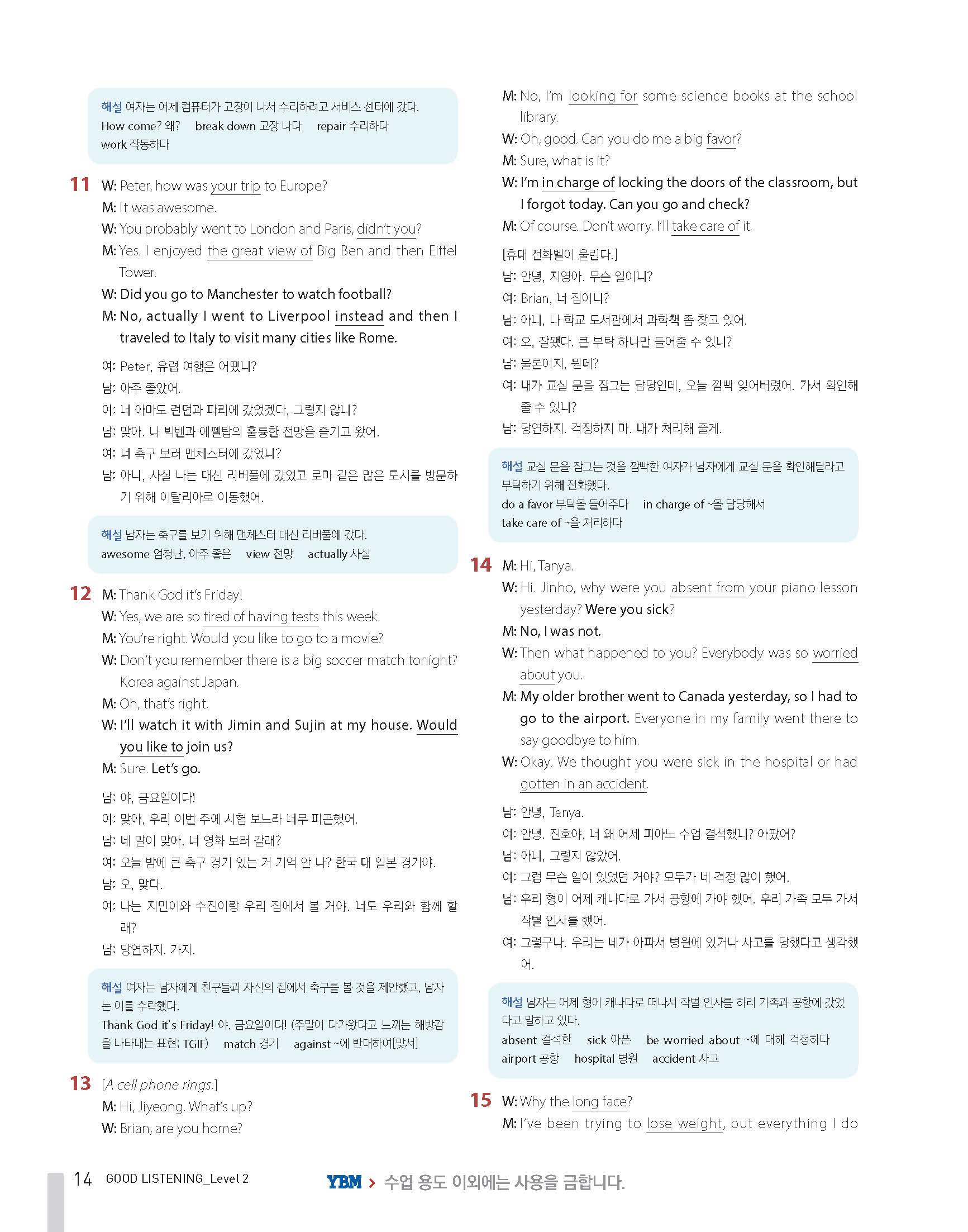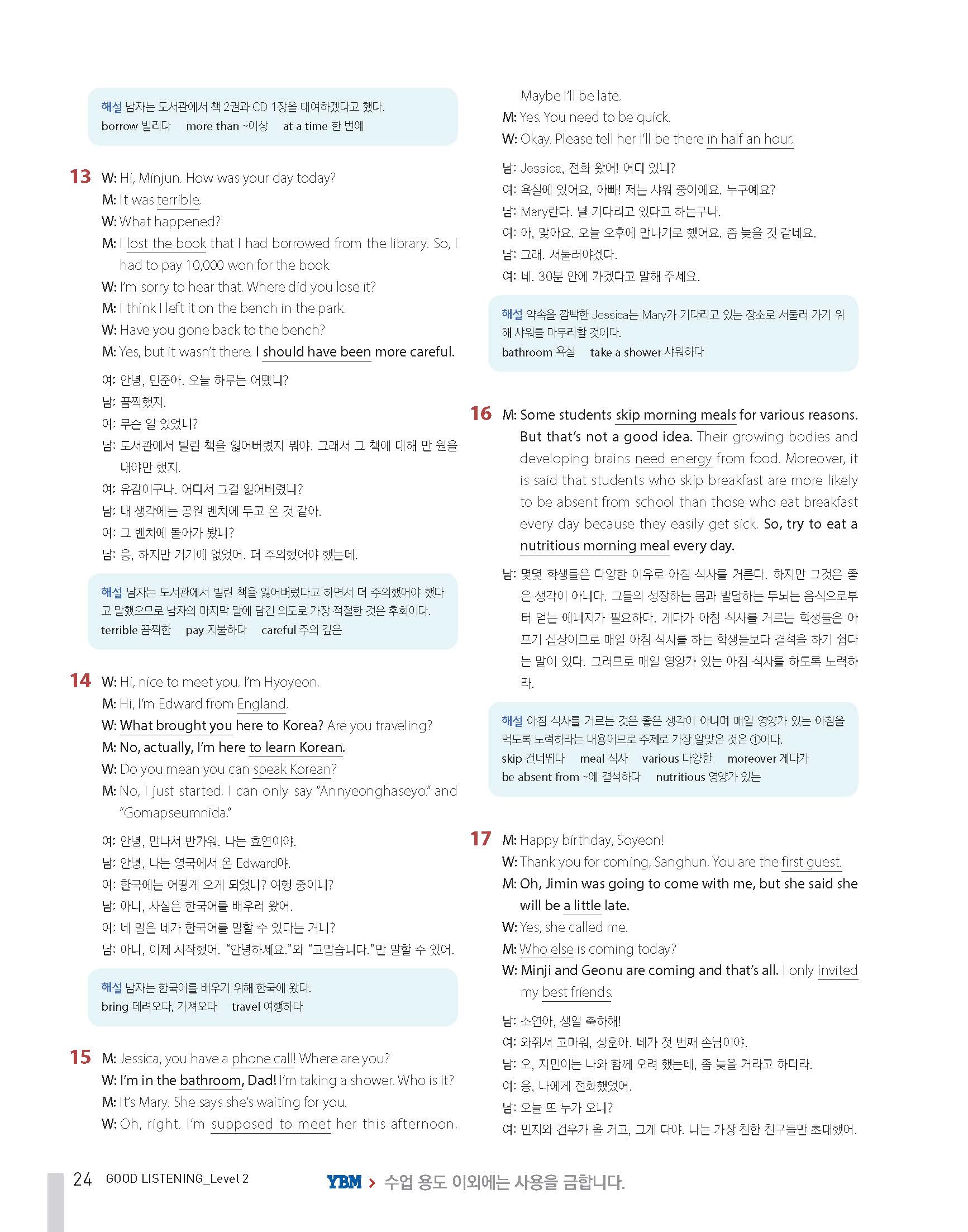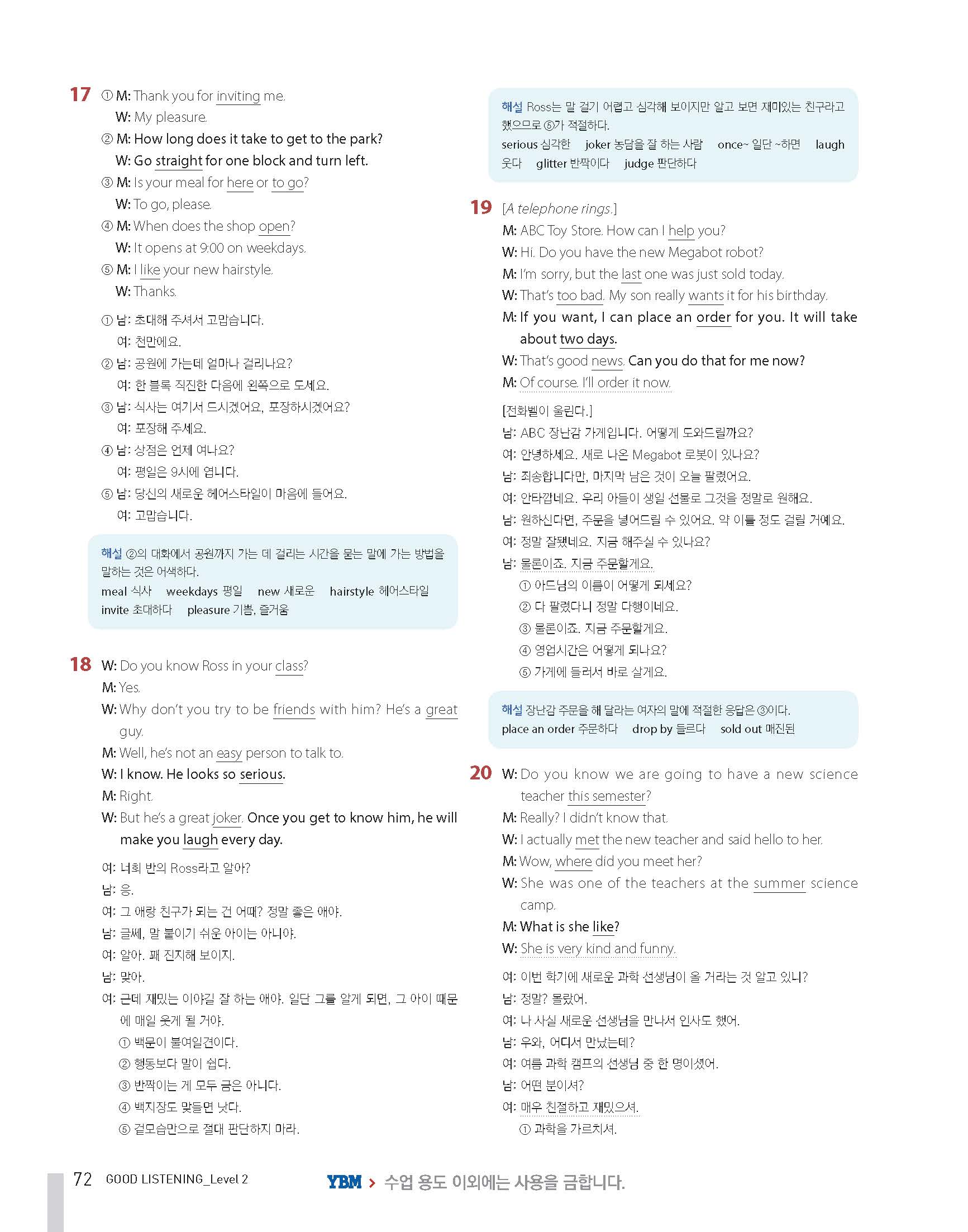 YBM시사 굿리스닝2 Good Listening 2 사진답지 빠른답지 모바일최적화