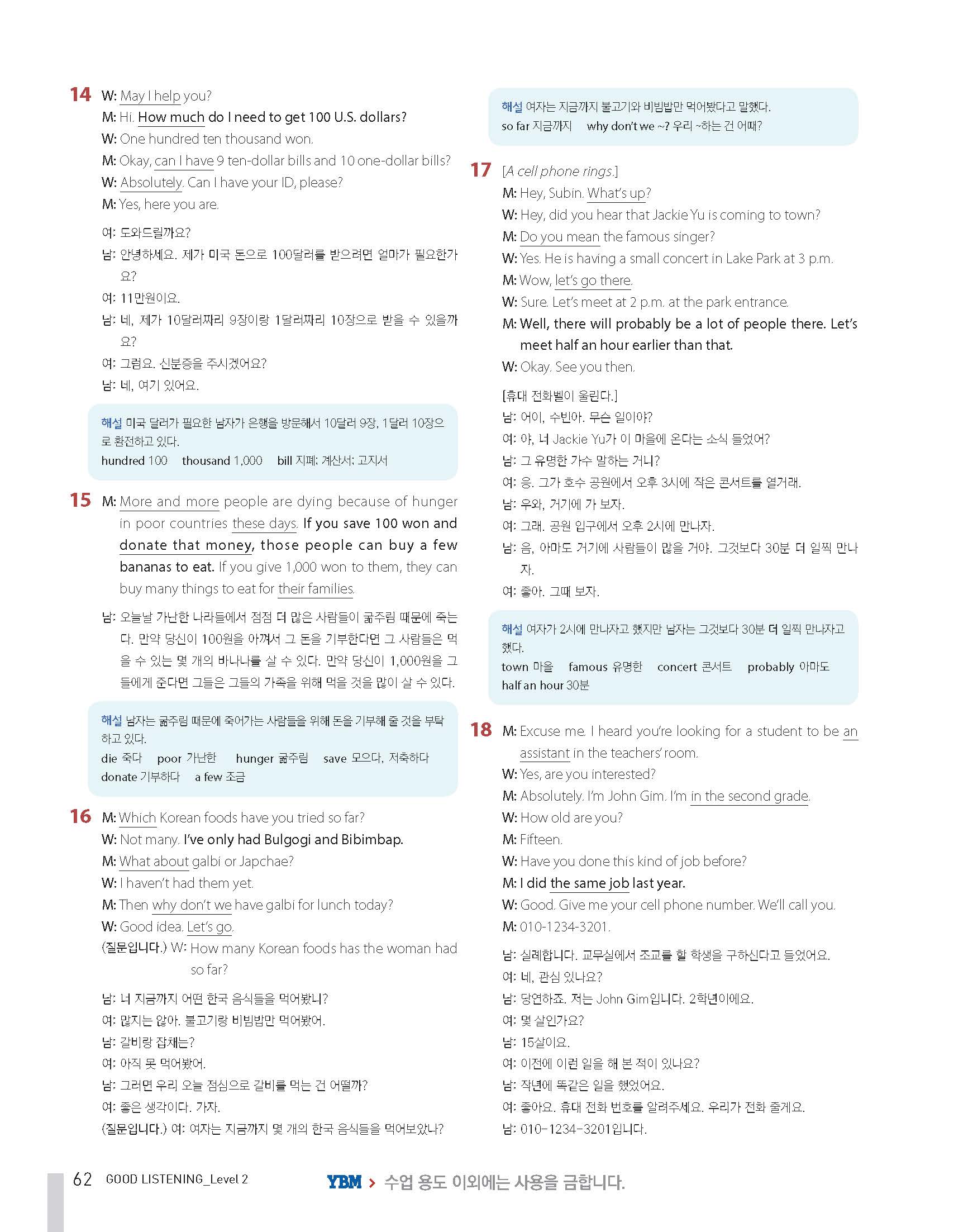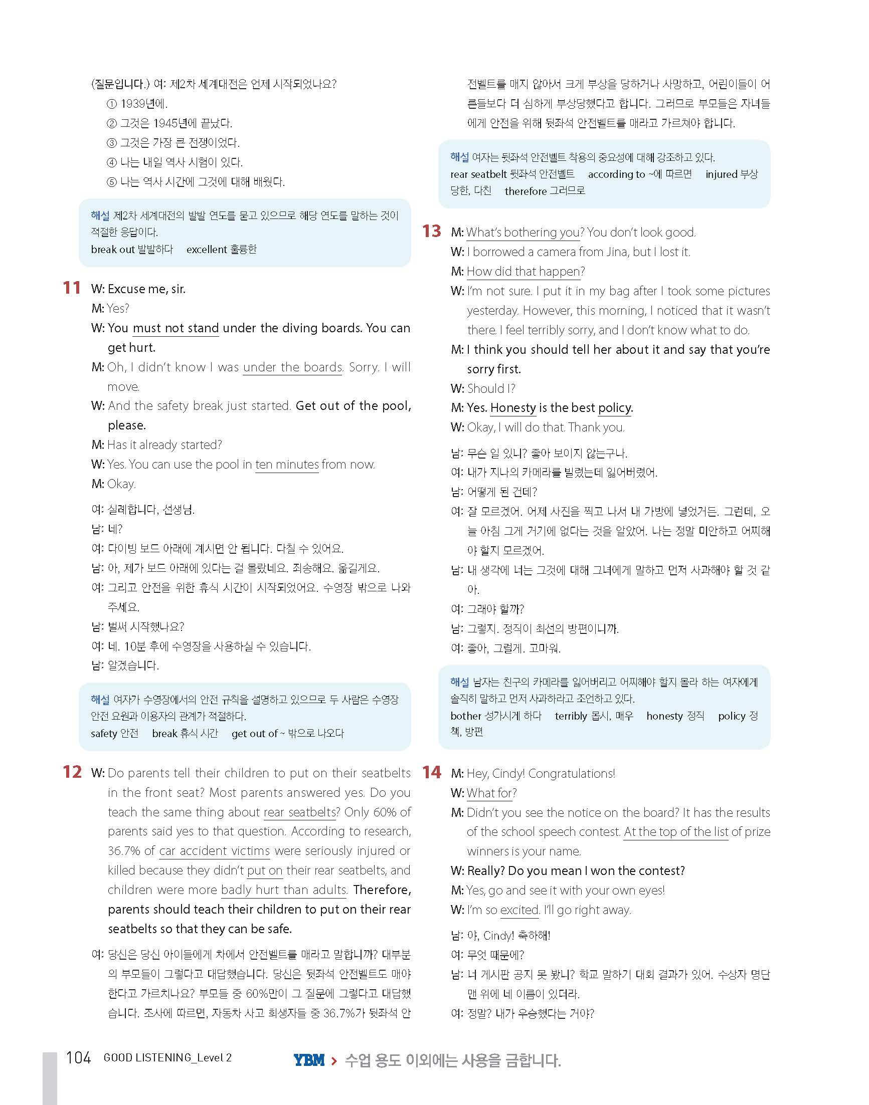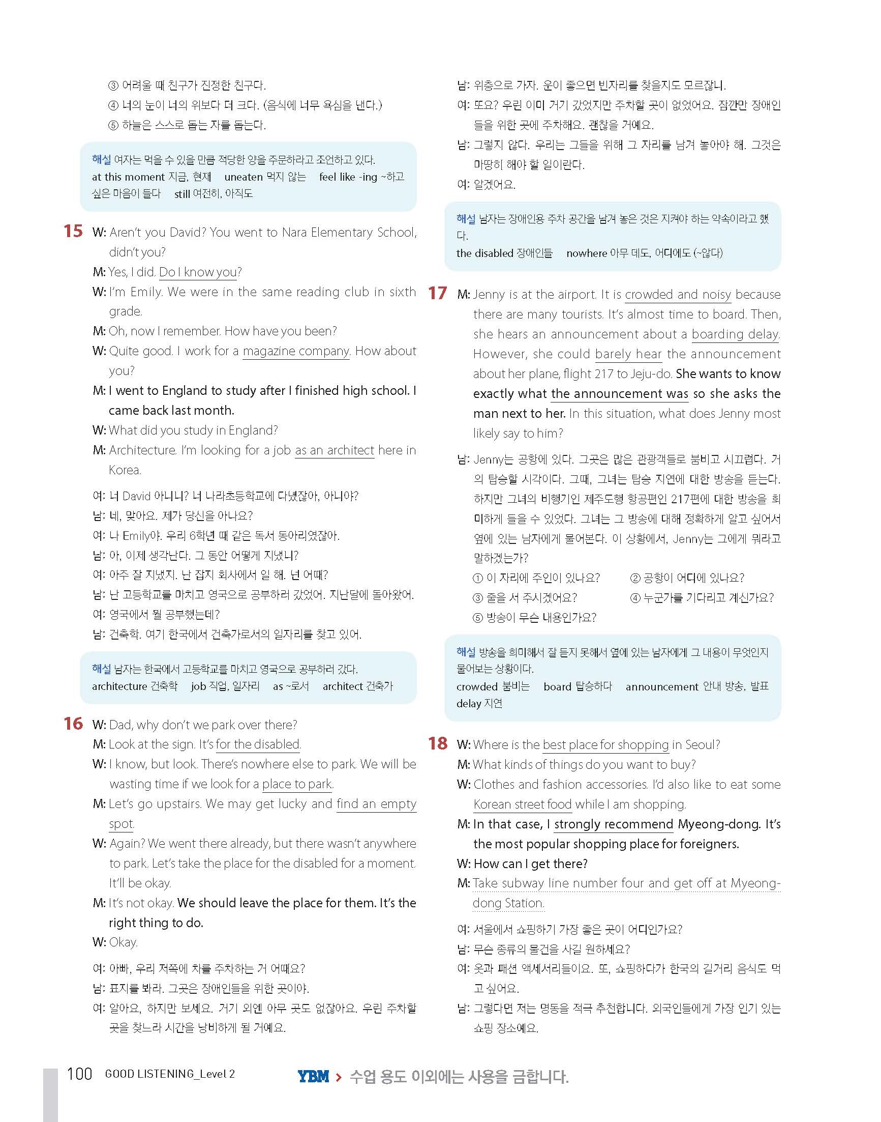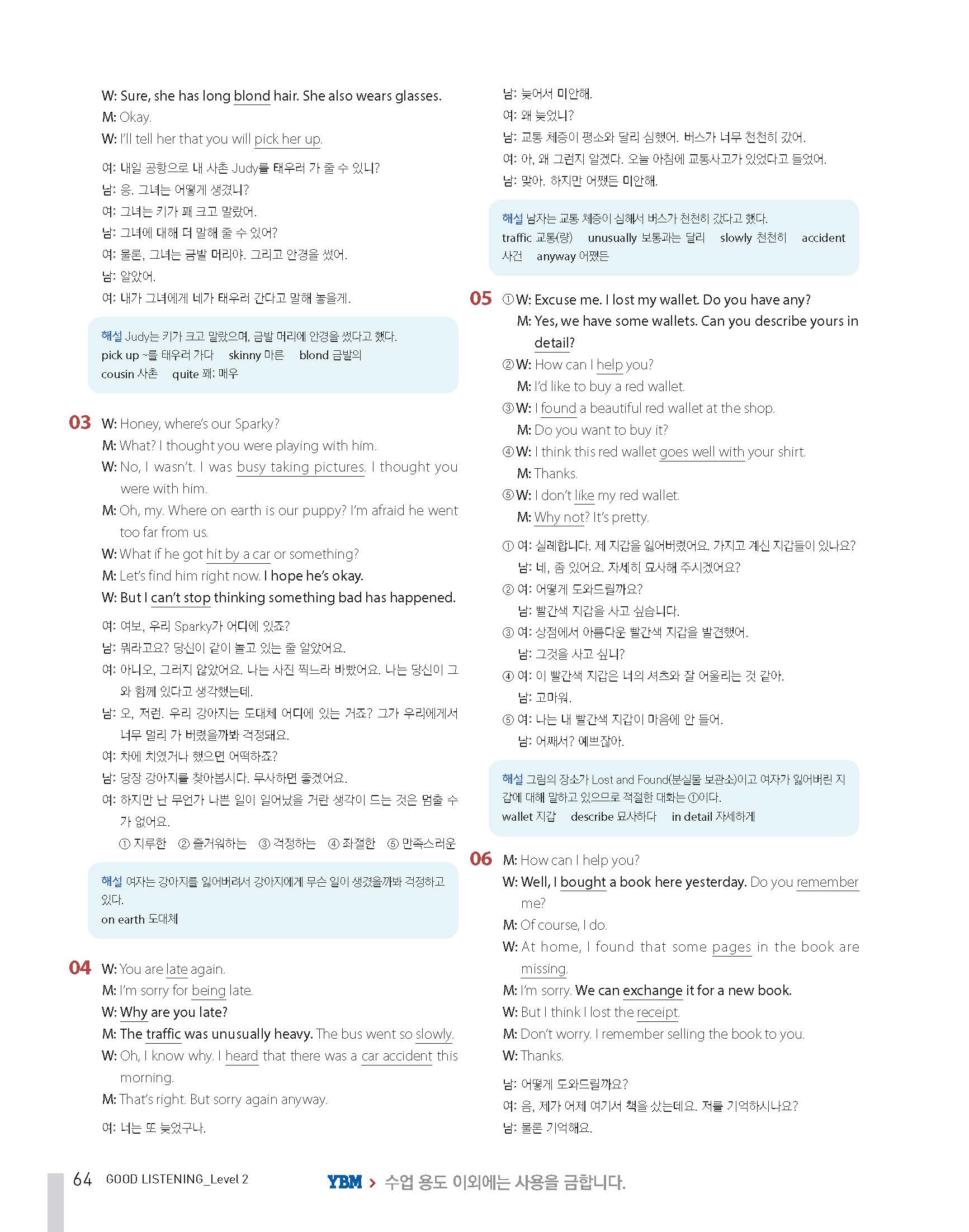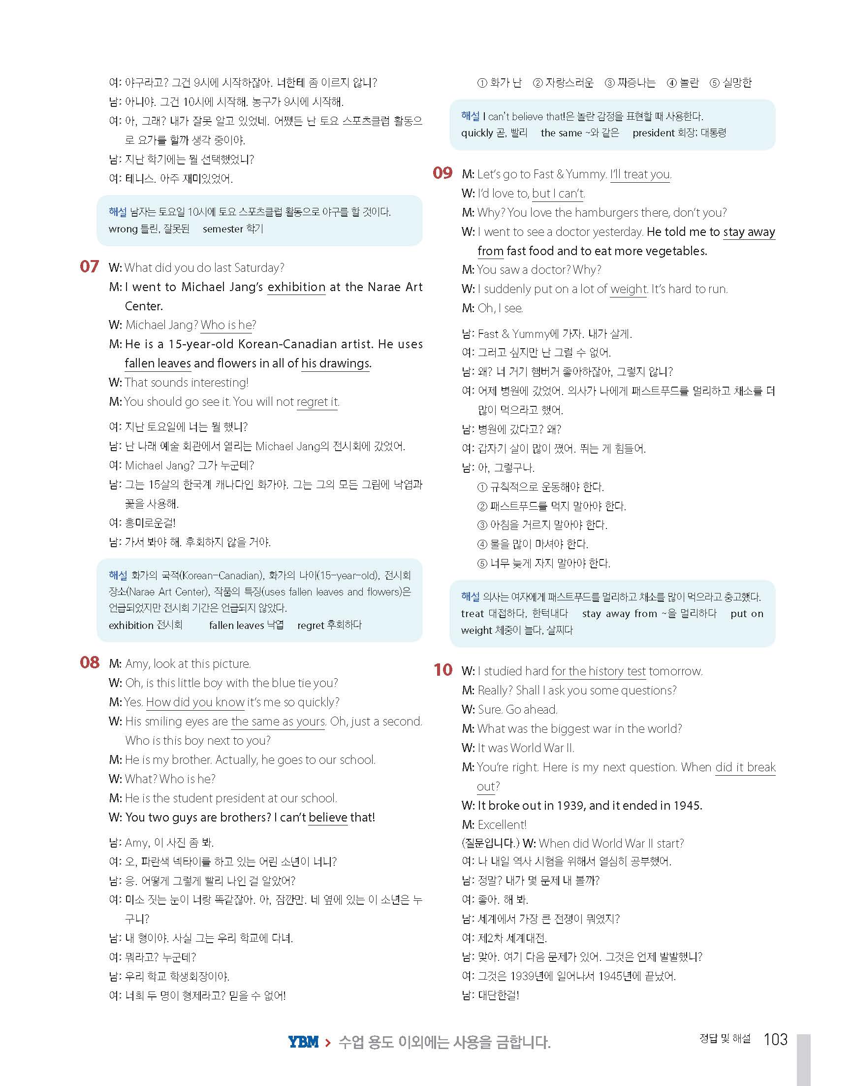 YBM시사 굿리스닝2 Good Listening 2 사진답지 빠른답지 모바일최적화