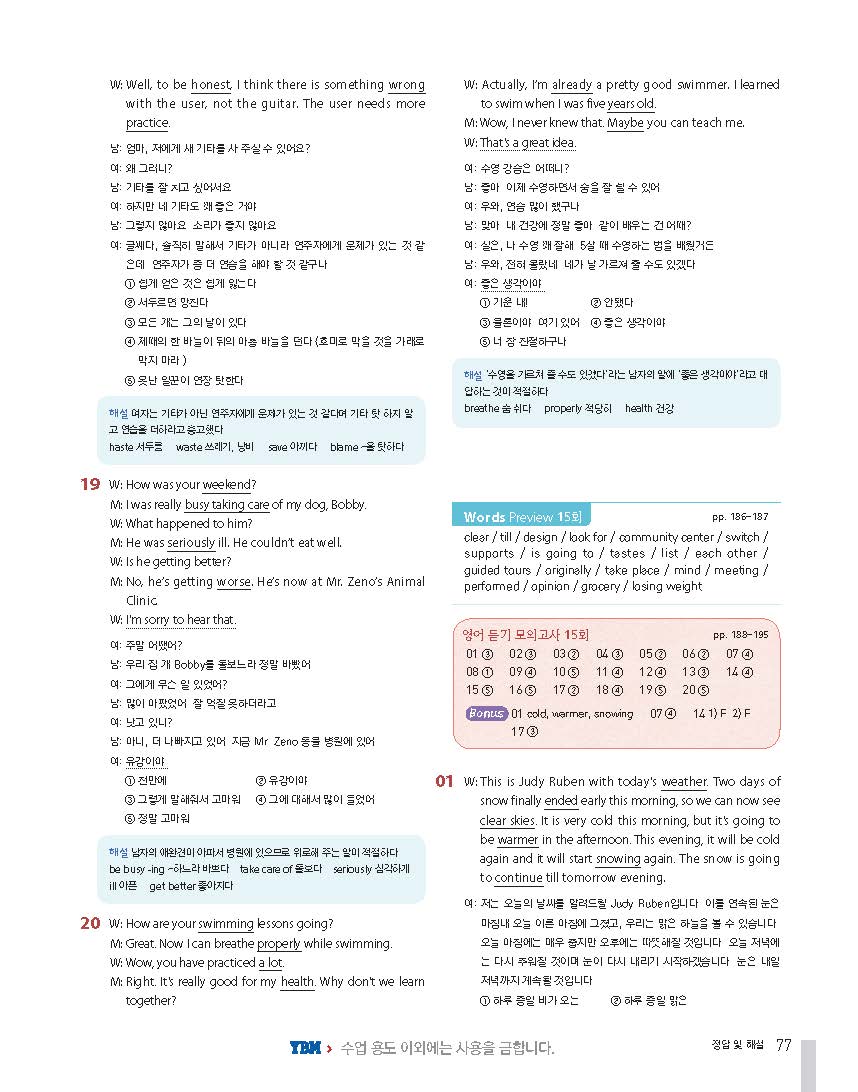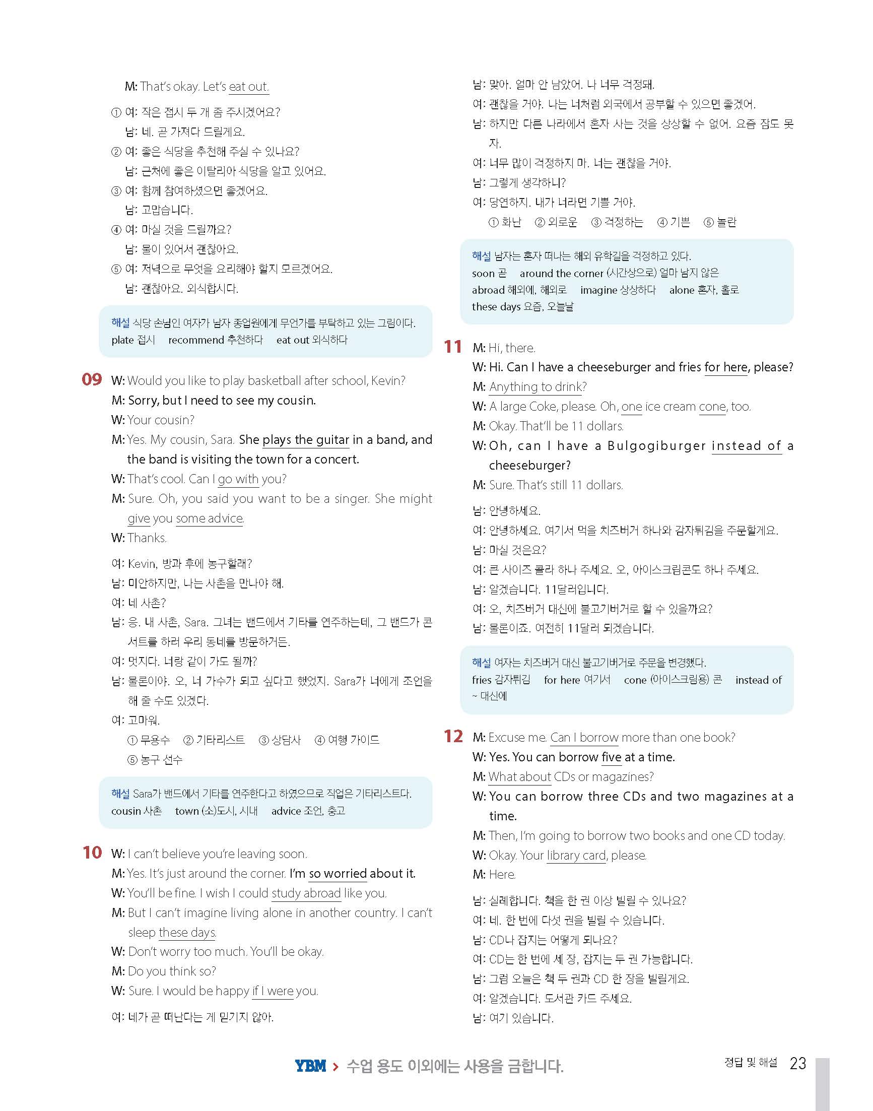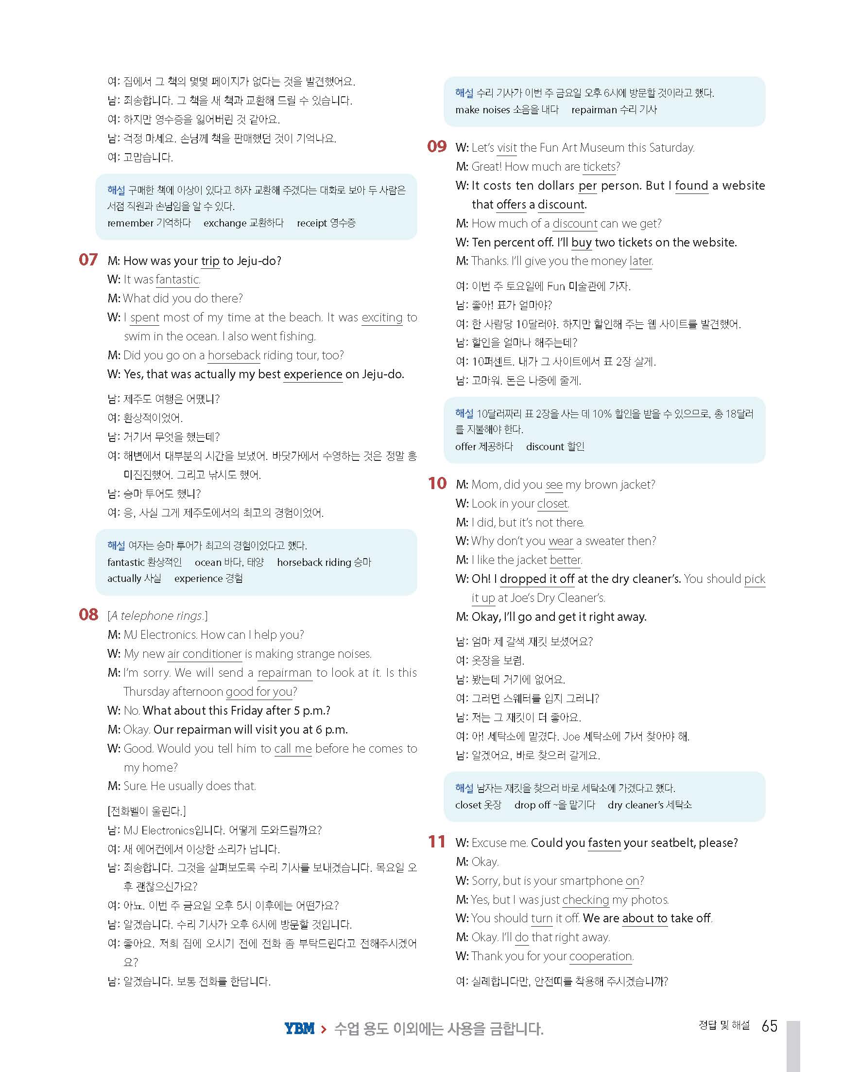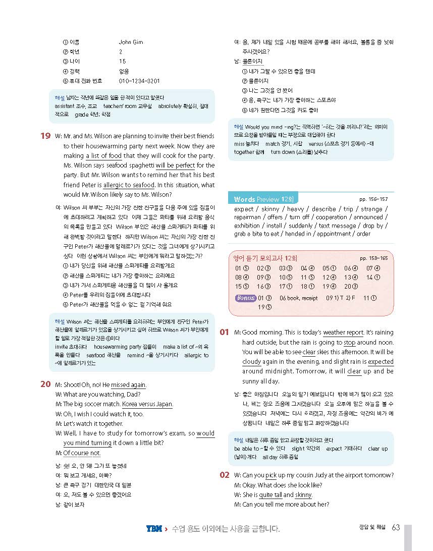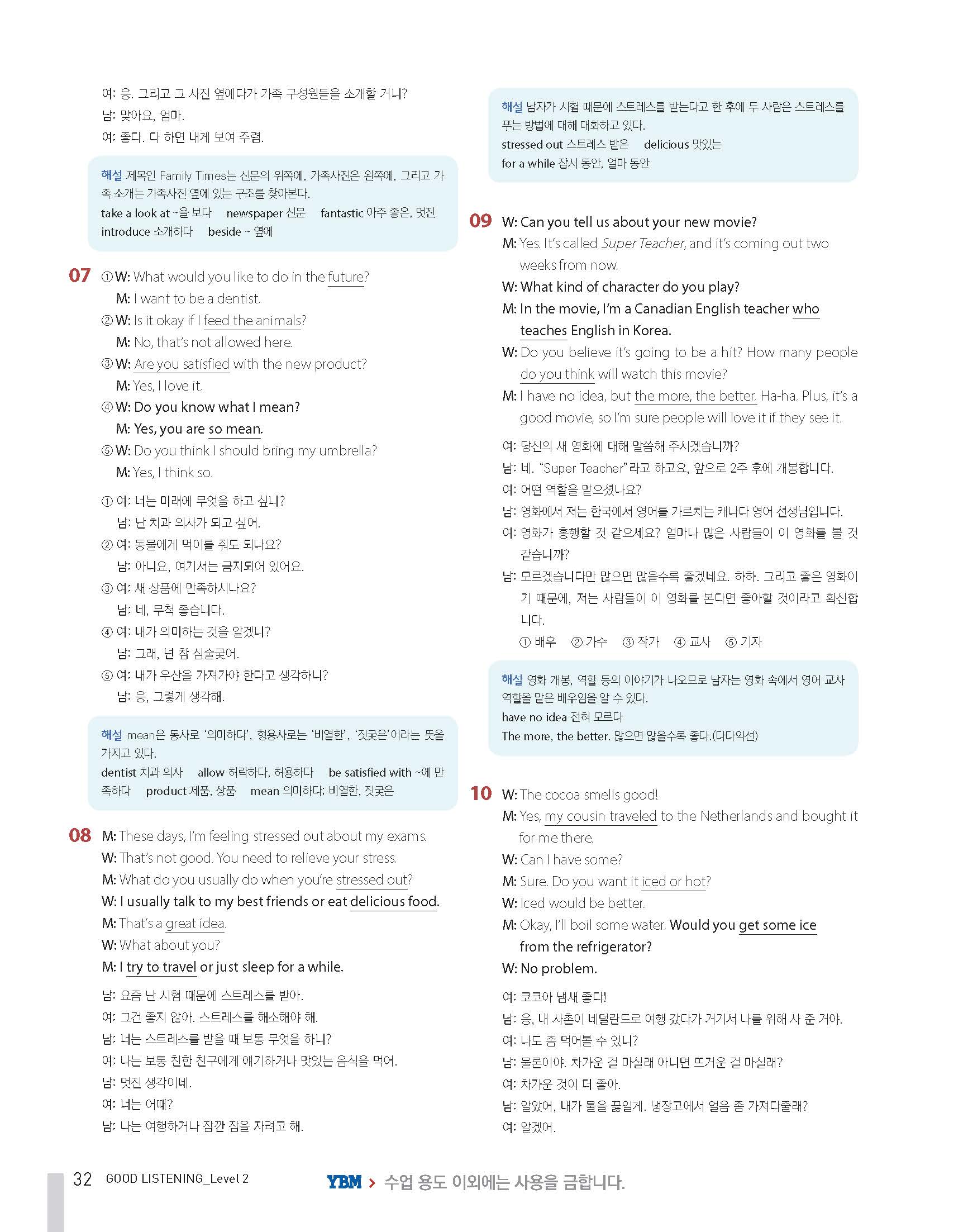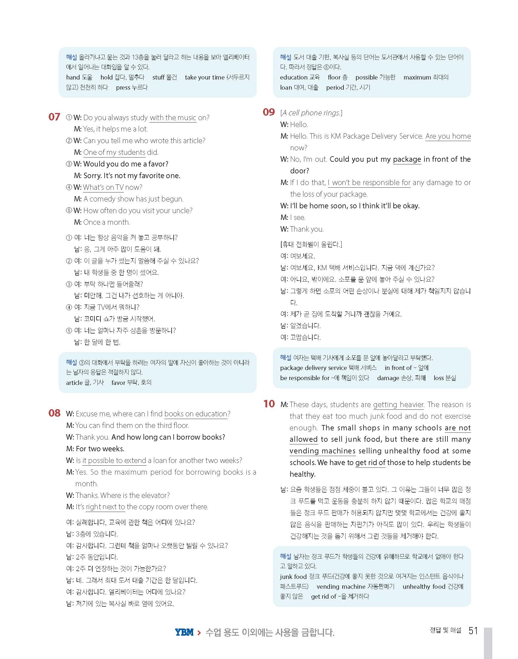 YBM시사 굿리스닝2 Good Listening 2 사진답지 빠른답지 모바일최적화