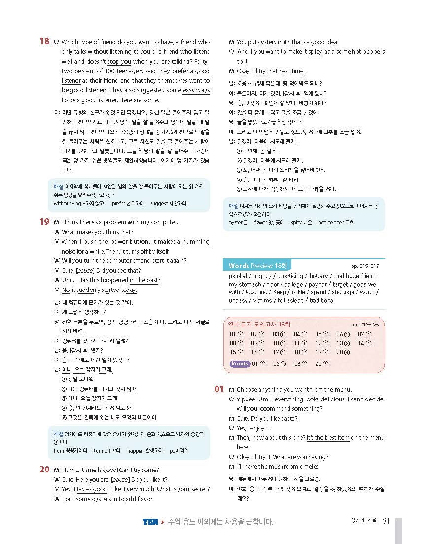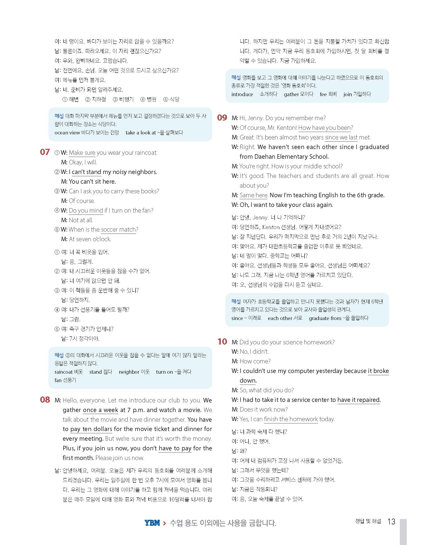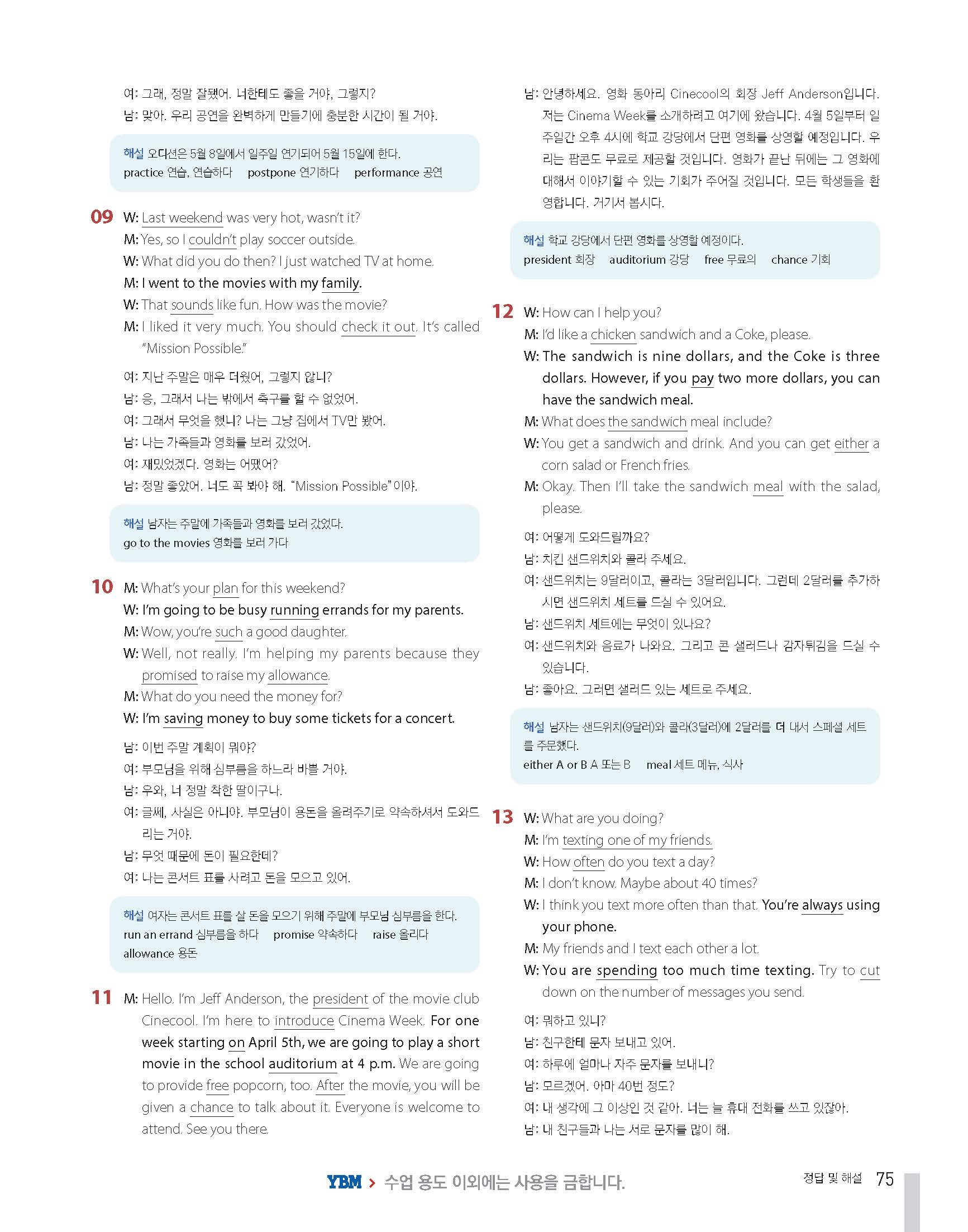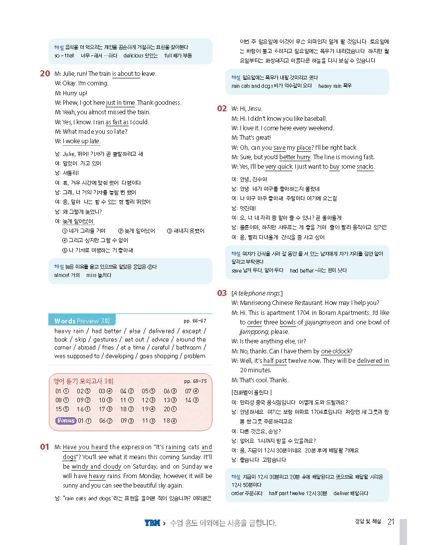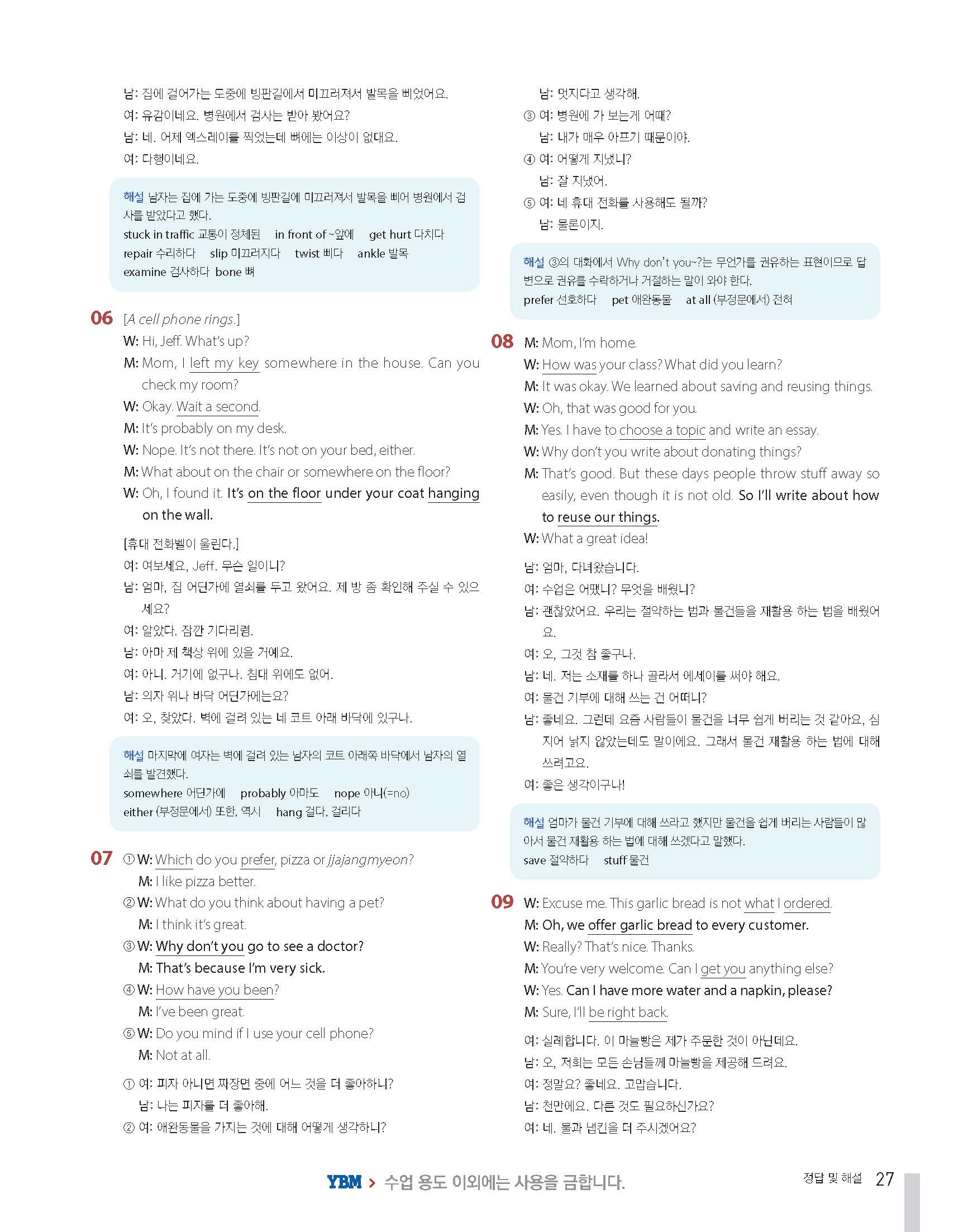 YBM시사 굿리스닝2 Good Listening 2 사진답지 빠른답지 모바일최적화