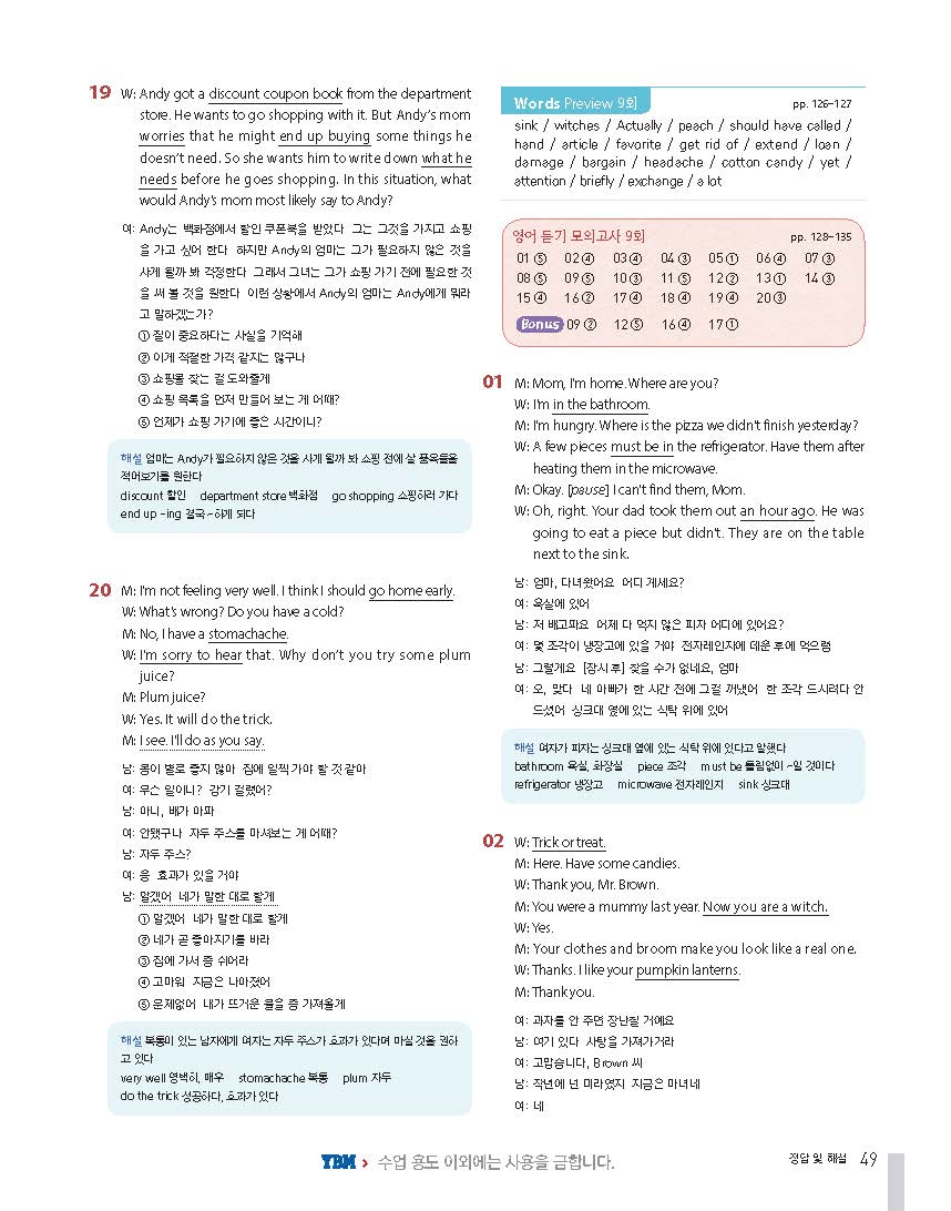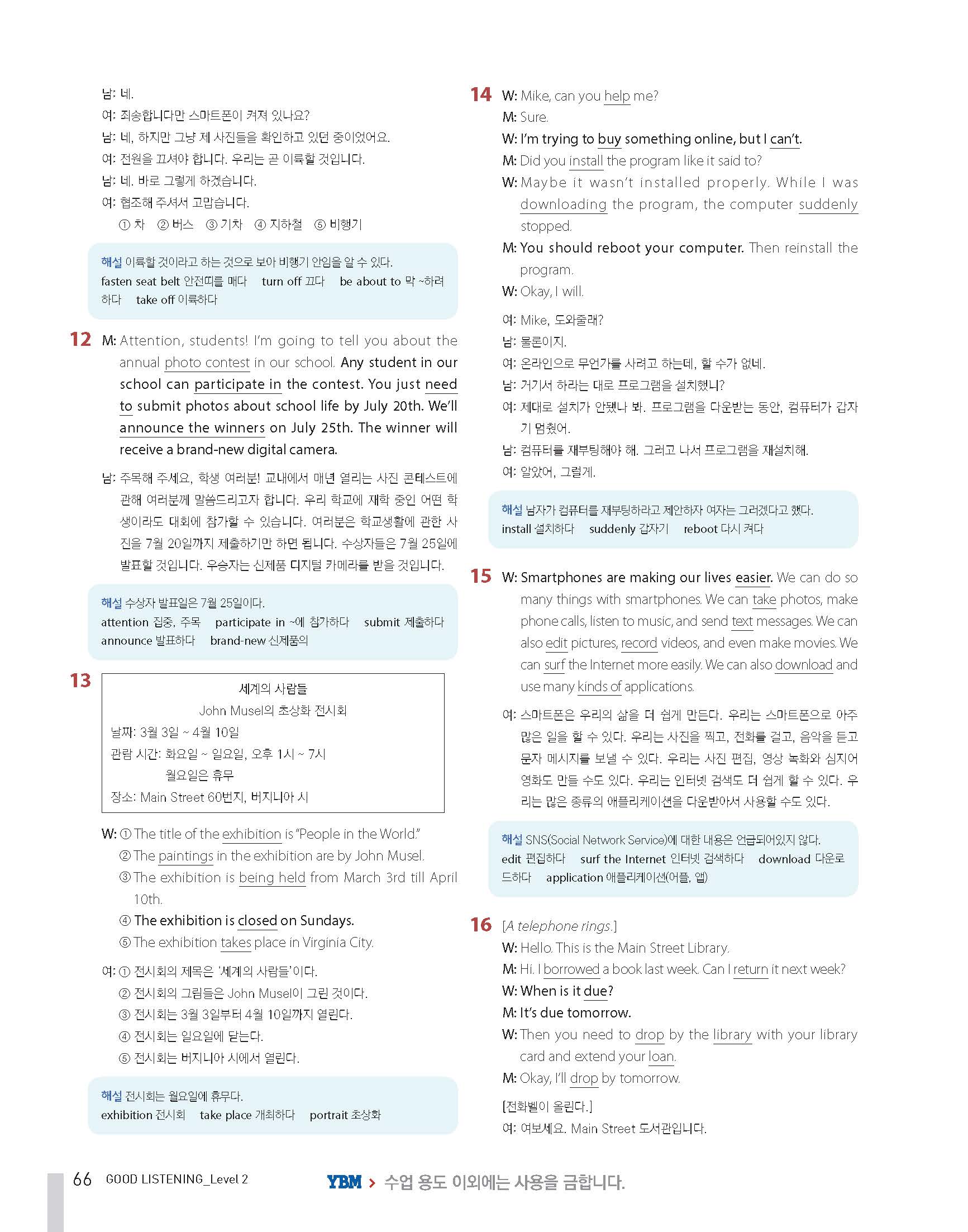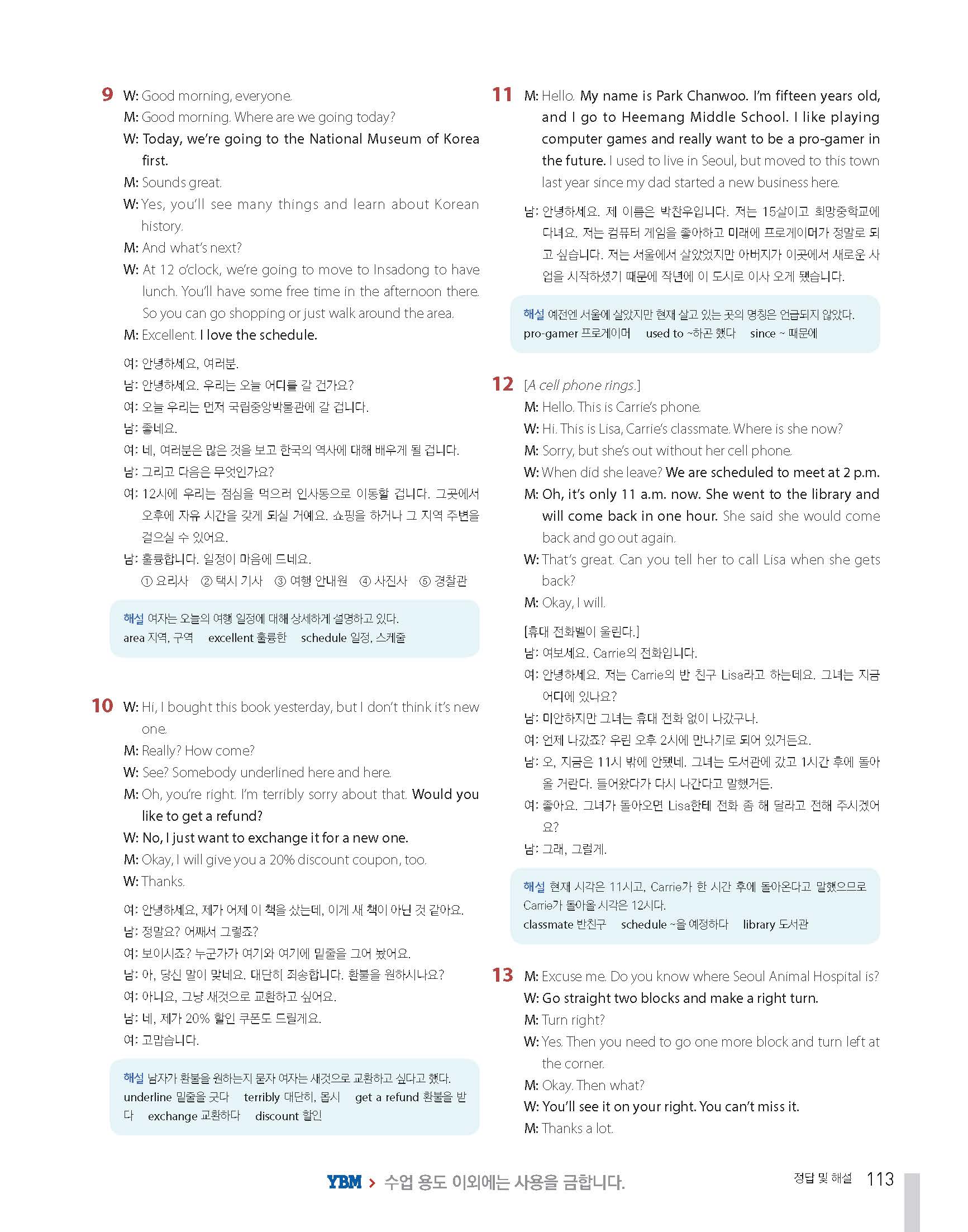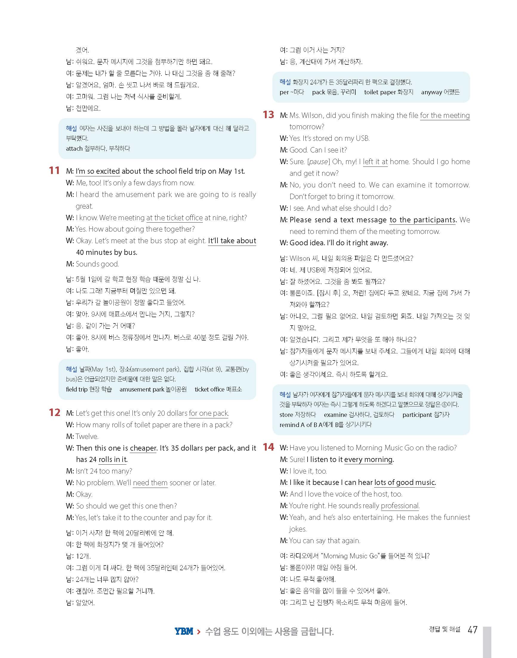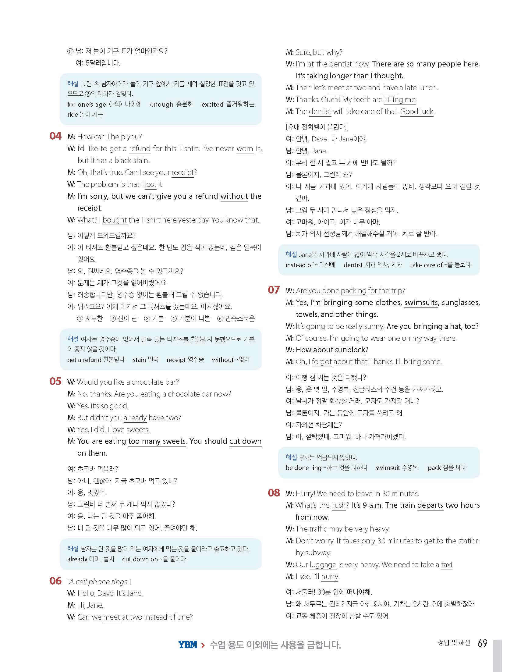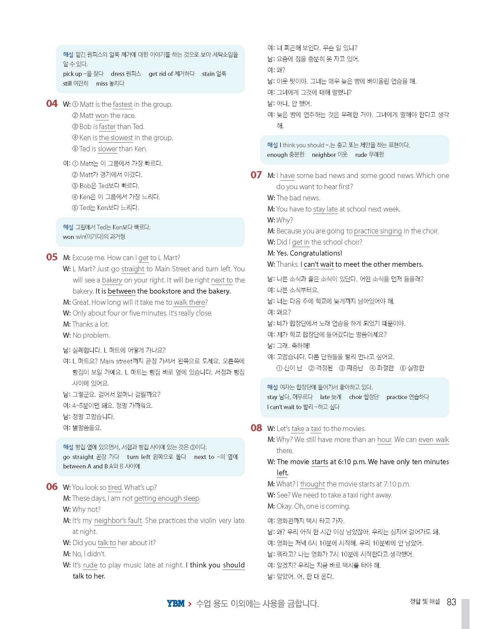 YBM시사 굿리스닝2 Good Listening 2 사진답지 빠른답지 모바일최적화
