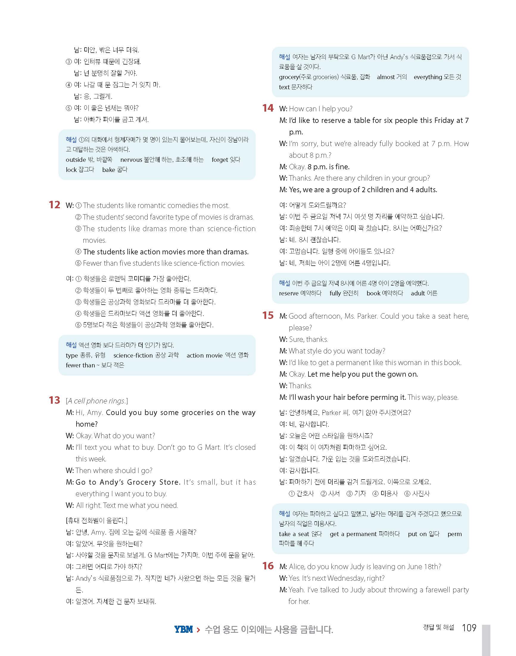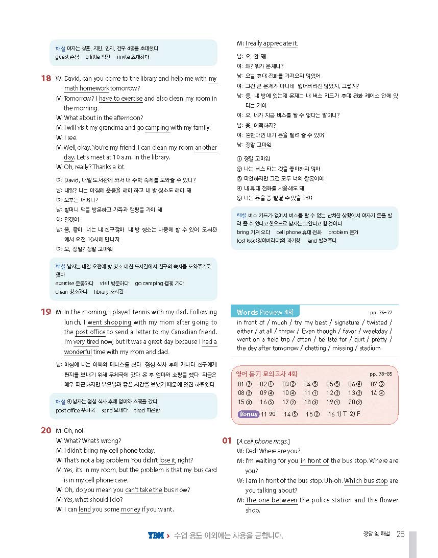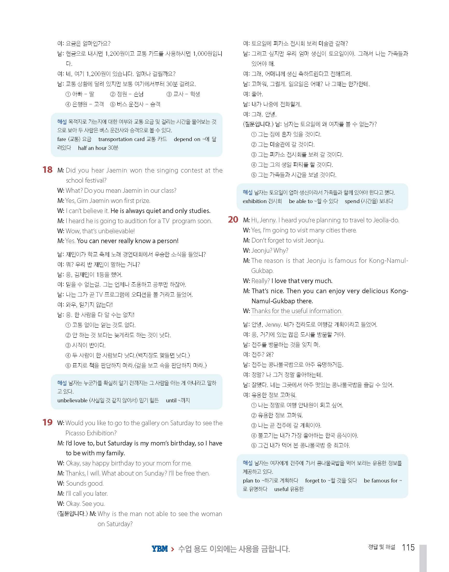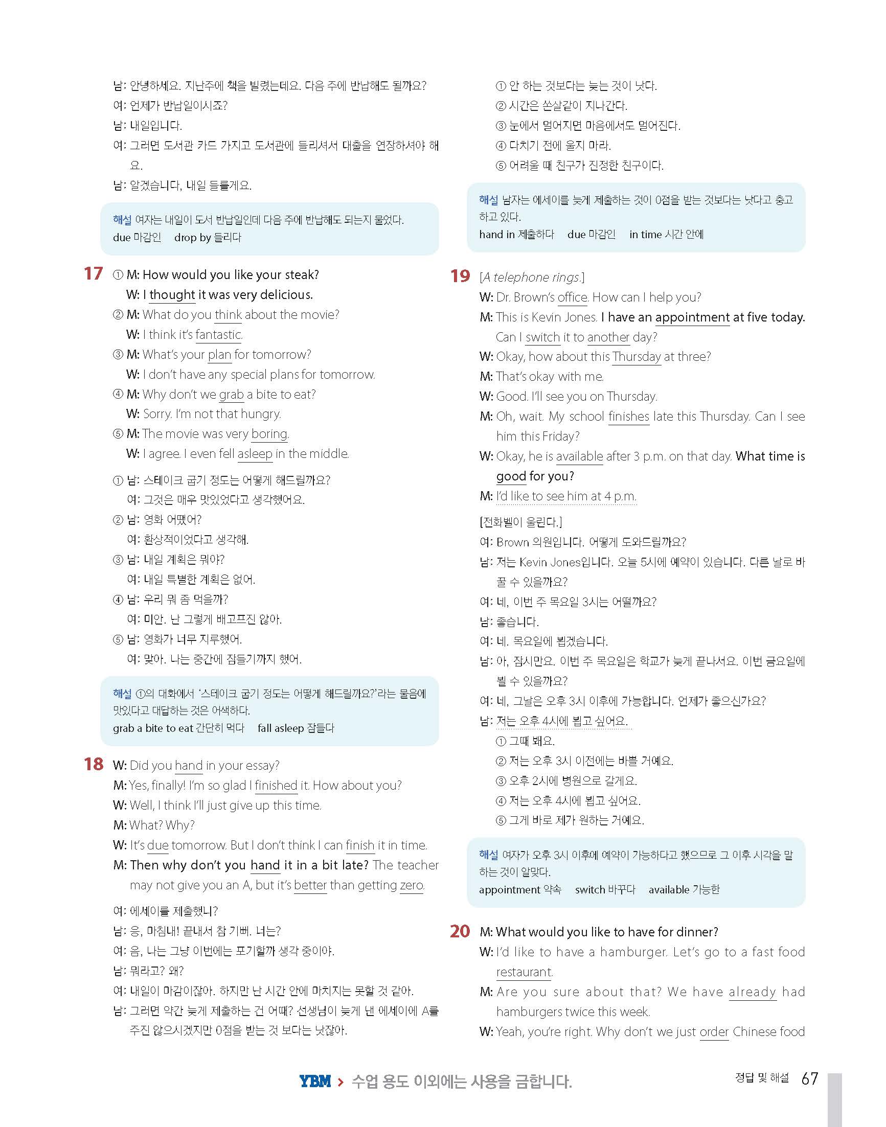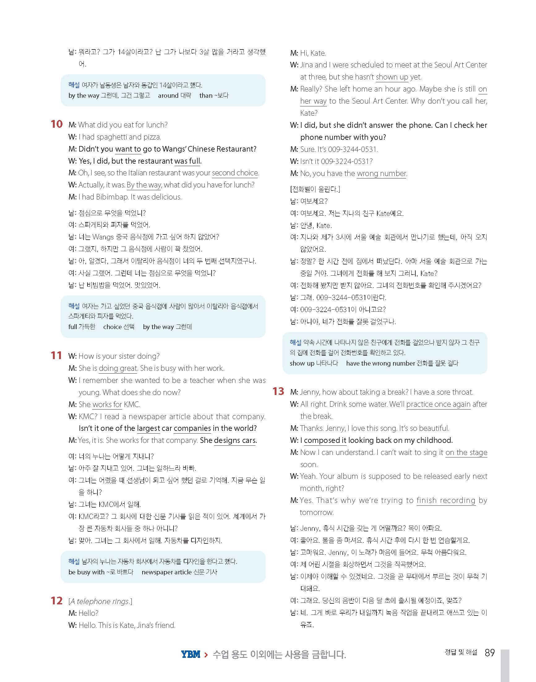 YBM시사 굿리스닝2 Good Listening 2 사진답지 빠른답지 모바일최적화