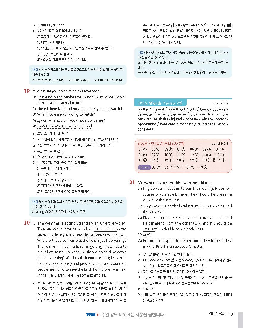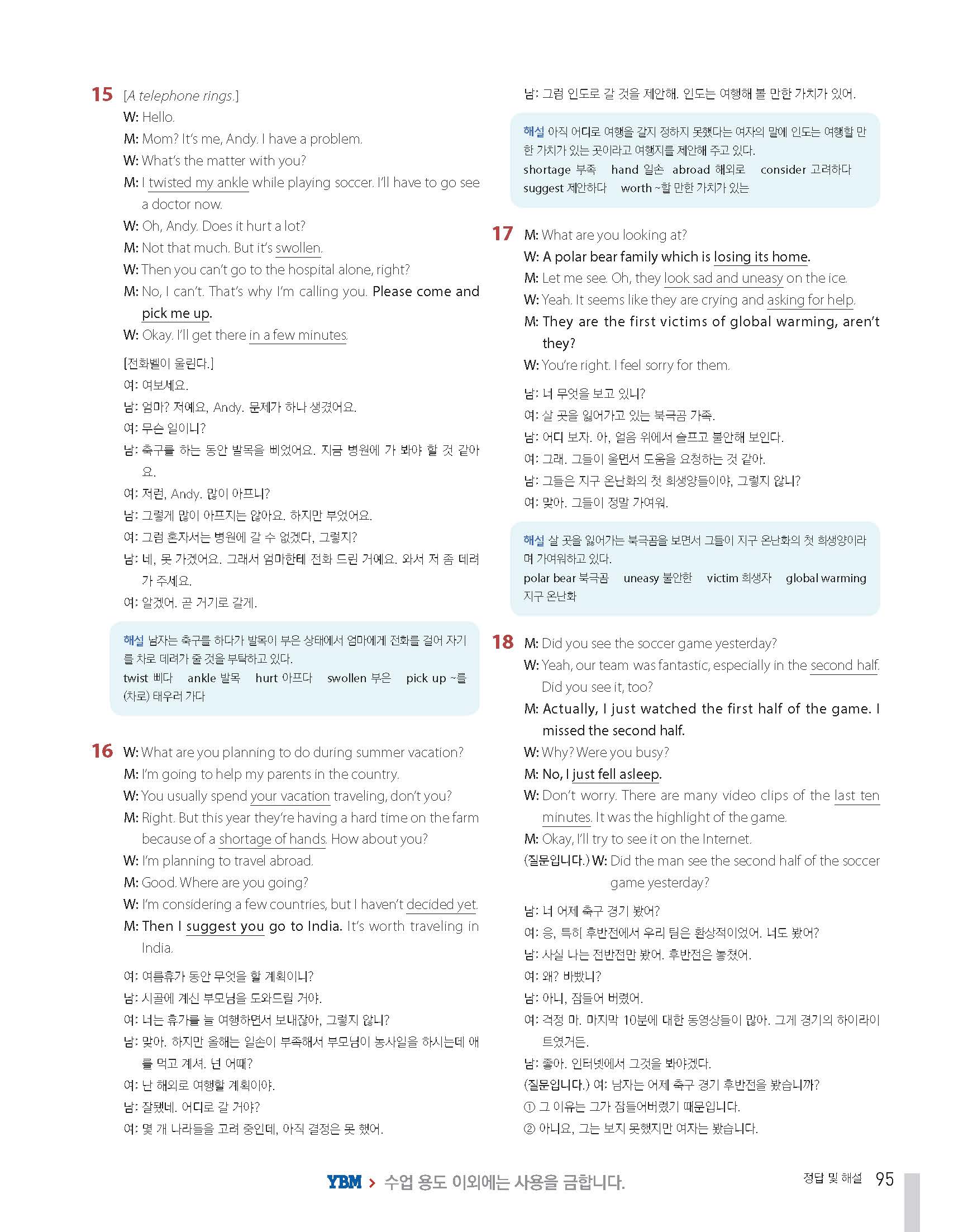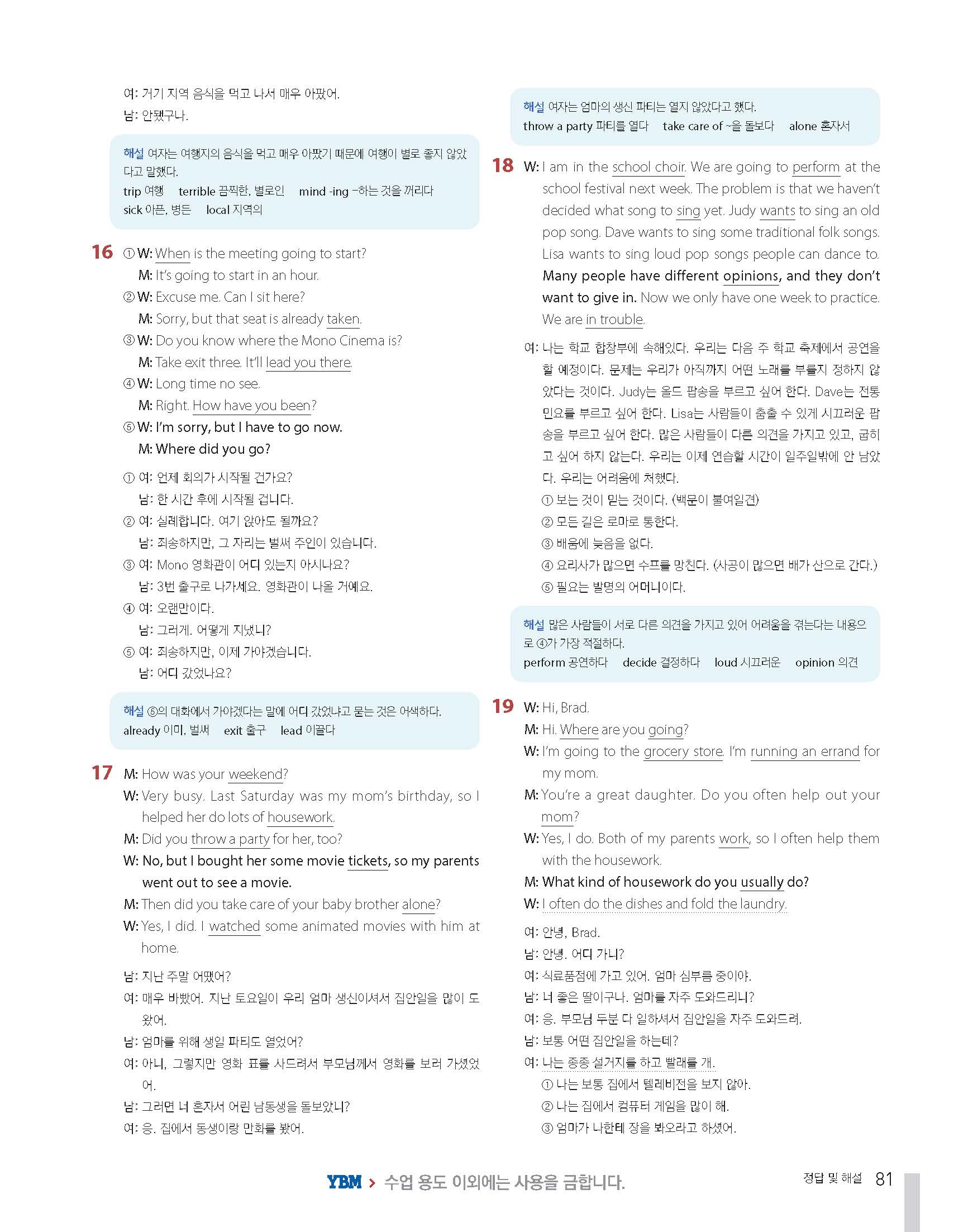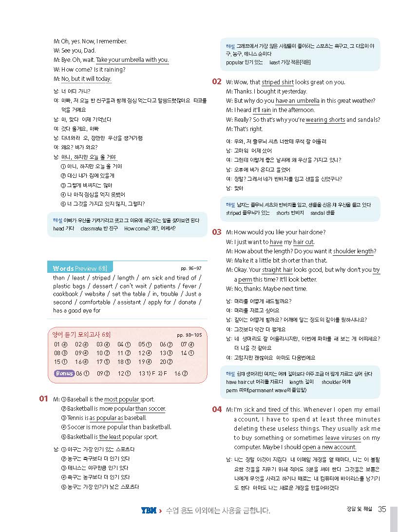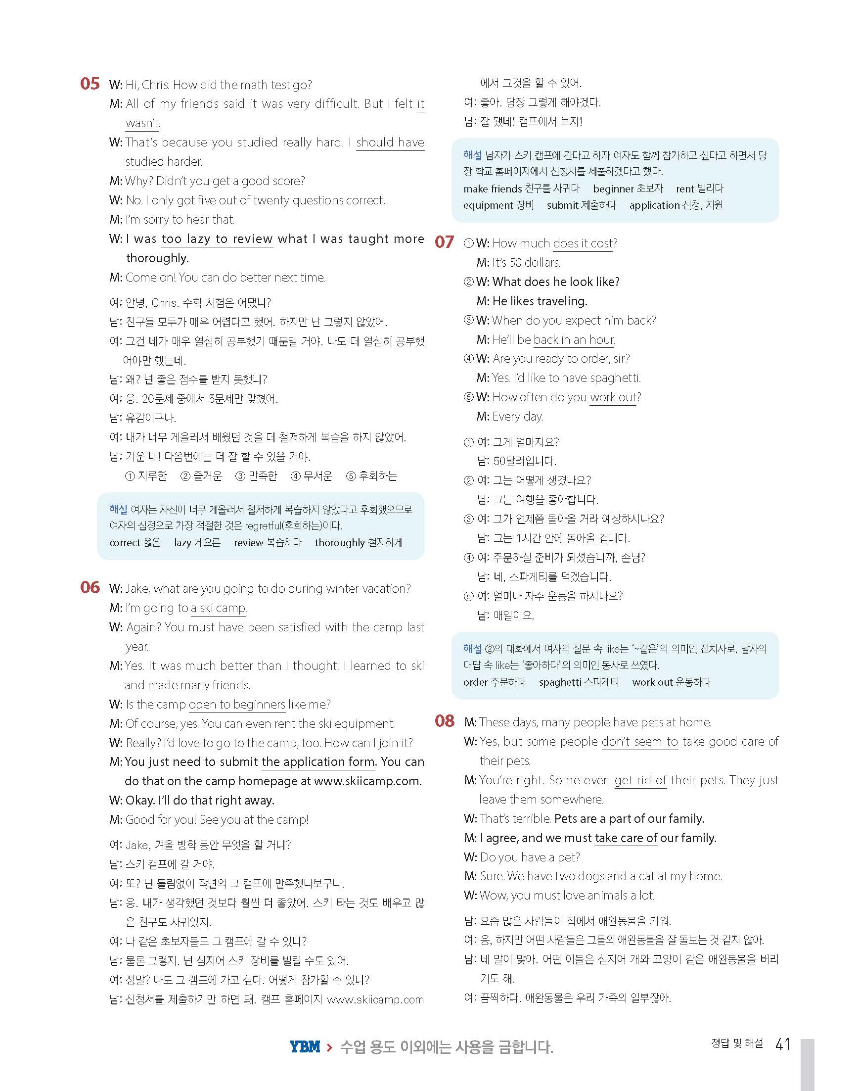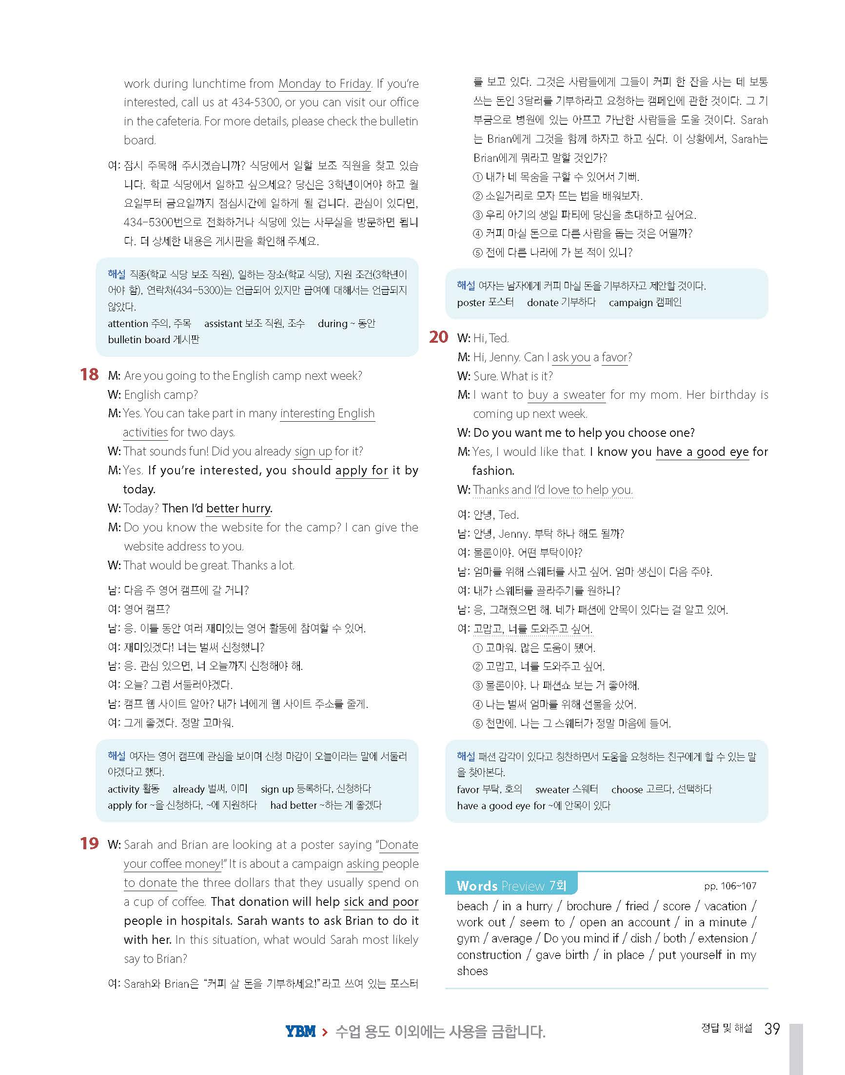 YBM시사 굿리스닝2 Good Listening 2 사진답지 빠른답지 모바일최적화
