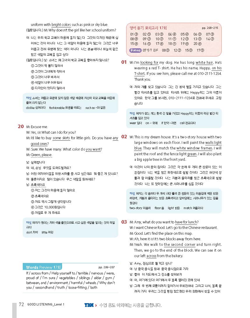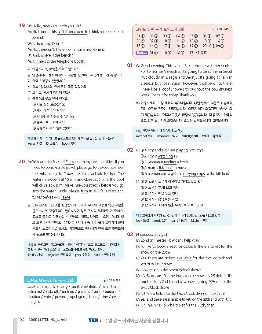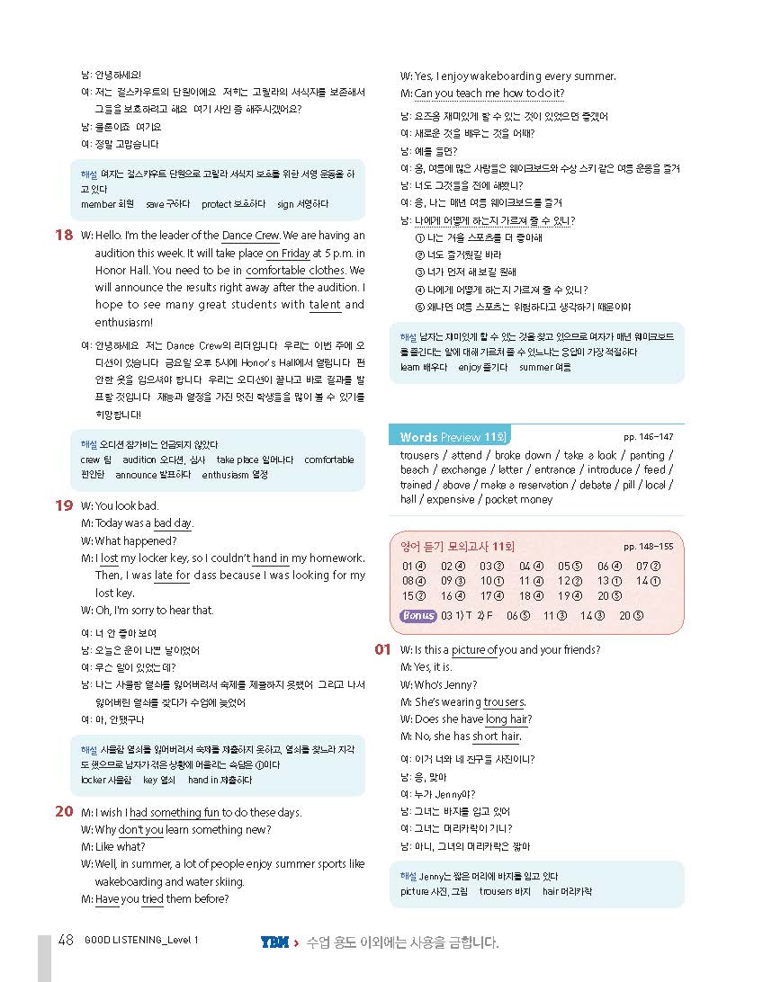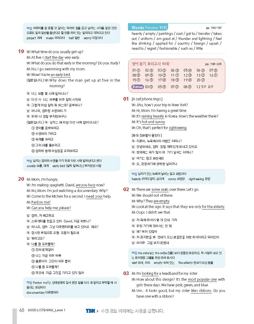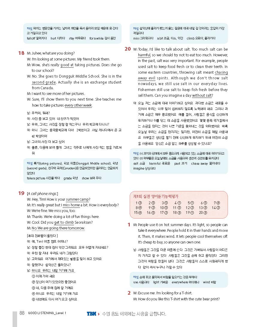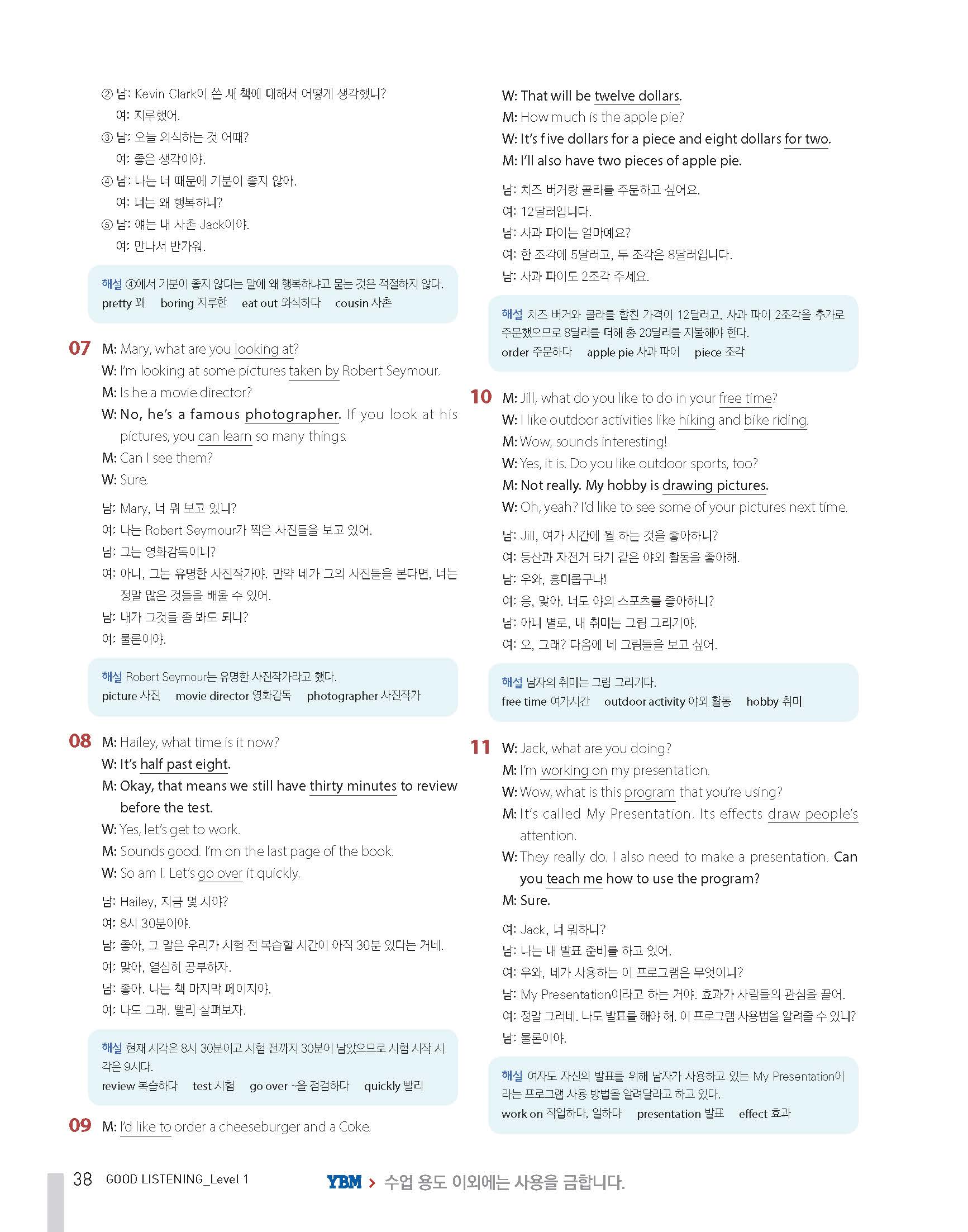 YBM시사 굿리스닝1 Good Listening 1 사진답지 빠른답지 모바일최적화