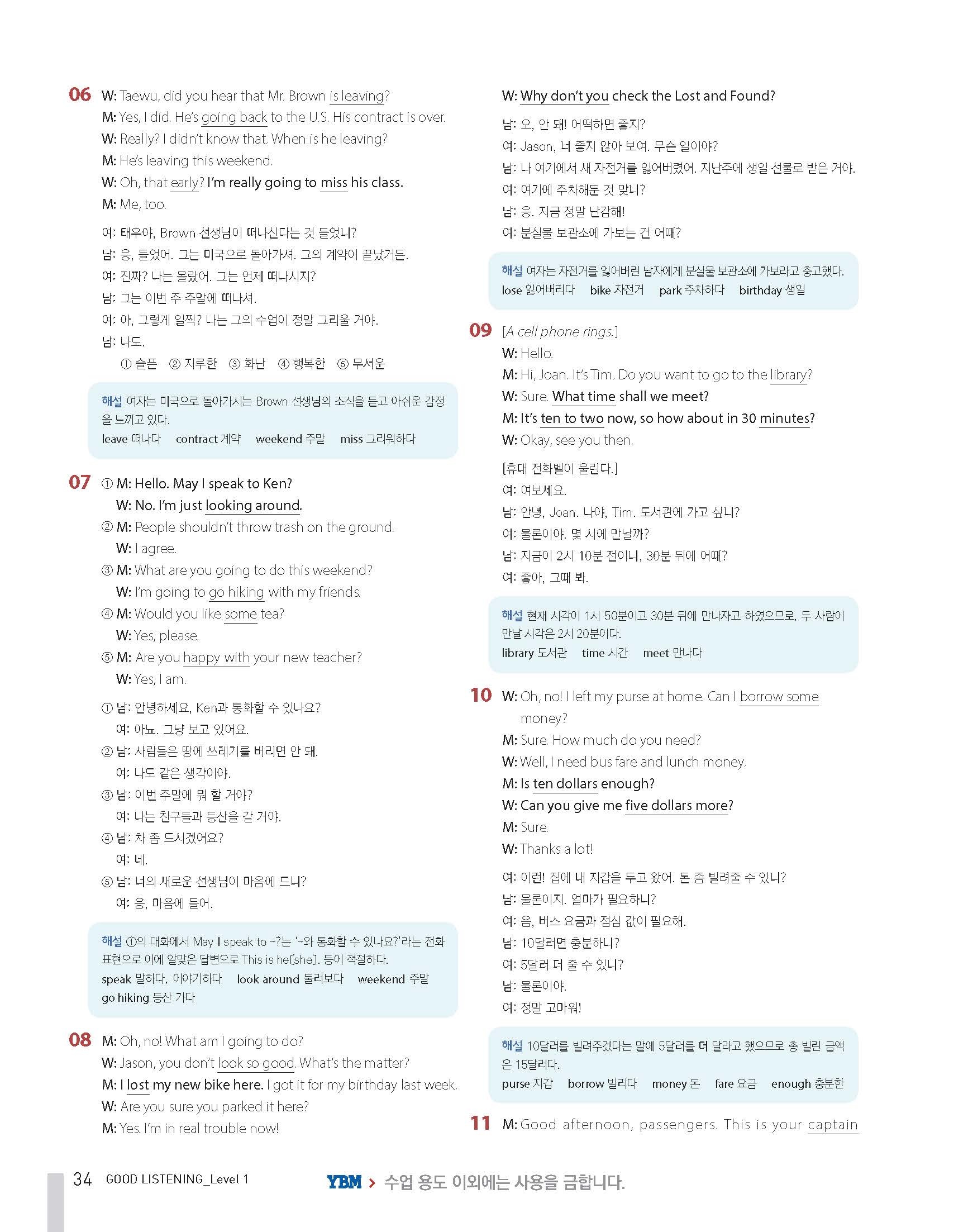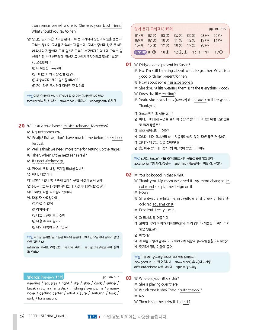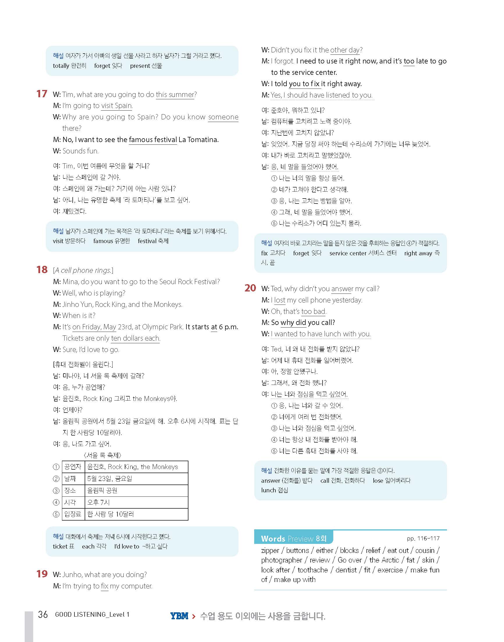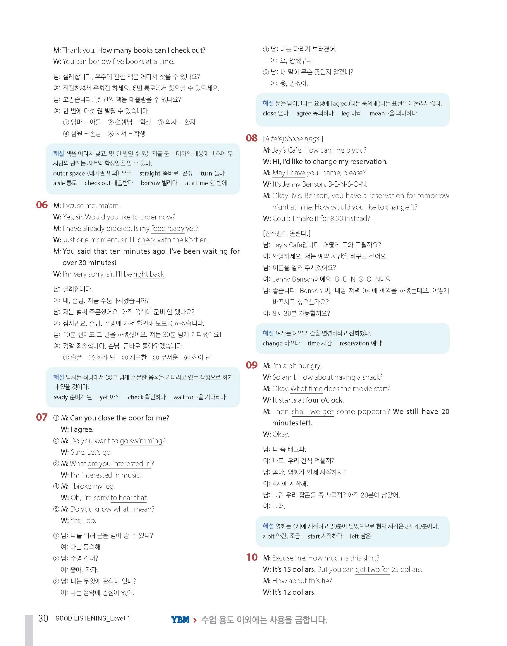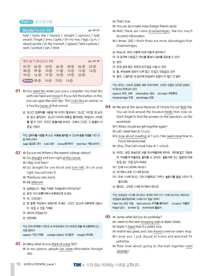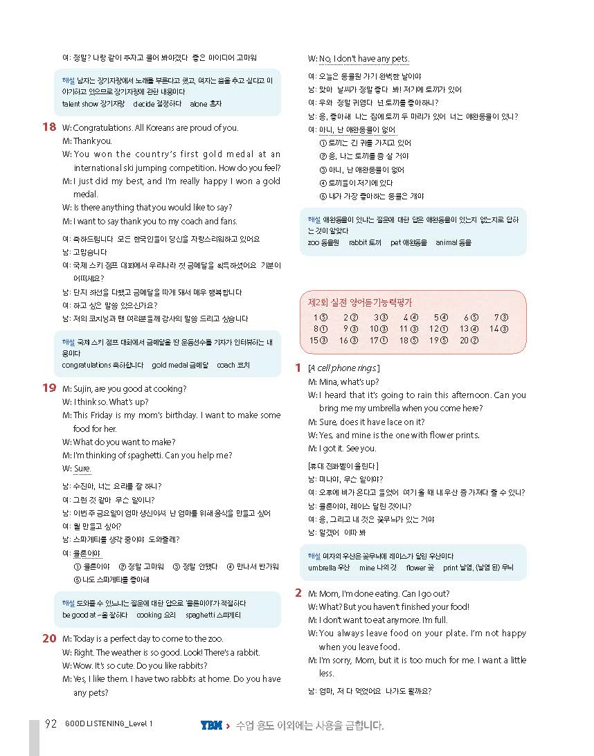YBM시사 굿리스닝1 Good Listening 1 사진답지 빠른답지 모바일최적화