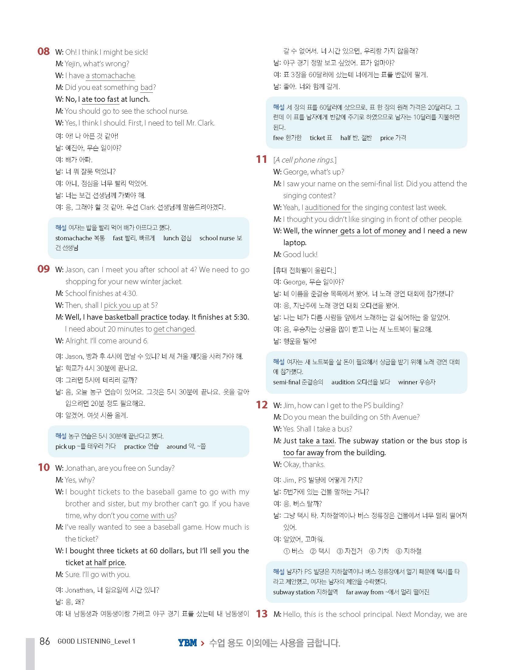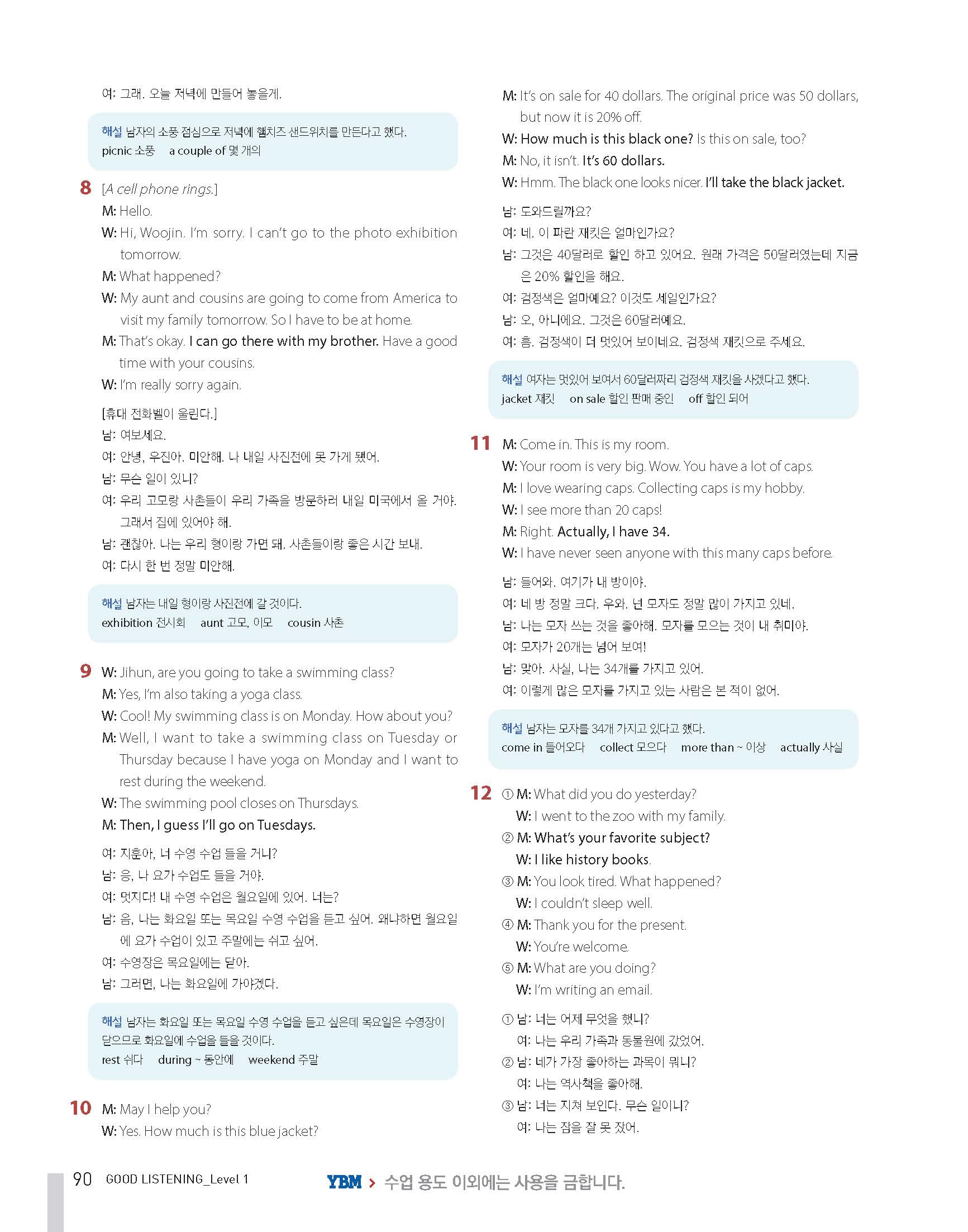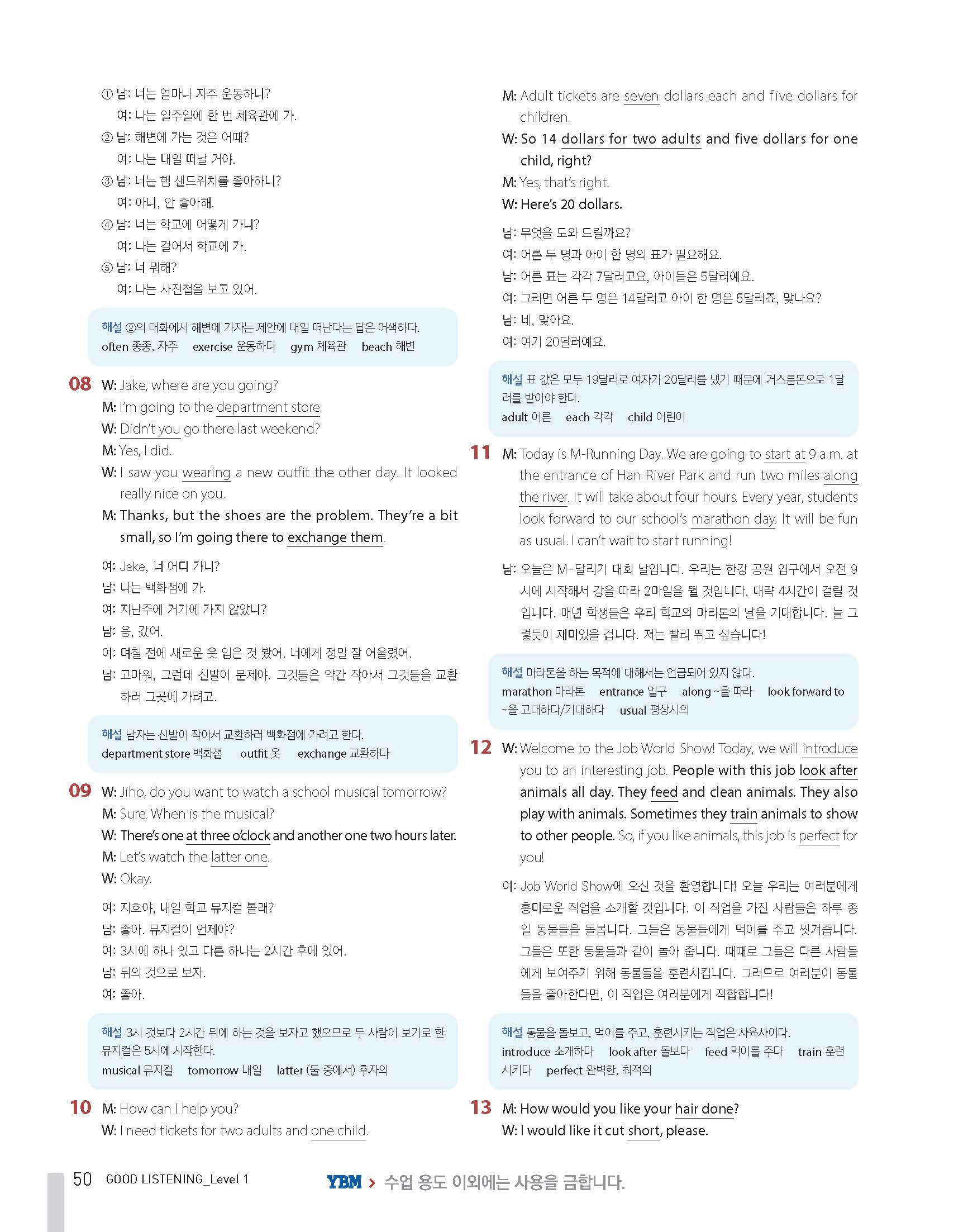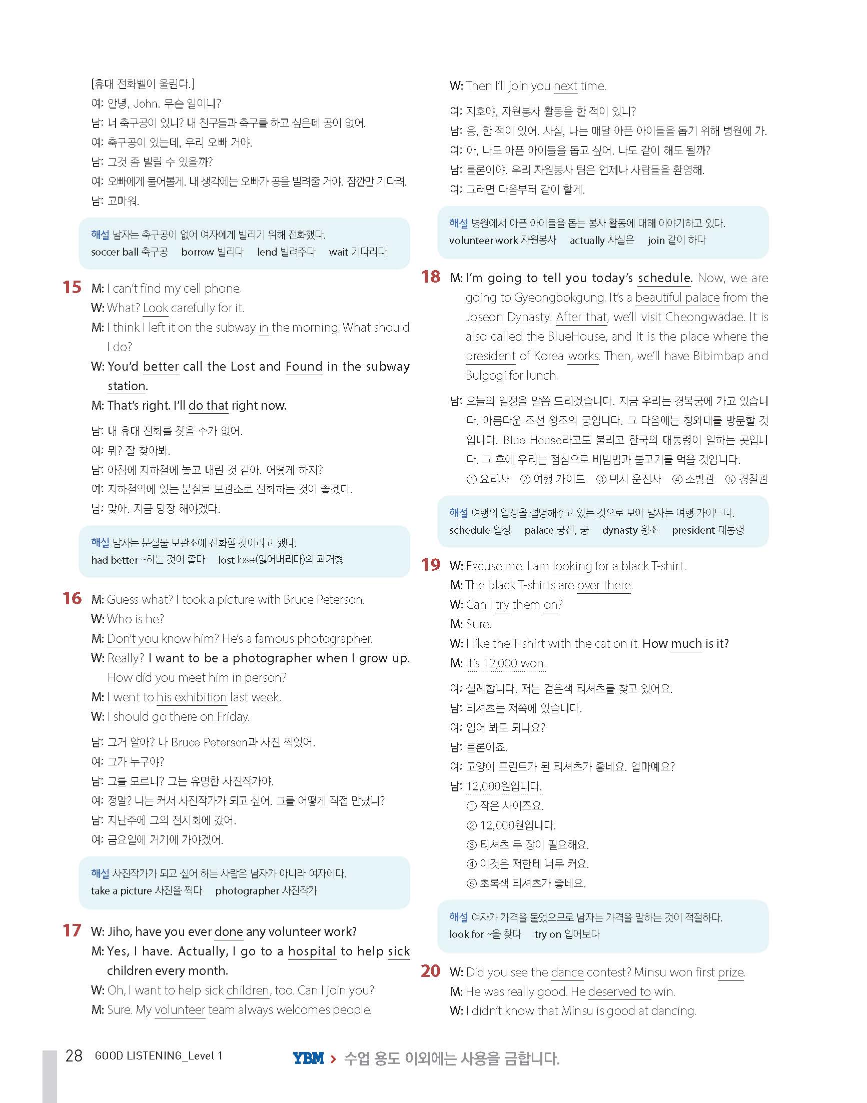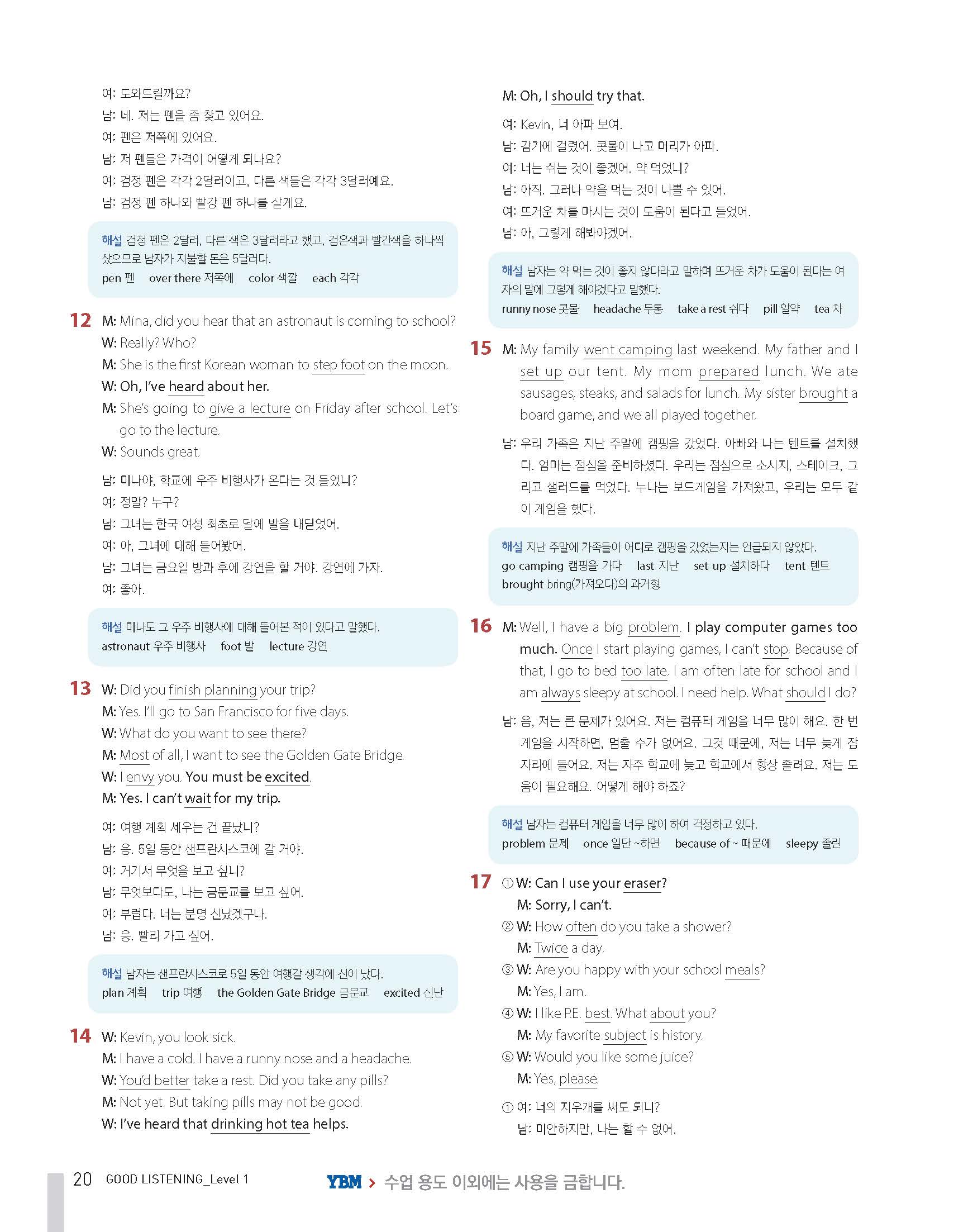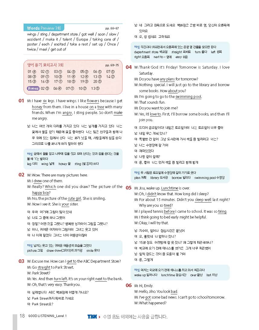 YBM시사 굿리스닝1 Good Listening 1 사진답지 빠른답지 모바일최적화