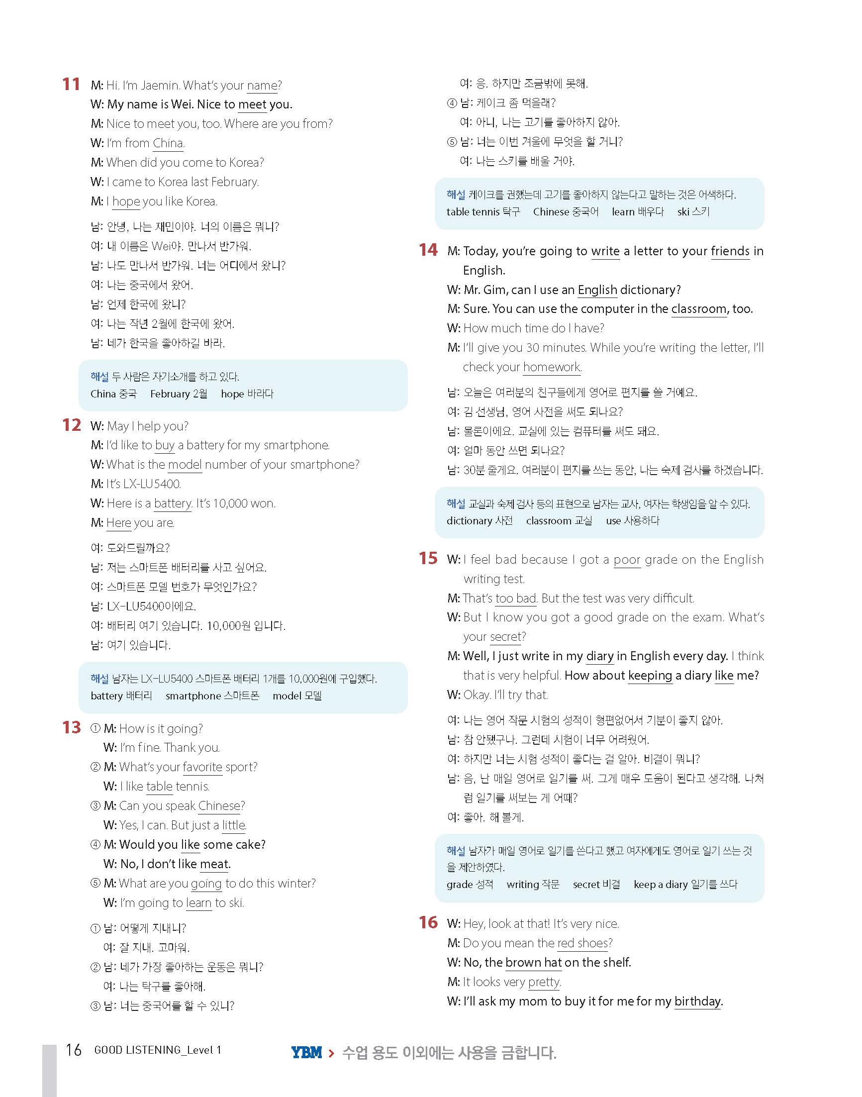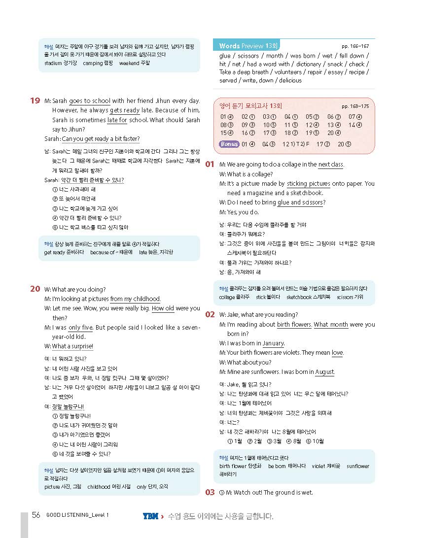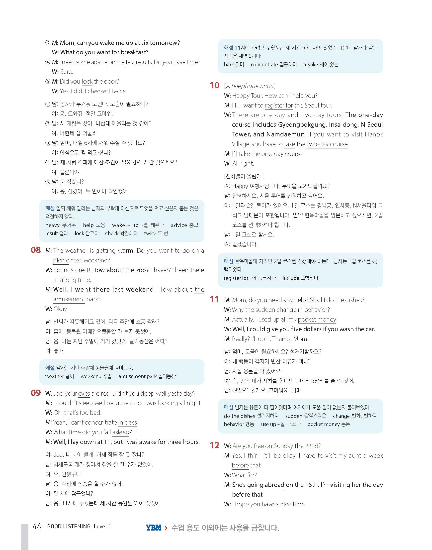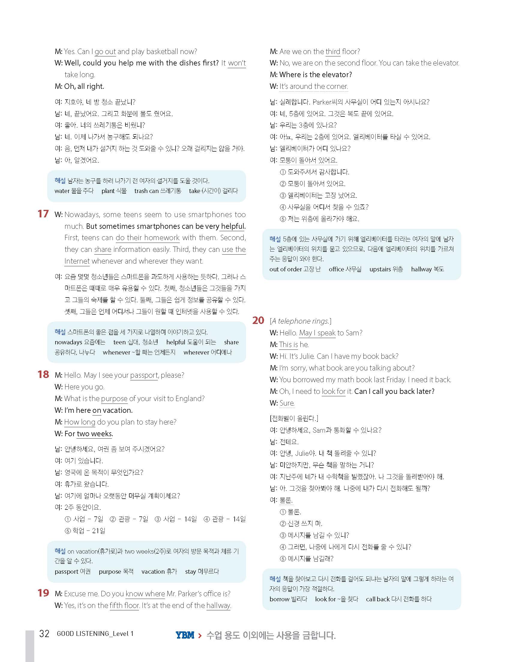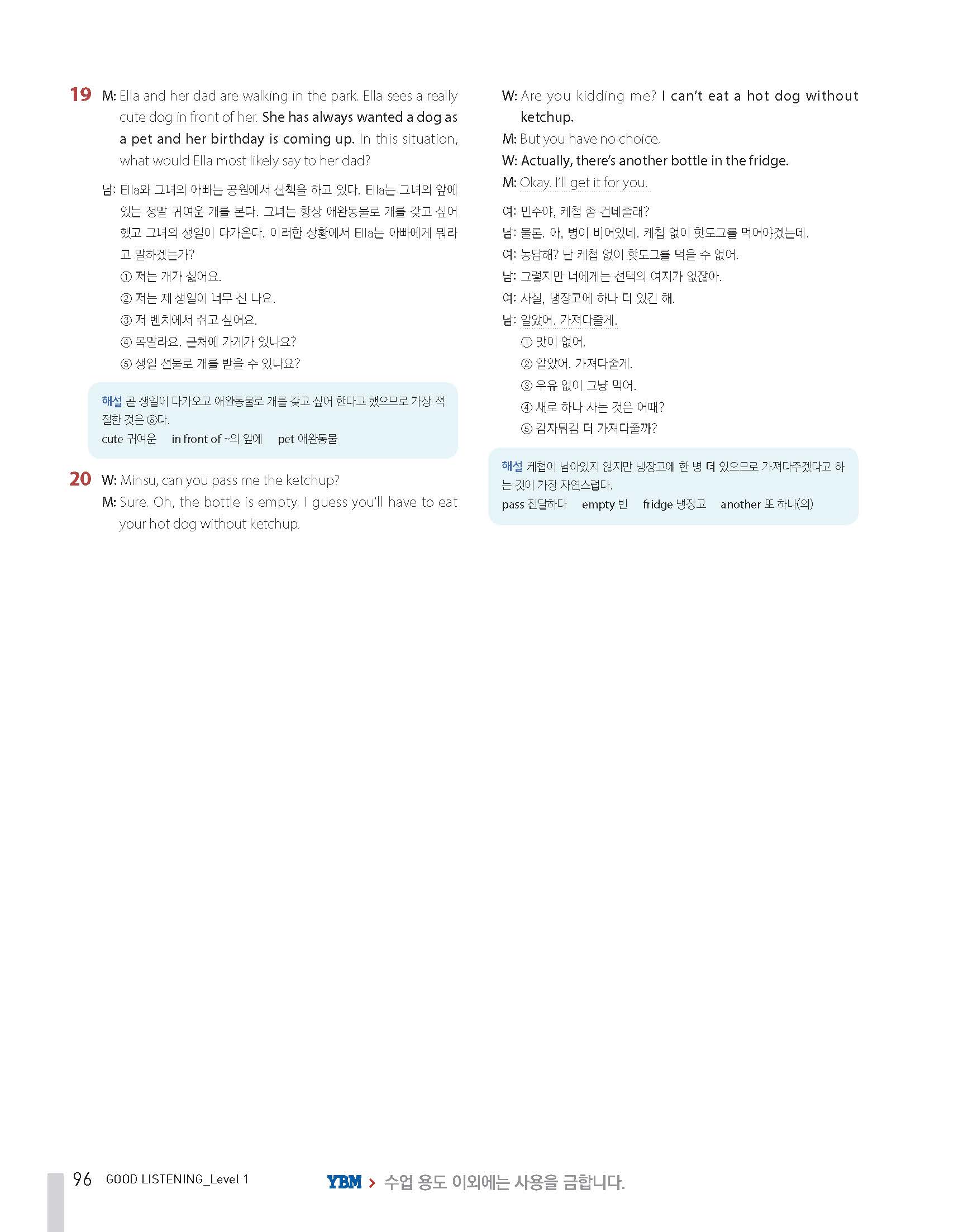 YBM시사 굿리스닝1 Good Listening 1 사진답지 빠른답지 모바일최적화