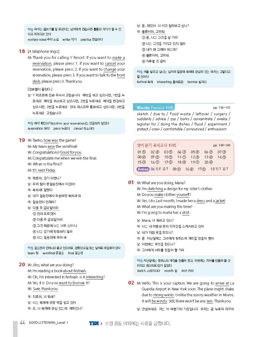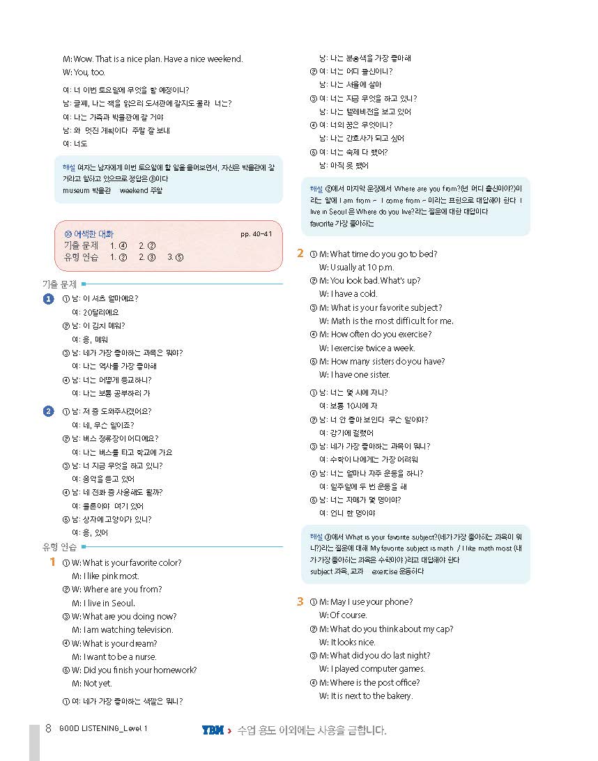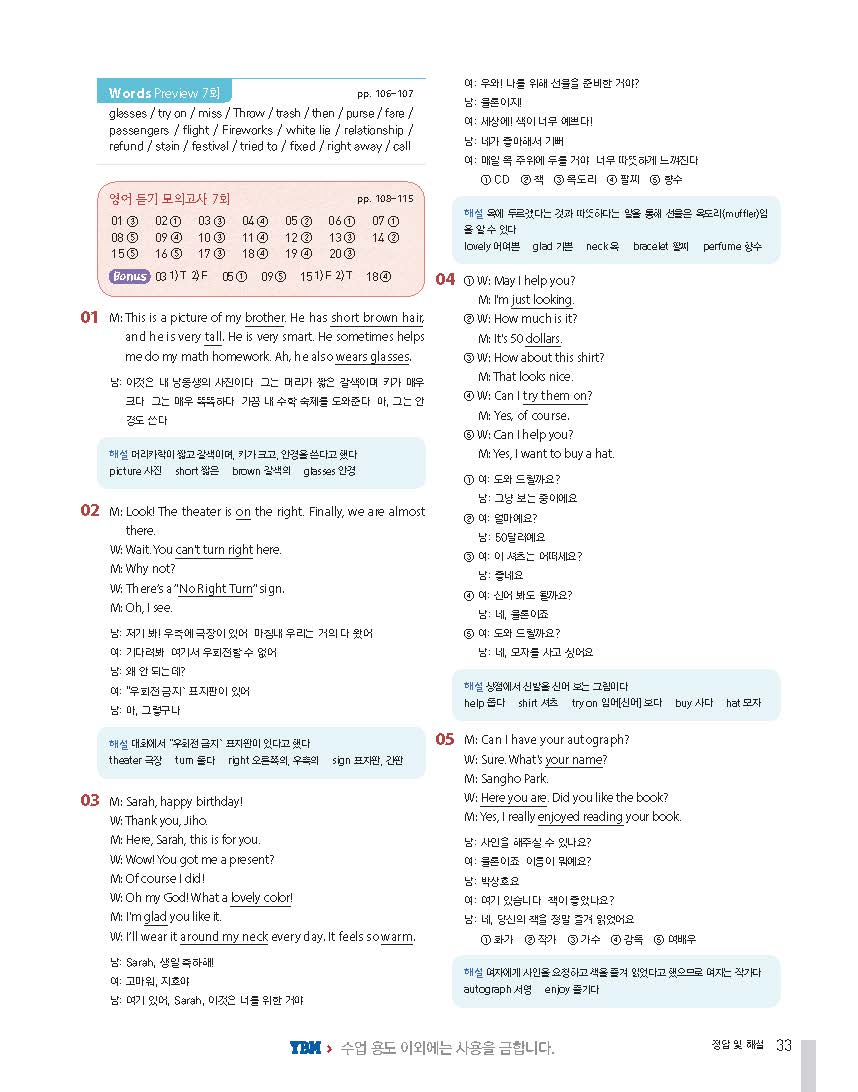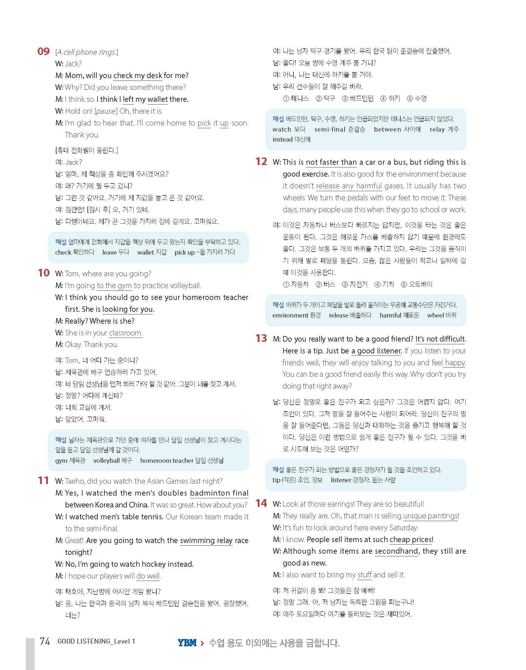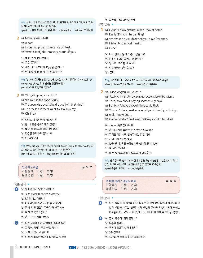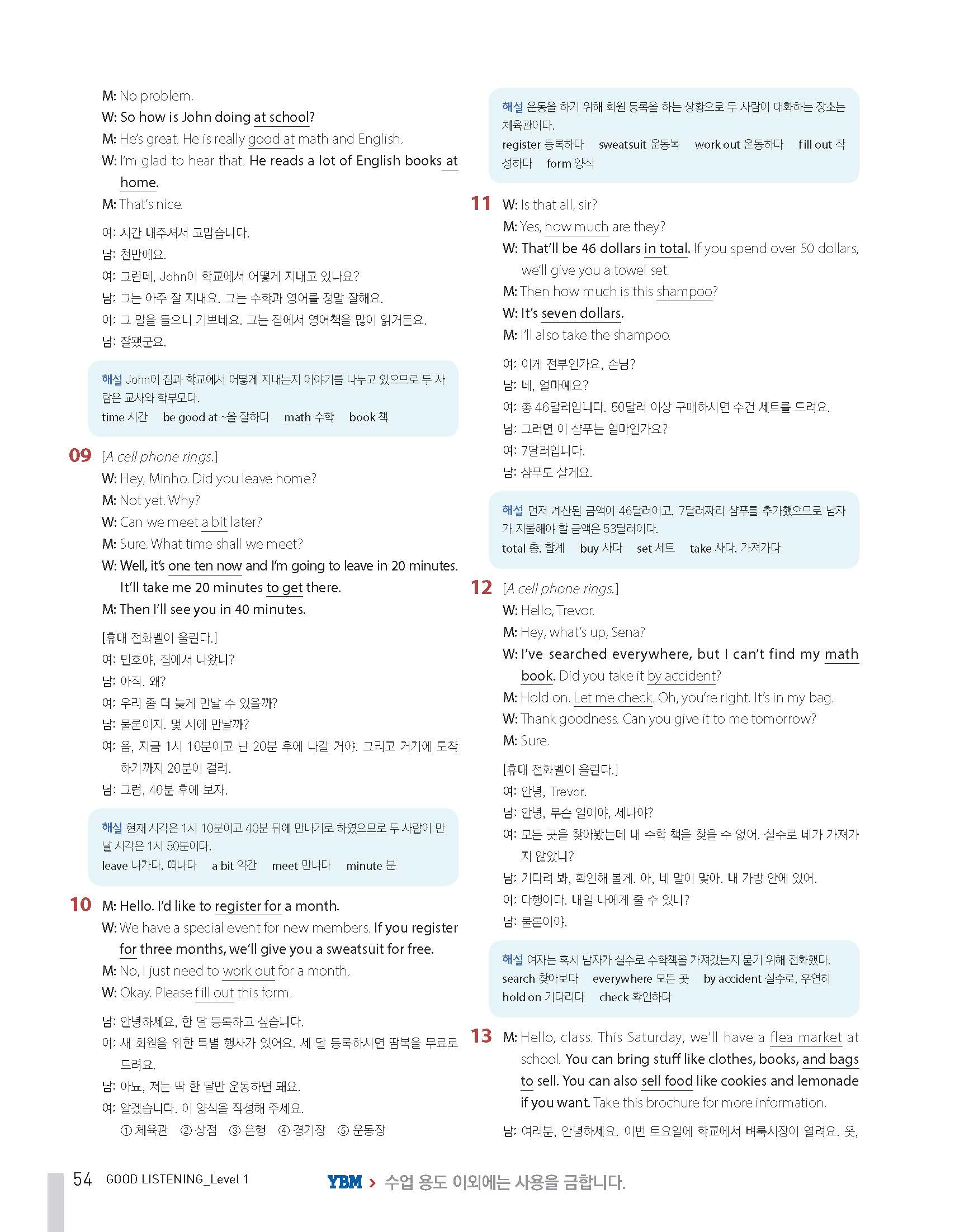 YBM시사 굿리스닝1 Good Listening 1 사진답지 빠른답지 모바일최적화