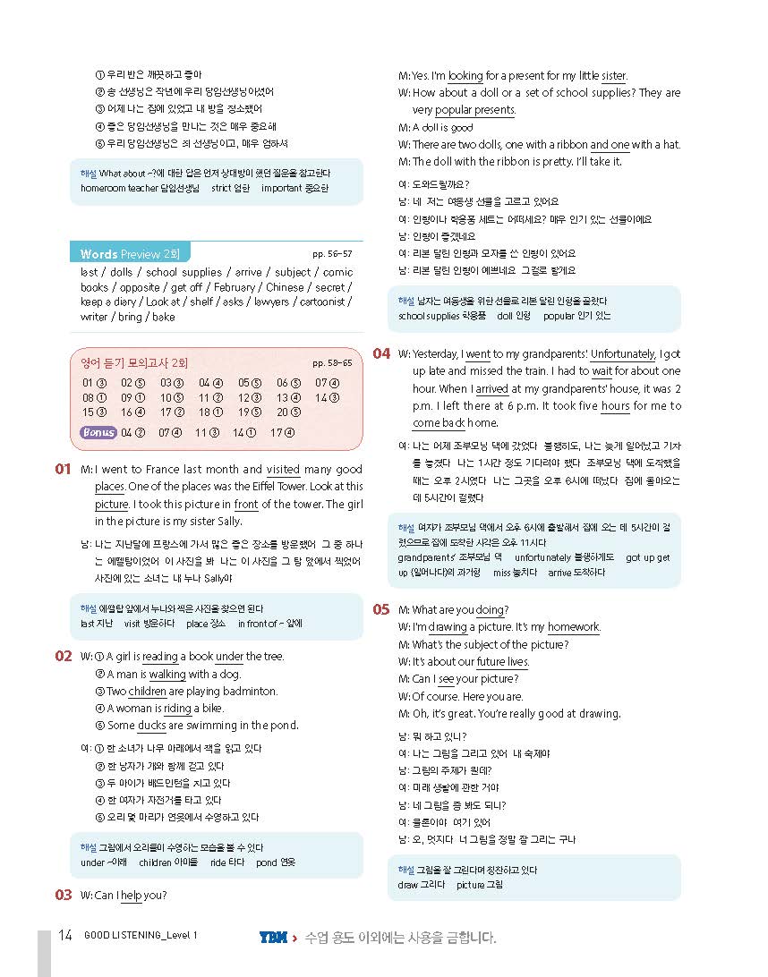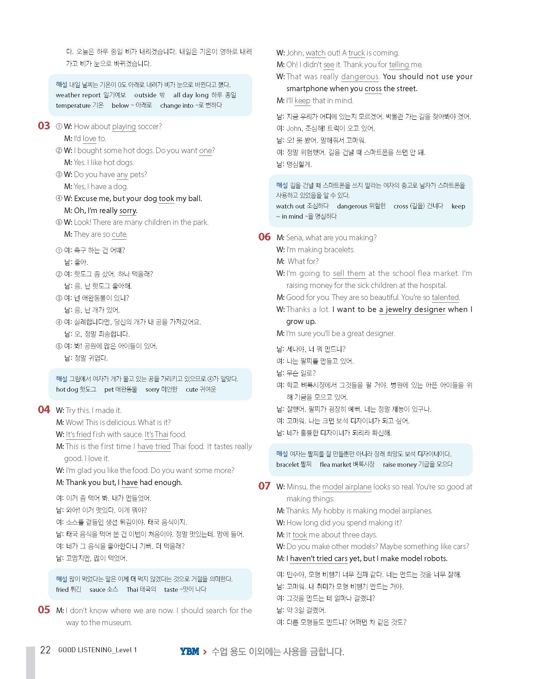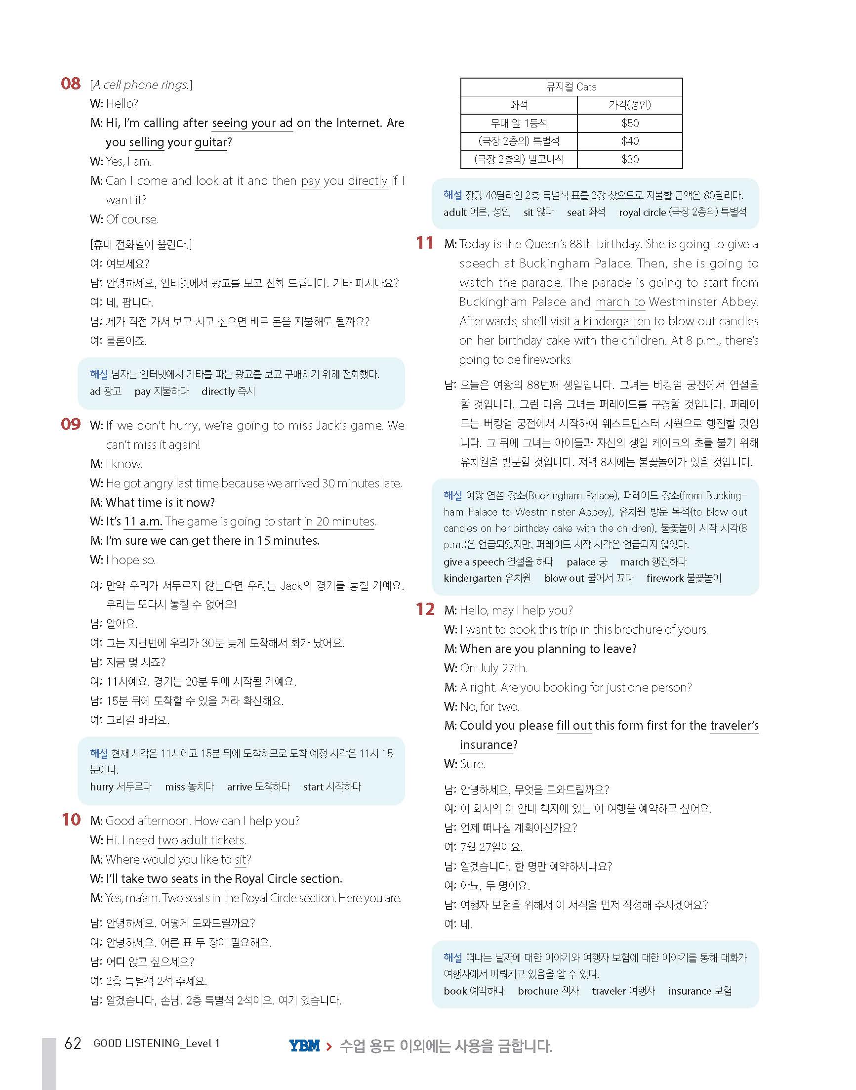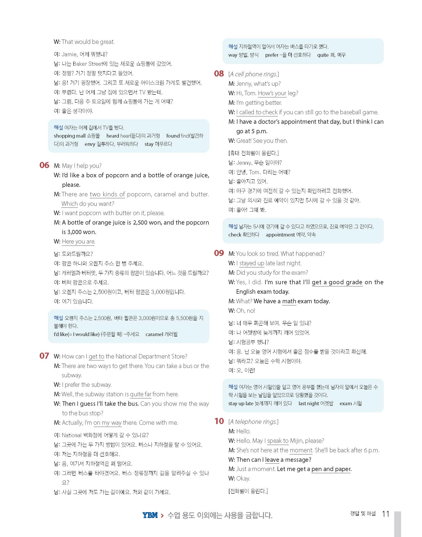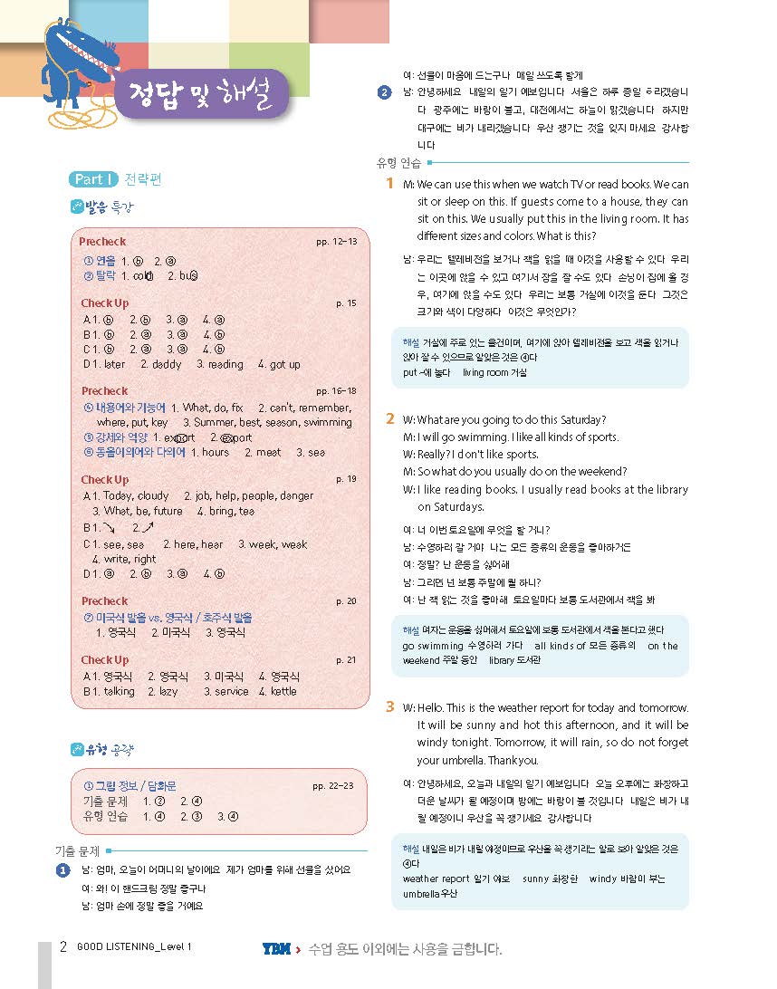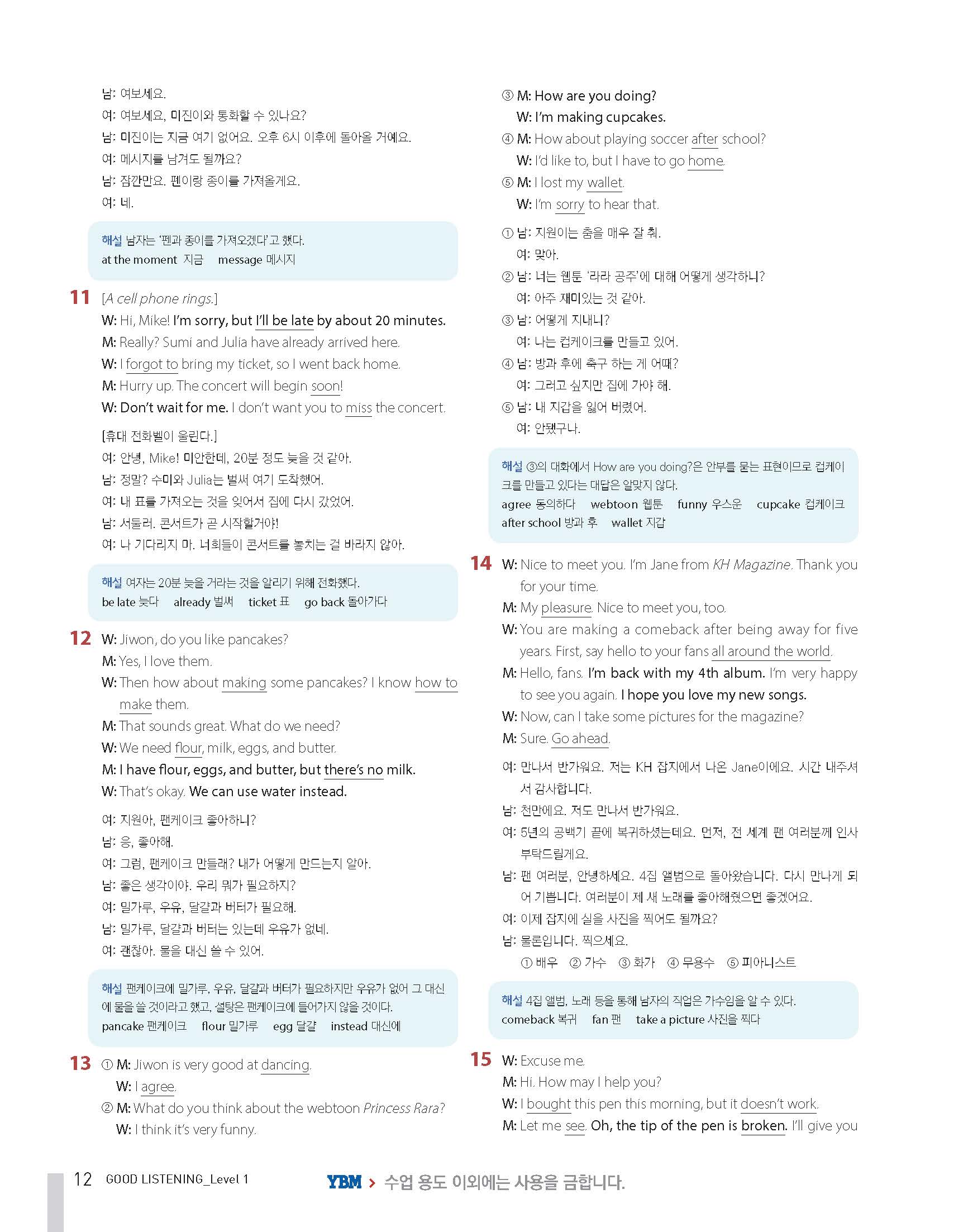 YBM시사 굿리스닝1 Good Listening 1 사진답지 빠른답지 모바일최적화