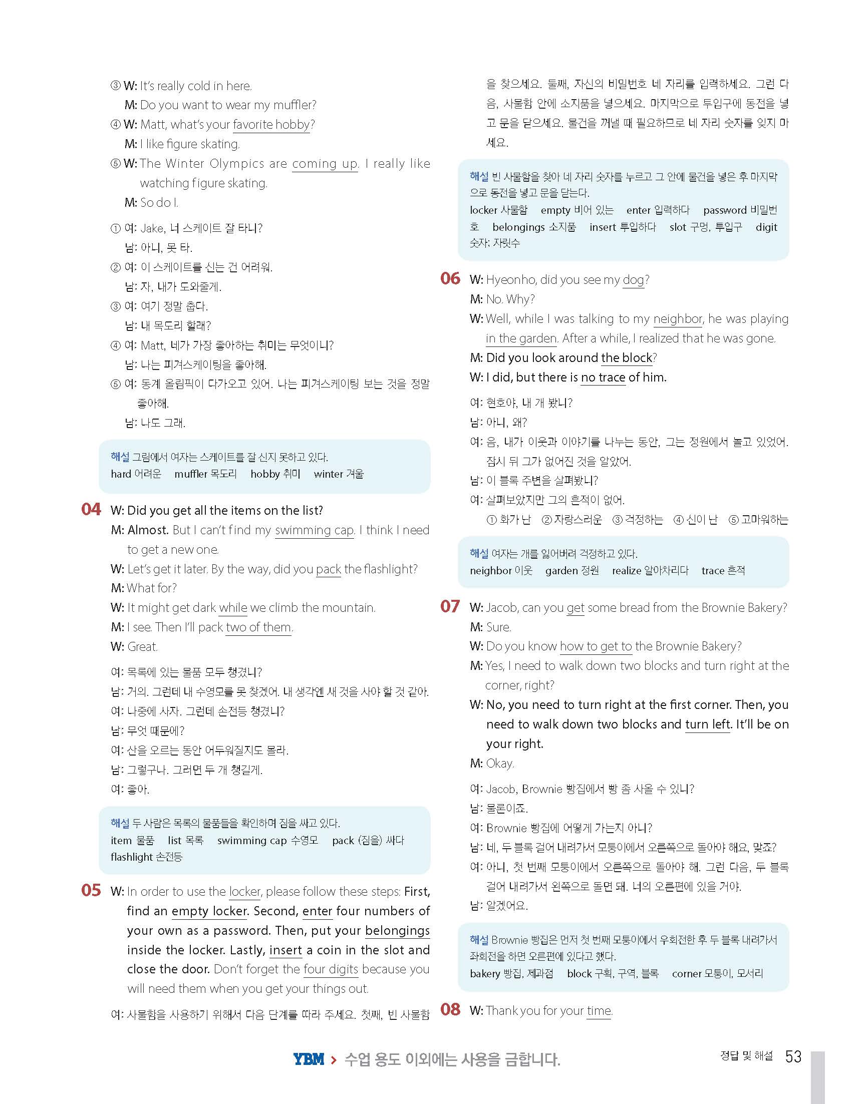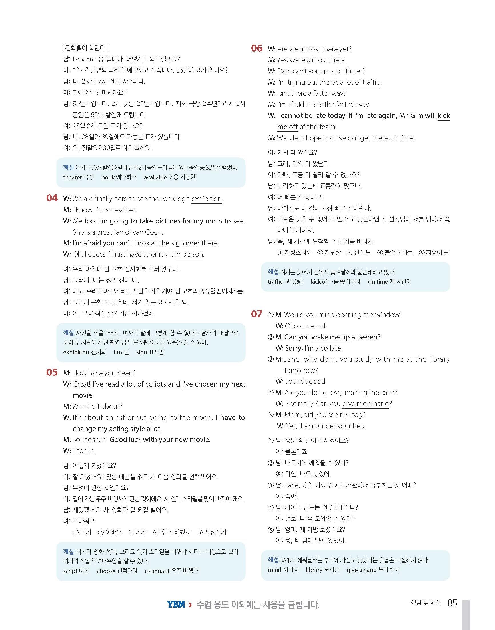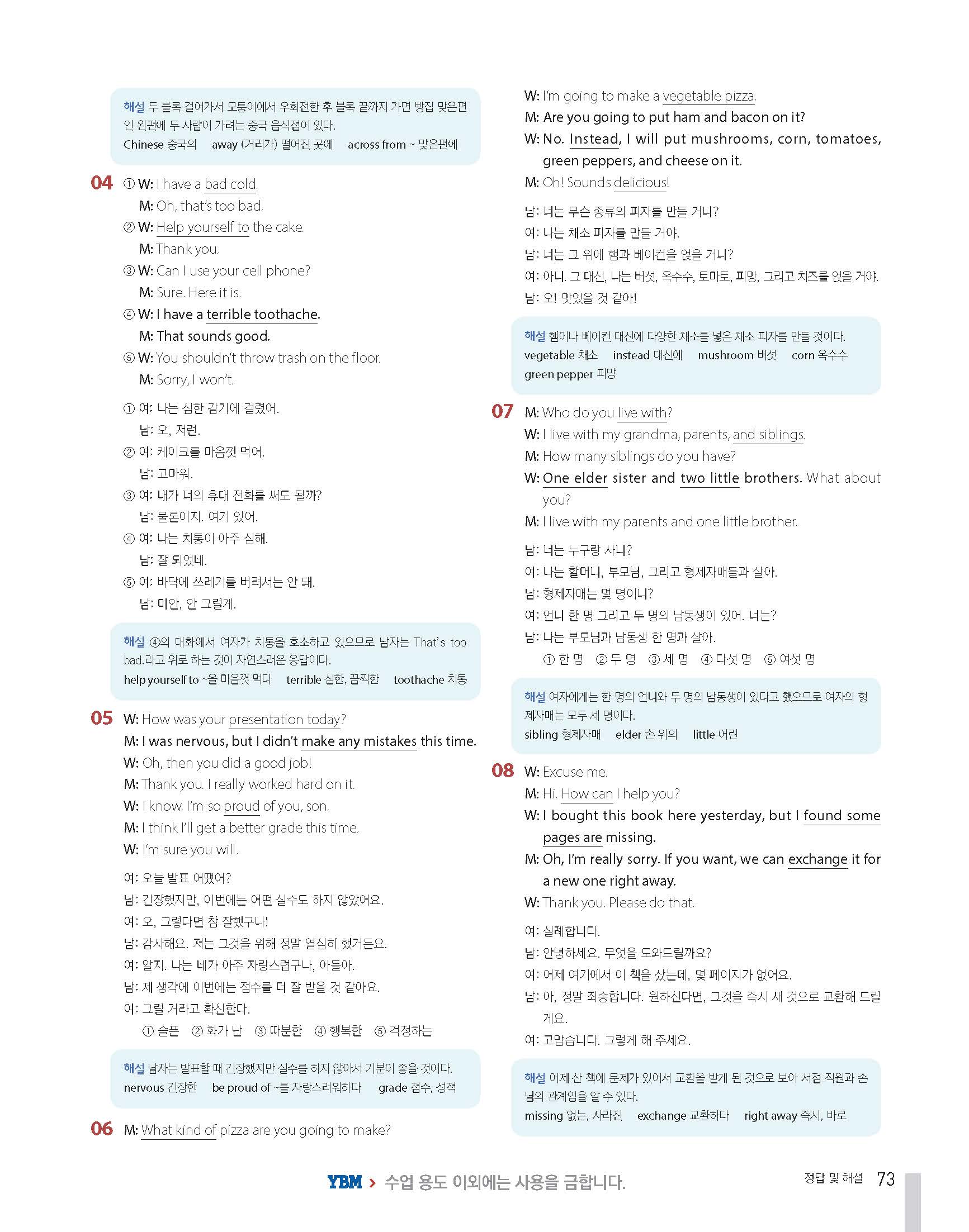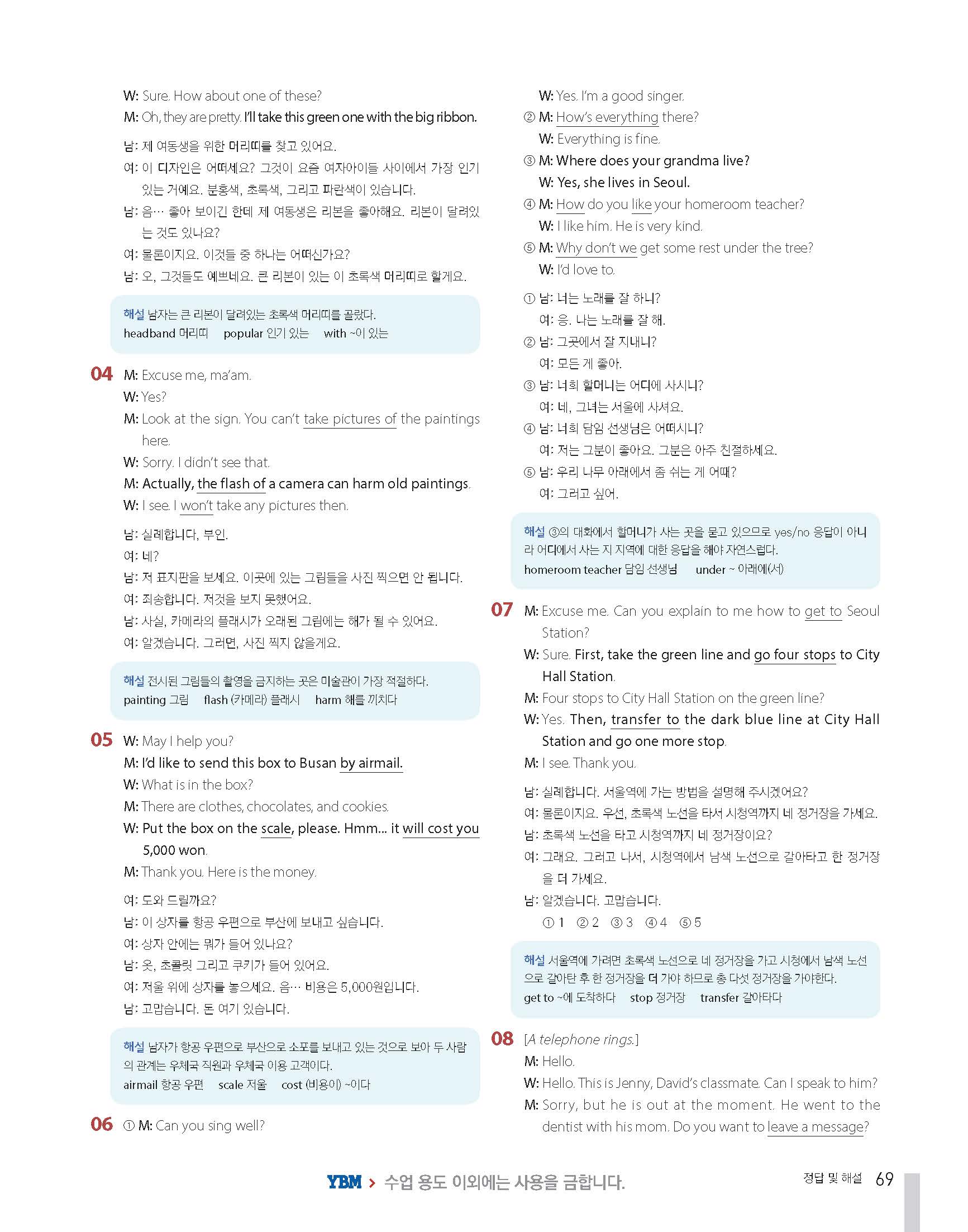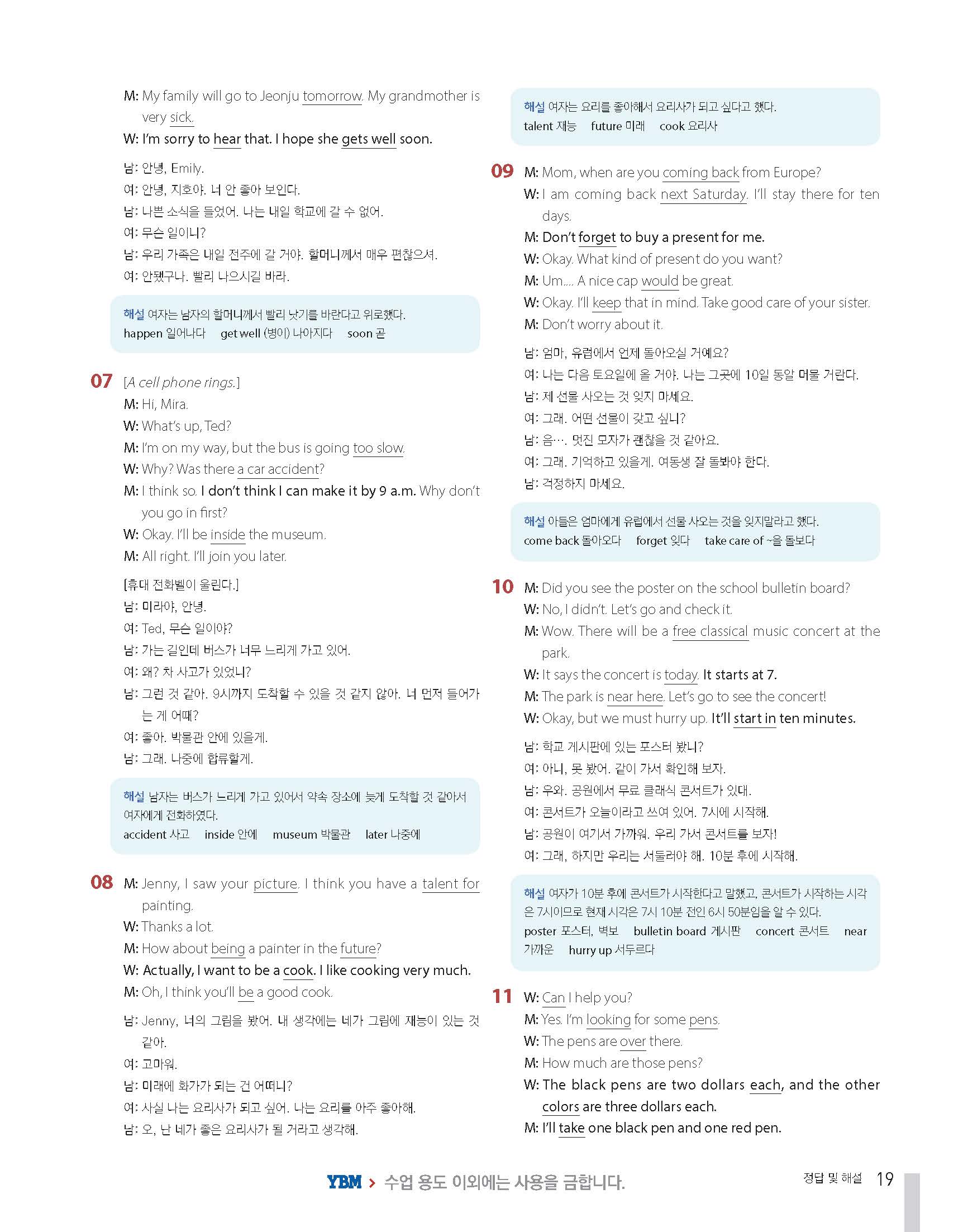 YBM시사 굿리스닝1 Good Listening 1 사진답지 빠른답지 모바일최적화