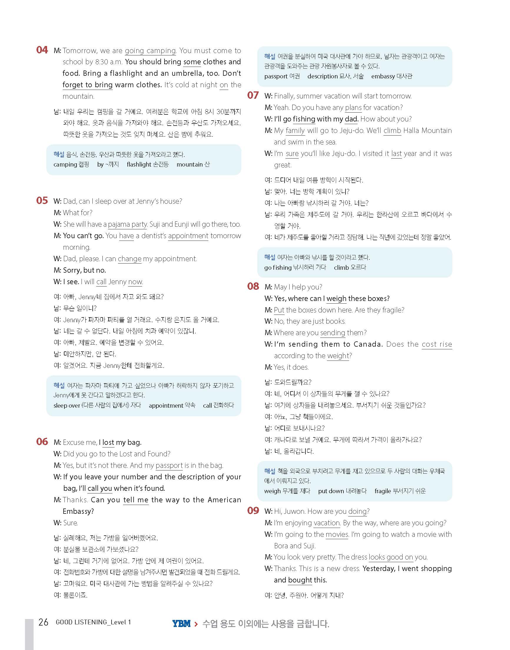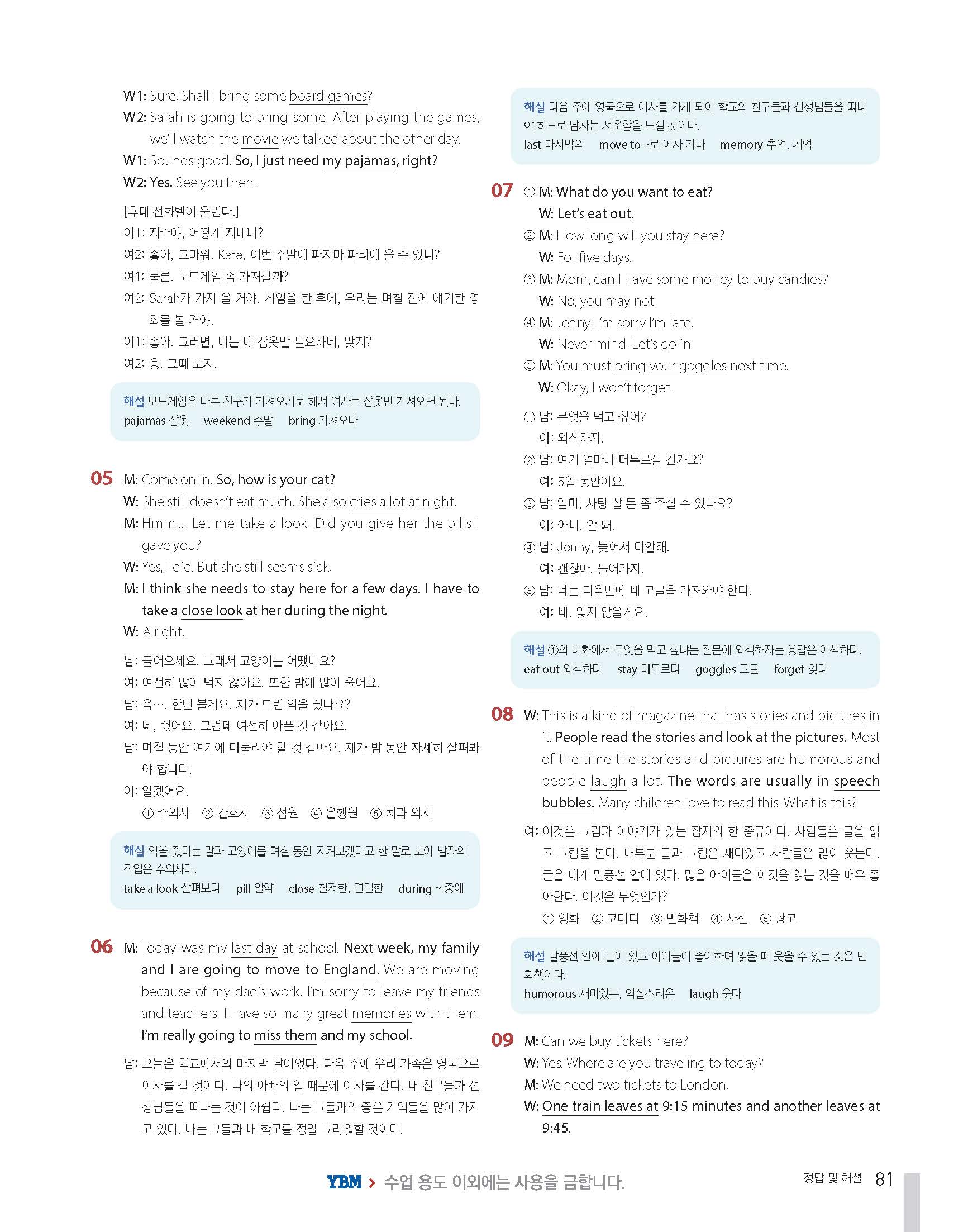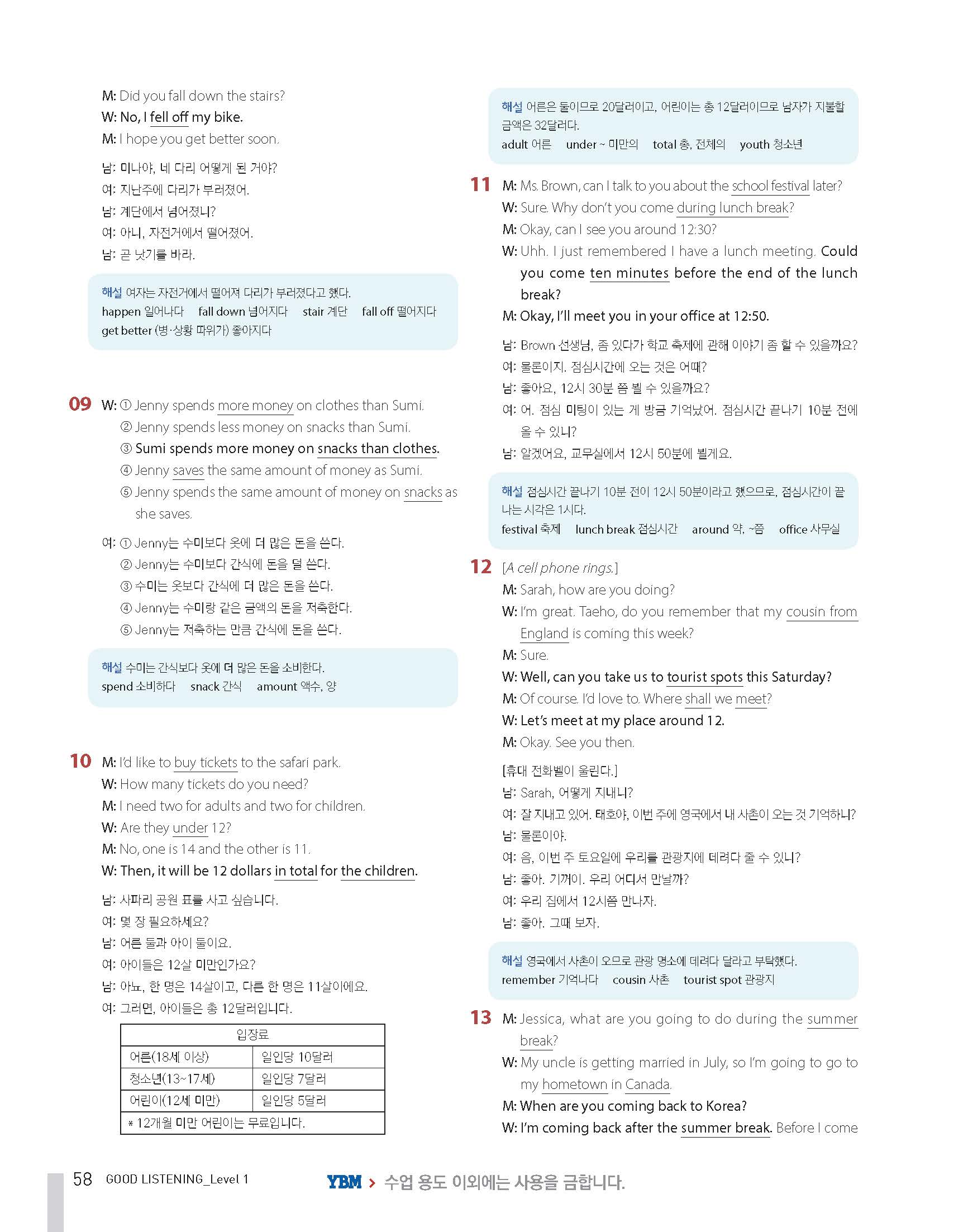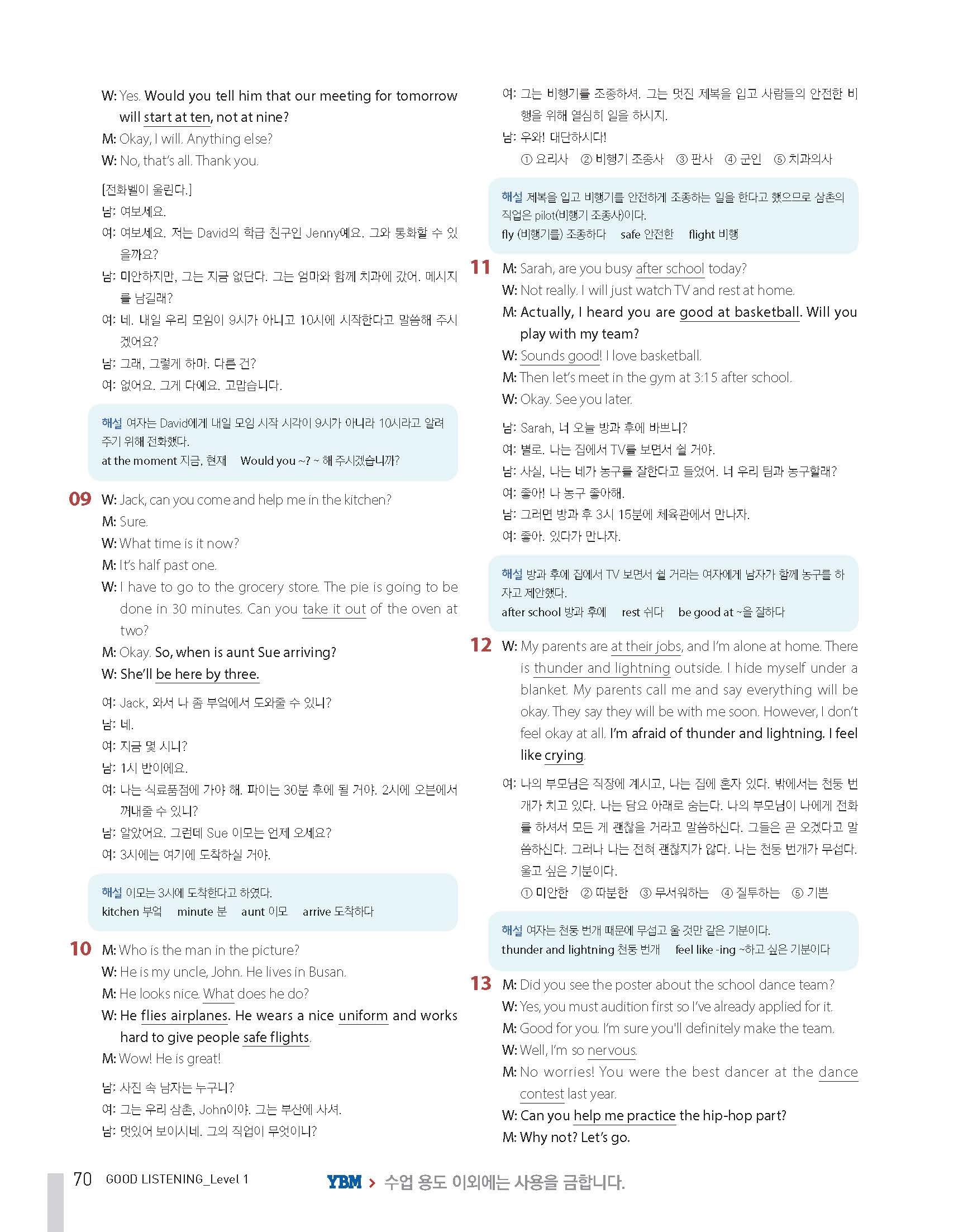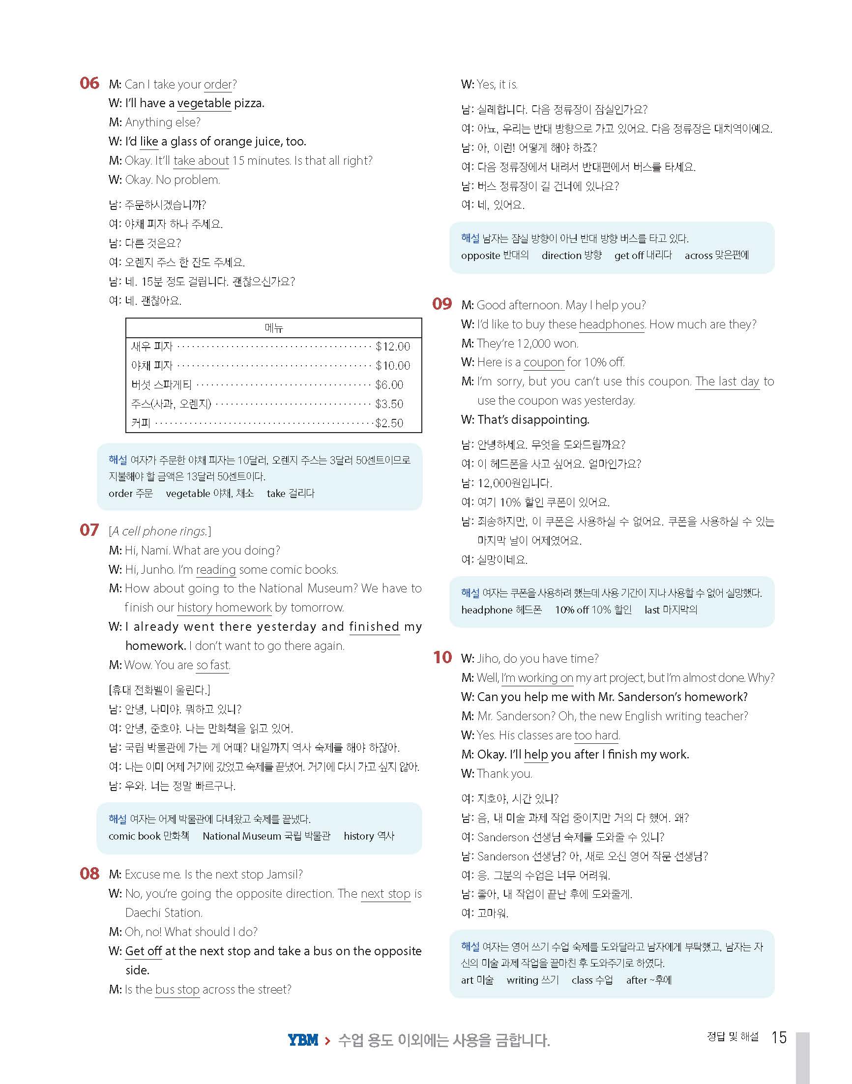YBM시사 굿리스닝1 Good Listening 1 사진답지 빠른답지 모바일최적화