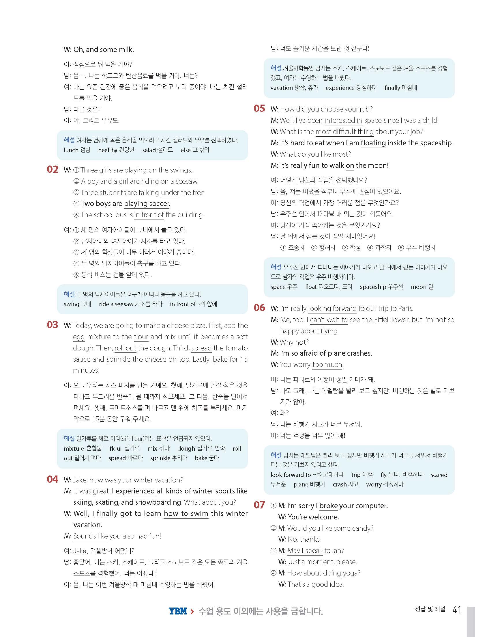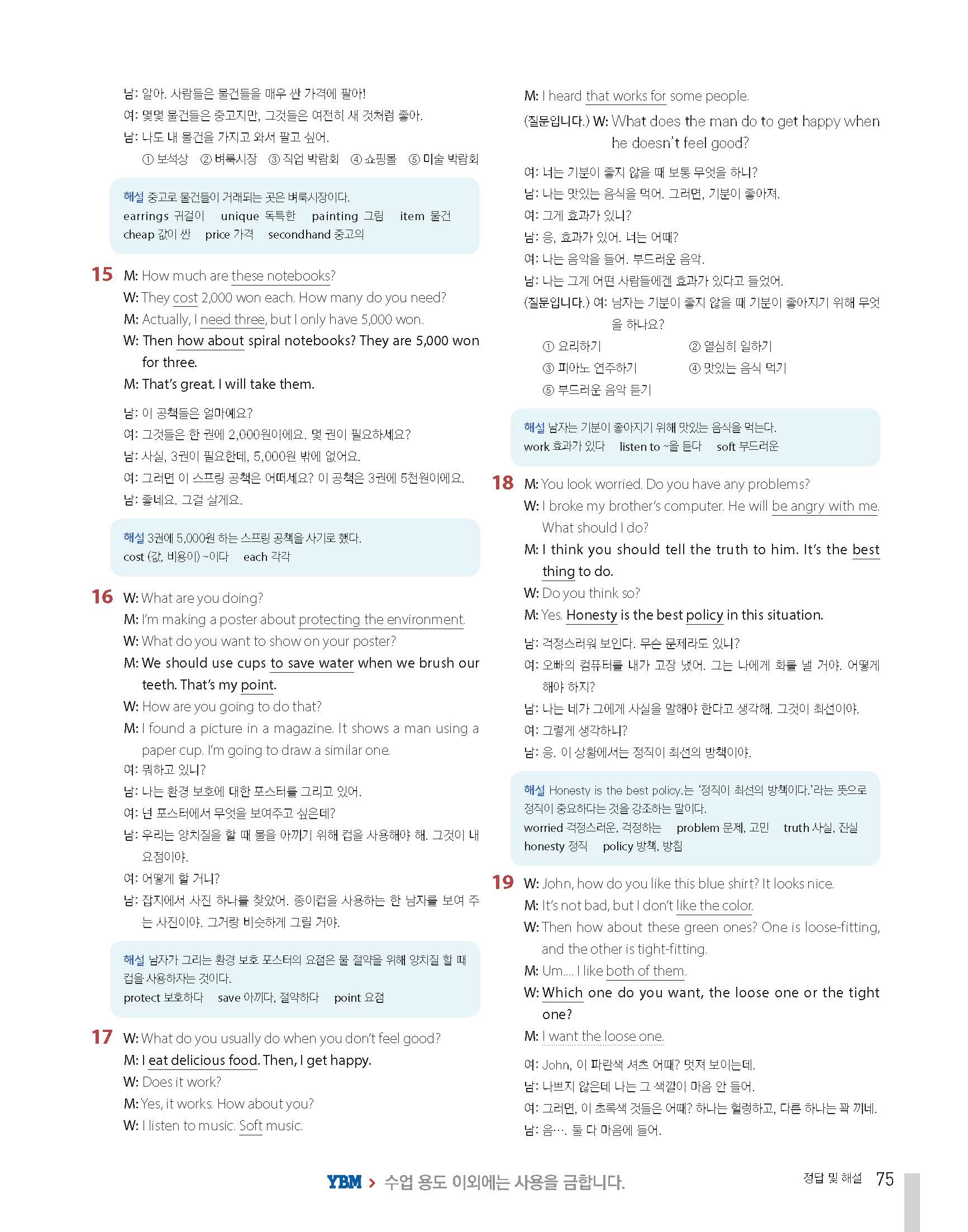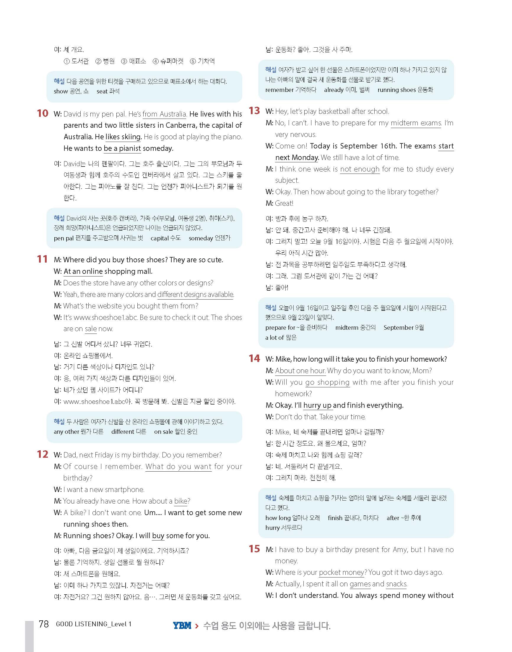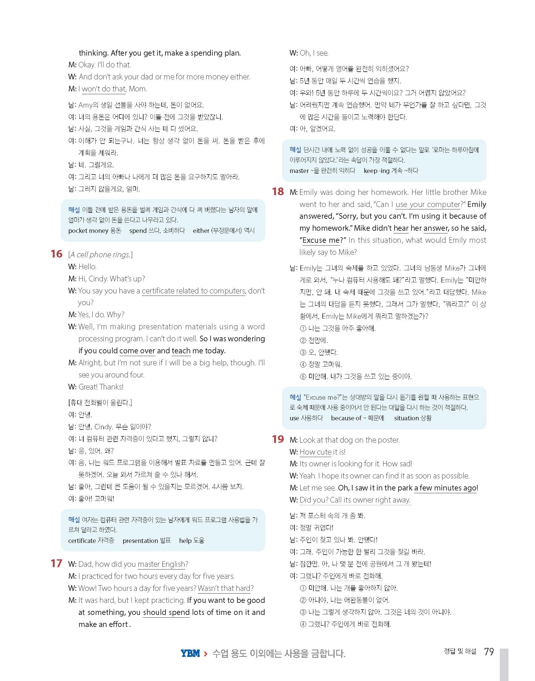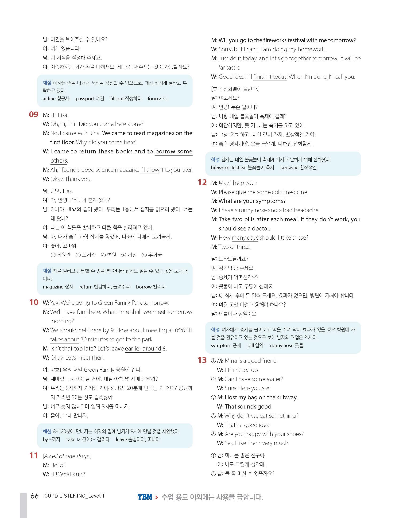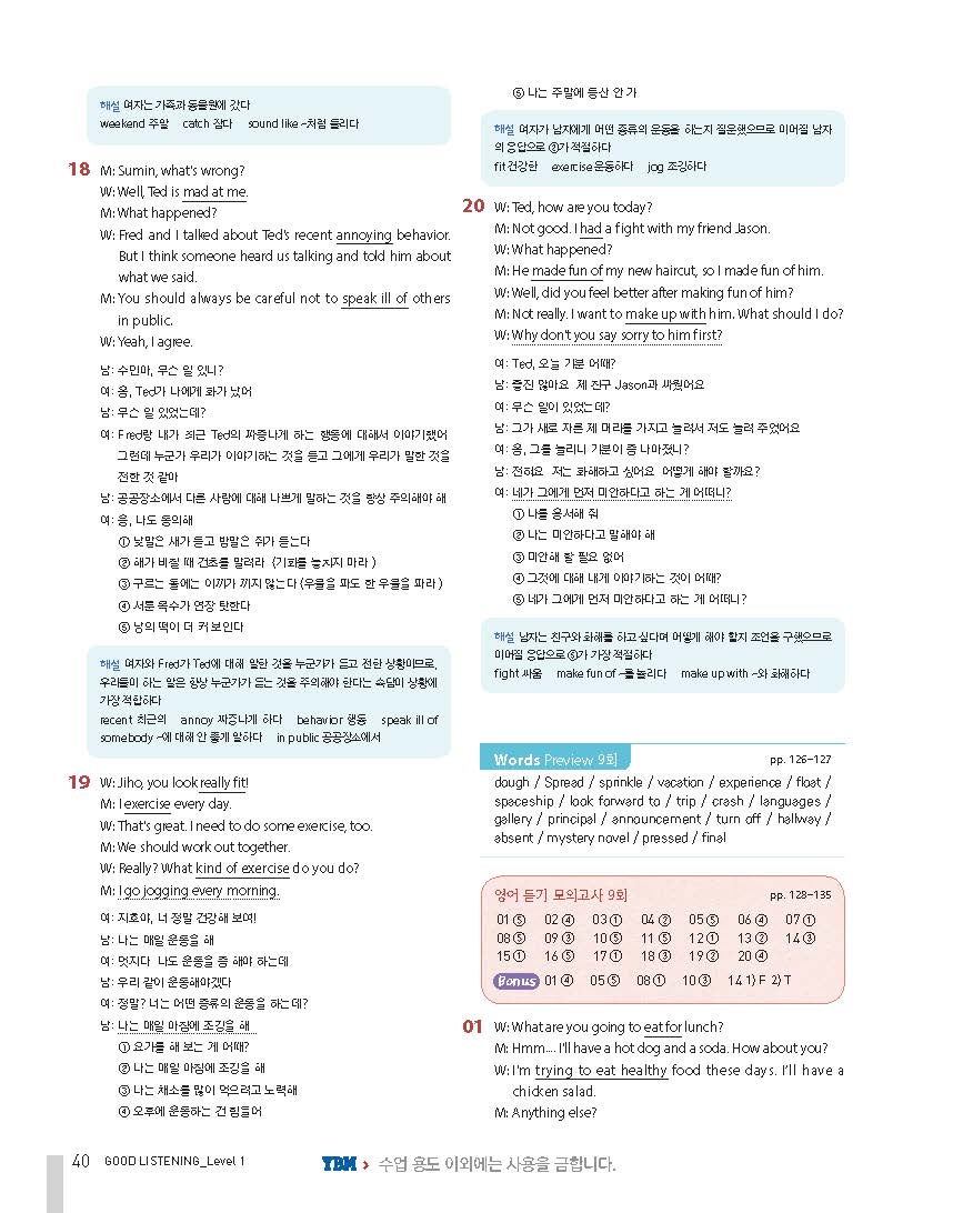 YBM시사 굿리스닝1 Good Listening 1 사진답지 빠른답지 모바일최적화