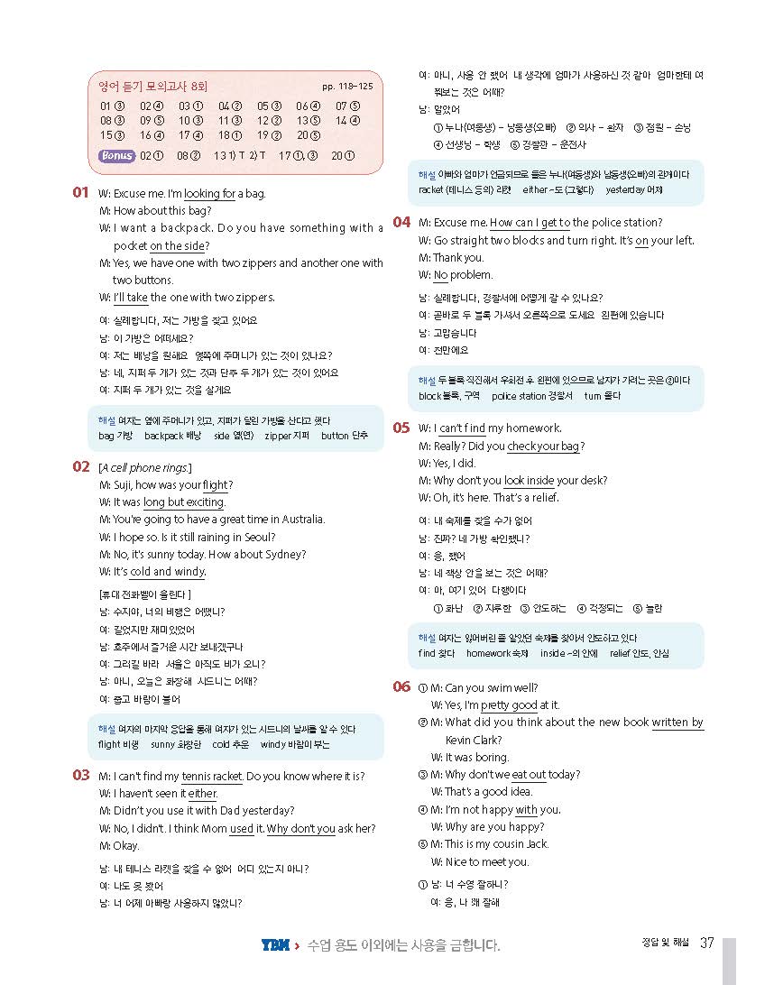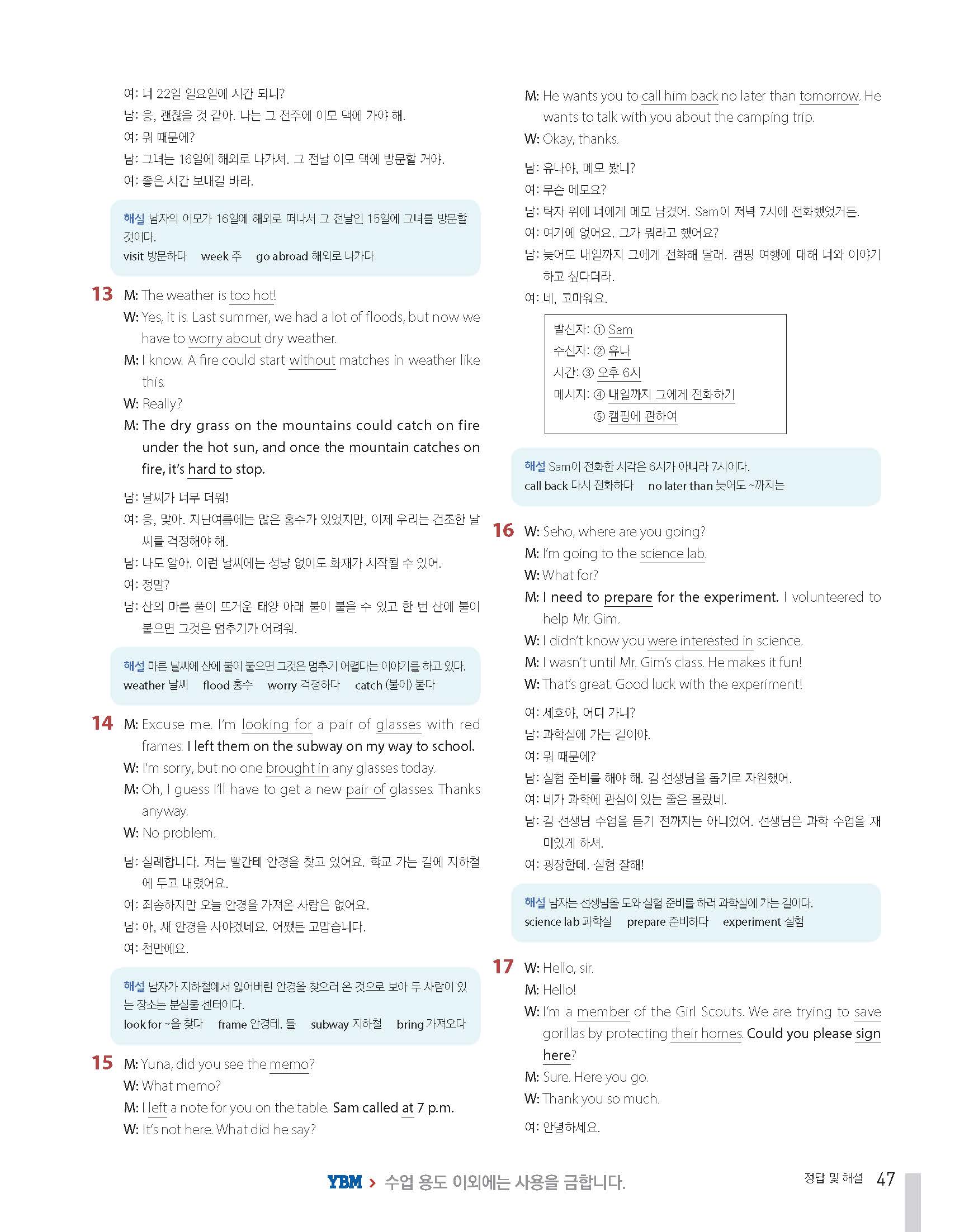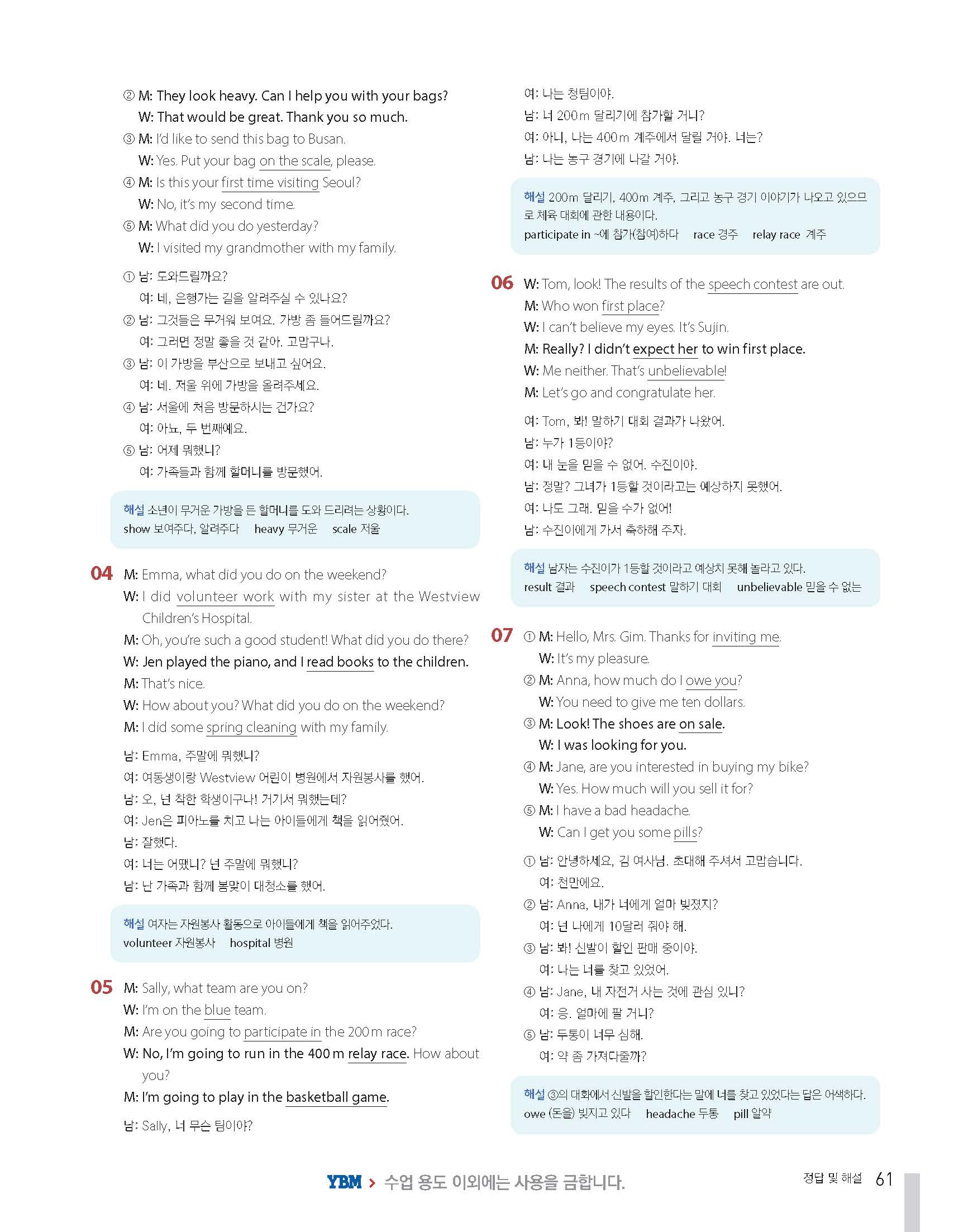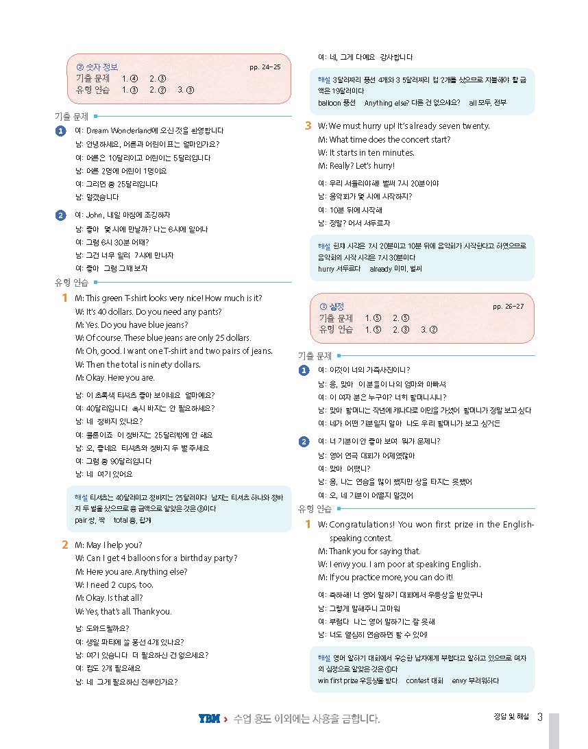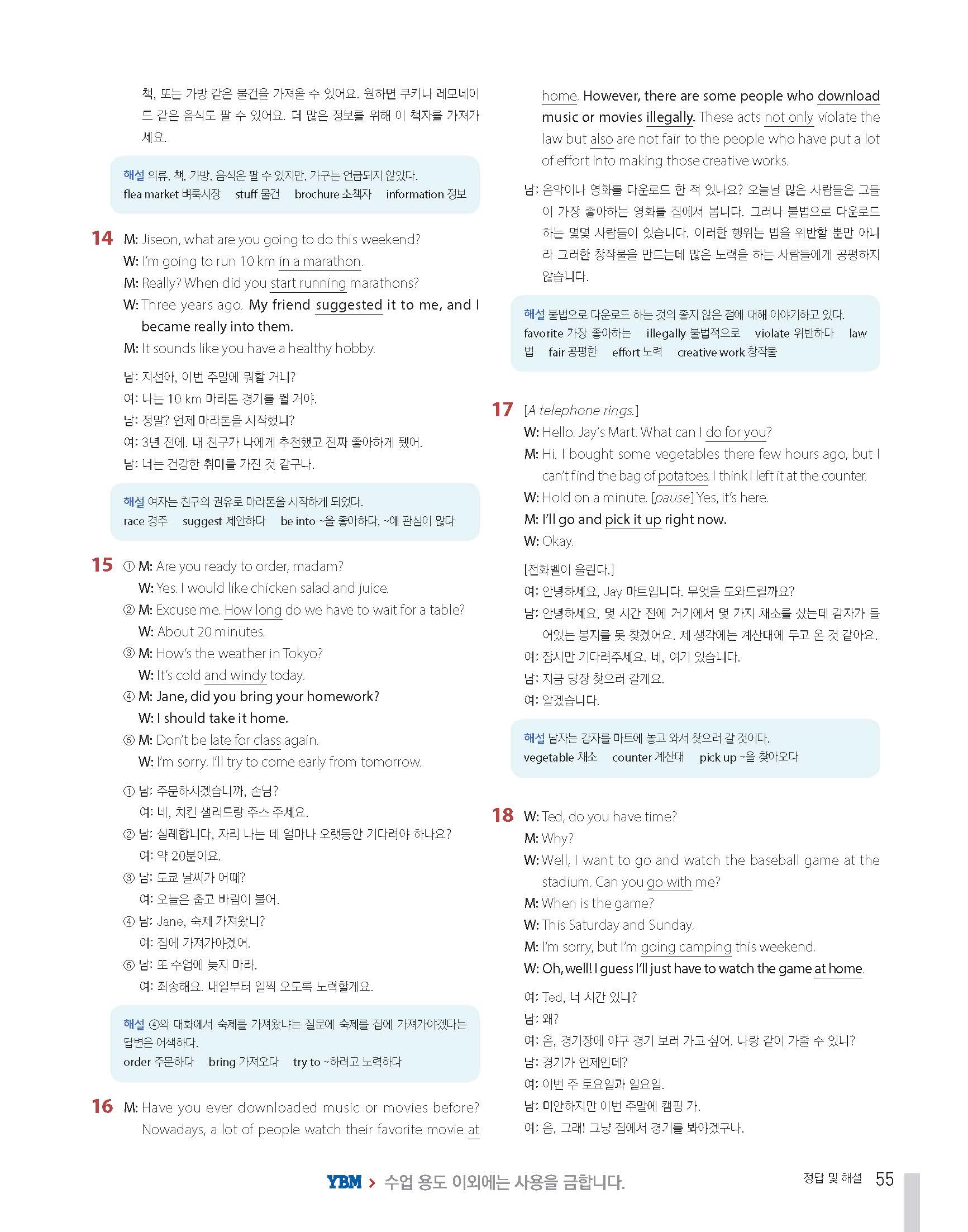 YBM시사 굿리스닝1 Good Listening 1 사진답지 빠른답지 모바일최적화