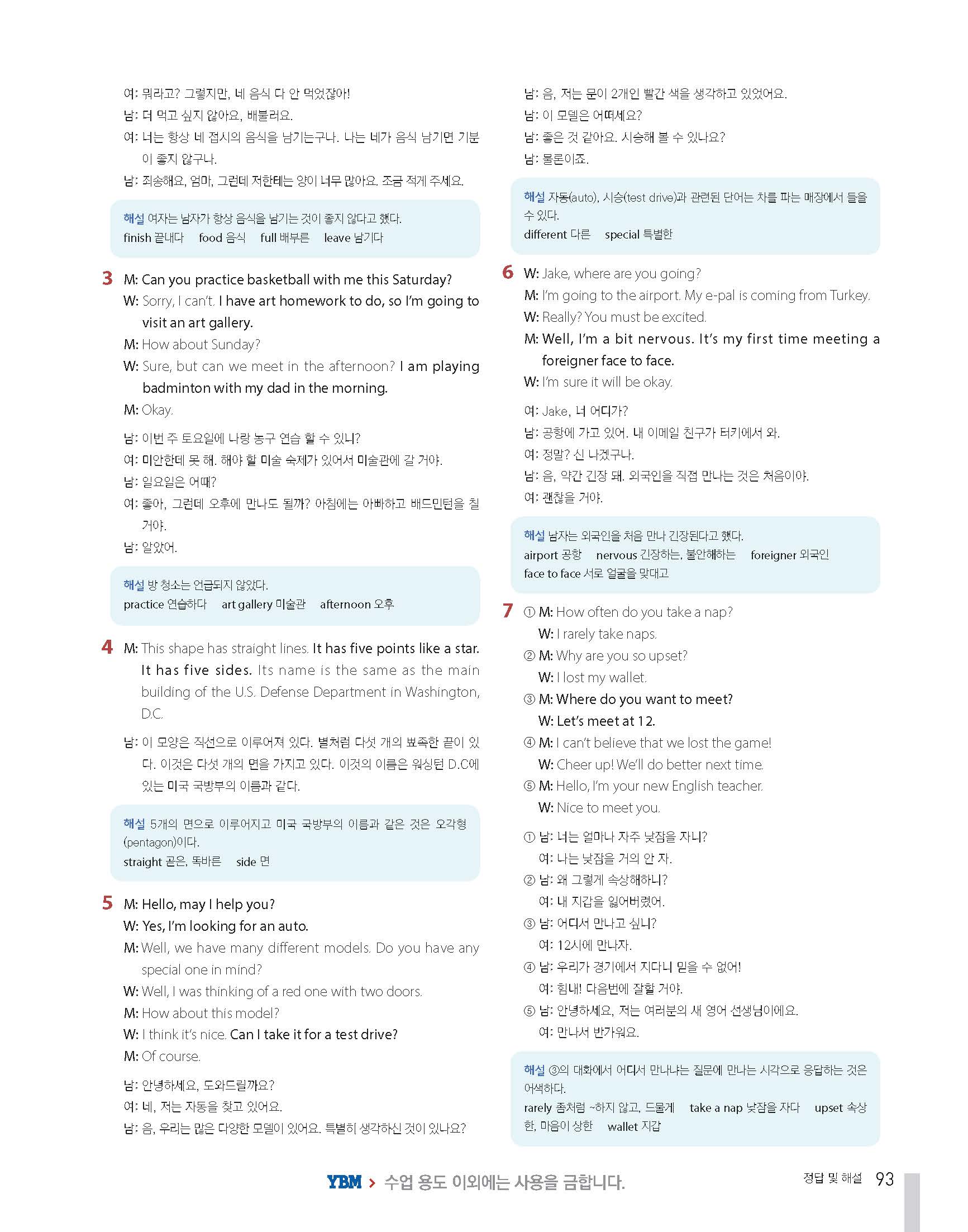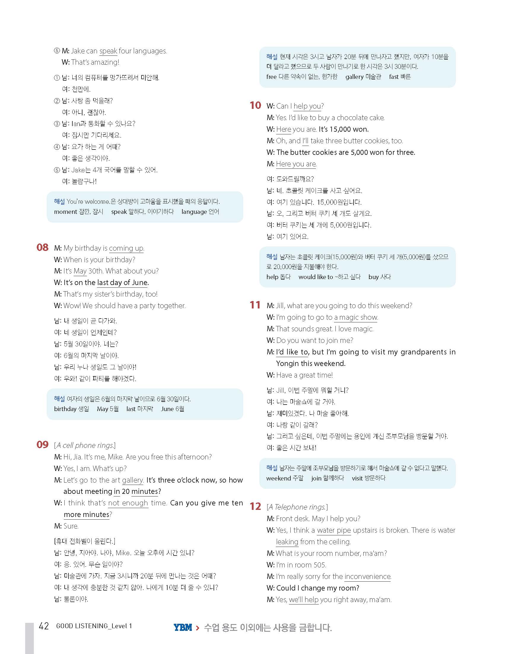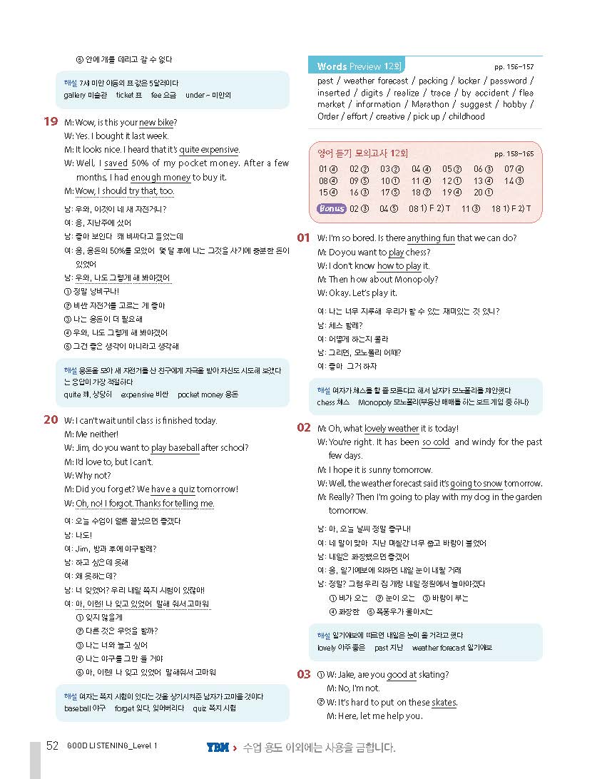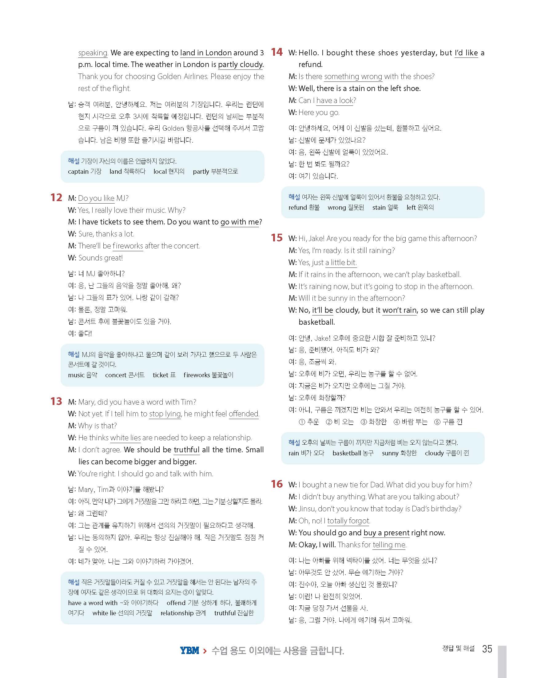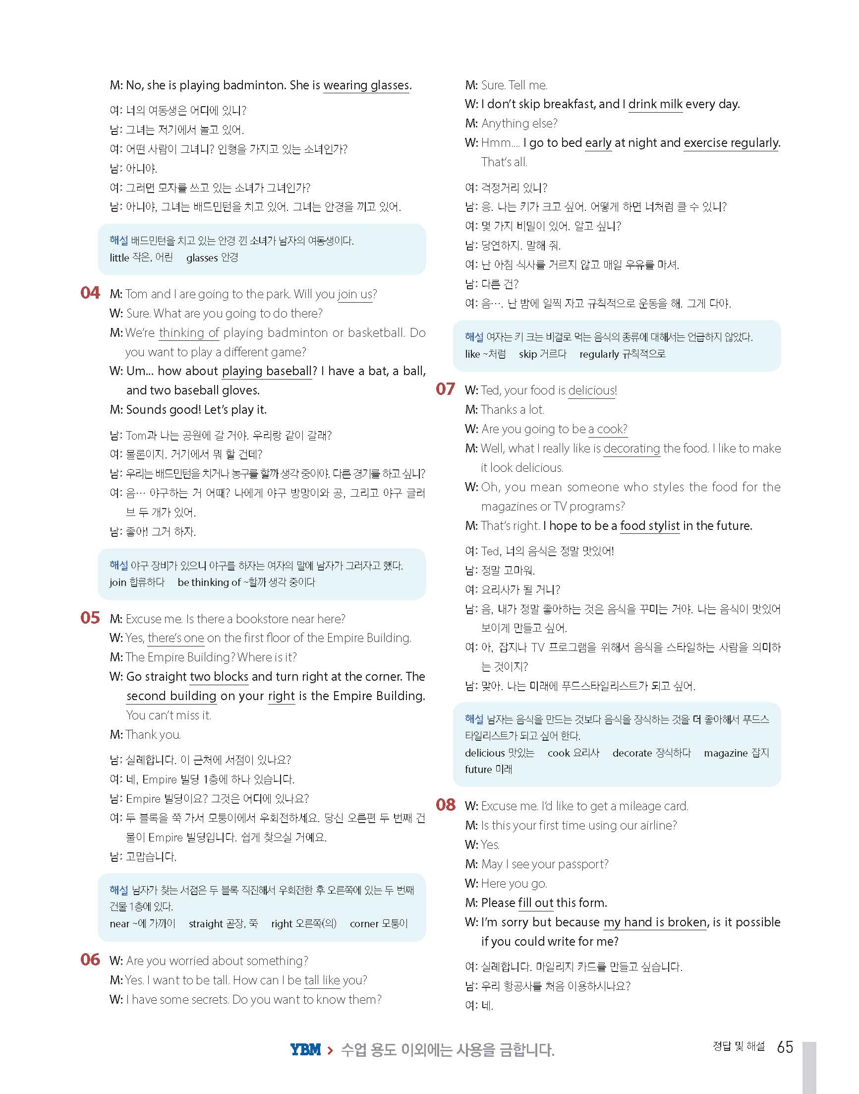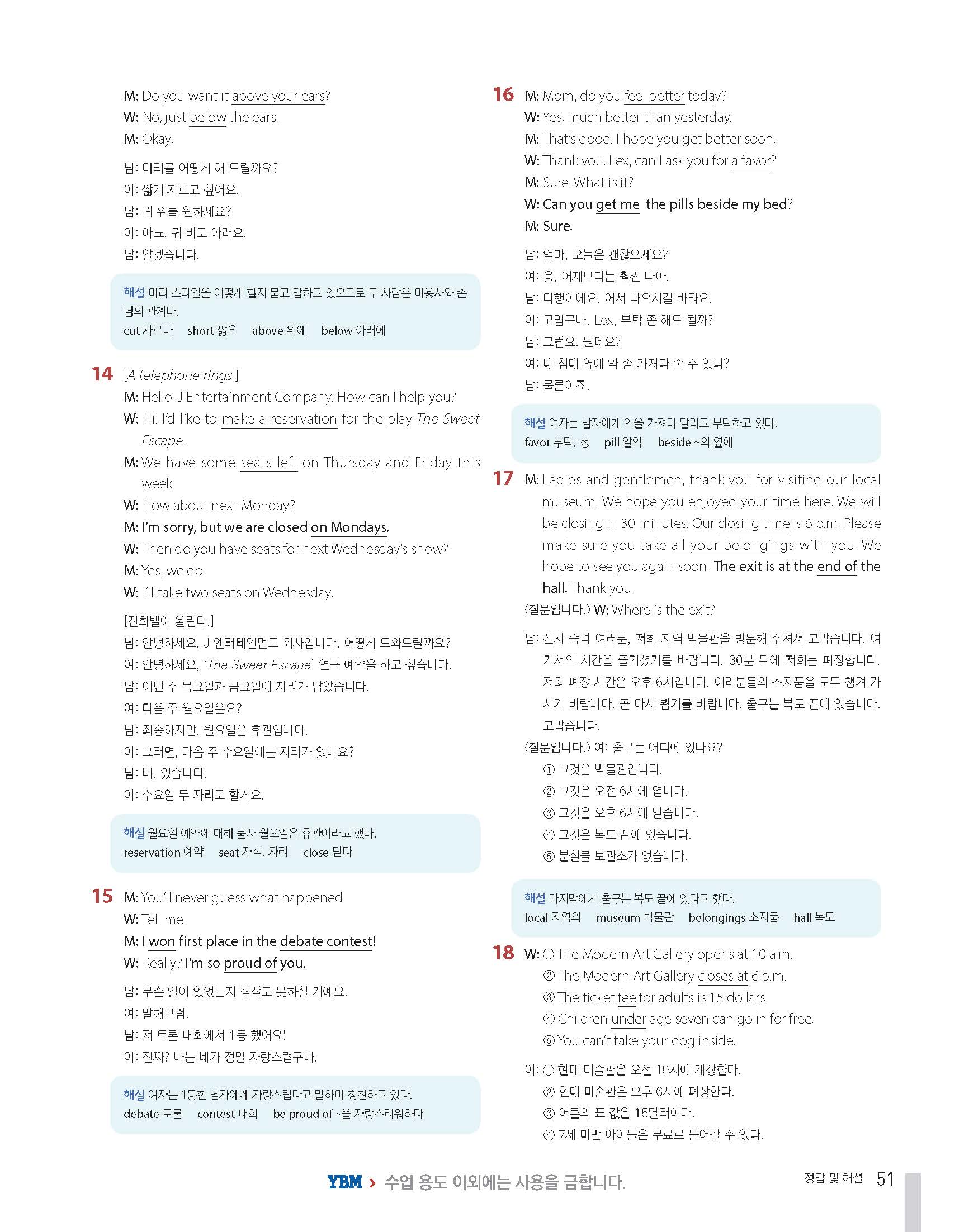 YBM시사 굿리스닝1 Good Listening 1 사진답지 빠른답지 모바일최적화