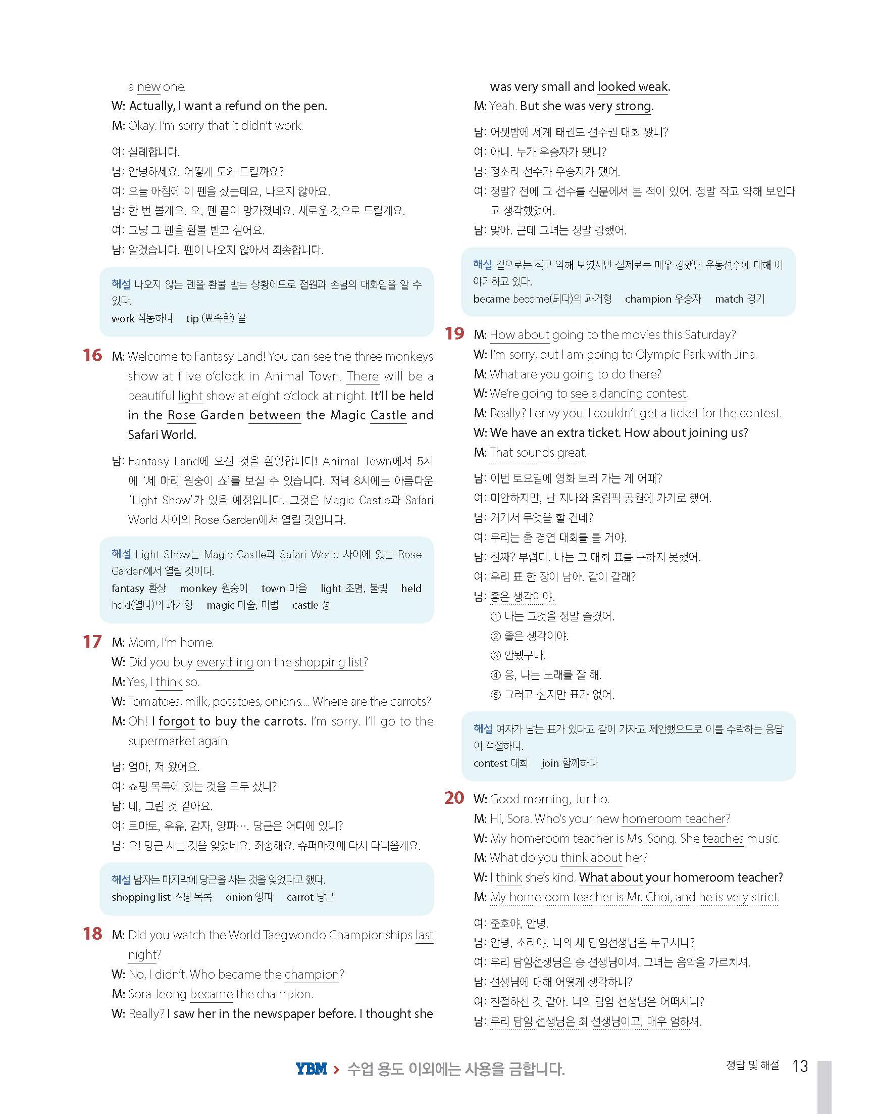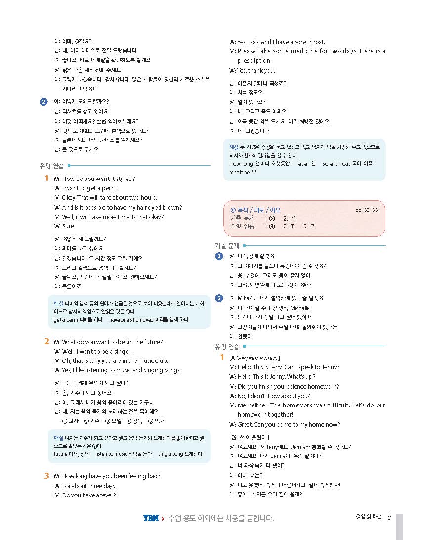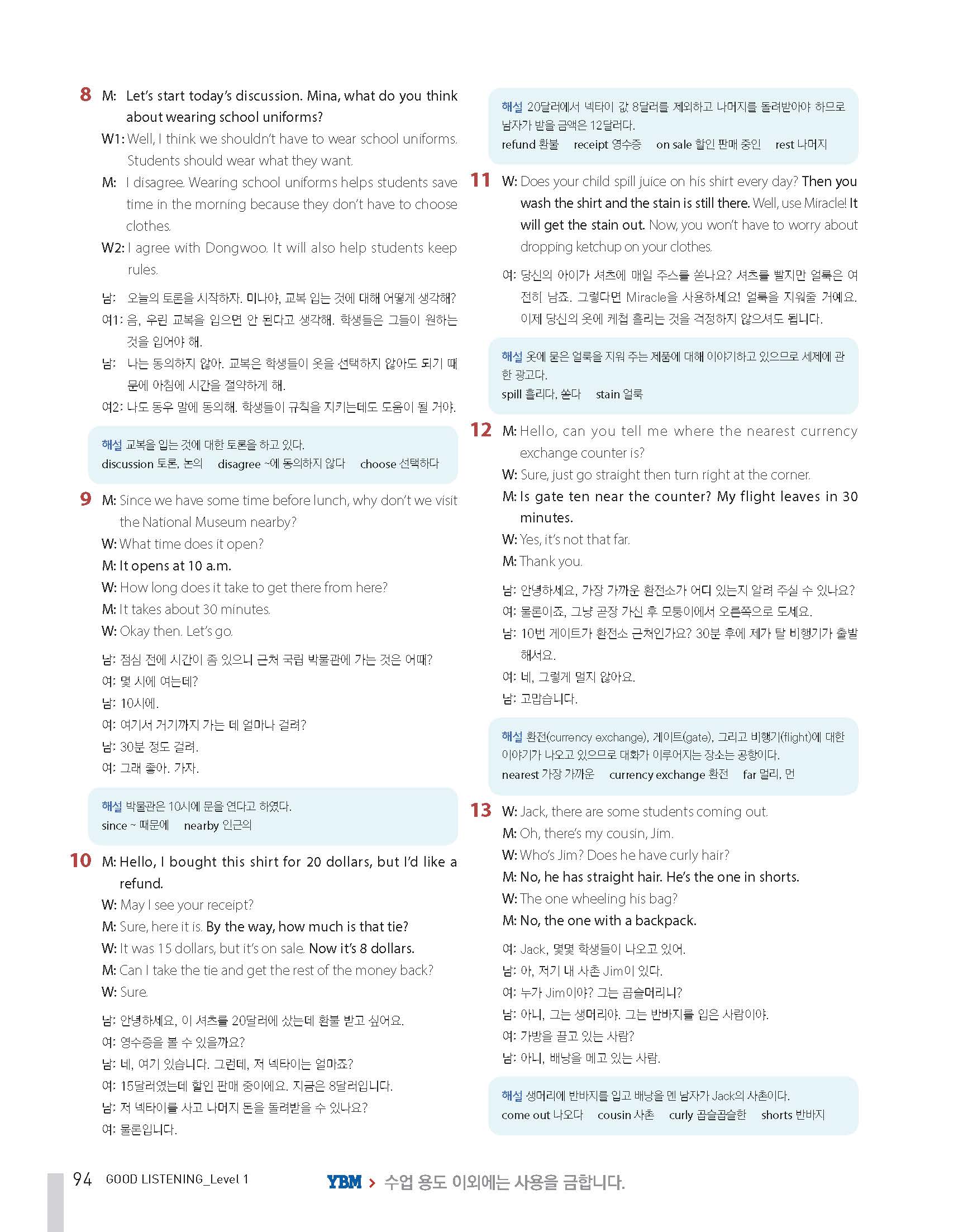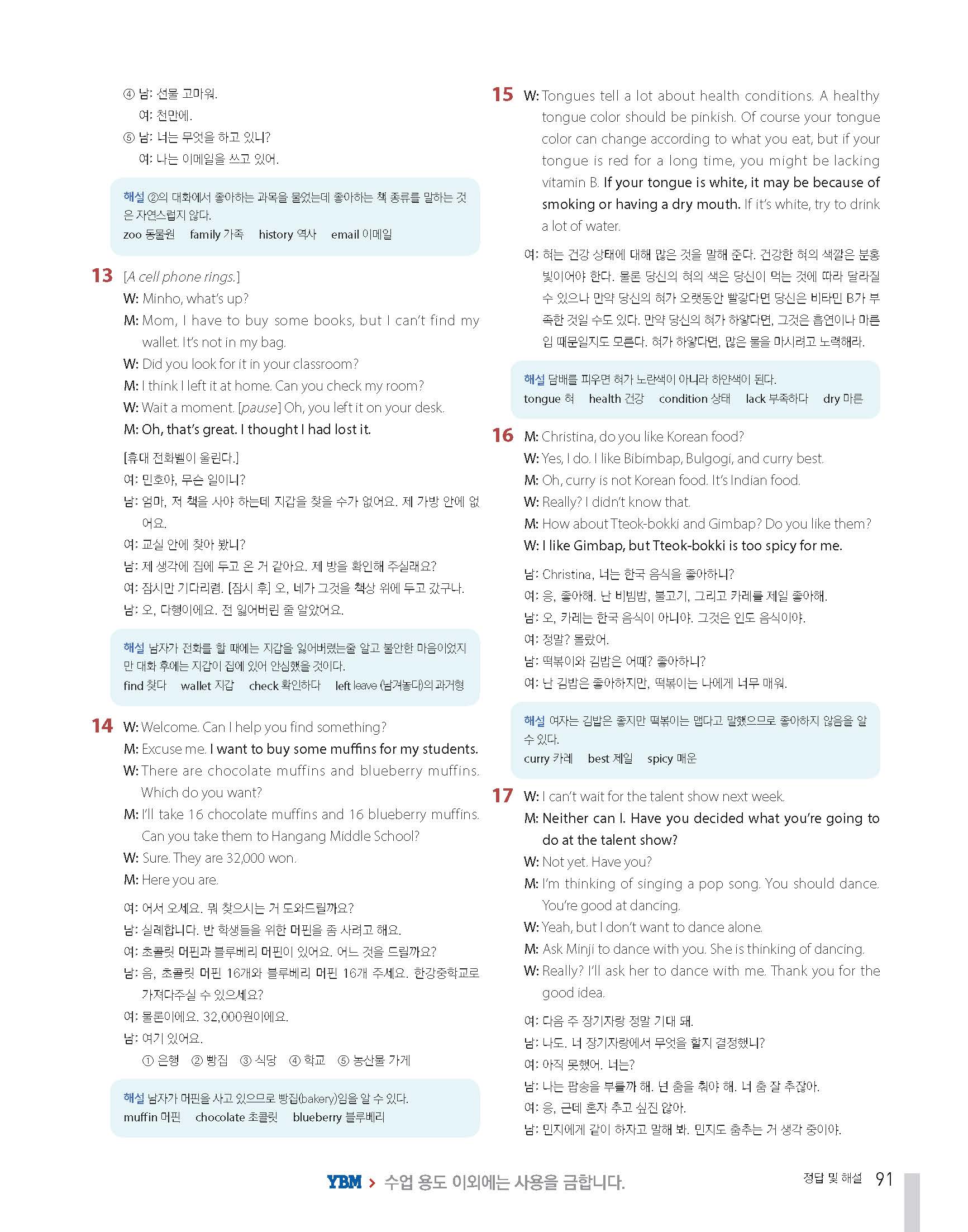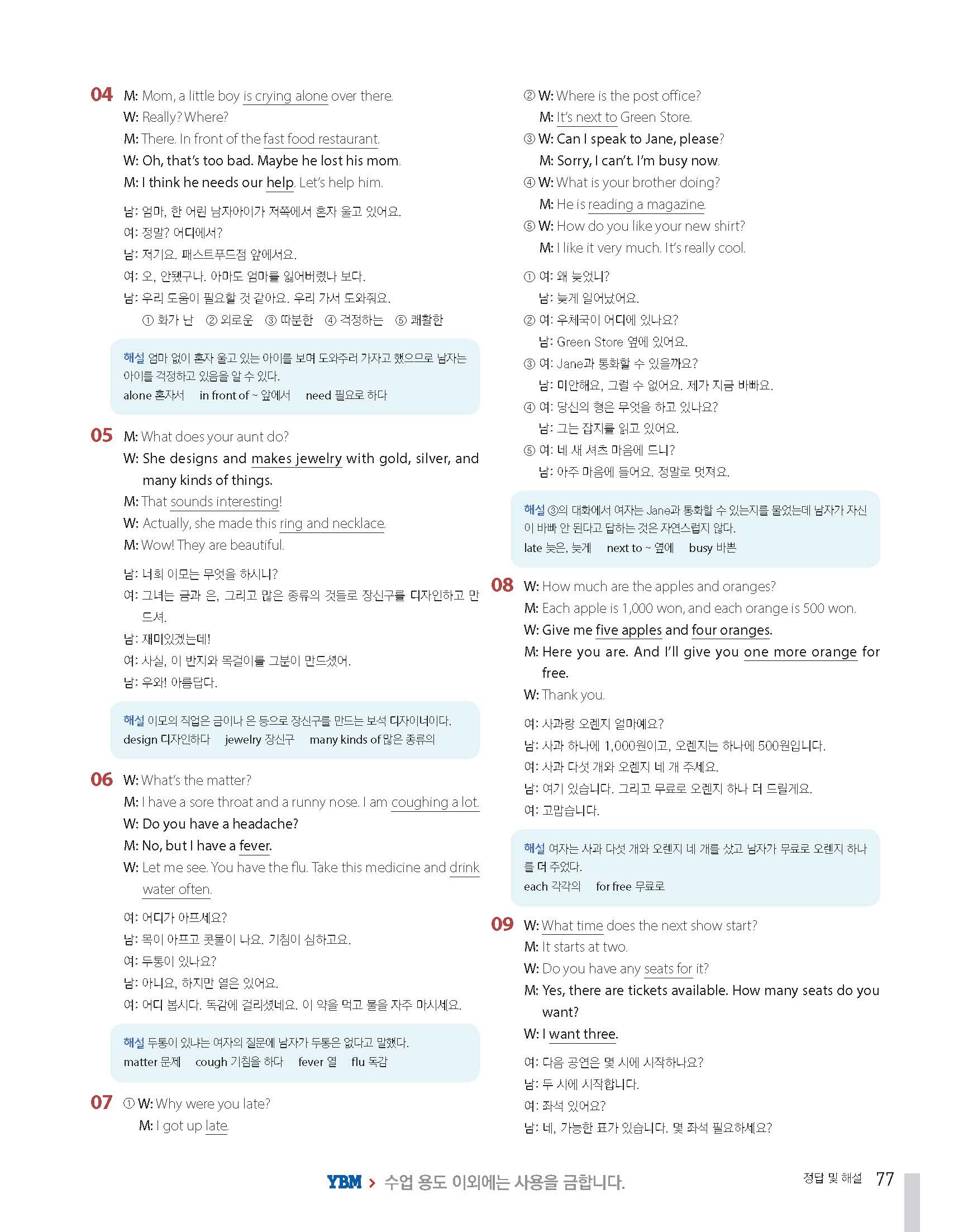 YBM시사 굿리스닝1 Good Listening 1 사진답지 빠른답지 모바일최적화